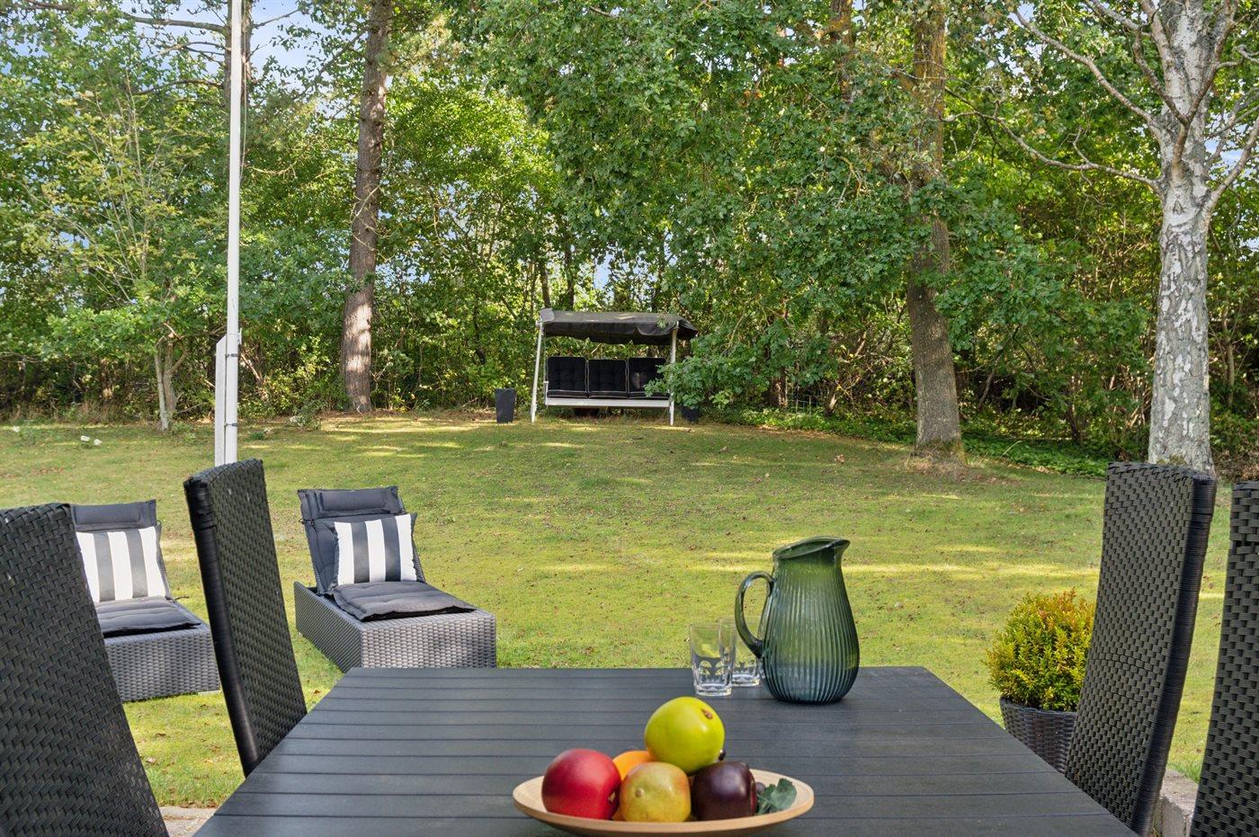 Gemütliches Ferienhaus nahe Vejby Strand mit Garten, Terrasse und Kaminofen für erholsame Tage in der Natur.