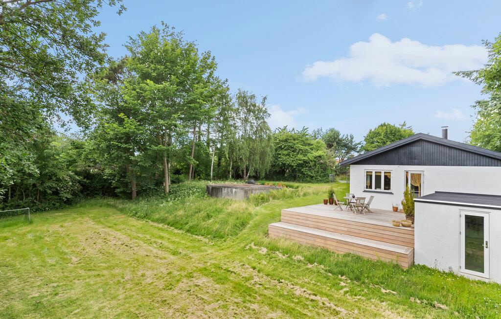 Charmantes Ferienhaus nahe dem malerischen Vejby Strand mit großem Garten und Kaminofen für erholsame Urlaubstage.