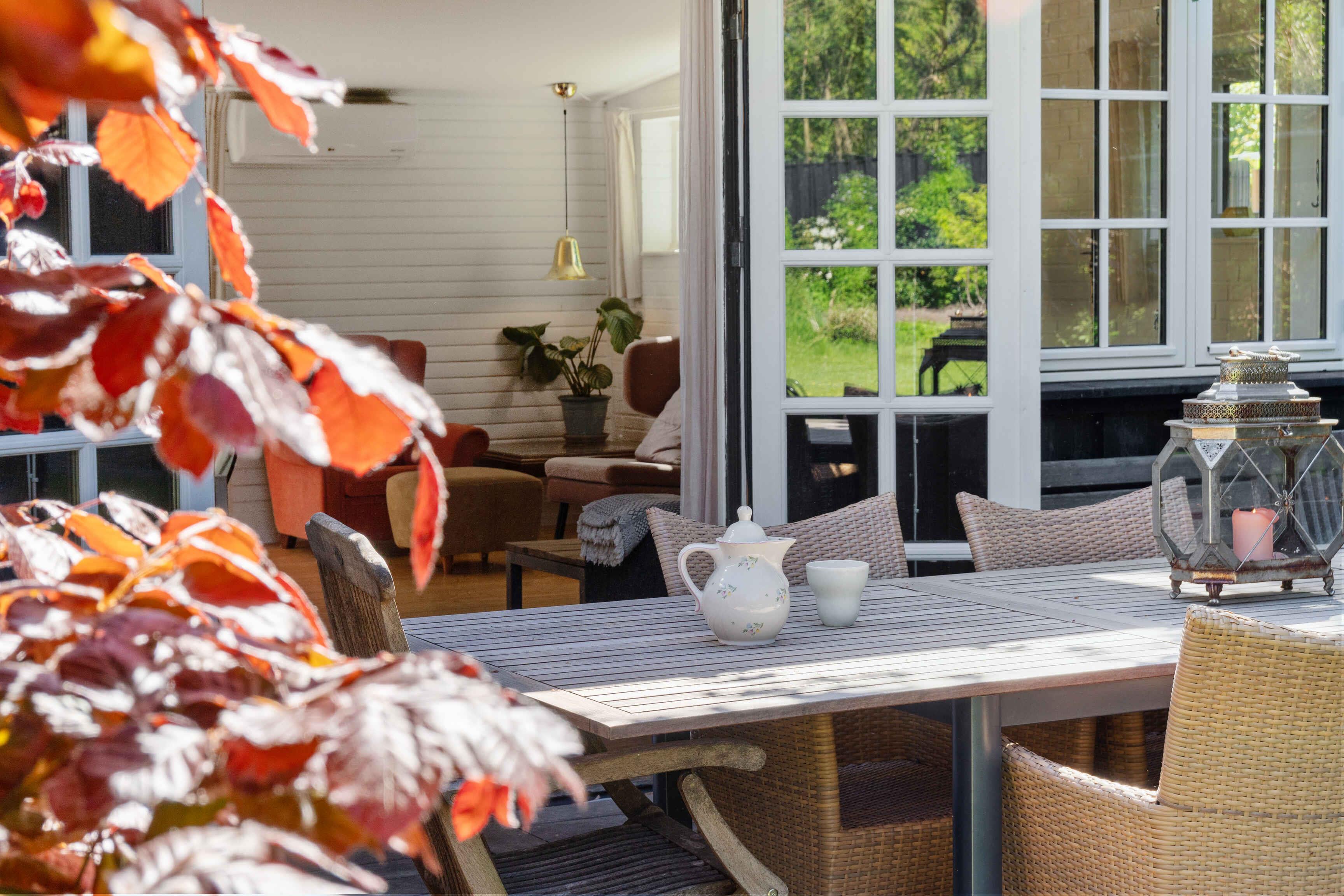 Geräumiges Sommerhaus mit Pool, großer Terrasse, Kamin und idyllischem Garten nahe Strand und Einkaufsmöglichkeiten.