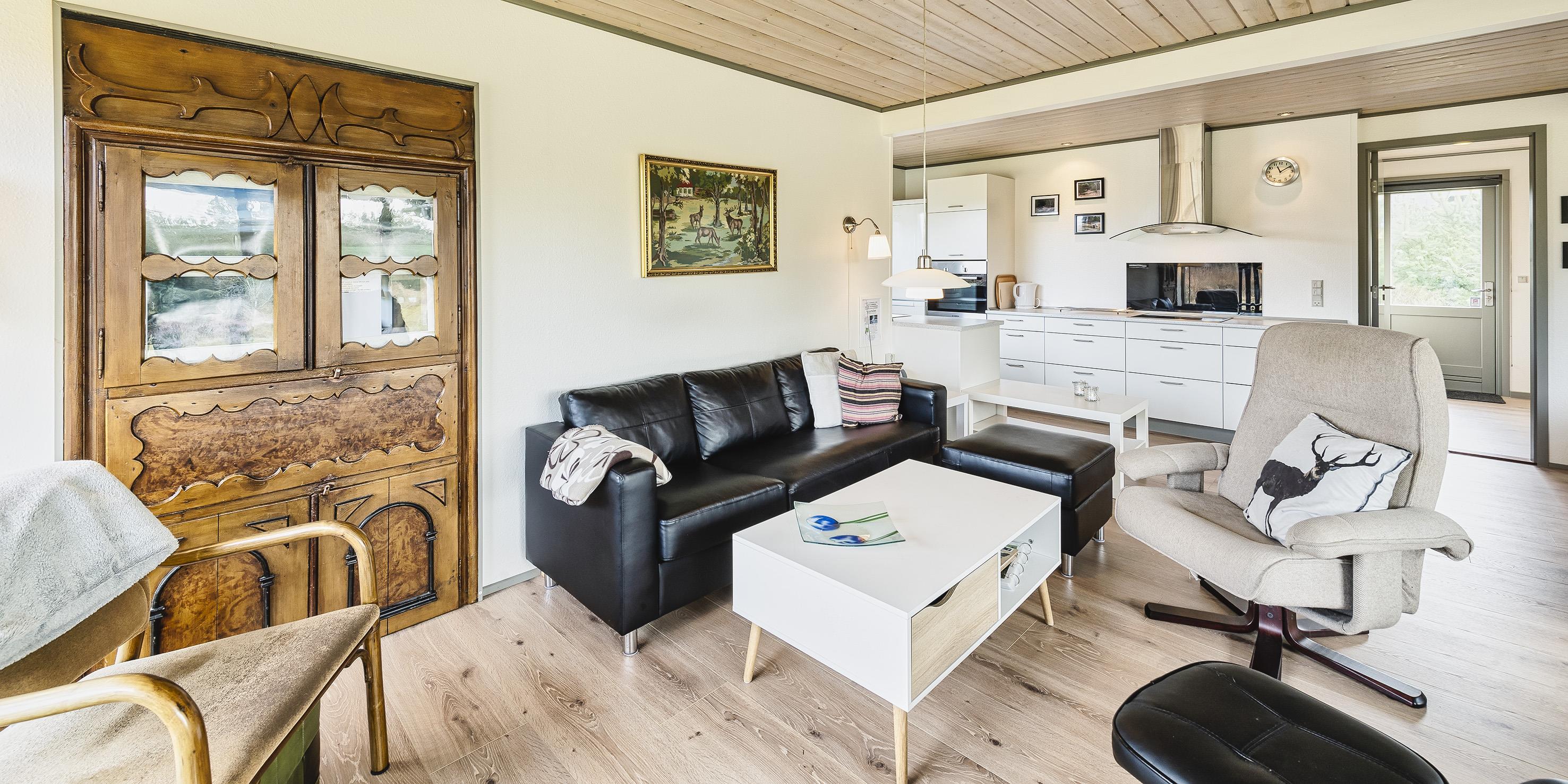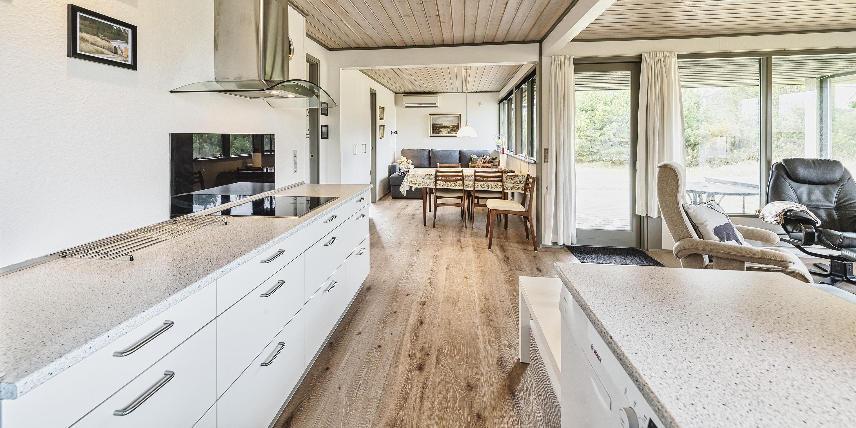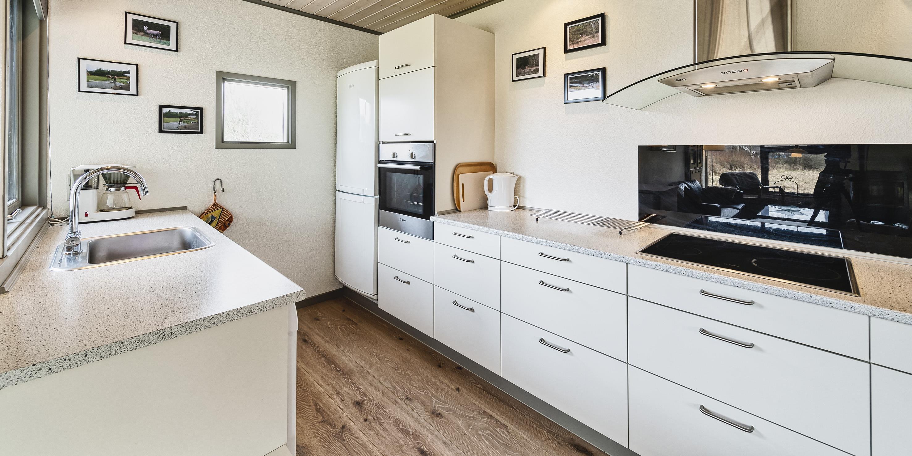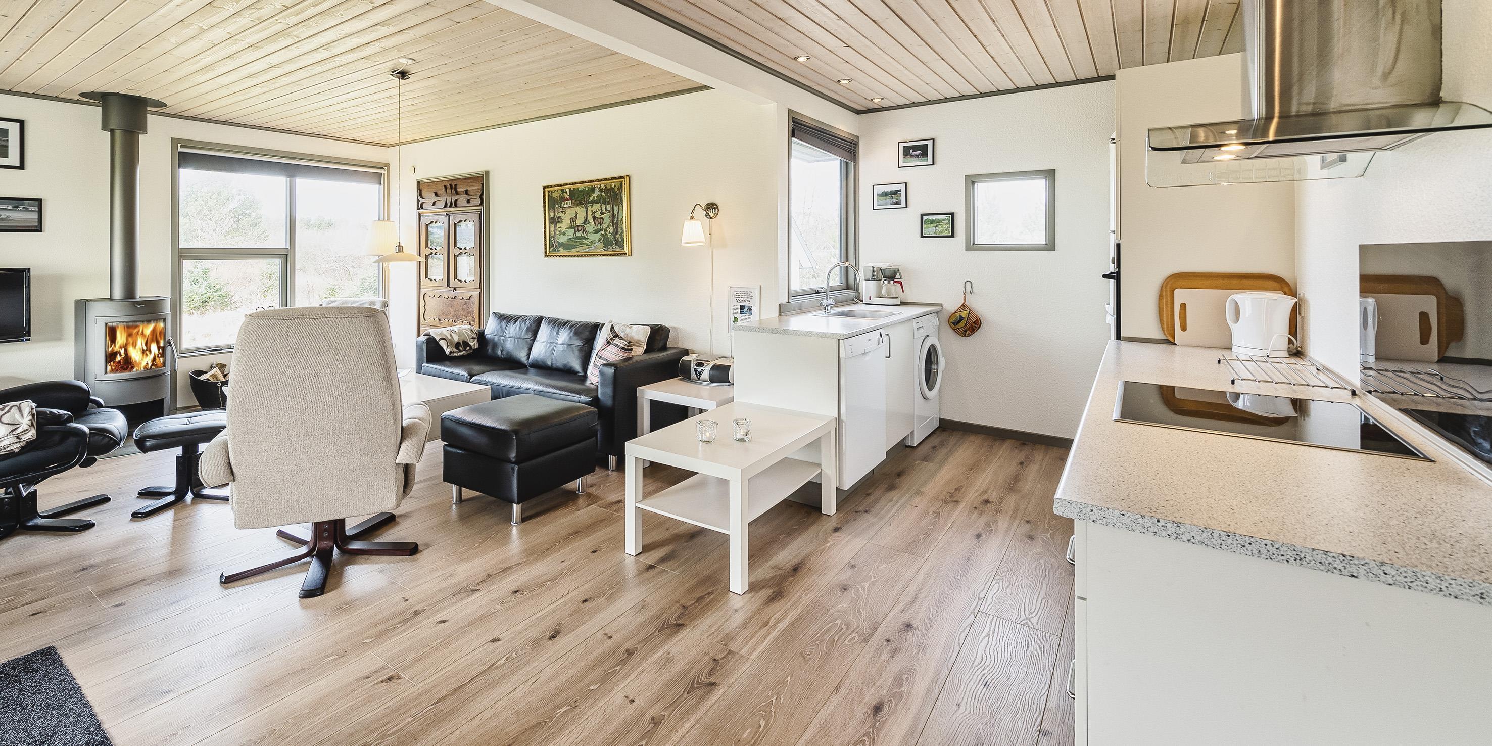Gemütliches Ferienhaus auf einem naturschönen offenen Rasengrundstück mit Namen "Engsøminde". Das Ferienhaus ist für 4-6 Personen ausgestattet und bietet allen Bewohnen ausreichend Platz. Der Strand ist ca. 900 Meter vom Ferienhaus entfernt. Bis auf einem Schlafzimmer, dem Eingangsbereich und dem Badezimmer ist das Ferienhaus mit einem Dielenboden verlegt. Der Eingangsbereich und ein Schlafzimmer mit Laminat ausgelegt. Der Wohnbereich ist zum Essbereich offen gehalten. Im Wohnbereich befindet sich ein Kamin und spendet angenehme Wärme, desweiteren ist ein Schlafsofa hier im Wohnbereich aufgestellt. Es befindet sich eine Warmepumpe im Ferienhaus. Mit dieser Warmepumpe haben sie die Möglichkeit die Stromkosten zu senken, denn die Warmepumpe ist energiesparend. Das Fernsehprogramm empfangen Sie über Stofa, daher empfangen Sie nur 5-8 deutsche Kanäle. Die Küche verfügt über einen Herd mit Cerankochfeld, einem Backofen in Arbeitshöhe, einer Geschirrspülmaschine, einer Mikrowelle und einer Kühl- und Gefrierkombination. Eine Waschmaschine steht den Gästen auch zur Verfügung und ist hier in der Küche untergebracht. Das Badezimmer verfügt über ein Handwaschbecken, ein WC und eine Dusche. Es gibt insgesamt zwei Schlafzimmer im Ferienhaus: DB + DB. Beide sind mit je einem Doppelbett ausgestattet. In einem der Schlafzimmer befindet sich auch ein kleiner Safe. Das Ferienhaus verfügt über einen Internetanschluss (W-Lan). Am Ferienhaus ist ein kleiner Terrassenbereich überdacht, dort können Sie in Ruhe im Trockenen sitzen und Ihren Kaffee geniessen. Schuppen. Auf dem grosszügigen Rasengrundstück haben die Kleinen Bewohner genügend Platz zum Bolzen oder Toben. Es ist max. ein Haustier erlaubt, aber keine Katzen. Das Rauchen ist nicht gestattet. Das Ferienhaus ist 1973 erbaut worden und laufend renoviert.