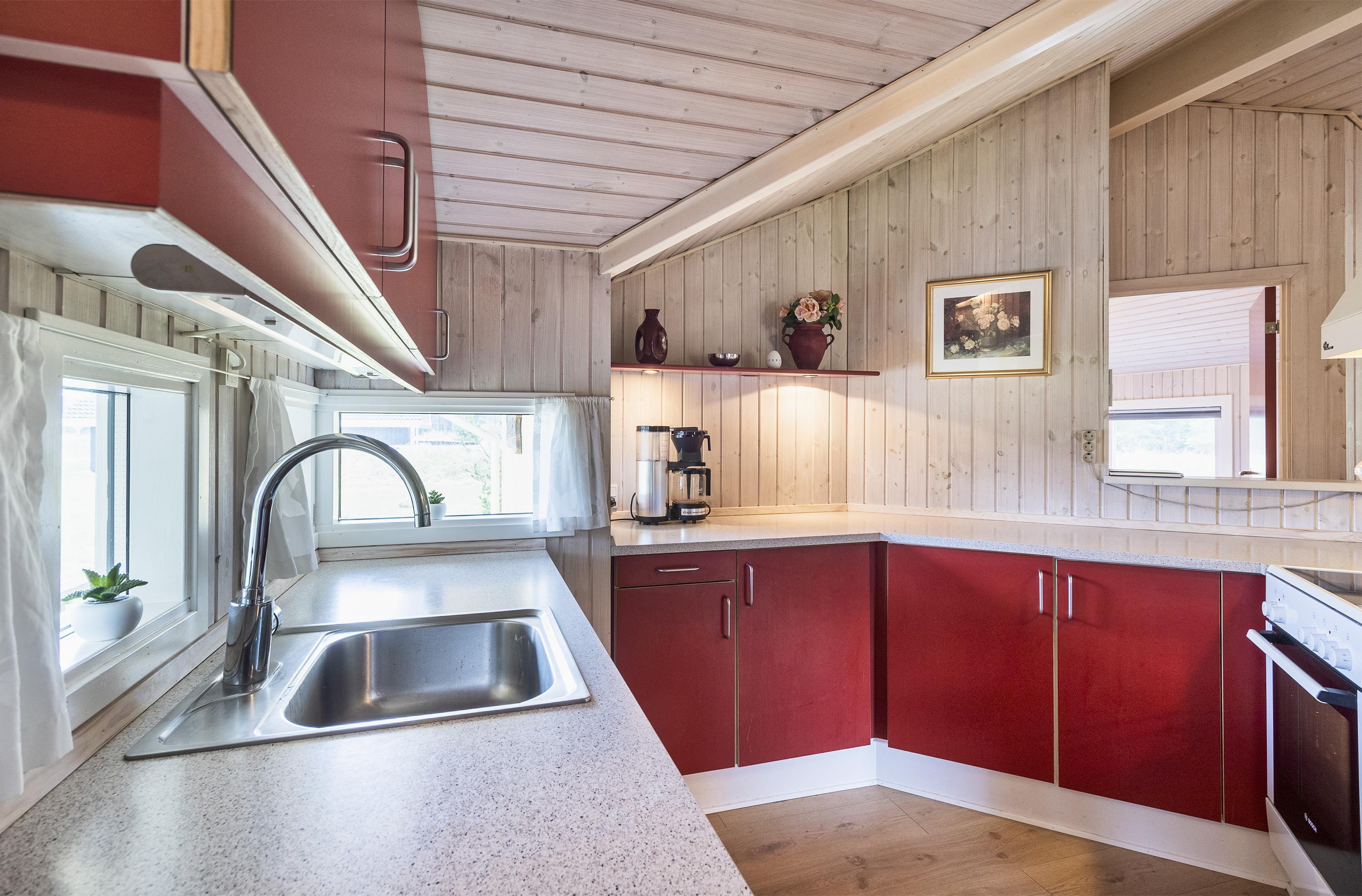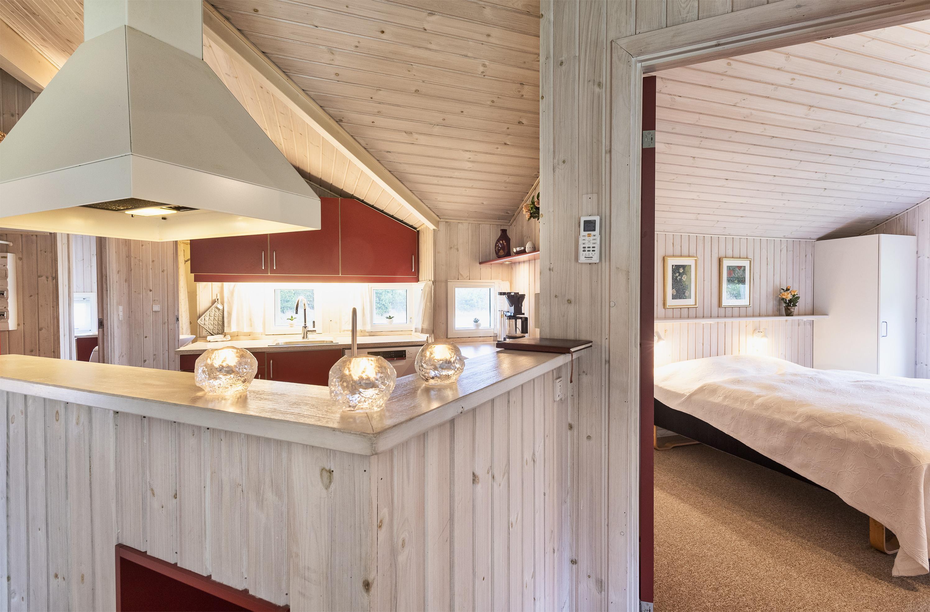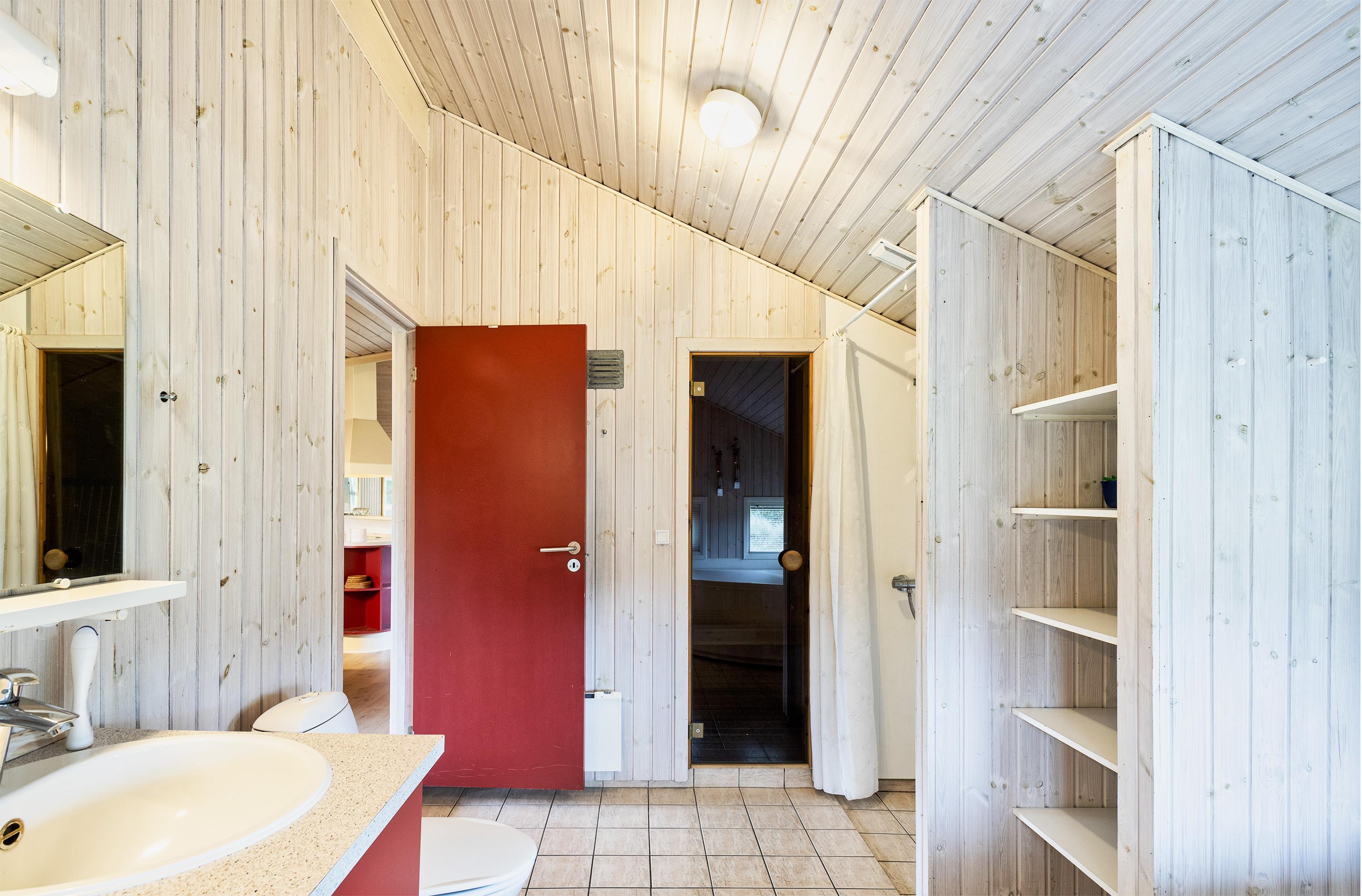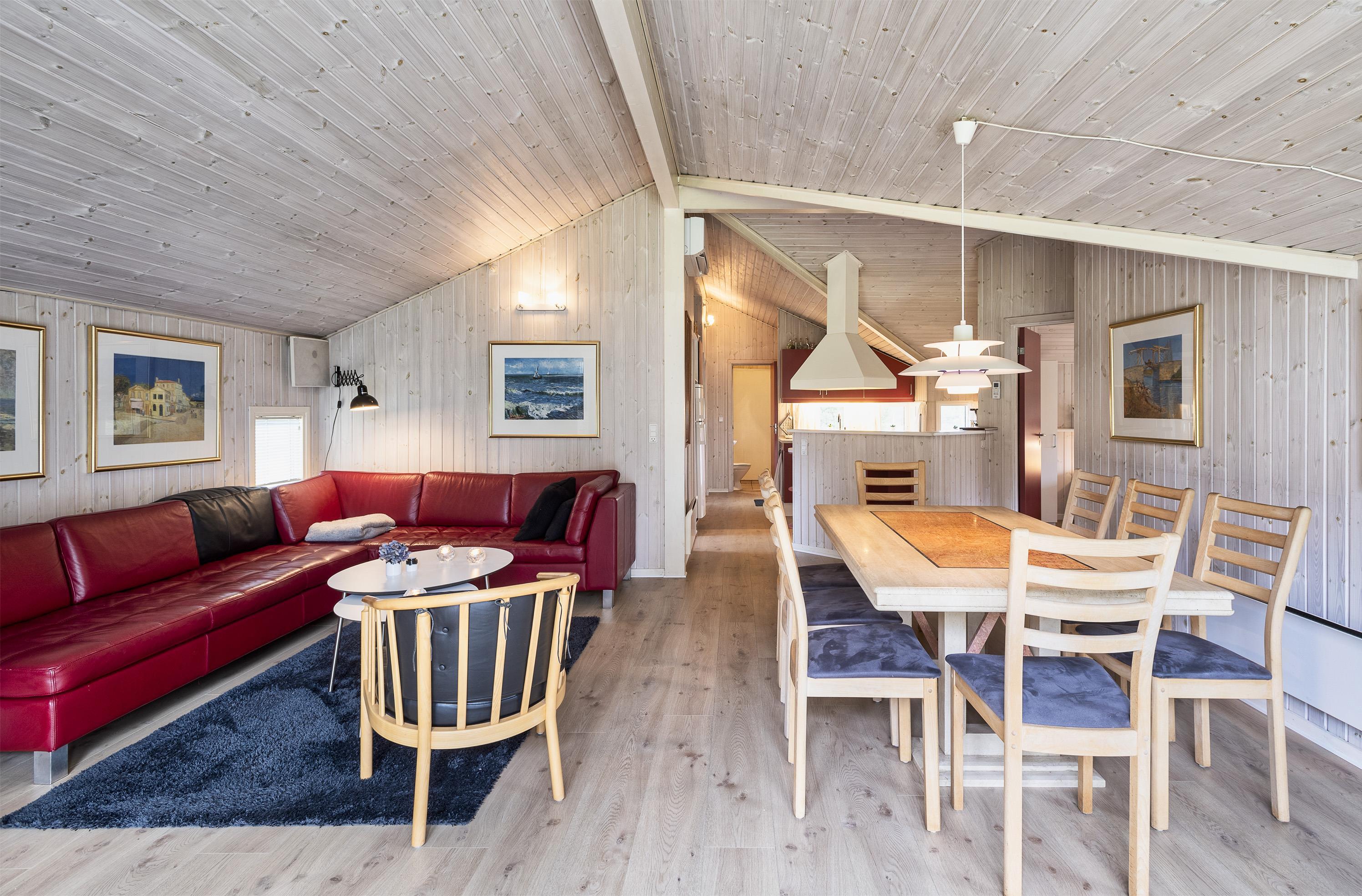 Geschmackvoll eingerichtetes Ferienhaus mit Namen “ Dig & Mig” auf einem großen Naturgrundstück gelegen. Die Einrichtung ist farblich abgestimmt und es passt alles gut zusammen. Das Ferienhaus ist für 8 Personen ausgestattet. Der Strand ist 1,5 Km vom Haus entfernt. In dieser Straße treffen Sie häufig auf Hirsche und das Rotwild, die aus dem dahinter liegenden Wald kommen. Die Tiere lieben es von den Gästen mit Obst und Gemüse verwöhnt zu werden. Im Wohn-, Ess- und Küchenbereich ist ein hübscher Laminatboden verlegt worden, Die Bäder sind gefliest und in den Schlafräumen liegt Teppichboden. Im Wohnbereich ist ein Kamin aufgestellt. Das deutsche Fernsehprogramm empfangen Sie über eine Parabolantenne. Es befindet sich eine Warmepumpe im Ferienhaus. Mit dieser Warmepumpe haben sie die Möglichkeit die Stromkosten zu senken, denn die Warmepumpe ist energiesparend. In der Küche finden Sie einen Herd mit Cerankochfeld, ein Backofen, eine Geschirrspülmaschine, eine Mikrowelle und eine Kühl- und Gefrierkombination. Zwei Bäder stehen den Gästen zur Verfügung. Das kleine Bad ist mit einem WC, einem Handwaschbecken und einer Dusche ausgestattet. Das große Badezimmer hat ein WC, ein Handwaschbecken, eine Dusche, eine Sauna und einen Whirlpool. Die Waschmaschine und der Trockner sind auch in dem großen Badezimmer untergebracht. Desweiteren stehen den Gästen vier Schlafzimmer zur Verfügung: DB + DB + 2B + 2B. Zwei davon sind mit je einem Doppelbett ausgestattet und die beiden anderen verfügen je über zwei Einzelbetten. Eine nett angelegte Terrasse lädt zum relaxen ein. Für die kleinen Gäste steht eine Sandkiste und eine Schaukel zur Verfügung. Das Ferienhaus verfügt über einen Internetanschluss (W-Lan). Es sind keine Haustiere erlaubt, mit Ausnahme ein kleiner Hund mit max. Rückenhöhe von 30 cm . Rauchen ist nicht erlaubt. Das Ferienhaus ist 1998 erbaut worden.