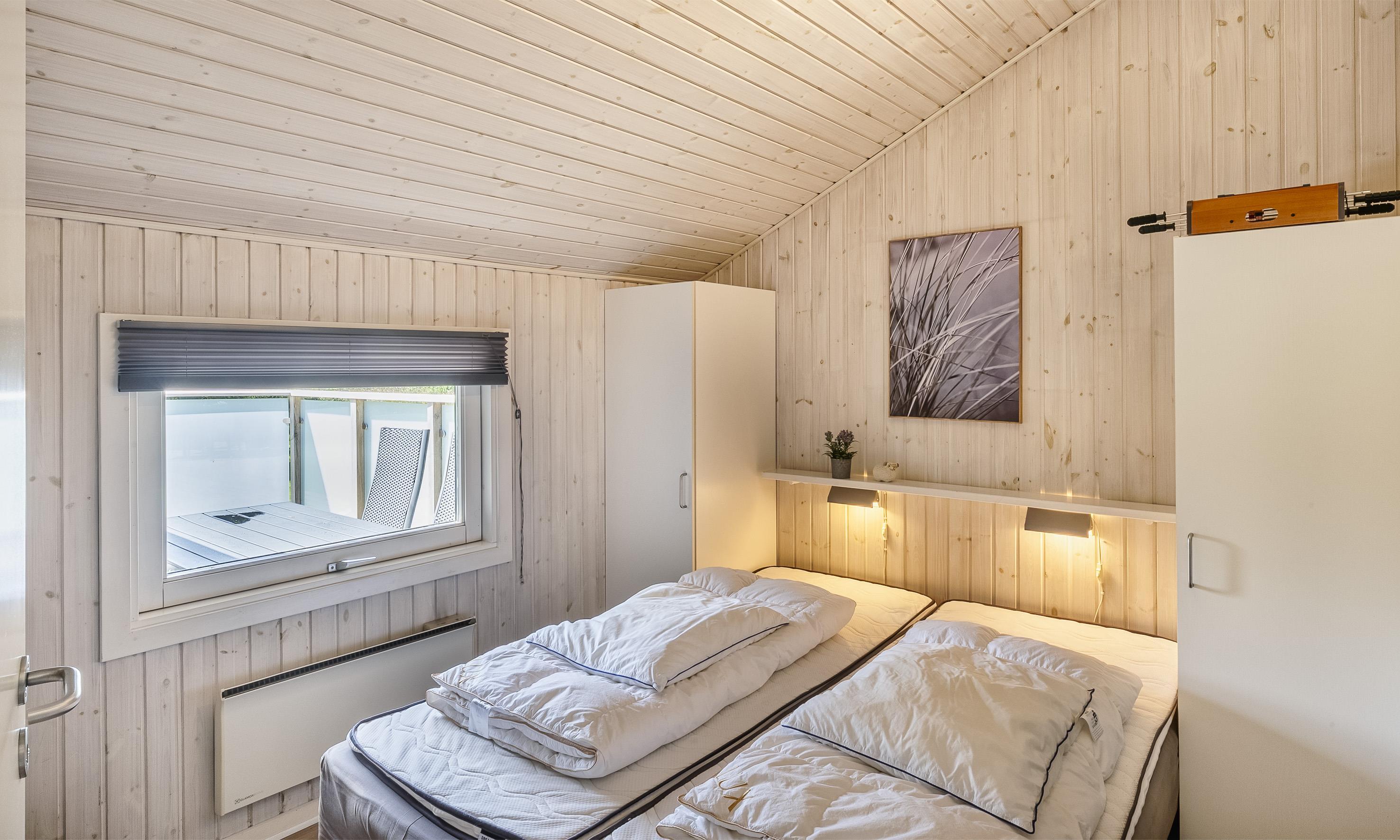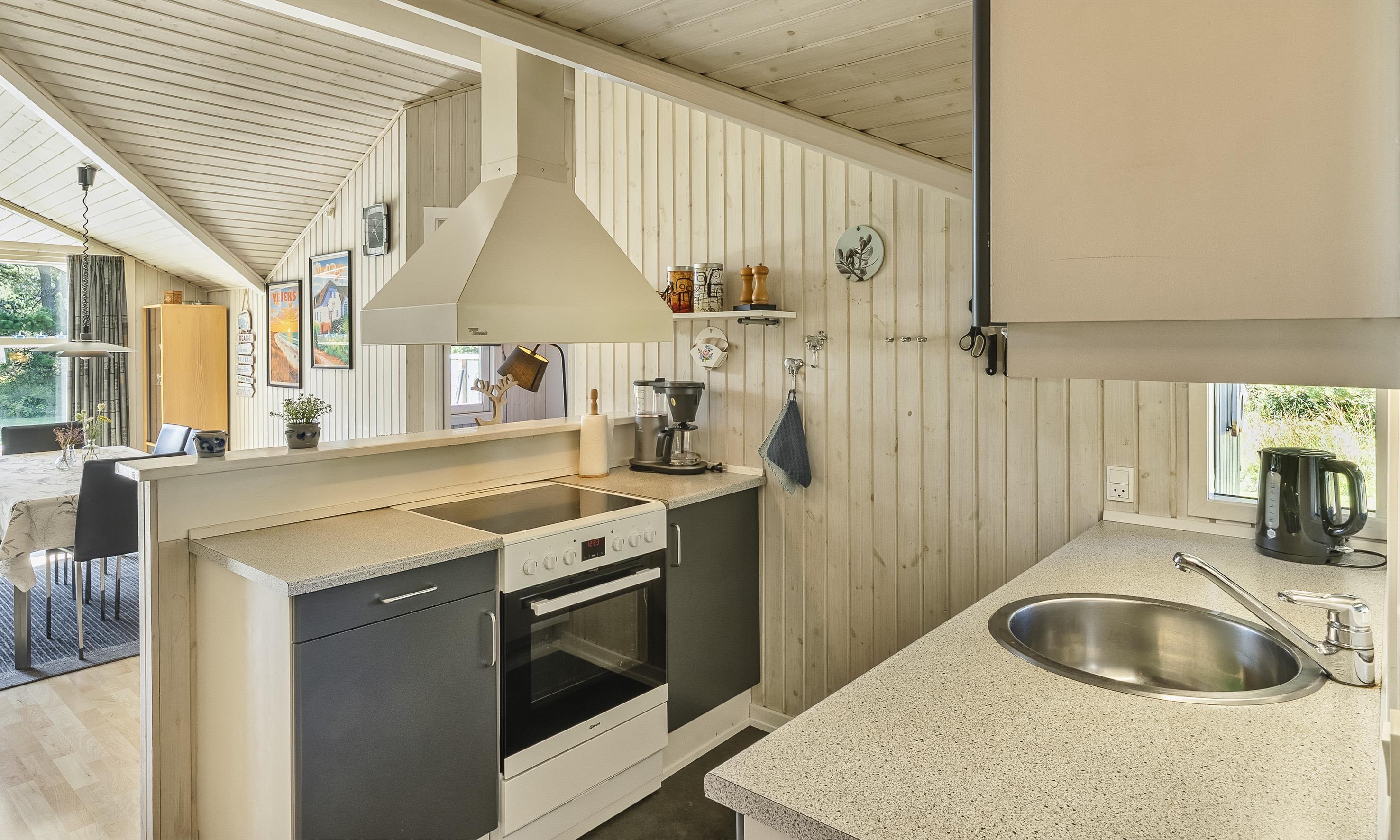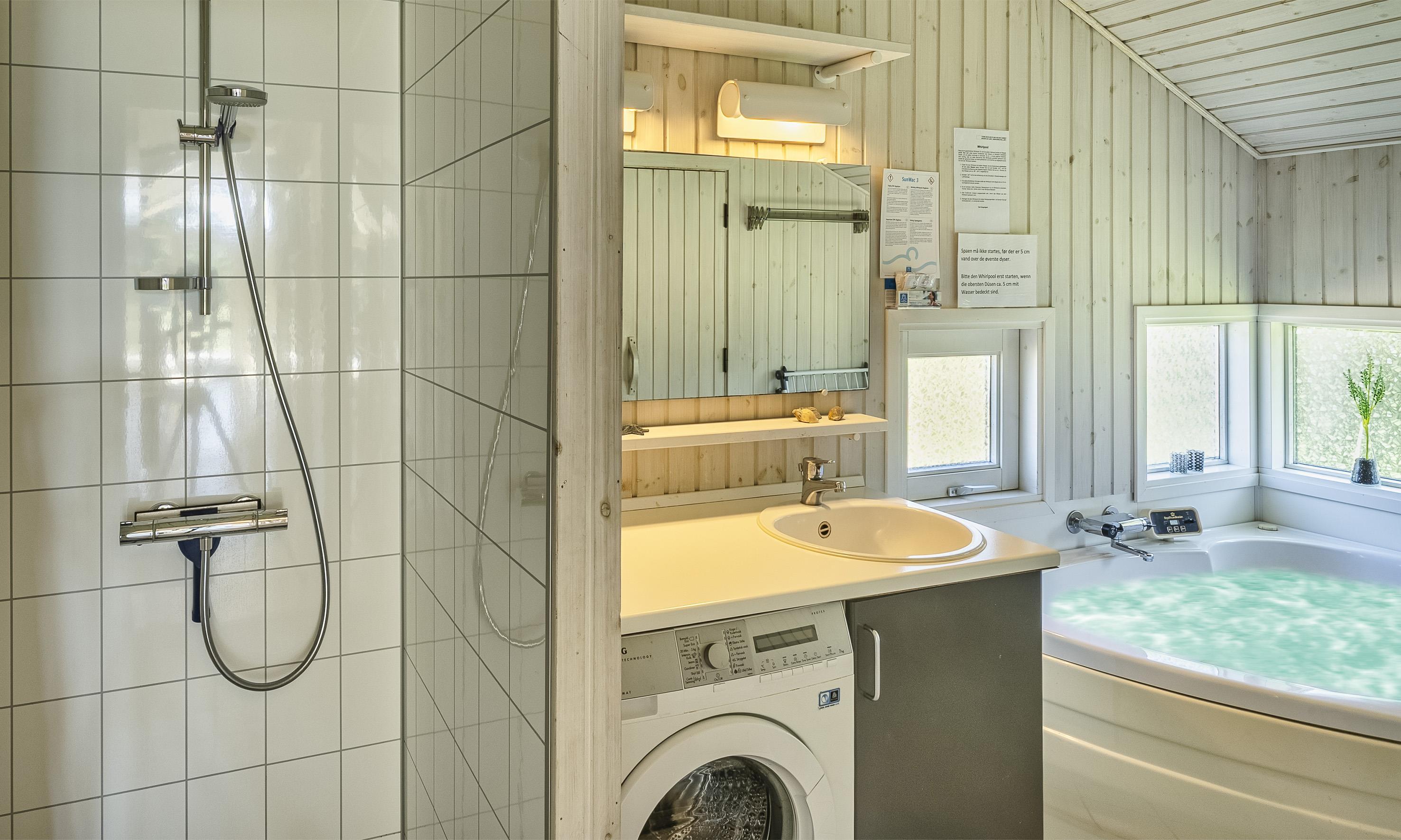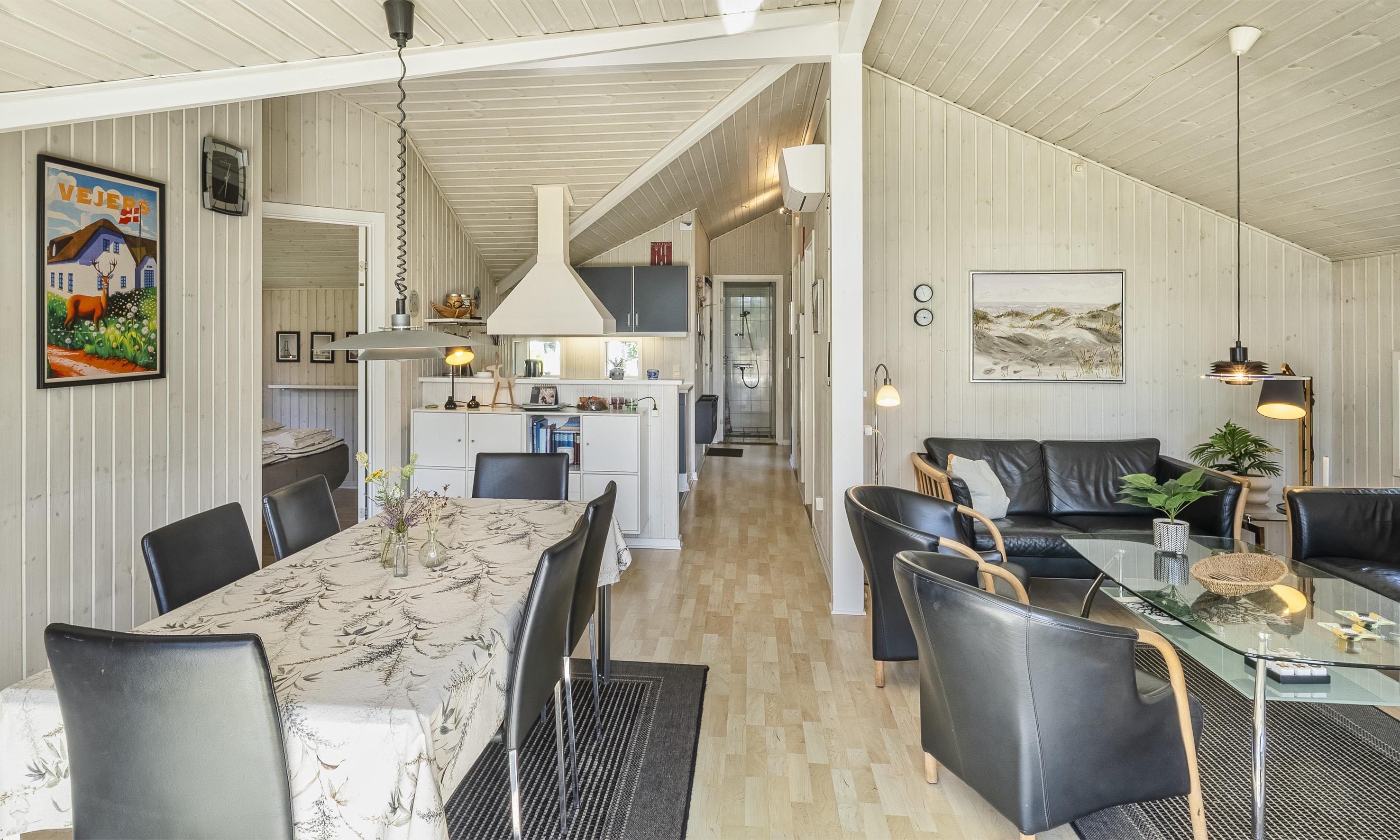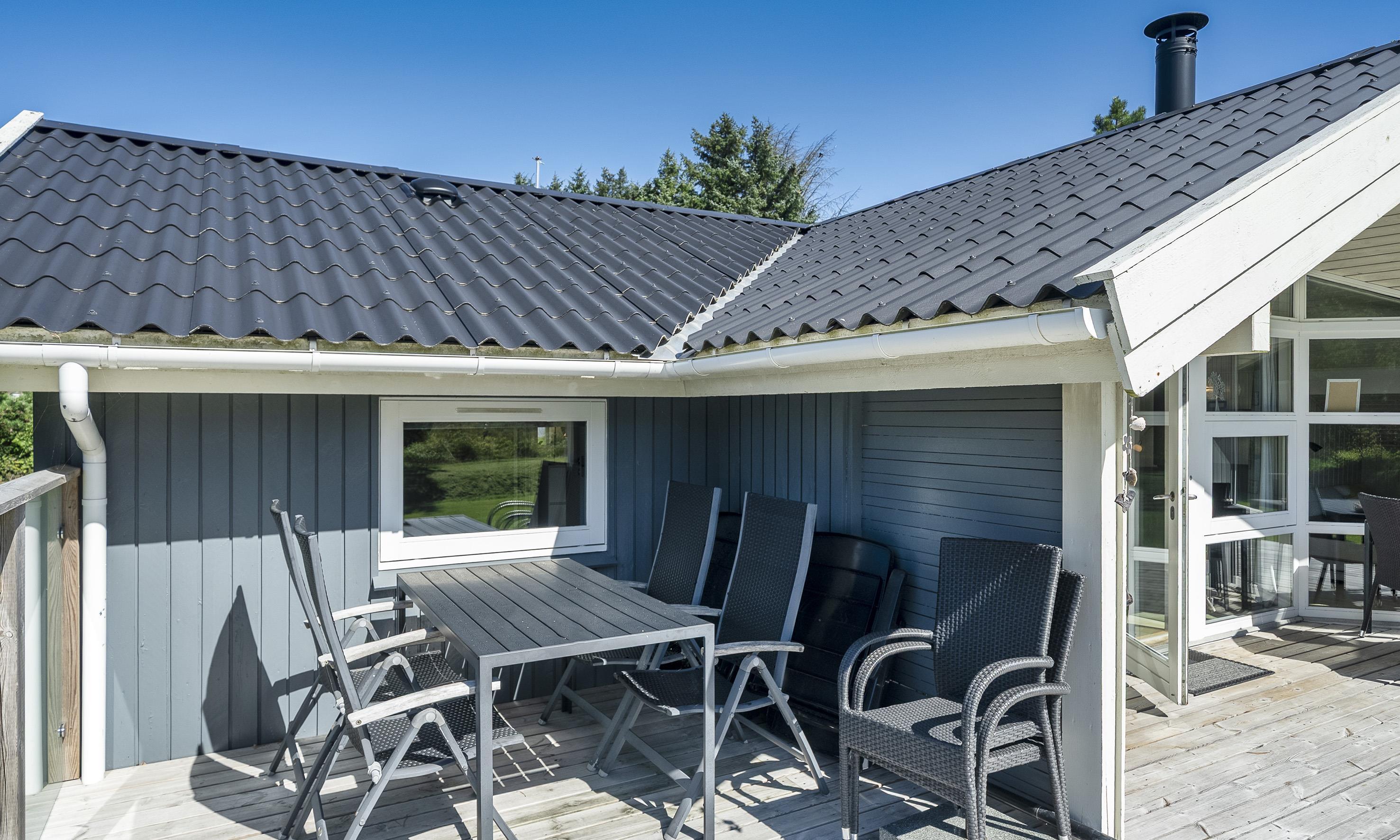 Hell und freundlich ausgestattetes Ferienhaus auf einem großen Rasengrundstück. Das Ferienhaus ist für 6 Personen ausgestattet. Der Strand ist ca. 1 Km vom Haus entfernt. Der Wohn- und Essbereich ist modern eingerichtet und farblich toll abgestimmt. Es stehen gemütliche Sitzmöbel zur Verfügung. Im Wohnbereich ist der Kamin aufgestellt. Das deutsche Fernsehprogramm empfangen Sie über eine Parabolantenne. Es befindet sich eine Warmepumpe im Ferienhaus. Mit dieser Warmepumpe haben sie die Möglichkeit die Stromkosten zu senken, denn die Warmepumpe ist energiesparend. Ein im Wohnbereich befindlicher Alkoven bietet Ihnen eine Möglichkeit sich zurück zuziehen und zu entspannen oder auch Ihr spannendes Buch zu lesen. Die Küche ist zum Wohn- und Essbereich offen gehalten und verfügt über einen Herd mit Cerankochfeld, einem Backofen, einer Geschirrspülmaschine, einer Mikrowelle und einer Kühl- und Gefrierkombination. Es stehen Ihnen ein großes Badezimmer und ein weiteres Gästebad zur Verfügung. Das große Badezimmer ist mit einem WC, einem Handwaschbecken, einer Dusche, einer Sauna und einem Whirlpool ausgestattet. Die Waschmaschine befindet sich in dem großen Badezimmer. Das Gästebad verfügt über ein WC, ein Handwaschbecken und eine Dusche. Insgesamt befinden sich drei Schlafzimmer im Ferienhaus: DB + DB + 2B. Zwei der Schlafzimmer sind mit je einem Doppelbett ausgestattet und das Dritte verfügt über zwei Einzelbetten. Das Ferienhaus verfügt über einen Internetanschluss (W-Lan 200mbit). Auf der Holzterrasse ist genügend Platz um Ihren Kaffee zu geniessen, ein Sonnenbad zu nehmen oder auch Ihren hyggeligen Grillabend zu gestalten. Für die kleinen Gäste steht ein Schaukelstativ auf dem Grundstück bereit sowie eine Sandkiste. Max. ein Haustier ist erlaubt. Rauchen ist nicht erlaubt. Das Ferienhaus wurde 1994 erbaut. Für dieses Ferienhaus entstehen Zusatzkosten für den Wasserverbrauch.