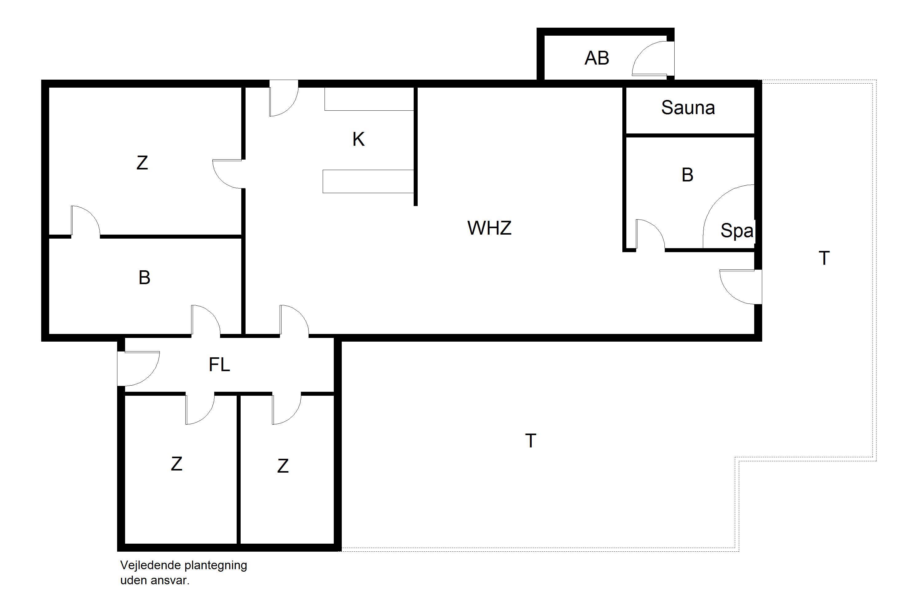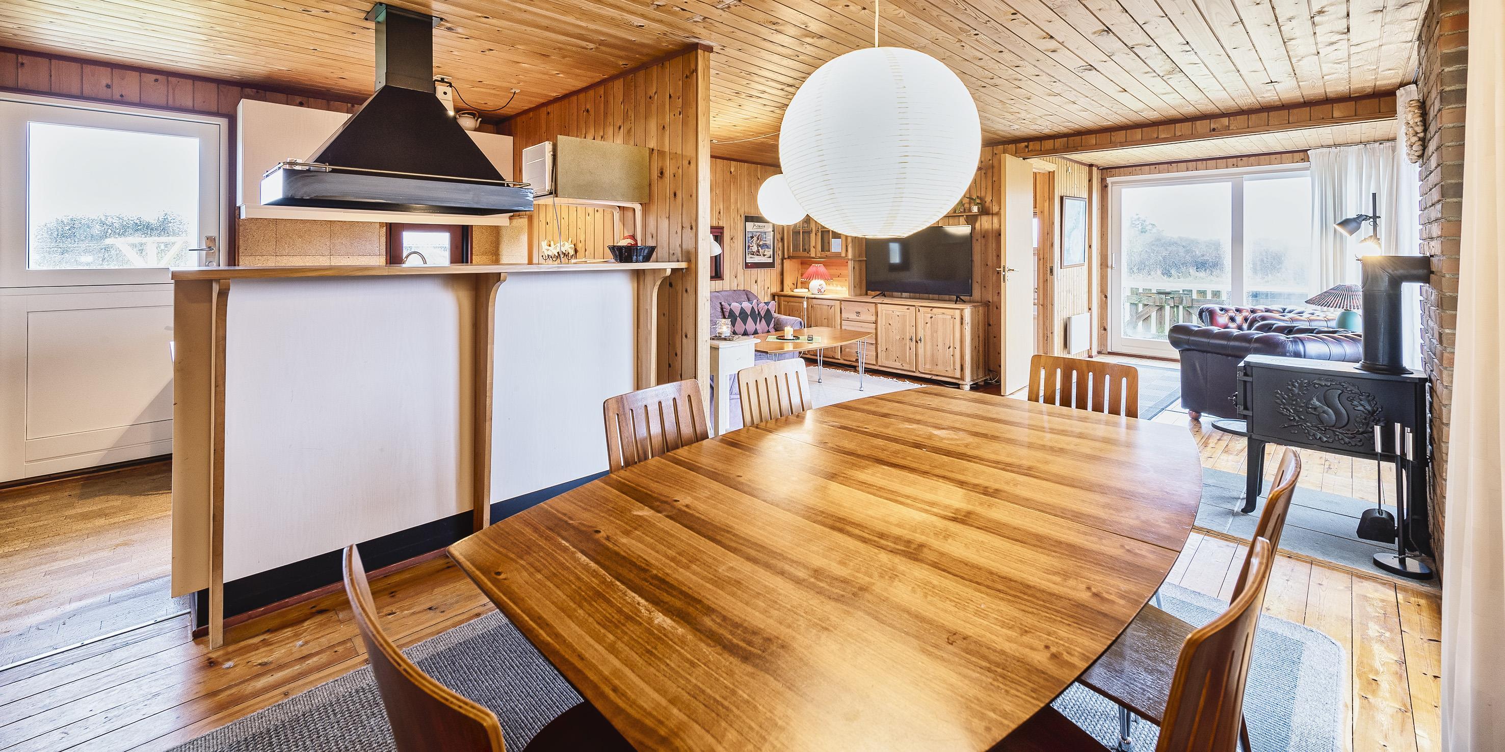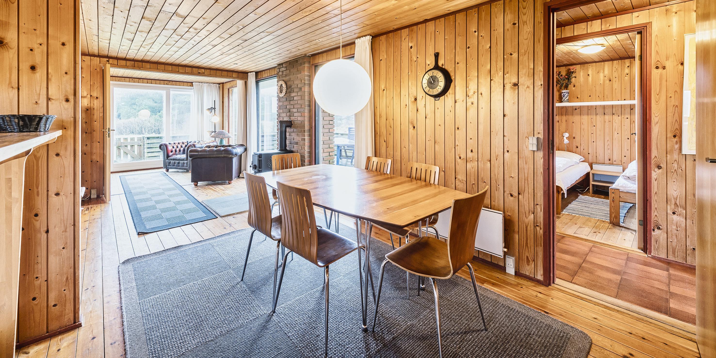 Einfaches Holzferienhaus auf einem Naturgrund gelegen, für 6 Personen ausgestattet und nur 1 Km vom Strand entfernt. Im gesamten Ferienhaus ist der Fußboden, außer im Küchenbereich und im Bad, mit schönen Dielenboden ausgestattet. Im Wohnzimmer befindet sich eine gemütliche große Rundsitzgarnitur und der Morsø - Kamin. Das deutsche Fernsehprogramm empfangen Sie über eine Parabolantenne. Die offene Küche ist mit einem Herd mit Platten, einem Backofen ausgestattet und hat eine Mikrowelle und einen Kühlschrank. Das Badezimmer ist mit einem Handwaschbecken, einer Dusche, einer Sauna und einem Whirlpool ausgestattet. Genügend Ablagefläche für Ihre Badutensilen ist vorhanden. Gästetoilette mit WC und Waschmaschine. Es gibt insgesamt drei Schlafzimmer: DB + 2B + 2B. Der Terrassenbereich ist geschlossen und ideal für Feriengäste mit Haustieren. Hier kann Ihr Vierbeiner mal Luft schnappen ohne das der Hund gleich stiften geht. Auf dem Grundstück befindet sich ein Schaukelstativ und eine Sandkiste für die kleinen Gäste. Das Ferienhaus verfügt über einen Internetanschluss (W-Lan). Es sind max. drei Haustiere erlaubt. Das Rauchen ist nicht gestattet. Das Ferienhaus wurde in 1984 erbaut und in 1995 renoviert.