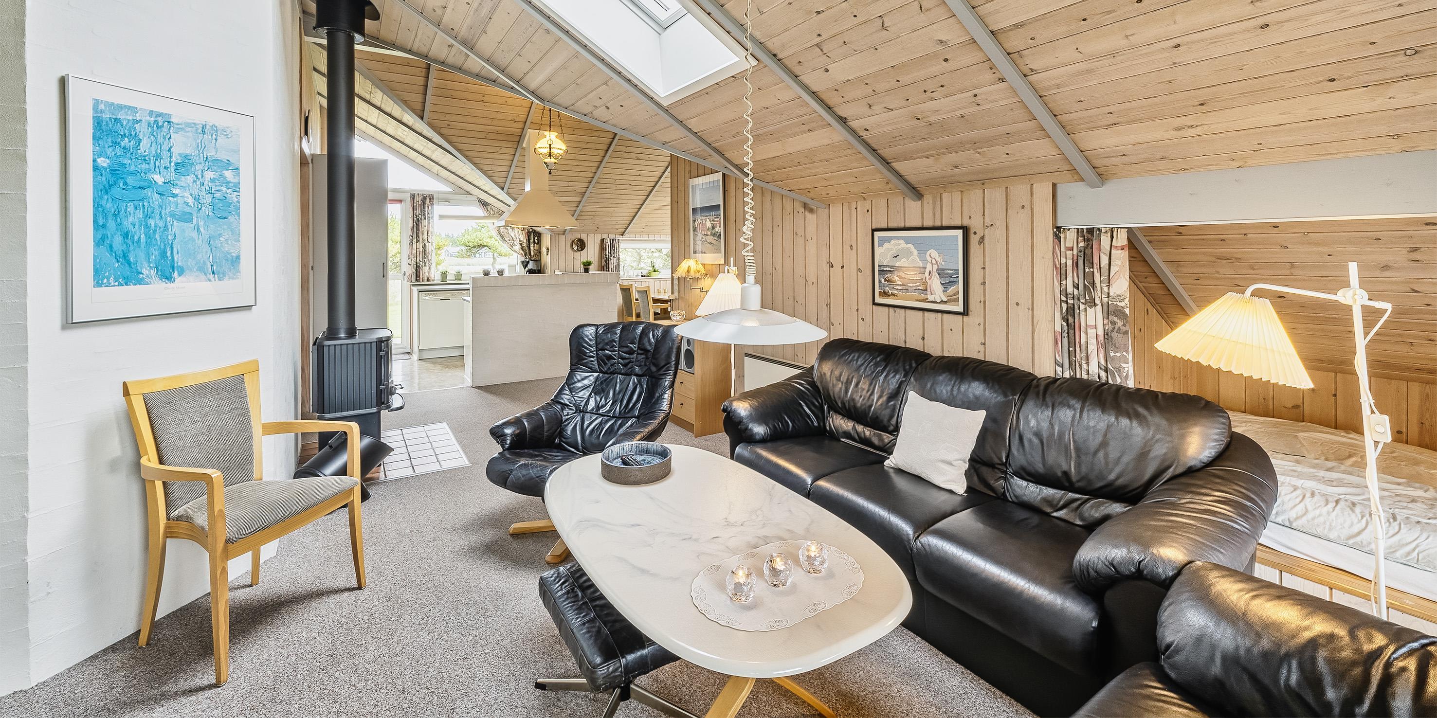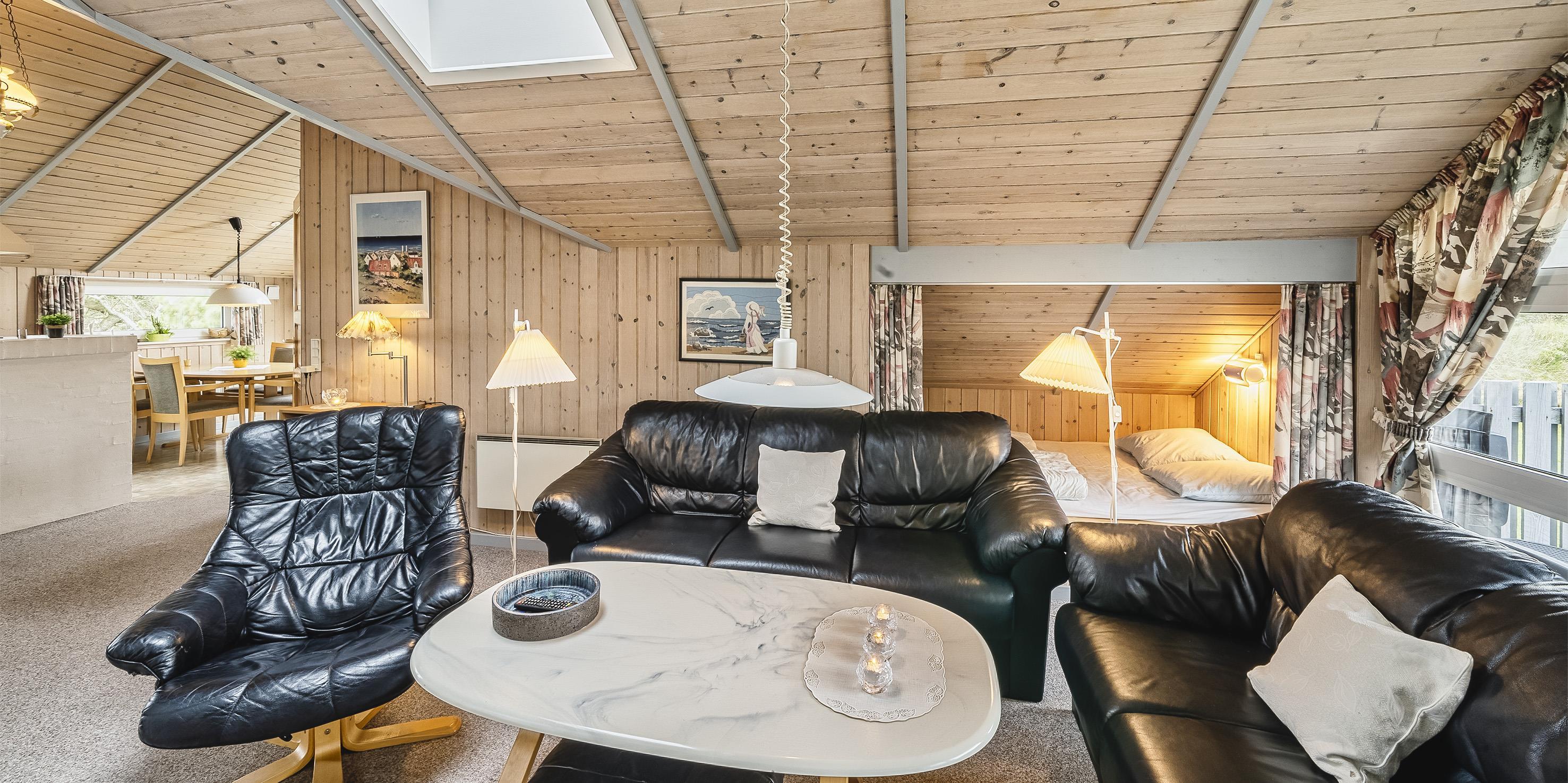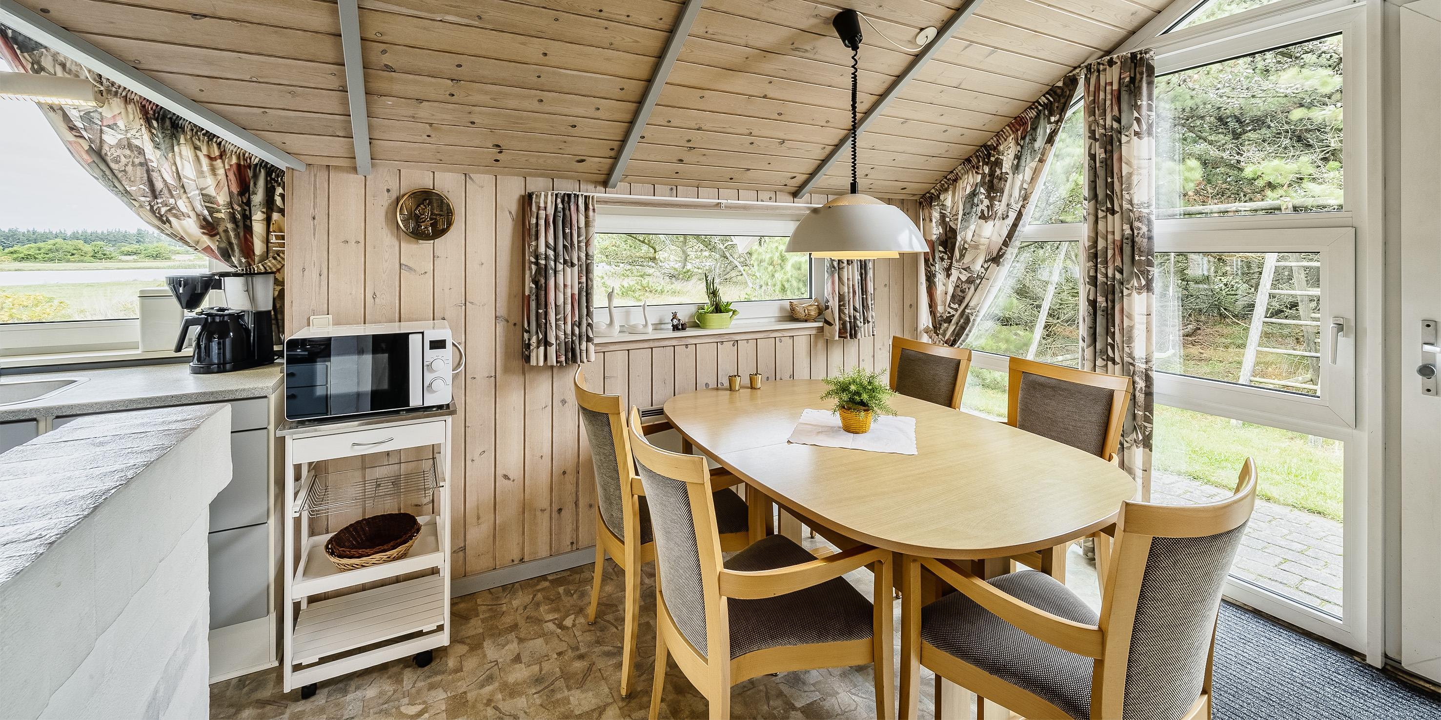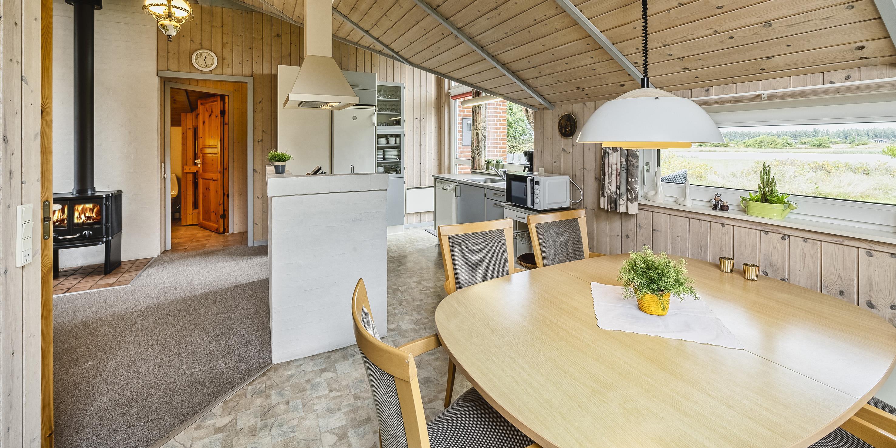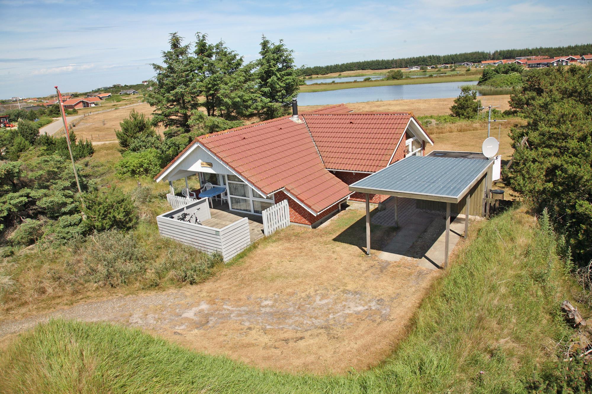 Nett eingerichtetes Ferienhaus mit Namen ”Bel Tempo” auf einem naturbelassenem Grundstück mit Blick auf einen See im Jafdalsvej gelegen. Das Ferienhaus ist für 4 bis 6 Personen ausgestattet. Der Strand ist ca. 1 Km vom Ferienhaus entfernt. Das Wohnzimmer hat eine gemütliche Ledergarnitur und einen Kamin. Hinter der Sitzgarnitur befindet sich ein Alkoven. Hier haben 2 Personen einen weiteren Schlafplatz. Der Alkoven kann mit eine Gardine zugezogen werden. Das deutsche Fernsehprogramm empfangen Sie über eine Parabolantenne. Der Küchenbereich ist offen zum Speiseplatz. Über dem Abwaschbecken ist ein großes Fenster und daneben eine Terrassentür. Dadurch kommt viel Licht in den Küchenbereich. Die Küche ist ausgestattet mit einem Herd mit Cerankochfeld, einem Backofen, einer Geschirrspülmaschine und einem Kühlschrank. Das Badezimmer hat ein WC, ein Handwaschbecken, eine Dusche, eine Sauna und einen Whirlpool. Desweiteren ist hier ein Waschmaschine und ein Trockner untergebracht. Insgesamt stehen den Gästen zwei Schlafzimmer zur Verfügung: DB + DB. Beide sind mit je einem Doppelbett ausgestattet. Ein Terrassenbereich am Ferienhaus gibt Ihnen Platz für ein Sonnenbad oder auch einfach nur um Ihren Kaffee zu geniessen. Für Ihr Fahrzeug ist ein Carport auf dem Grundstück aufgestellt. Es sind keine Haustiere erlaubt. Das Rauchen ist nicht gestattet. Das Ferienhaus ist 1996 erbaut worden.