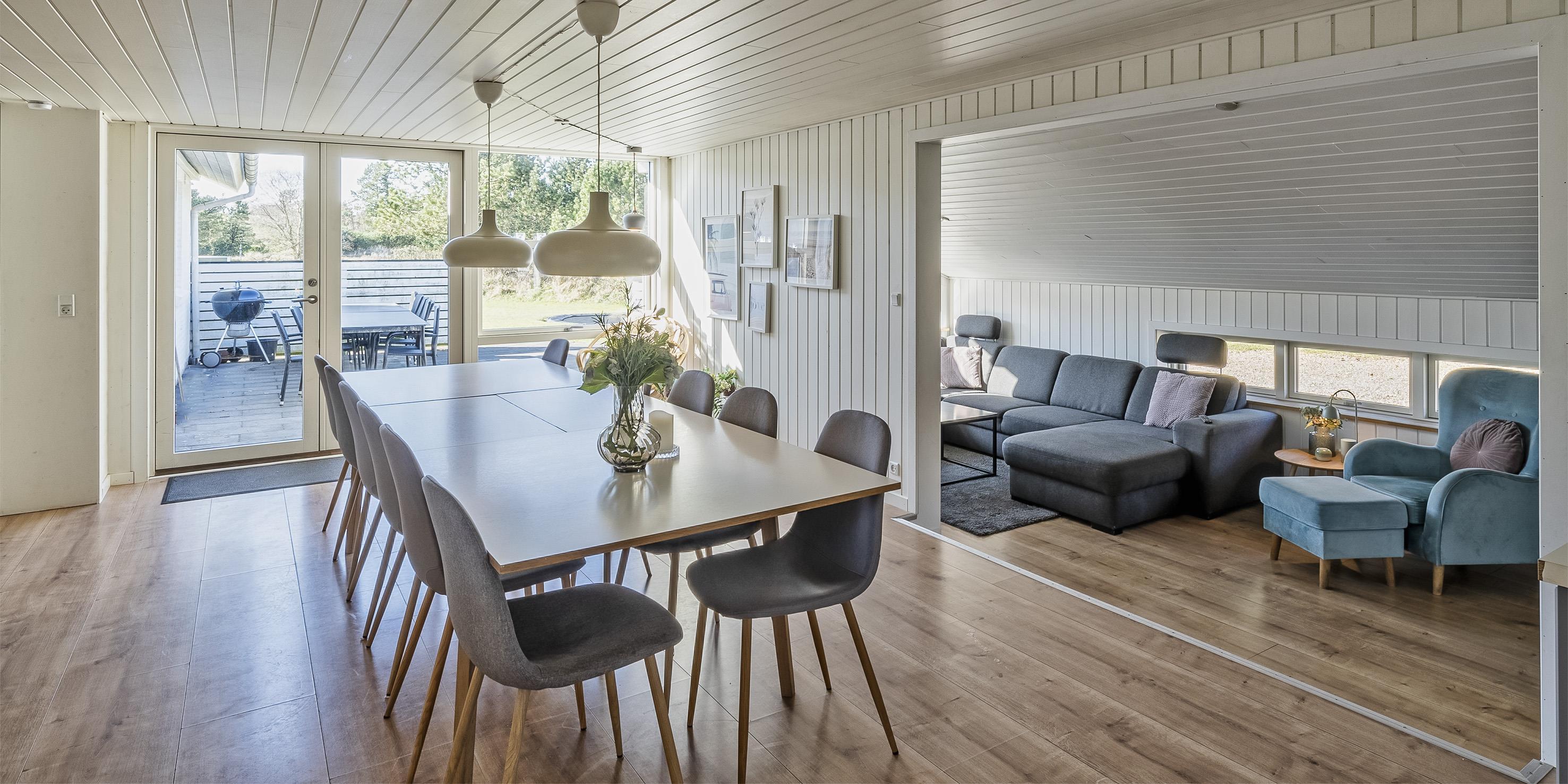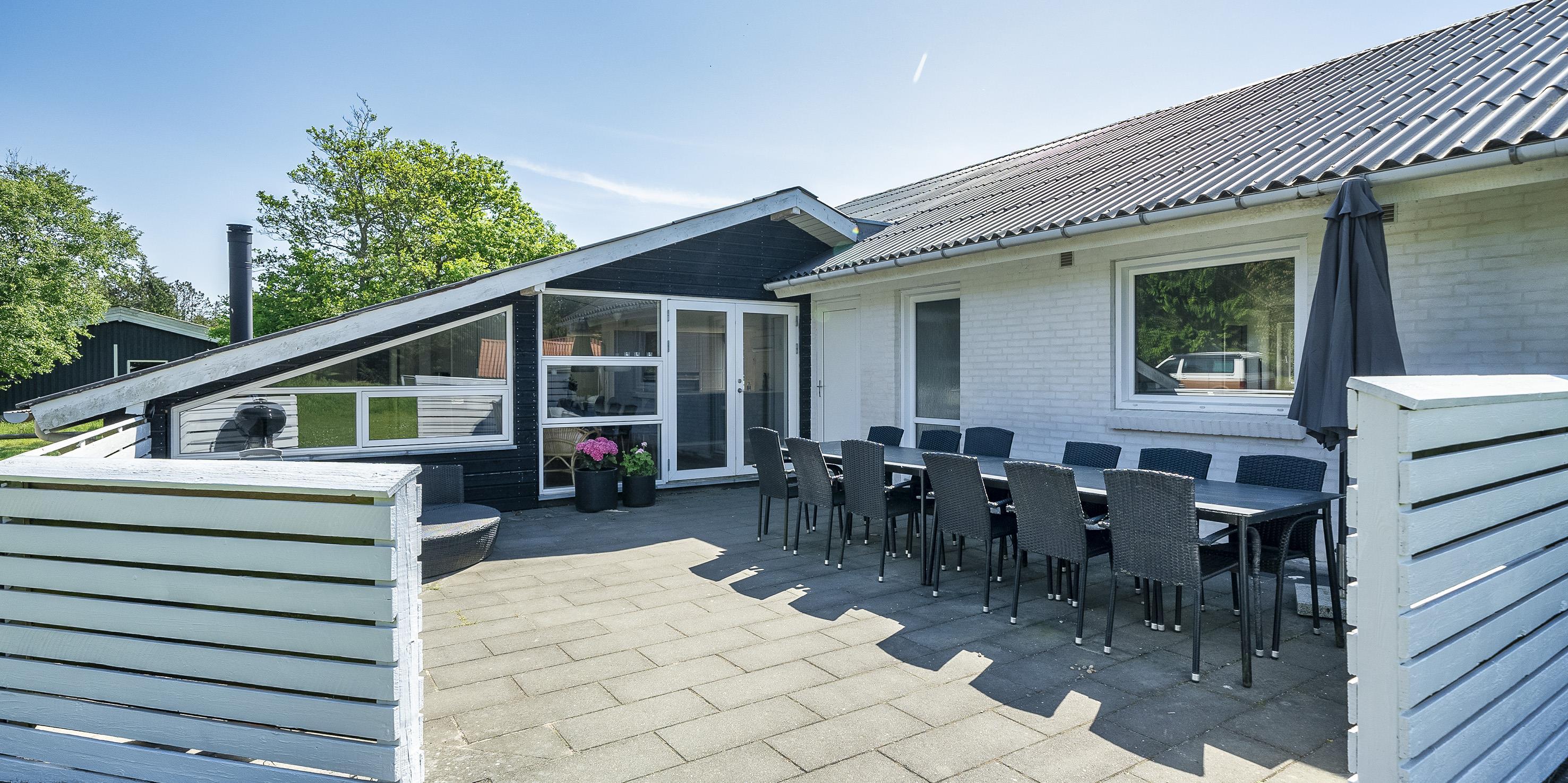 Das Ferienhaus liegt auf einem schönen Naturgrundstück und der Strand ist nur ca. 1200 Meter vom Haus entfernt. Das Ferienhaus bietet Platz für insgesamt 12 Personen. Das Haus hat eine Wohnfläche von ca. 205 m² mit einer angenehmen Atmosphäre für Gross und Klein das ganze Jahr über.
