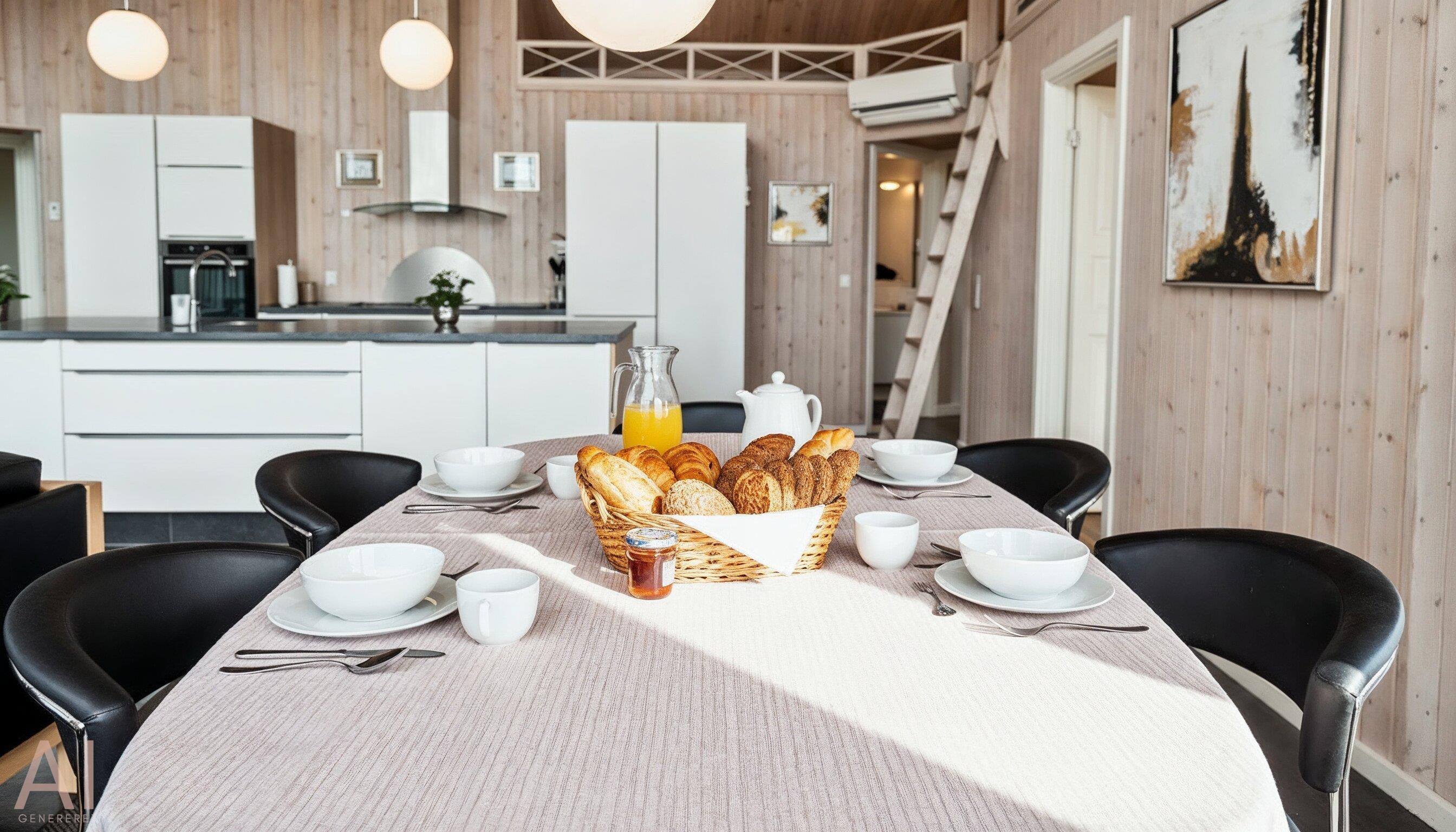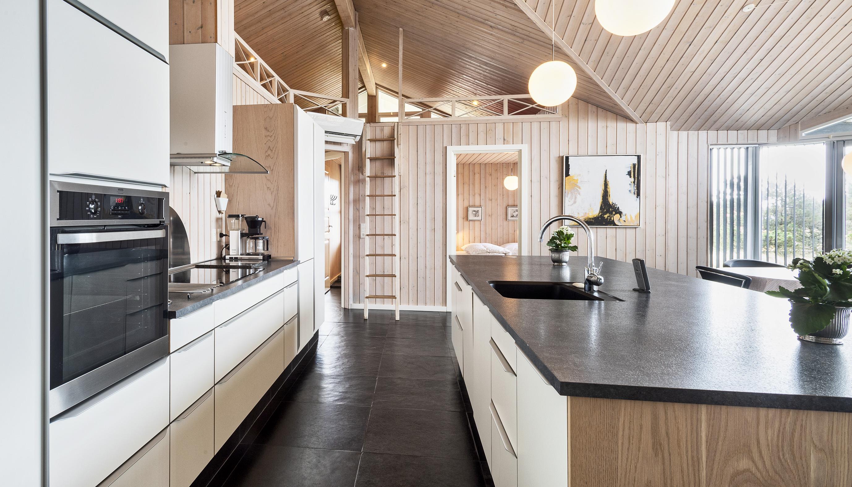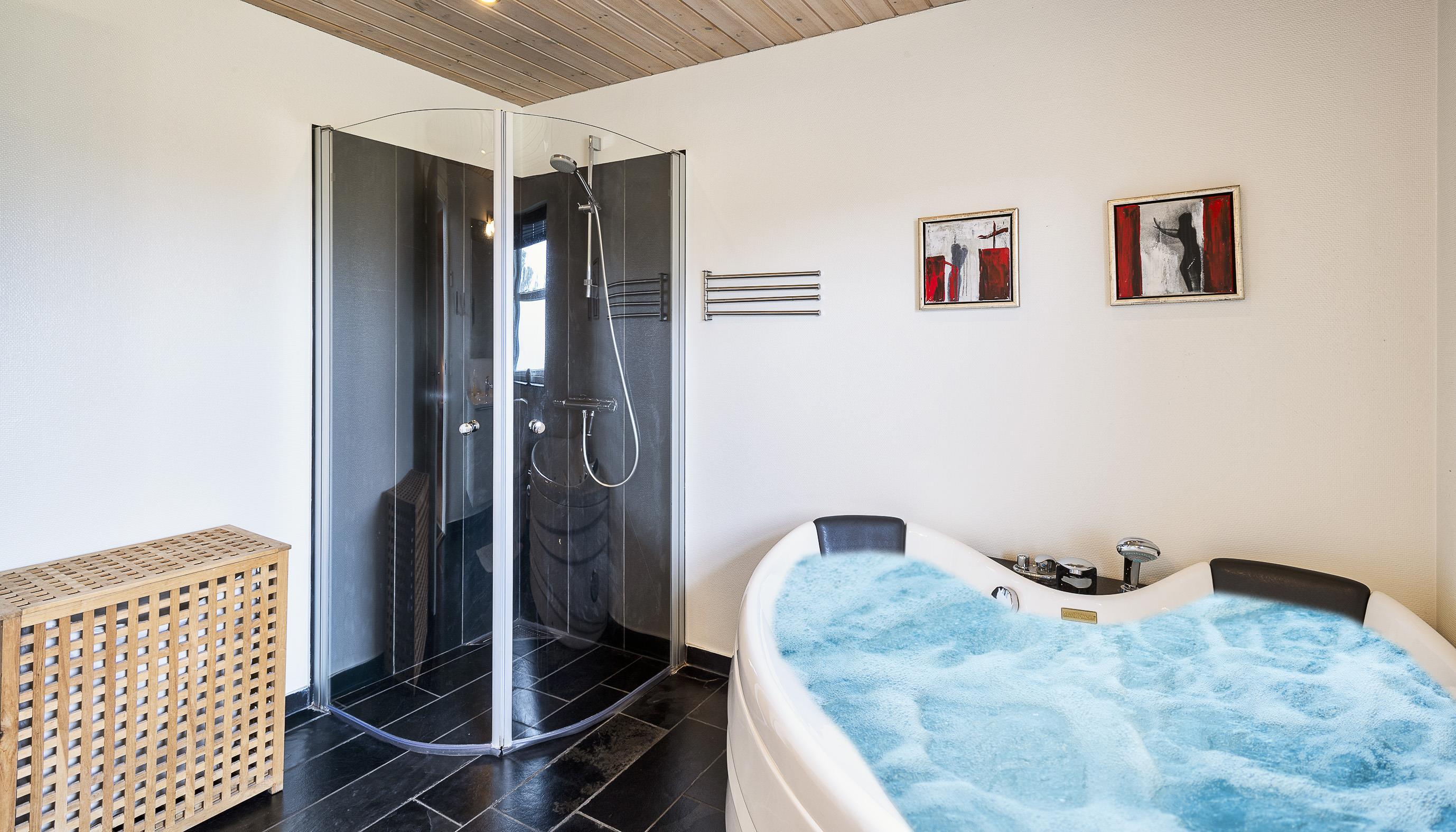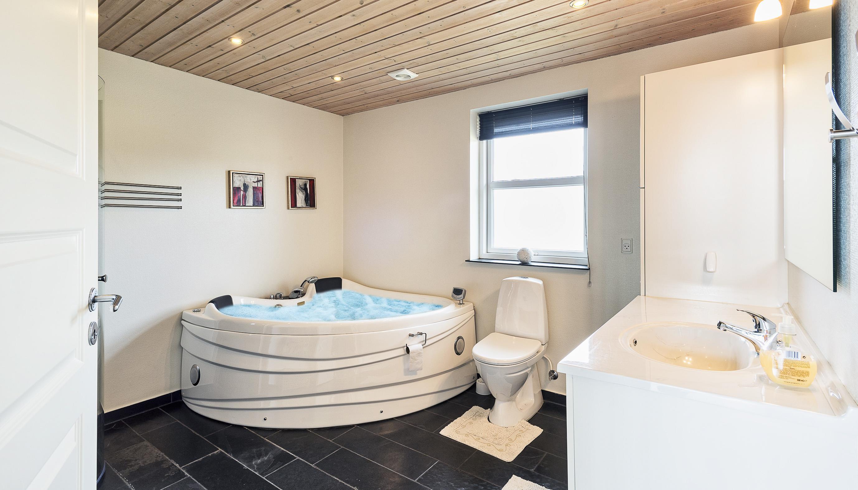 Ein Ferienhaus der Extraklasse für 6 Personen auf dem oberen Teil des Grundstückes gelegen. Dies ist ein Niedrigenergiesparhaus aufgrund der Luft-Wasser-Wärmepumpe. Wenn Sie mit einem Gläschen Wein auf der Terrasse sitzen, können Sie sogar das Rauschen des Meeres hören, denn der Strand ist nur 400 Meter vom Haus entfernt. Alle Räumlichkeiten sind mit Fliesen ausgestattet, bis auf die Schlafzimmer, die sind mit einem schönen hellem Laminatboden ausgelegt. Das Wohnzimmer verfügt über einen Kamin. Mit der Wärmepumpe senken sich die Stromkosten, da die Heizung mit der Wärmepumpe energiesparend ist. Das deutsche Fernsehprogramm empfangen Sie über Stofa, daher können Sie nur 5-8 deutsche Kanäle empfangen. Auf dem Hems befindet sich ein weiteres TV-Gerät, wobei Sie die Möglichkeit haben über das Internet deutsche Fernsehprogramme empfangen können.Die Wohnküche ist offen und der große Tresen lädt zum kochen ein. Weiterhin befindet sich ein Herd mit Cerankochfeld, ein Backofen in Arbeitshöhe eine Geschirrspülmaschine, eine Mikrowelle und eine Kühl- und Gefrierkombination ( 2 Schubladen im Gefrierschrank). Das grosse Badezimmer beim Eingangsbereich ist mit einem WC, einer Dusche, einem Handwaschbecken und einem Whirlpool ausgestattet. Das Gästebad im hinteren Bereich hat ebenfalls ein WC, eine Dusche und ein Handwaschbecken. Drei Schlafzimmer: DB + DB + DB. Auf dem kleinen Hems können sie z.B. mit einem Buch gut relaxen. Auf dem Grundstück befindet sich ein Schaukelstativ und eine Sandkiste ist auch vorhanden. Die Waschmaschine und der Trockner befinden sich im Hauswirtschaftsraum direkt neben dem Eingang. Das Rauchen ist nicht erlaubt. Es sind keine Haustiere erlaubt. Das Ferienhaus verfügt über einen Internetanschluss (W-Lan). Für dieses Haus fallen extra Wasserkosten an. Das Ferienhaus ist 2008 erbaut.
