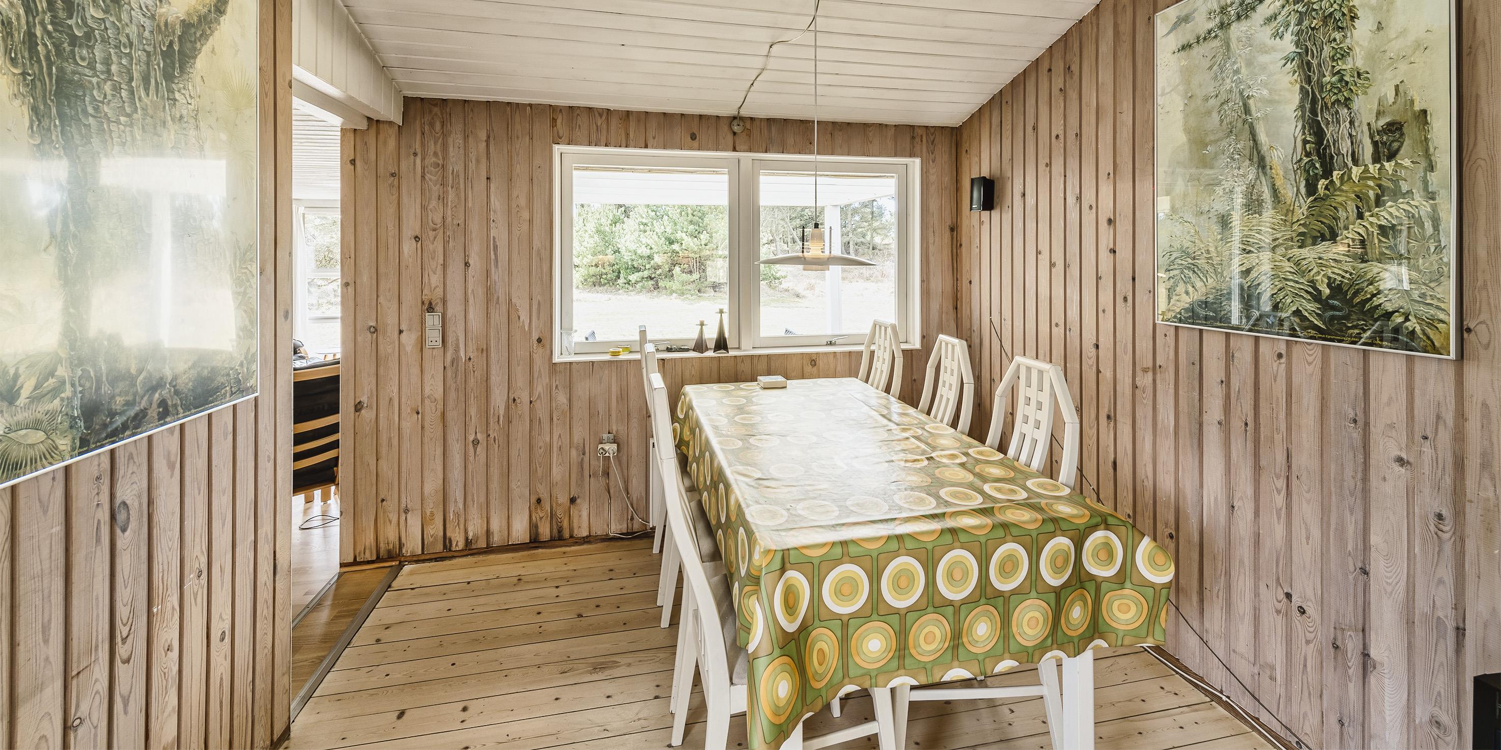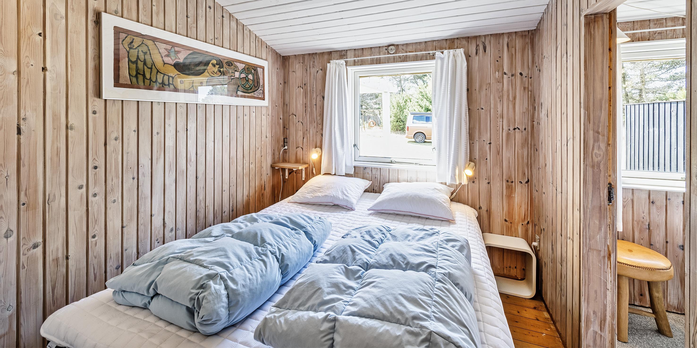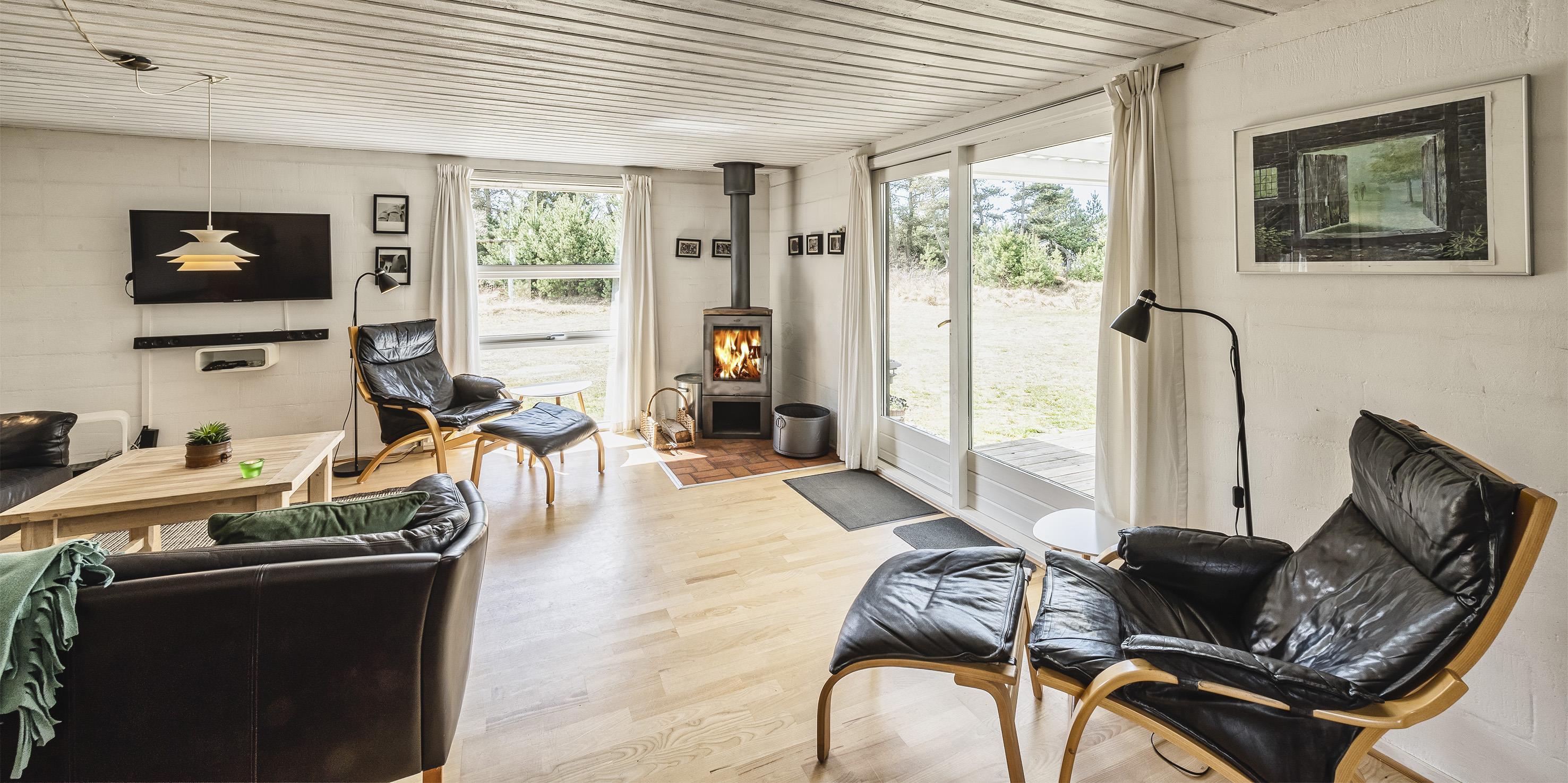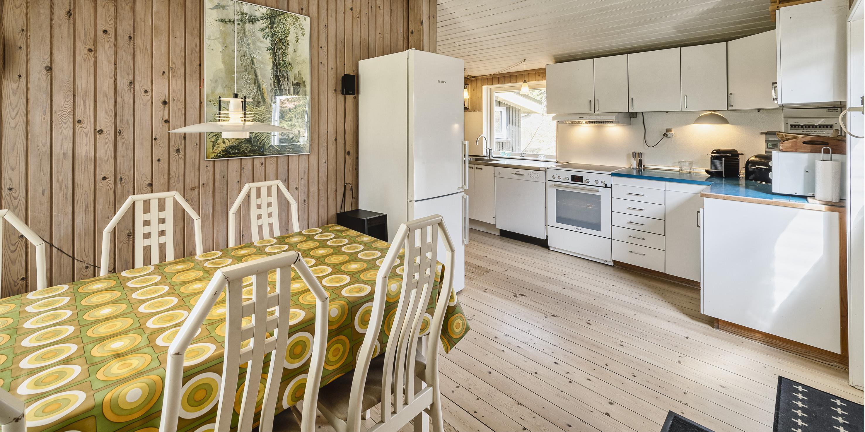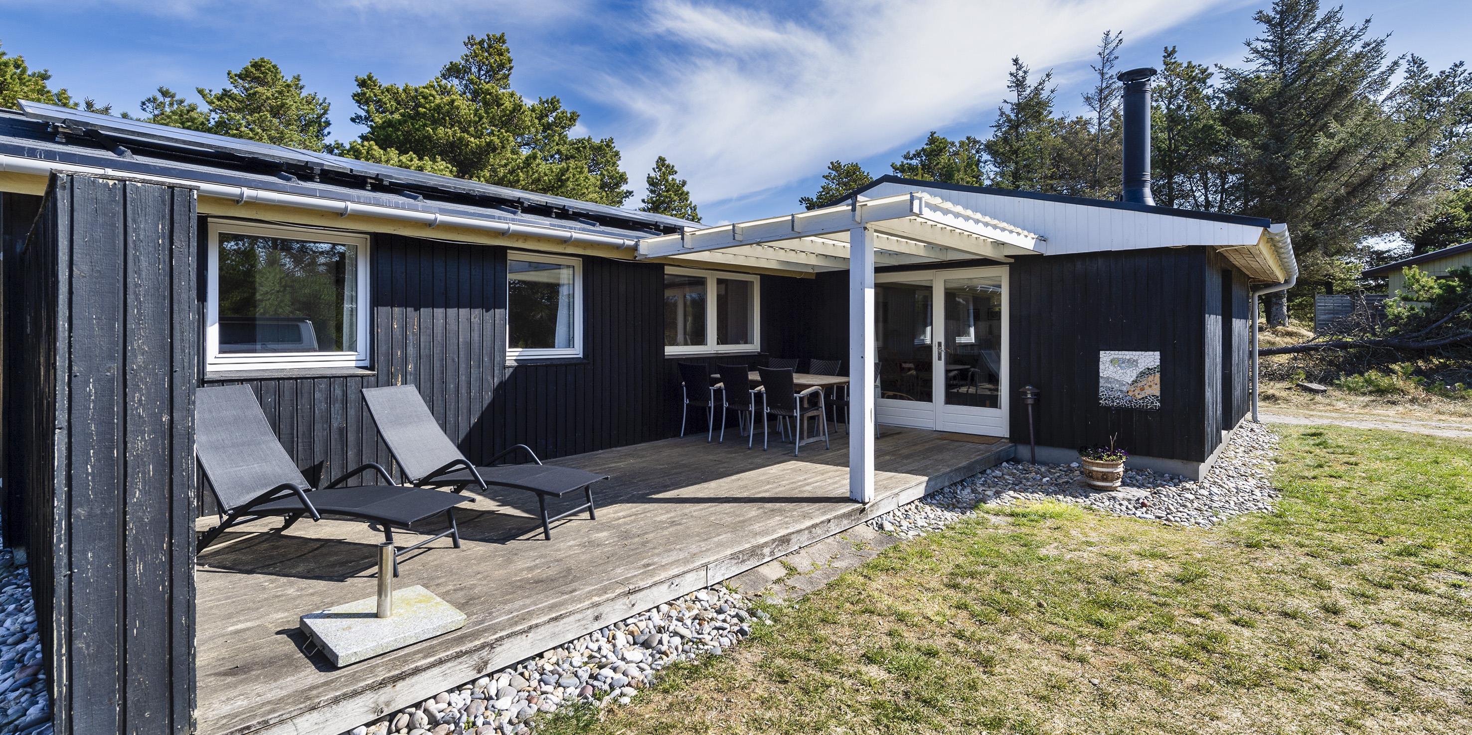 Einfaches Ferienhaus auf einem Naturgrundstück gelegen und nur ca. 800 Meter vom Strand entfernt. Das Ferienhaus ist für 5 Personen ausgestattet. Der Wohn- und Essreich ist hell und freundlich von der Ausstattung her. Ein Kamin ist im Wohnbereich aufgestellt. Im Wohnbereich ist ein kleiner extra Sitzplatz aufgestellt, der zum Spielen und Malen genügend Platz bietet, oder auch einfach um Ihre Postkarten zu schreiben. Es befindet sich eine Warmepumpe im Ferienhaus. Mit dieser Warmepumpe haben sie die Möglichkeit die Stromkosten zu senken, denn die Warmepumpe ist energiesparend. Das Fernsehprogramm empfangen Sie über eine Parabolantenne, Chromecast und einem Soundbar und Bluetooht. Die Küche verfügt über einen Herd mit Cerankochfeld, einer Geschirrspülmaschine, einer Mikrowelle und einer Kühl- und Gefrierkombinationvon 2020. In der offenen Verbindung zur Küche ist der Essbereich. Von hier aus haben Sie einen direkten Blick auf den Garten. Das Badezimmer ist mit einem WC, einem Handwaschbecken und einer Dusche ausgestattet. Das gesamte Badezimmer ist mit einer schrägen Decke ausgestattet und gibt die Masse von 195 cm runter zu 165 cm. Desweiteren ist eine Waschmaschine im Badezimmer untergebracht. Es gibt insgesamt drei Schlafzimmer im Ferienhaus: DB + DB + B + 2B. Das eine verfügt über ein 3/4 Doppelbett (Mass 120 x 200), ein weiteres über ein normales Doppelbett (neu von 2020) und das Dritte hat ein Einzelbett. Desweitere gibt es ein kleine Gästehaus mit zwei einzelbetten das benutzt werden kann, wenn mal Besuch vorbei kommt. Das Ferienhaus verfügt über einen Internetanschluss(W-Lan). Ein großer Terrassenbereich steht den Gästen zur Verfügung, wobei sogar ein kleiner Teil überdacht ist. Es sind keine Haustiere erlaubt, mit Ausnahme ein kleiner Hund mit max. Rückenhöhe von 30 cm. Rauchen und Katze ist nicht erlaubt! Das Ferienhaus ist in 1959 erbaut worden und es wurde laufend renoviert. Einige Möbelstücke sind auch ausgetauscht worden, wie z.B. die Kühl- und Gefireiikombination, das Sofa in der Stube und das Bett im grossen Schlafzimmer. Auch die Gartenmöbel sind erneuert worden. Das ganze Ferienhaus ist ein bisschen aufgefrischt worden. Für dieses Ferienhaus entstehen Zusatzkosten für den Wasserverbrauch.