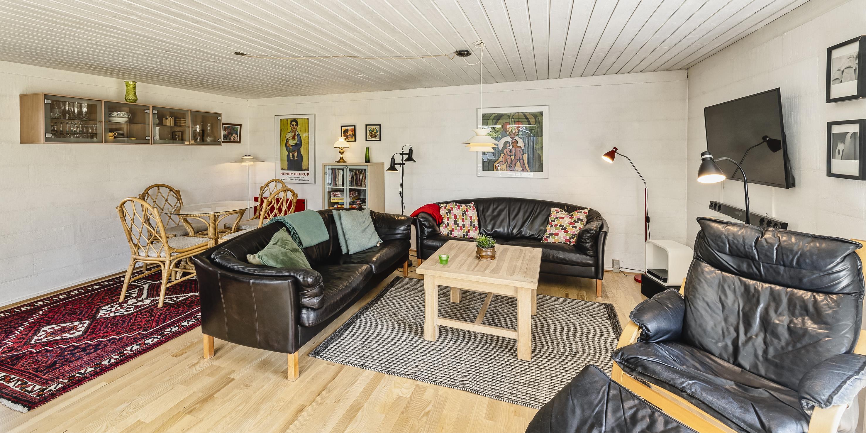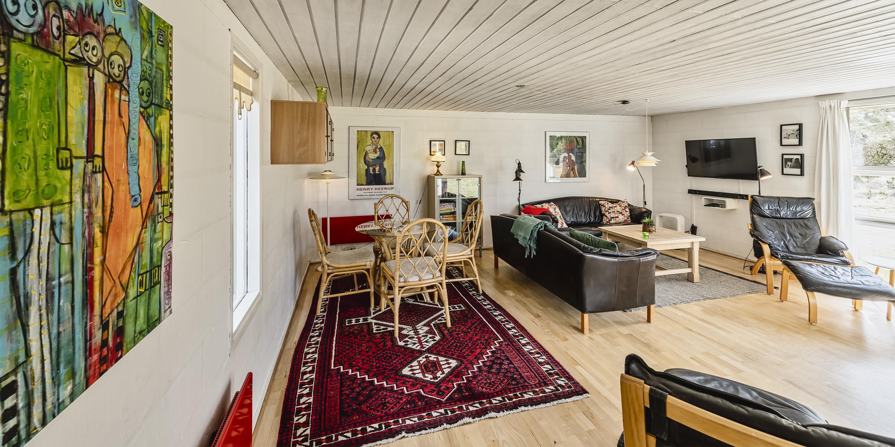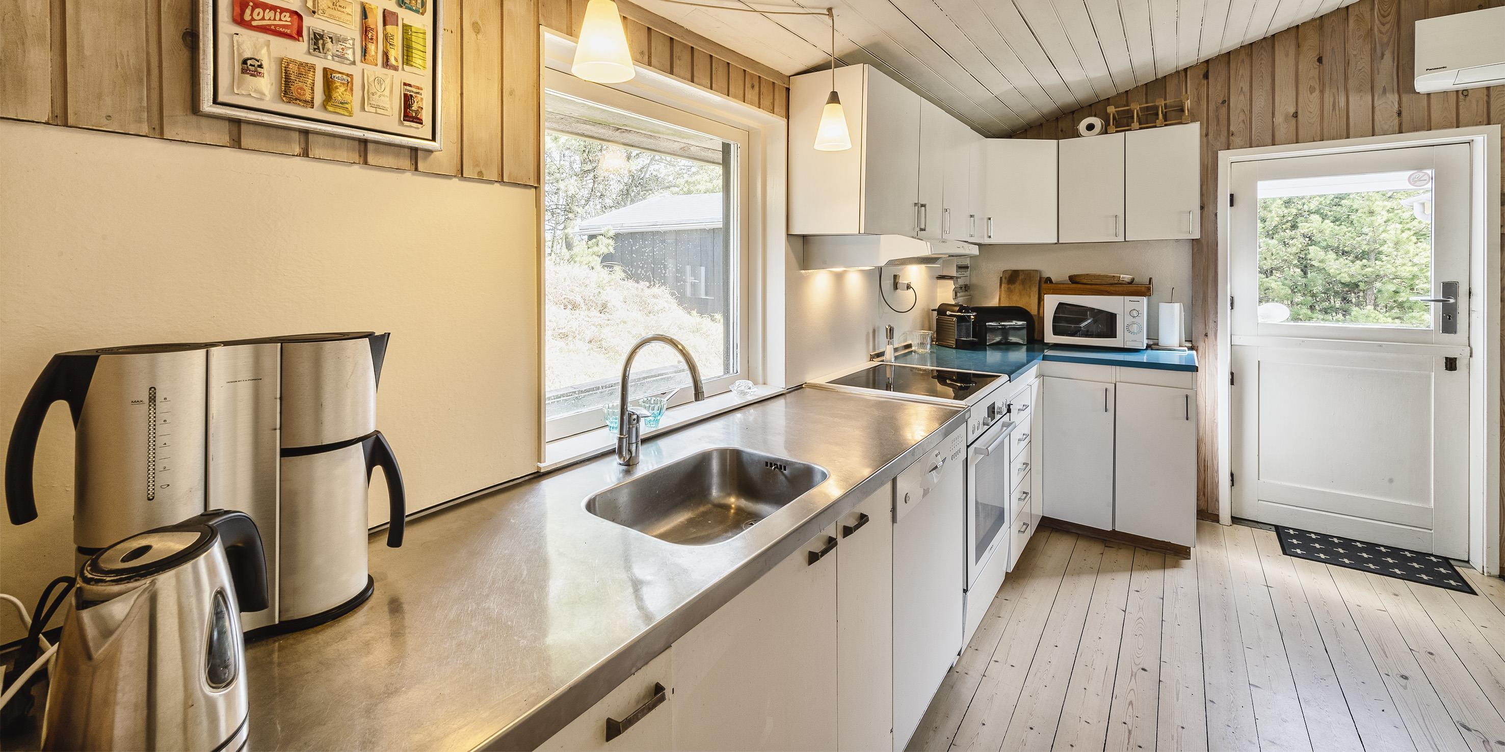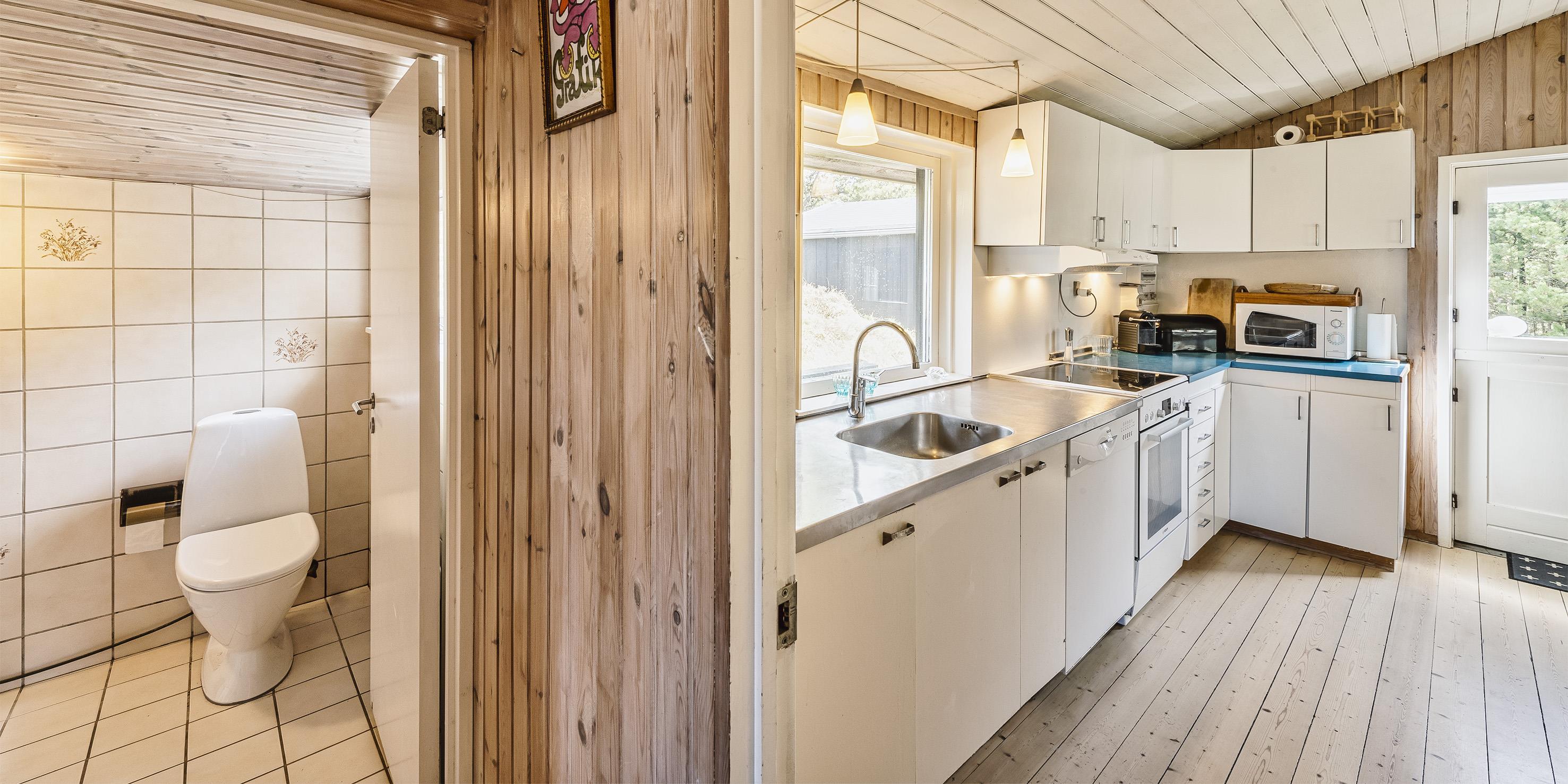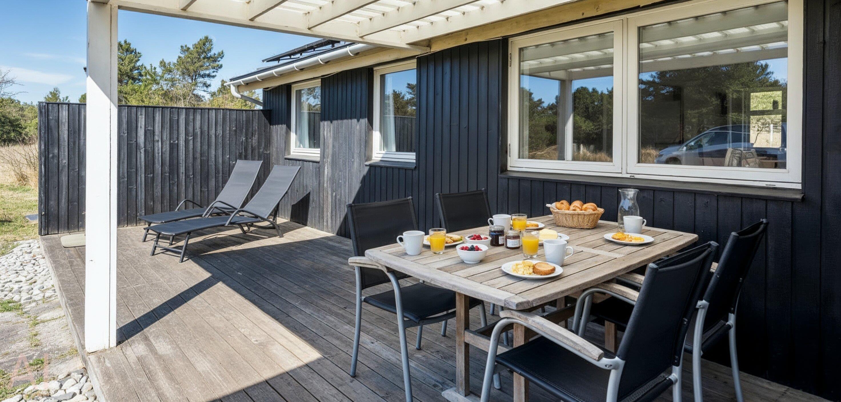 Einfaches Ferienhaus auf einem Naturgrundstück gelegen und nur ca. 800 Meter vom Strand entfernt. Das Ferienhaus ist für 5 Personen ausgestattet. Der Wohn- und Essreich ist hell und freundlich von der Ausstattung her. Ein Kamin ist im Wohnbereich aufgestellt. Im Wohnbereich ist ein kleiner extra Sitzplatz aufgestellt, der zum Spielen und Malen genügend Platz bietet, oder auch einfach um Ihre Postkarten zu schreiben. Es befindet sich eine Warmepumpe im Ferienhaus. Mit dieser Warmepumpe haben sie die Möglichkeit die Stromkosten zu senken, denn die Warmepumpe ist energiesparend. Das Fernsehprogramm empfangen Sie über eine Parabolantenne, Chromecast und einem Soundbar und Bluetooht. Die Küche verfügt über einen Herd mit Cerankochfeld, einer Geschirrspülmaschine, einer Mikrowelle und einer Kühl- und Gefrierkombinationvon 2020. In der offenen Verbindung zur Küche ist der Essbereich. Von hier aus haben Sie einen direkten Blick auf den Garten. Das Badezimmer ist mit einem WC, einem Handwaschbecken und einer Dusche ausgestattet. Das gesamte Badezimmer ist mit einer schrägen Decke ausgestattet und gibt die Masse von 195 cm runter zu 165 cm. Desweiteren ist eine Waschmaschine im Badezimmer untergebracht. Es gibt insgesamt drei Schlafzimmer im Ferienhaus: DB + DB + B + 2B. Das eine verfügt über ein 3/4 Doppelbett (Mass 120 x 200), ein weiteres über ein normales Doppelbett (neu von 2020) und das Dritte hat ein Einzelbett. Desweitere gibt es ein kleine Gästehaus mit zwei einzelbetten das benutzt werden kann, wenn mal Besuch vorbei kommt. Das Ferienhaus verfügt über einen Internetanschluss(W-Lan). Ein großer Terrassenbereich steht den Gästen zur Verfügung, wobei sogar ein kleiner Teil überdacht ist. Es sind keine Haustiere erlaubt, mit Ausnahme ein kleiner Hund mit max. Rückenhöhe von 30 cm. Rauchen und Katze ist nicht erlaubt! Das Ferienhaus ist in 1959 erbaut worden und es wurde laufend renoviert. Einige Möbelstücke sind auch ausgetauscht worden, wie z.B. die Kühl- und Gefireiikombination, das Sofa in der Stube und das Bett im grossen Schlafzimmer. Auch die Gartenmöbel sind erneuert worden. Das ganze Ferienhaus ist ein bisschen aufgefrischt worden. Für dieses Ferienhaus entstehen Zusatzkosten für den Wasserverbrauch.
