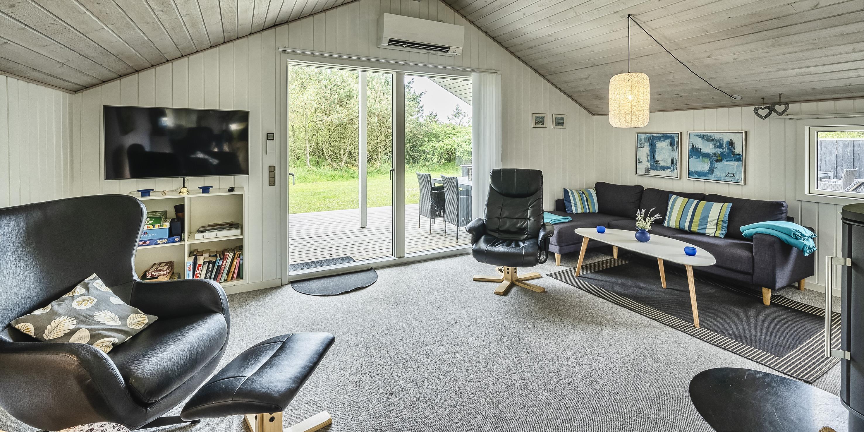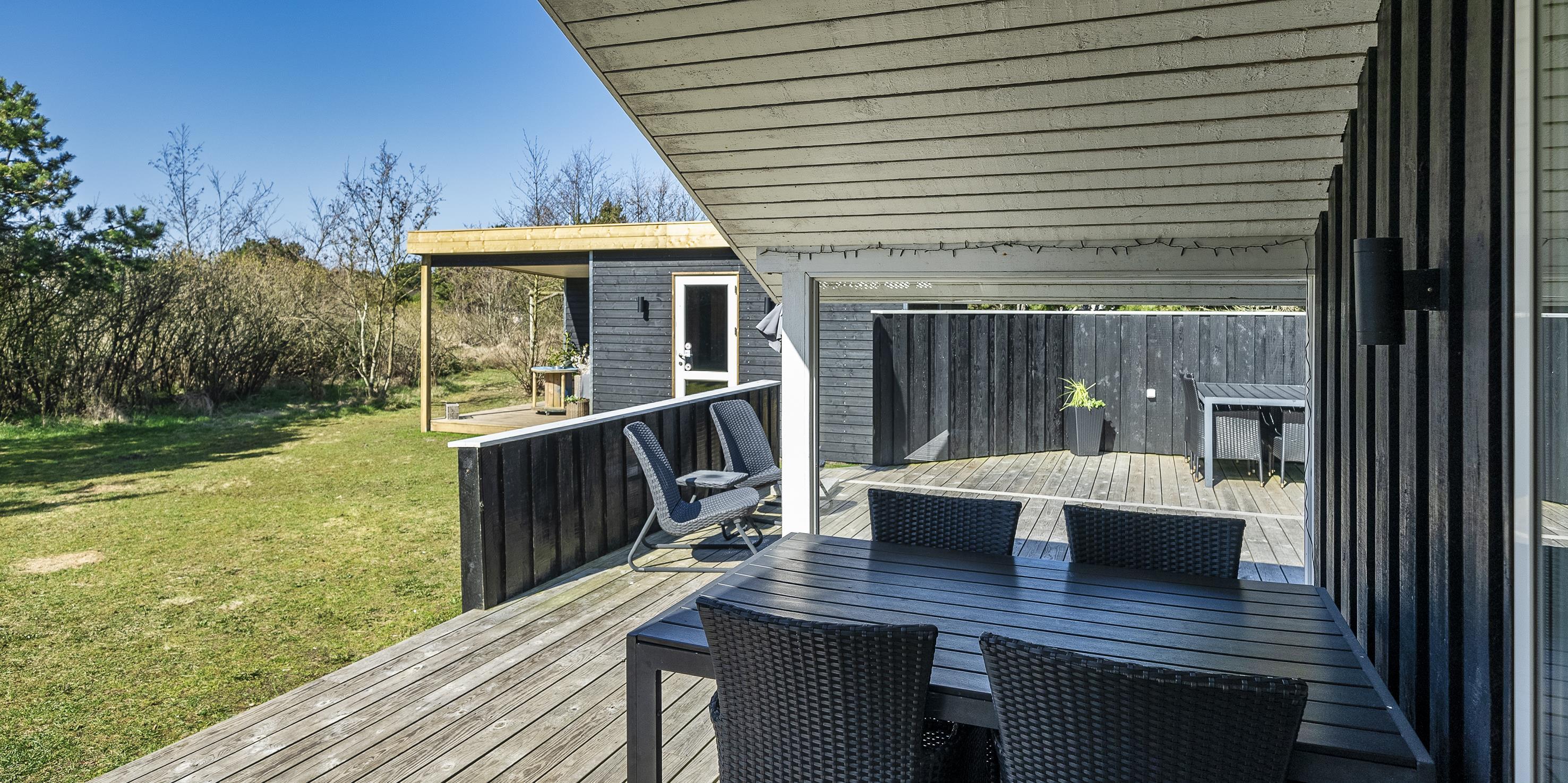 Helles und geschmackvolles Ferienhaus für 6 Personen, ca. 900 Meter vom Strand entfernt, auf einem großen Naturgrundstück. Wohnzimmer mit Kamin und Fernseher mit 5-8 deutschen Sendern. Wohnküche mit Geschirrspüler, Mikrowelle und Kühl-/Gefrierkombination. Es gibt 3 Schlafzimmer: DB + 2B + 2B. Badezimmer mit Dusche/WC, Sauna, Waschmaschine und Trockner. Wärmepumpe. Internetverbindung (W-LAN). Große, teilweise umzäunte Terrasse, Schaukel. Bitte keine Haustiere. Das Rauchen ist nicht gestattet. Baujahr 1984.
