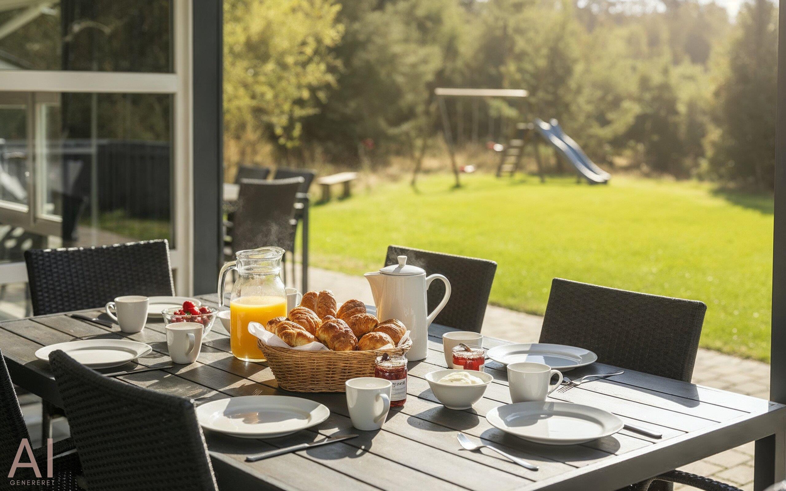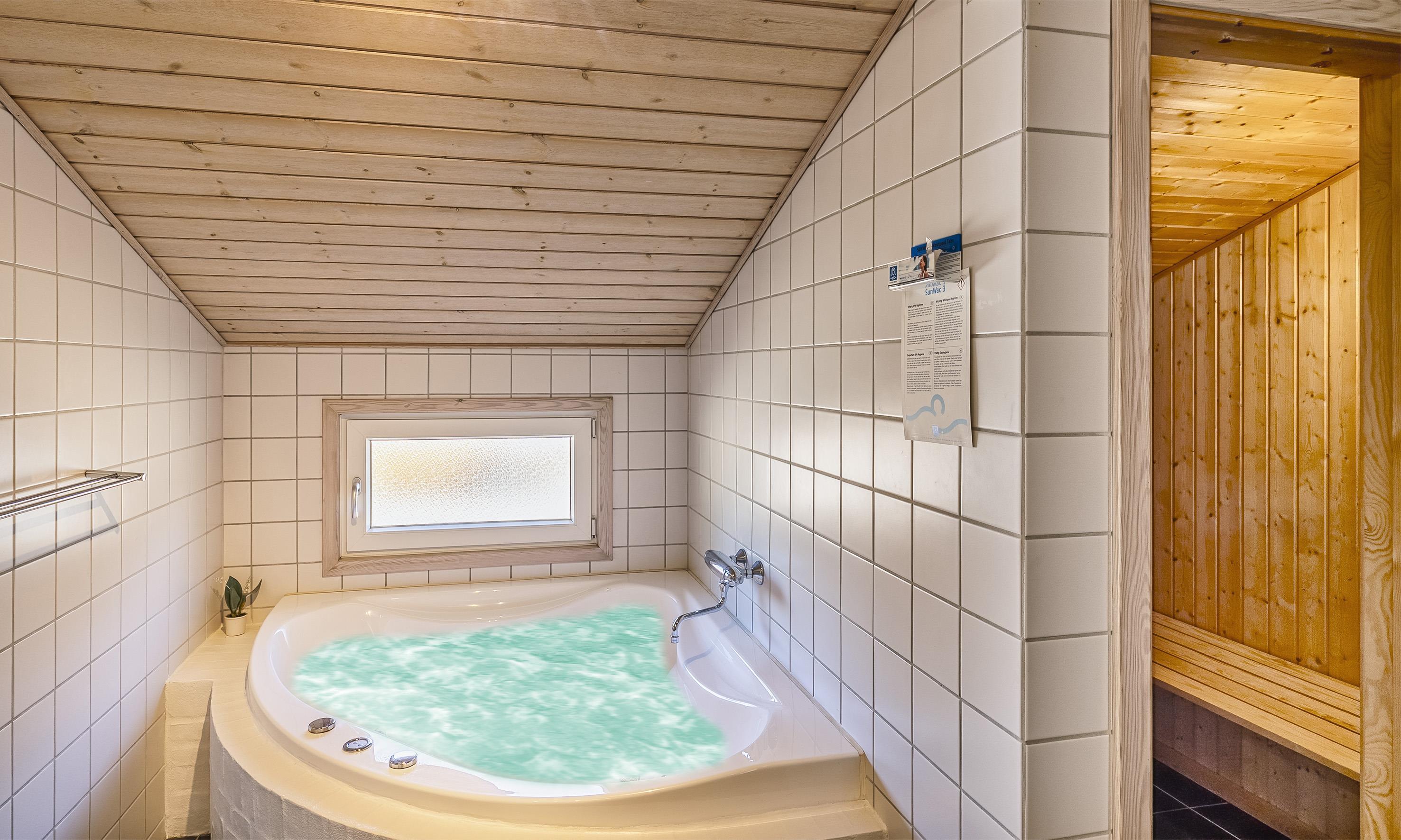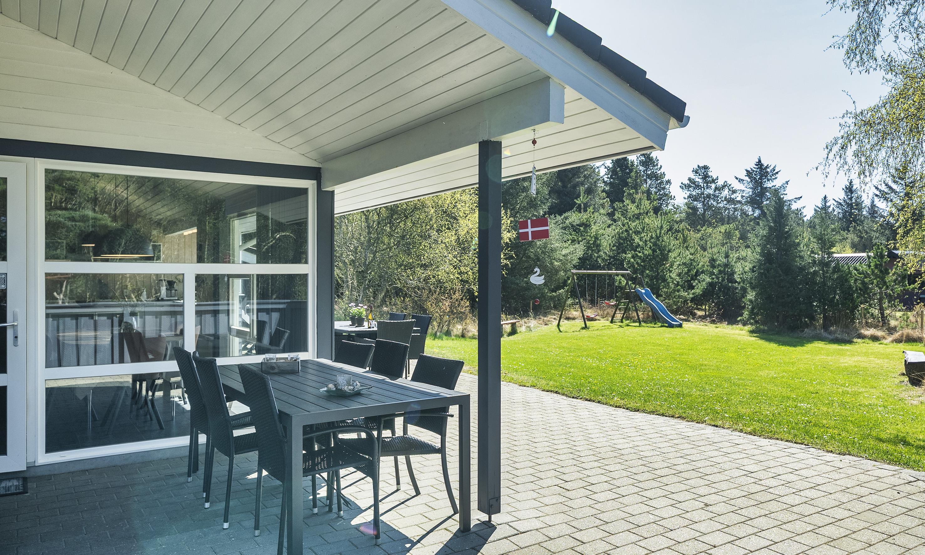 Sehr modernes und geschmackvoll eingerichtetes Ferienhaus auf einem 3.100 m2 großem Rasengrundstück gelegen. Das Ferienhaus ist für 6 bis 8 Personen ausgestattet. Der Strand liegt etwa 1 km vom Haus entfernt. Das komplette Ferienhaus ist gefliest bis auf die Bereiche in den Schlafzimmern, die sind mit einem Laminat versehen. Alles in diesem Haus ist farblich gut abgestimmt und die Einrichtung ist sehr stilvoll ausgesucht. Großes modernes Wohnzimmer mit einer gemütlichen Sitzgarnitur ausgestattet. Das Fernsehprogramm empfangen Sie über Stofa, daher sind nur 5-8 deutsche Kanäle zu empfangen. Der Kamin ist hier im hinteren Wohnbereich aufgestellt. Über eine kleine Stufe gelangen Sie dann in den Essbereich mit der offenen Wohnküche. Die Küche verfügt über einen Herd mit Cerankochfeld, einem Backofen in Arbeitshöhe, einer Geschirrspülmaschine, einer Mikrowelle und einer Kühl- und Gefrierkombination. Es stehen zwei Bäder im Hause für die Gäste zur Verfügung. Das kleinere ist mit einem WC, einem Handwaschbecken und einer Dusche ausgestattet. Hier steht Ihnen auch genügend Ablagefläche für Ihre Badutensilien zur Verfügung. Das große Badezimmer hat ein WC, ein Handwaschbecken, eine Dusche, eine Sauna und einen Whirlpool. Die Waschmaschine und der Trockner sind hier in dem großen Badezimmer untergebracht. Insgesamt stehen den Gästen drei Schlafzimmer zur Verfügung: DB + DB + 4B. Zwei der Schlafzimmer sind mit je einem Doppelbett ausgestattet und das Dritte verfügt über zwei Einzelbetten und ein Etagenbett. Im Hauptschlafzimmer gibt es elektrische Hebbetten. Hinterm Haus steht Ihnen eine großzügige mit Fliesen belegte Terrasse für Ihre Grillabende oder Ihr Sonnenbad zur Verfügung. Ein kleiner Bereich davon ist sogar überdacht. Für die kleinen Gäste ist ein Schaukelstativ mit einer Rutsche und Klettergerüst aufgestellt. Der Garten ist eingezäunt. Das Ferienhaus verfügt über einen Internetanschluss (W-Lan). Es sind max. zwei Haustiere erlaubt. Das Rauchen ist nicht gestattet. Das Ferienhaus wurde 2006 erbaut.