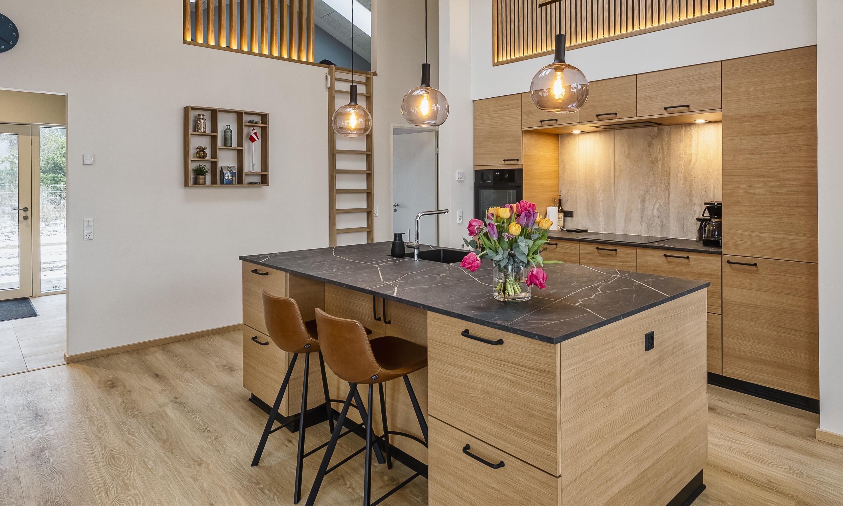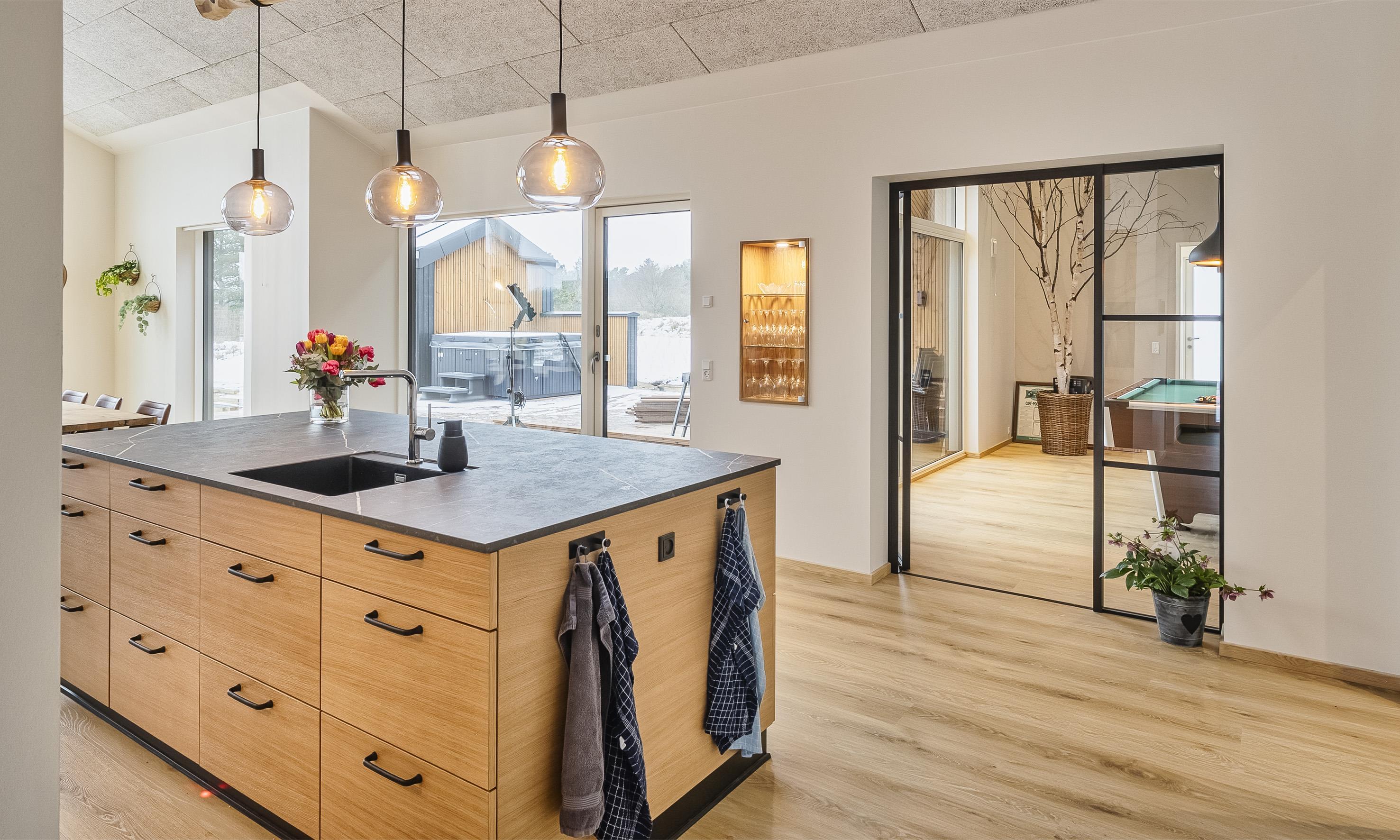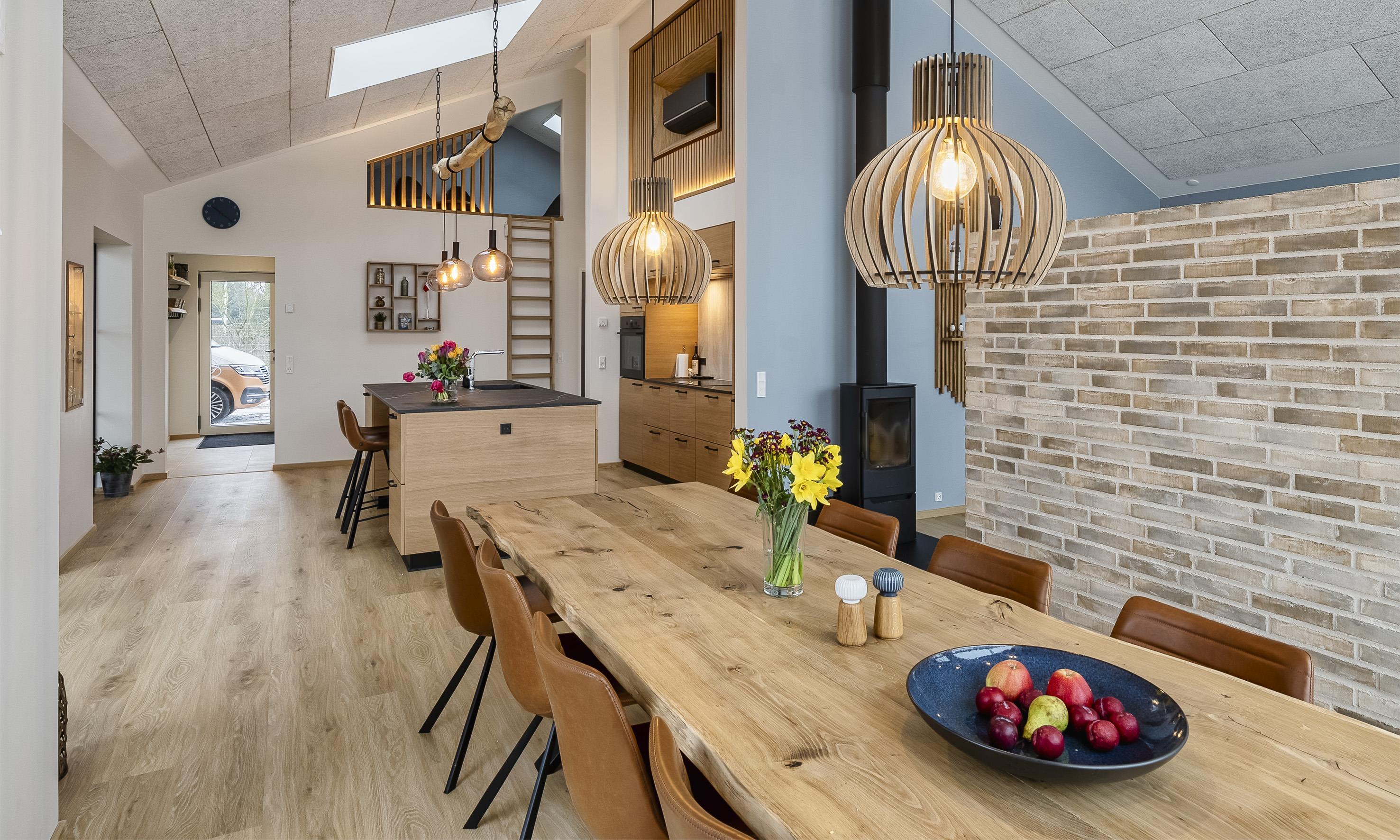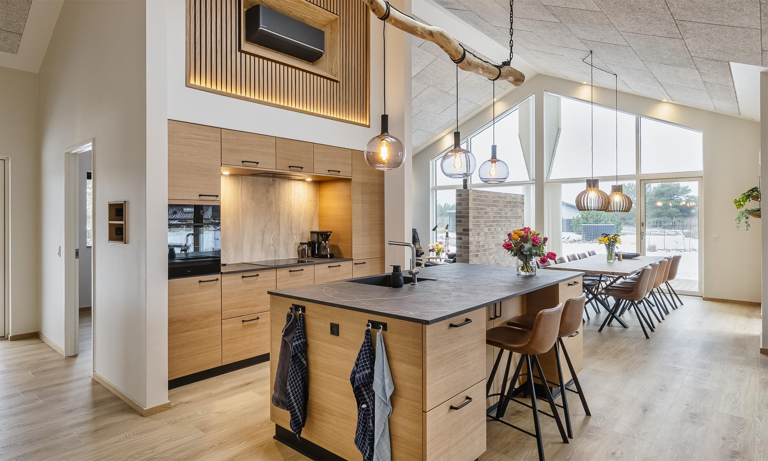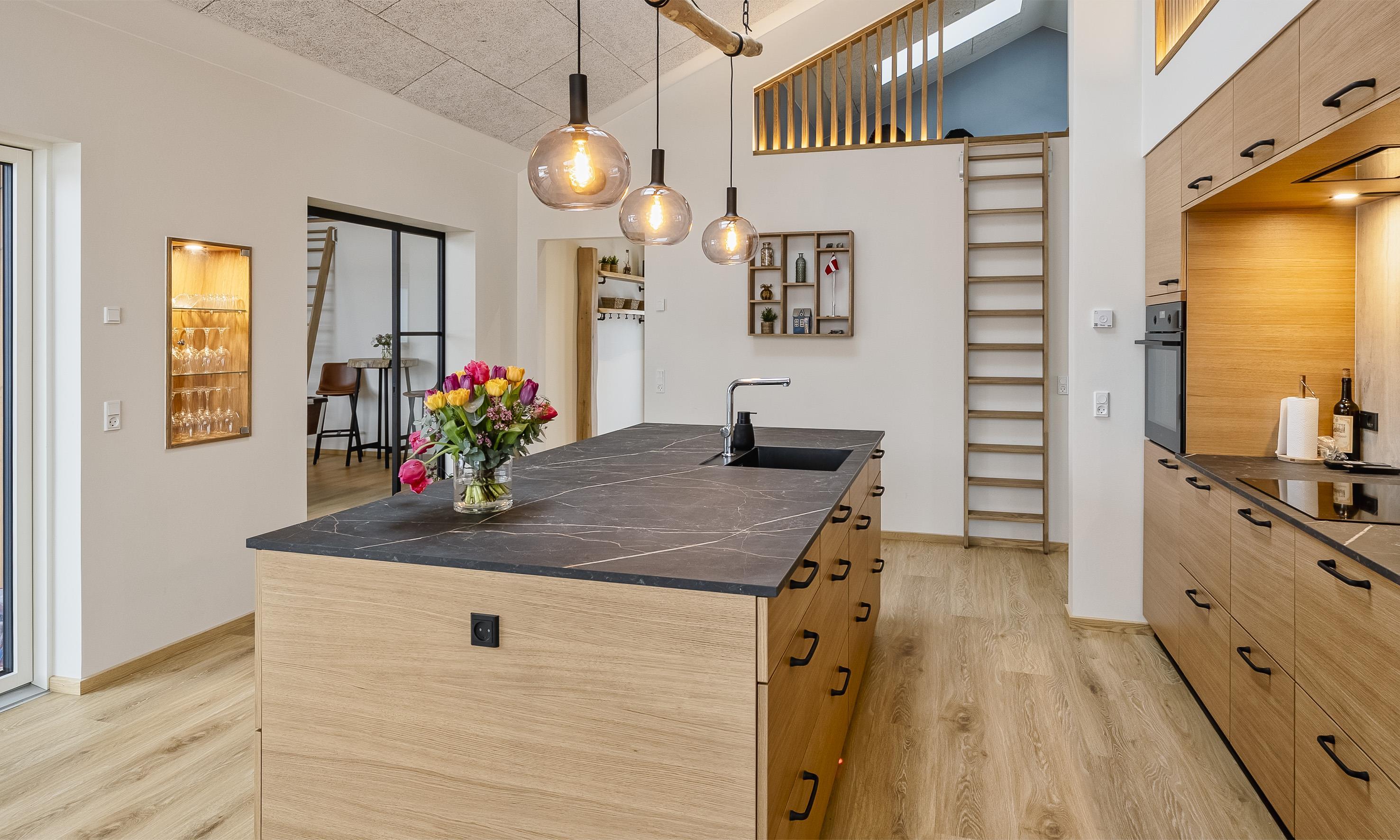 Das zentrale Herzstück des Hauses ist die Küche mit Essbereich und Decke bis zum First, von wo aus Sie direkten Zugang zur großen Terrasse haben.
