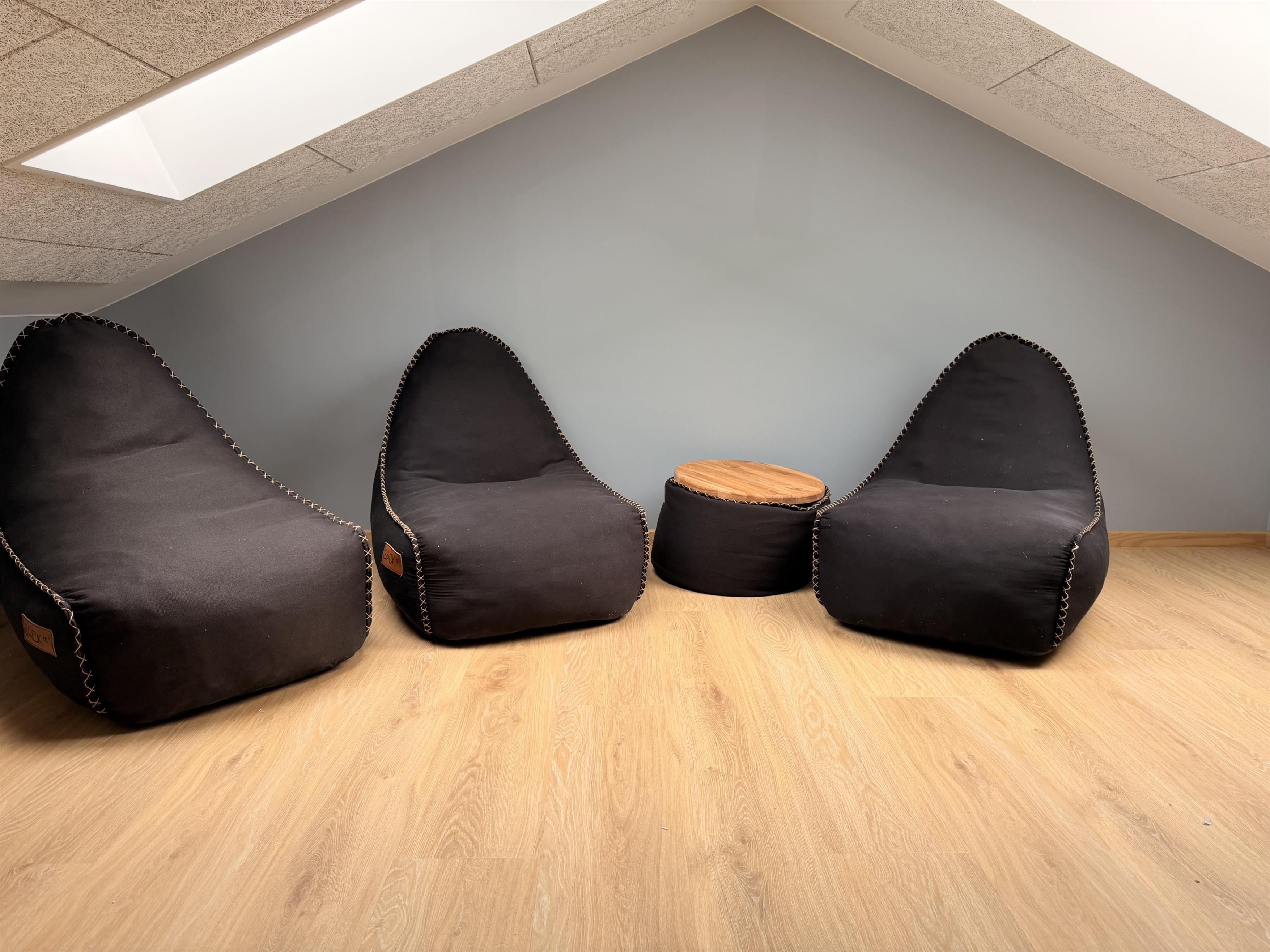 Zusätzlich gibt es einen weiteren großen Schlafboden mit Sitzsäcken und TV.