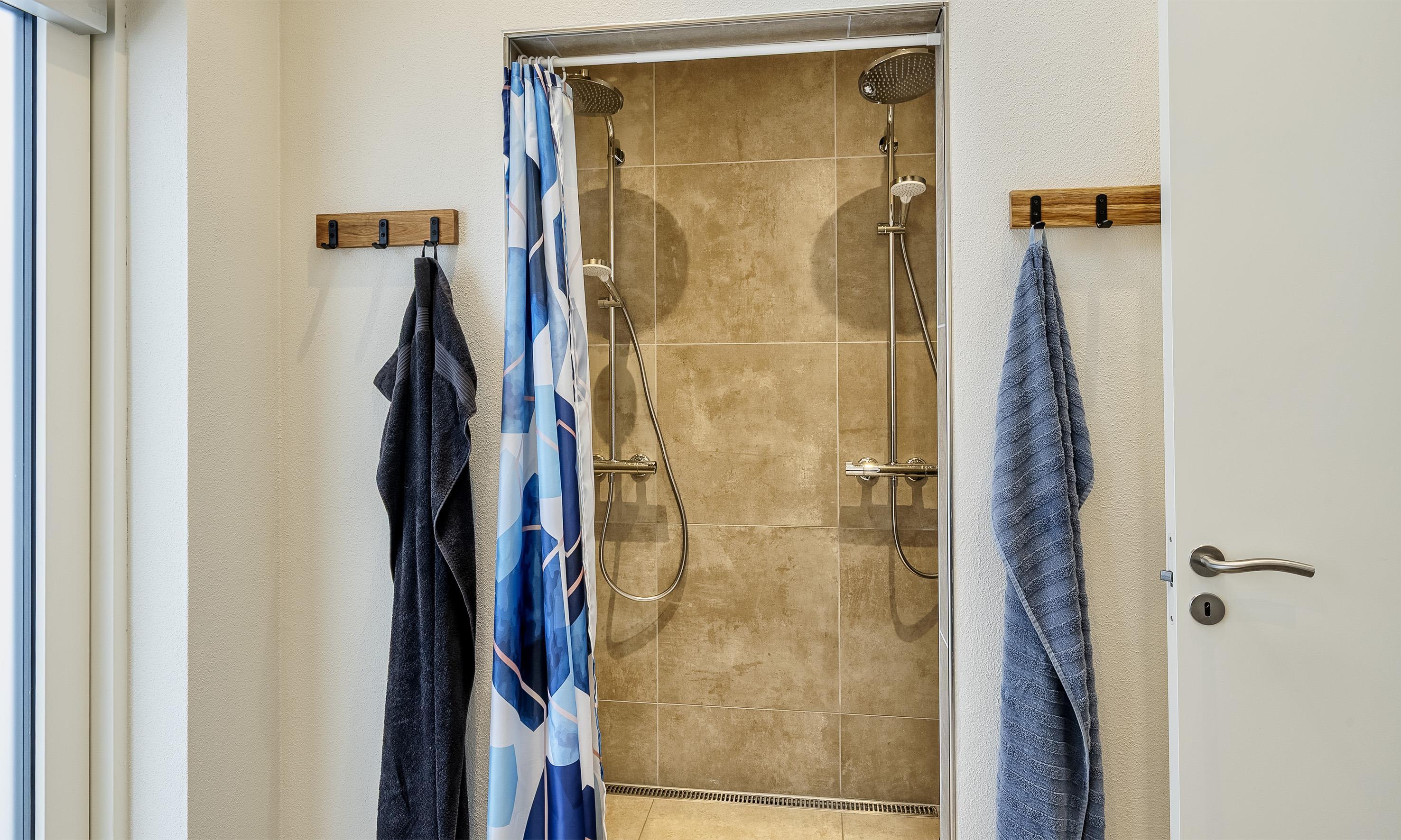 Direkt vor dem großen, teilweise überdachten Terrassenbereich befinden sich ein großer Außenspa, eine Sauna sowie eine Außendusche.