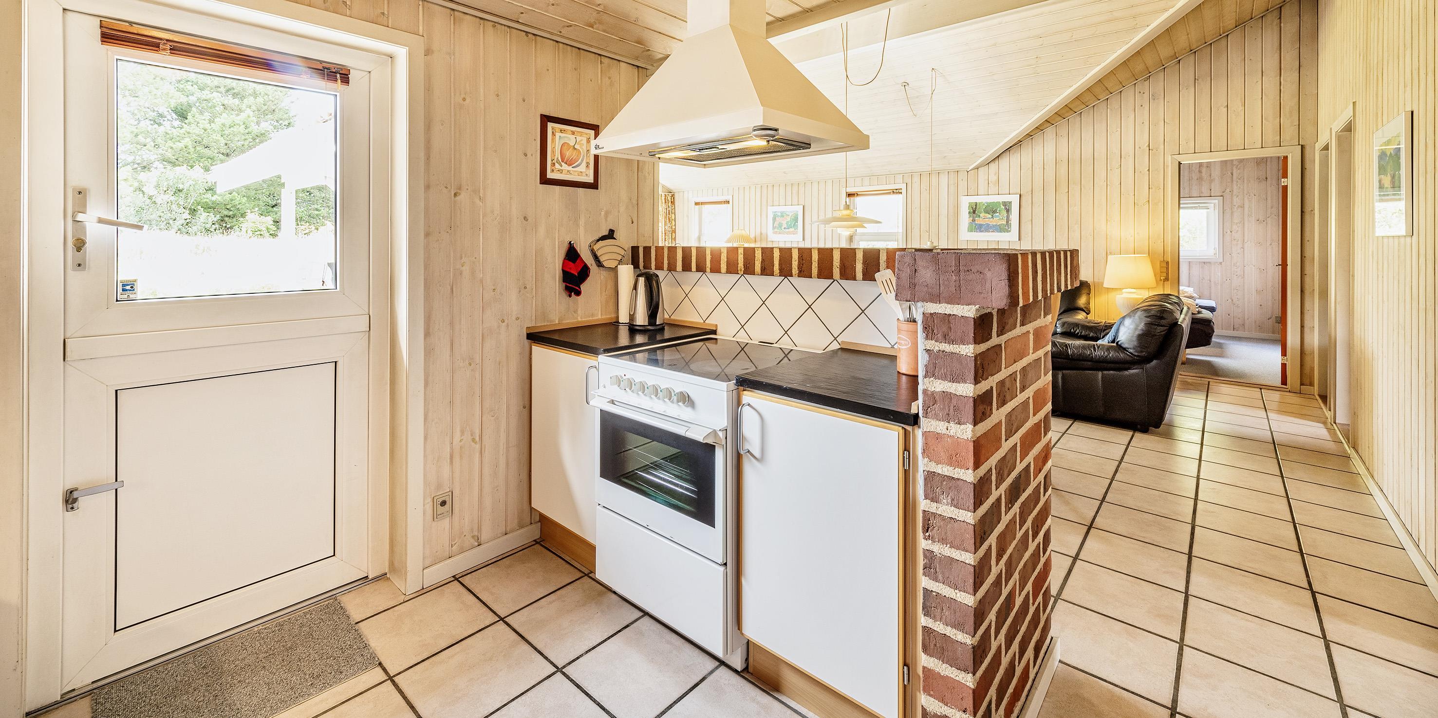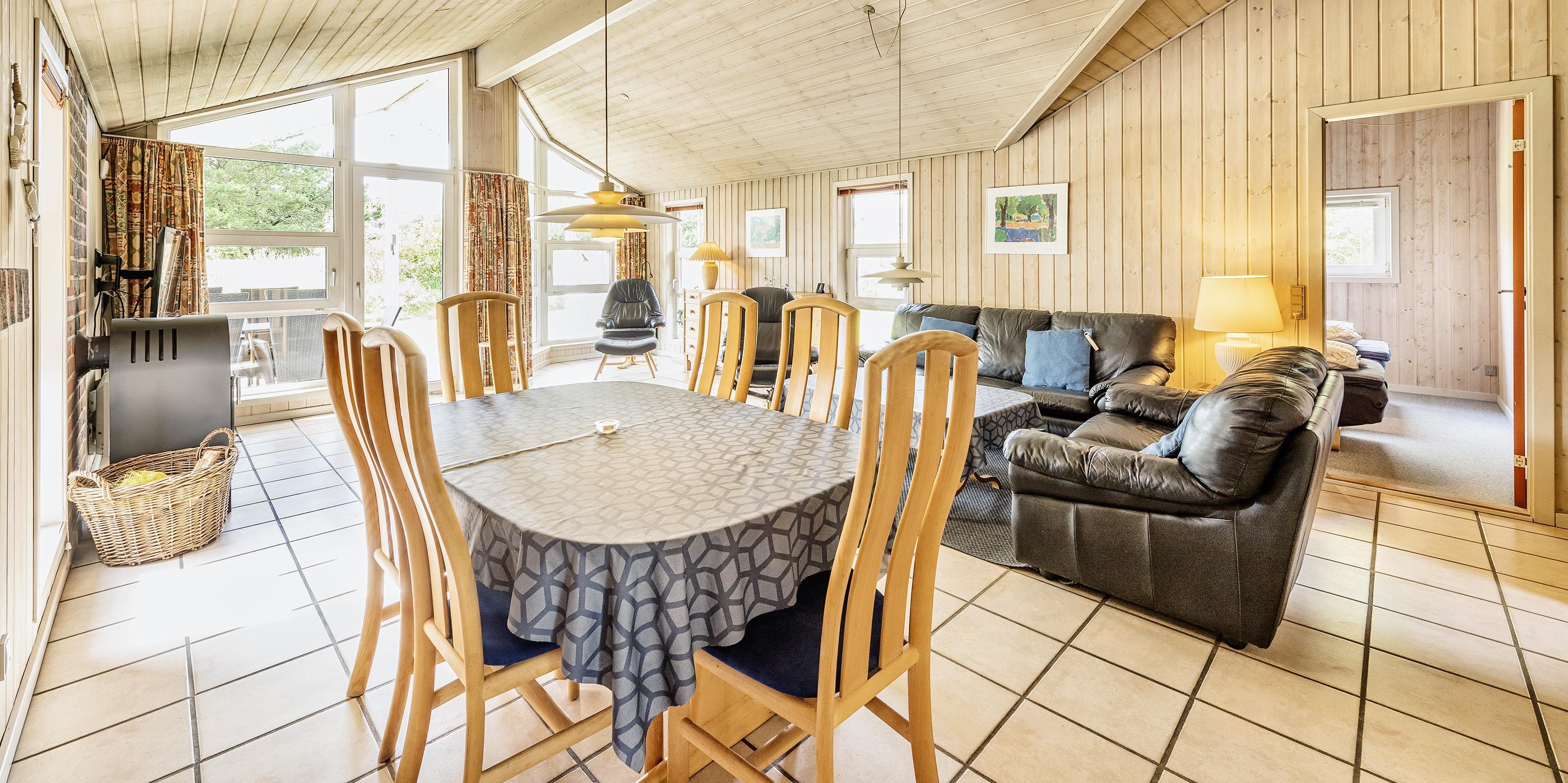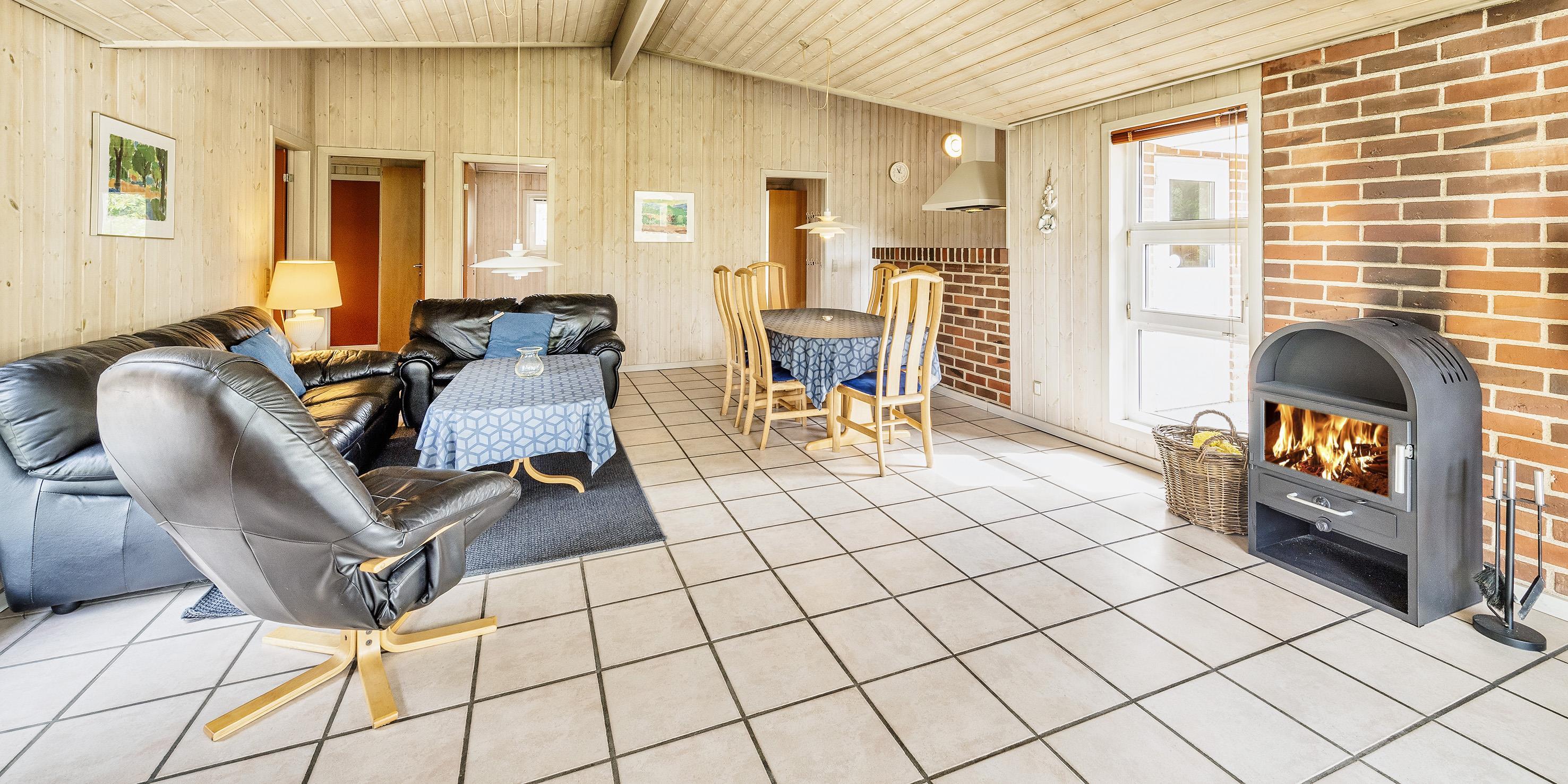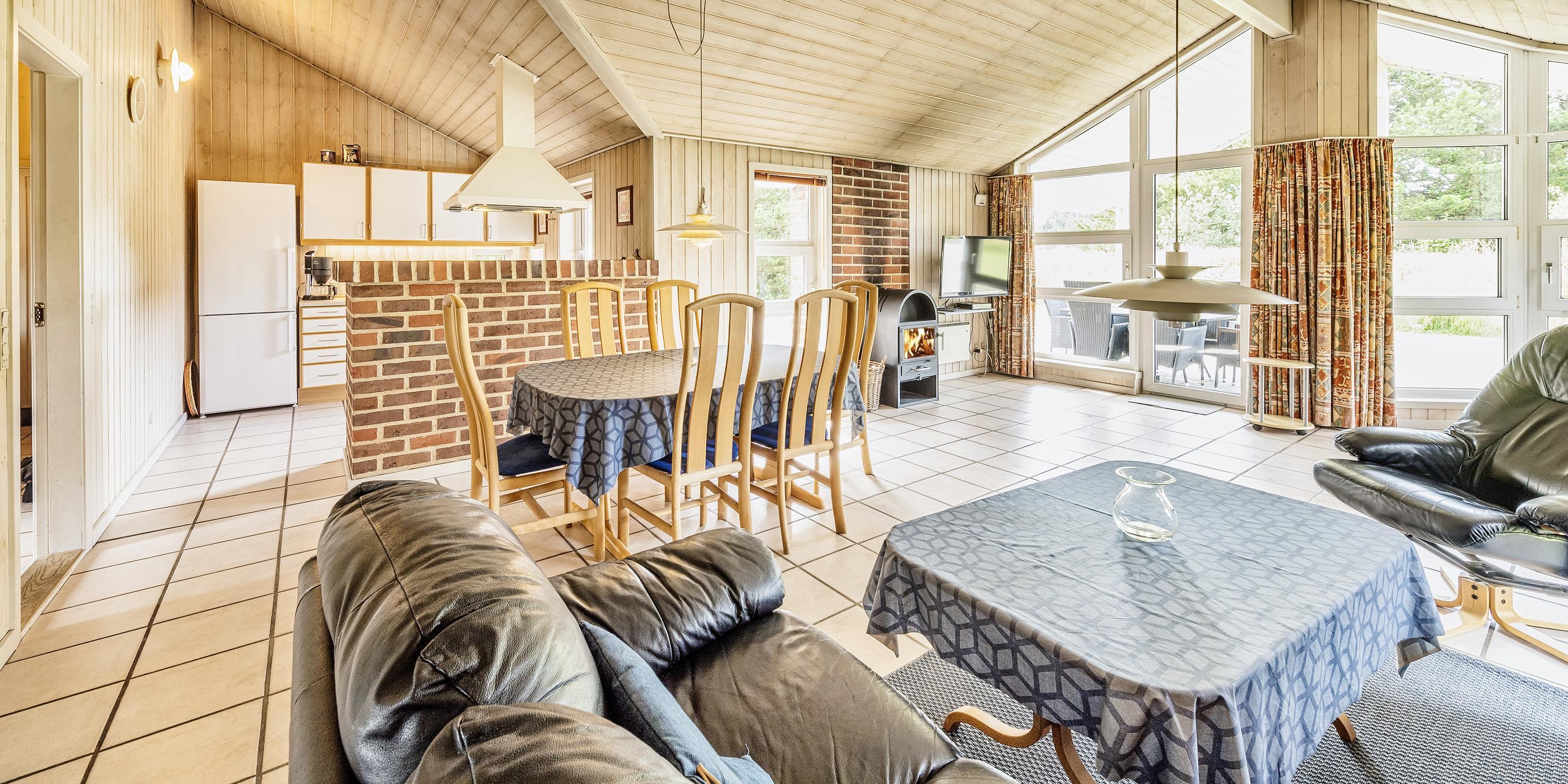 Lichtdurchflutetes Ferienhaus mit Carport das sich direkt am Haus befindet. Das Ferienhaus ist für 6 Personen ausgestattet und liegt auf einem schönen Naturgrundstück. Der Strand ist ca. 1,2 Km vom Ferienhaus entfernt. Der Wohnbereich ist großzügig gehalten und mit dem Essbereich offen verbunden. Der komplette Wohn-, Ess- und Küchenbereich ist gefliesst. Wärmepumpe. Der Kamin ist hier im Wohn- und Essbereich untergebracht. Das deutsche Fernsehprogramm empfangen Sie über eine Parabolantenne. Die offene Küche verfügt über einen Herd mit Kochplatten, einem Backofen, einer Geschirrspülmaschine, einer Mikrowelle und einer Kühl- und Gefrierkombination. Das Badezimmer ist mit einem WC, einem Handwaschbecken, einer Dusche und einer Sauna ausgestattet. Desweiteren sind hier die Waschmaschine und der Trockner aufgestellt. Eine ausreichende Ablagefläche für Ihre Badutensilien steht Ihnen auch zur Verfügung. Es gibt insgesamt drei Schlafzimmer im Ferienhaus: DB + DB + 2B. Das Ferienhaus verfügt über einen Internetanschluss (W-Lan). Fussbodenheizung im Bad, Wohnzimmer und Küche. 1 Haustier ist erlaubt. Ein großzügiger Terrassenbereich steht zur Verfügung und davon ist sogar ein Teil überdacht. Hier können Sie Ihre Grillabende im ”Trockenen” abhalten. Das Rauchen ist nicht gestattet. Das Ferienhaus wurde 1997 erbaut.