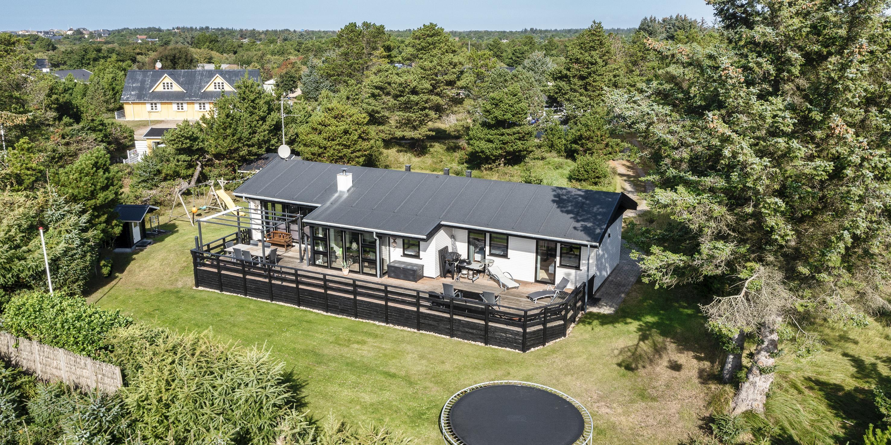 Geschmackvoll eingerichtetes Ferienhaus mit Namen ”Blue Sky” auf einem schönen Naturgrundstück gelegen. Das Ferienhaus ist für 6 Personen ausgestattet. Der Strand ist 1,2 Km vom Ferienhaus entfernt. Der Wohn- und Essbereich ist mit einem tollen Holzfußboden ausgestattet, einer gemütlichen Rundsitzecke und einen Kamin. Es befindet sich eine Warmepumpe im Ferienhaus. Mit dieser Warmepumpe haben sie die Möglichkeit die Stromkosten zu senken, denn die Warmepumpe ist energiesparend. Das deutsche Fernsehprogramm empfangen Sie über eine Parabolantenne. Chromecast. Die Küche ist modern und ausgestattet mit einem Herd mit Kochplatten, einem Backofen, einer Geschirrspülmaschine, einer Mikrowelle und einer Kühl- und Gefrierkombination. Das Badezimmer hat ein WC, ein Handwaschbecken, eine Handtuchhalteheizung und eine Dusche. Die Waschmaschine und der Trockner sind hier im Badezimmer untergebracht. Insgesamt stehen den Gästen 3 Schlafzimmer zur Verfügung: DB + DB + DB. Das Ferienhaus verfügt über einen Internetanschluss (W-Lan). Rauchen ist nicht erlaubt. In dem Wintergarten sind flotte Rattanmöbel mit einer hohen Lehne aufgestellt. Hier kommt durch die vielen Fenster reichlich Licht in den Bereich. Zwei schöne Terrassenbereiche stehen am Haus den Gästen bereit, wo Sie zum Beispiel Ihr Sonnenbad geniessen können, Ihren Kaffee trinken, einen Grillabend gestalten oder einfach nur relaxen. Der größere Terrassenbereich ist sogar geschlossen. Da können Ihre Vierbeine mal Luft schnappen ohne, das sie gleich stiften gehen können. Ein kleiner Kinderspielplatz mit Schaukelstativ und Rutsche, einer Sandkiste und einem Spielhaus befindet sich auf dem Grundstück. Trampolin. Ein Kohlegrill steht den Gästen auch zur Verfügung. Auch ausreichend Platz zum Bolzen ist gegeben. Es sind max. zwei Haustiere erlaubt. Das Ferienhaus ist 1964 erbaut worden und in 2015 ist es teilrenoviert.