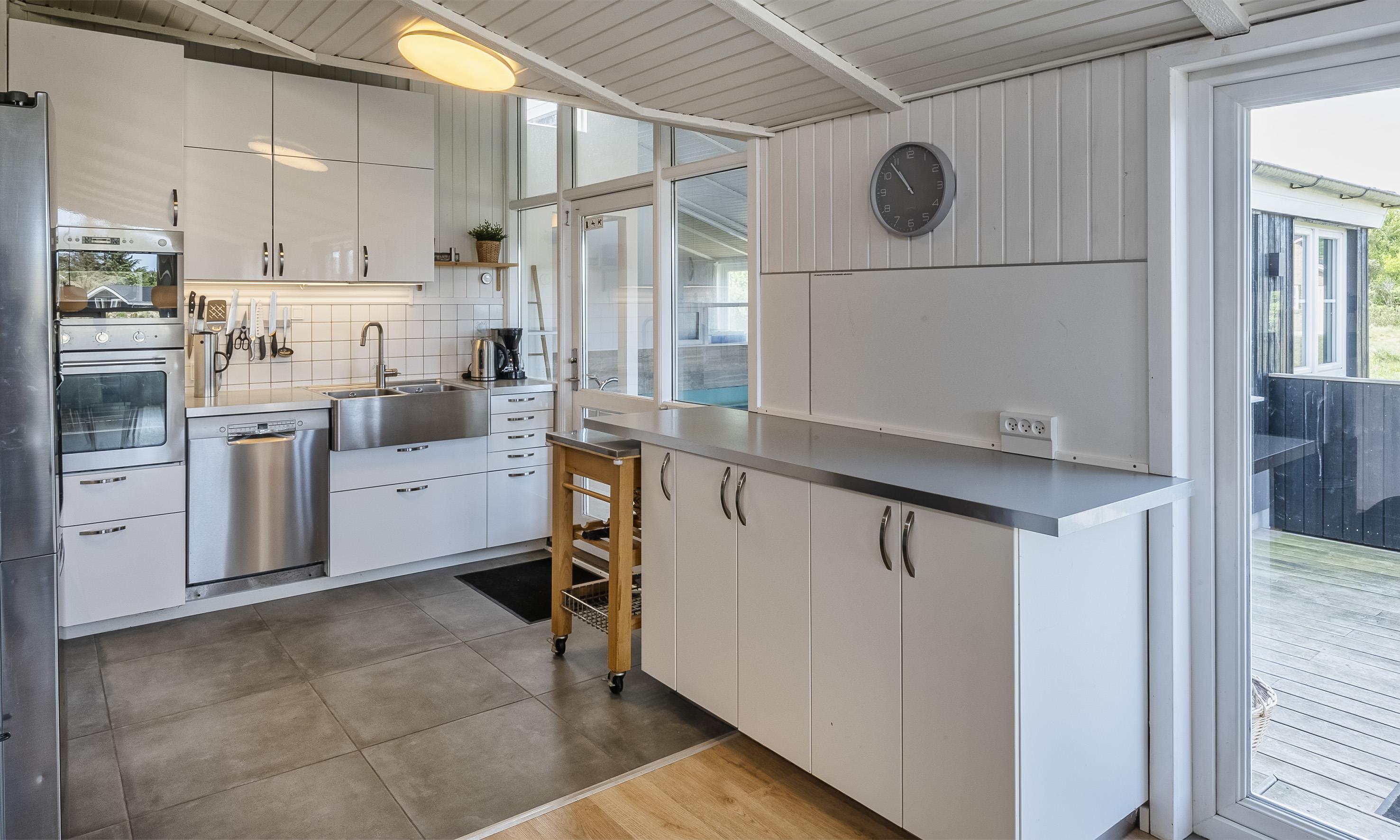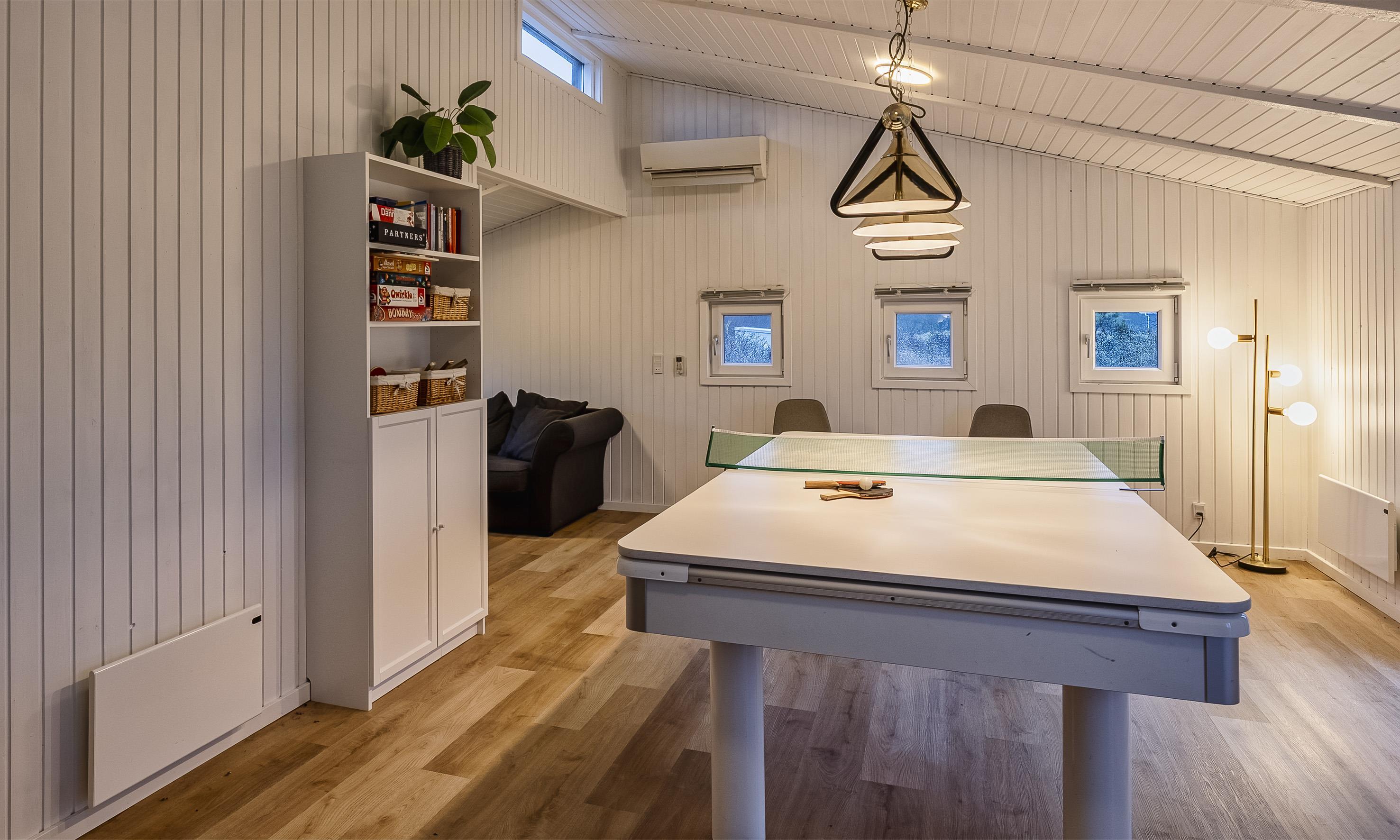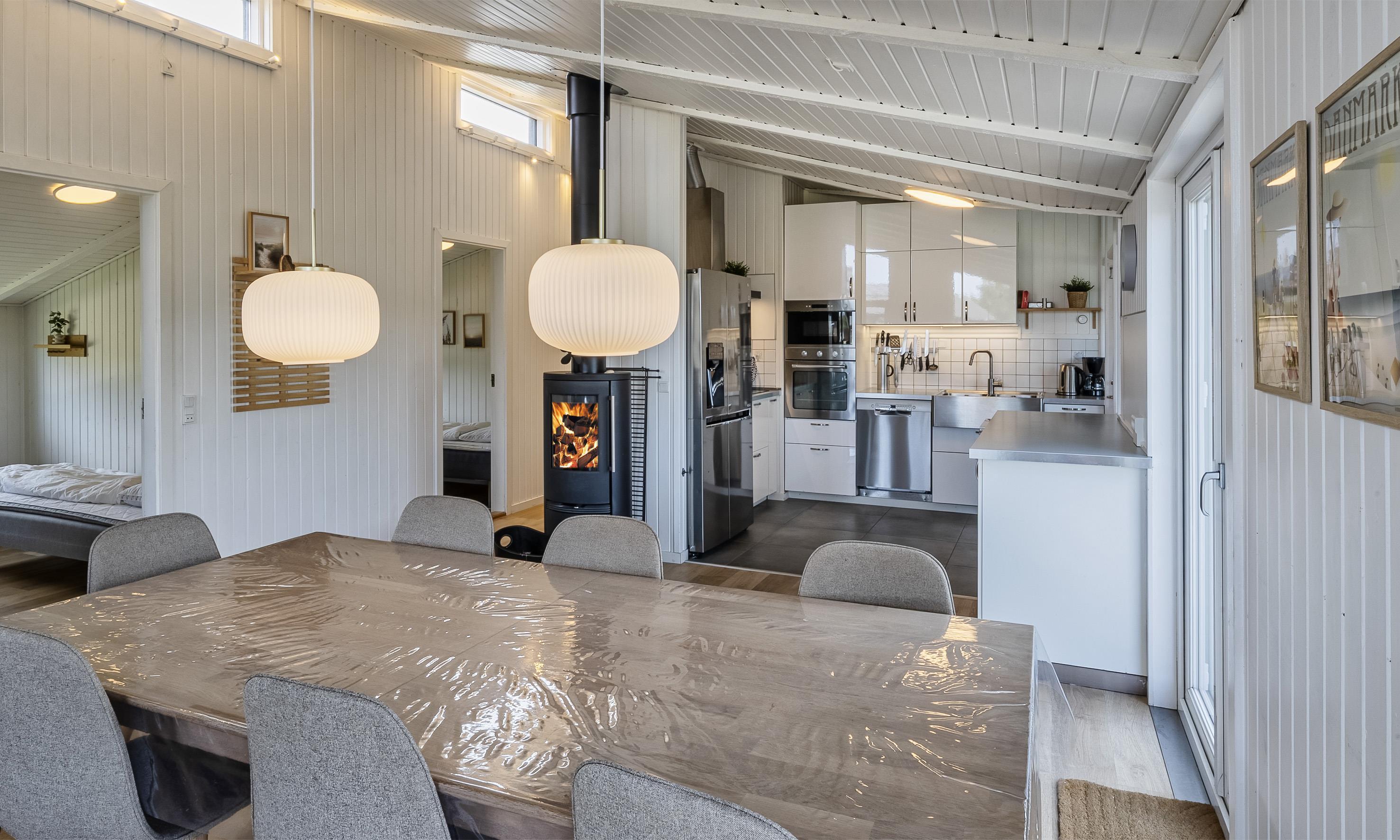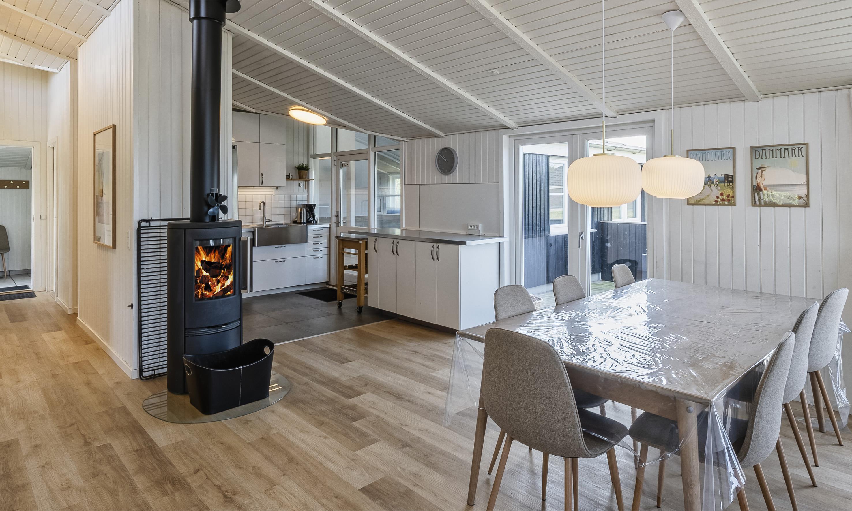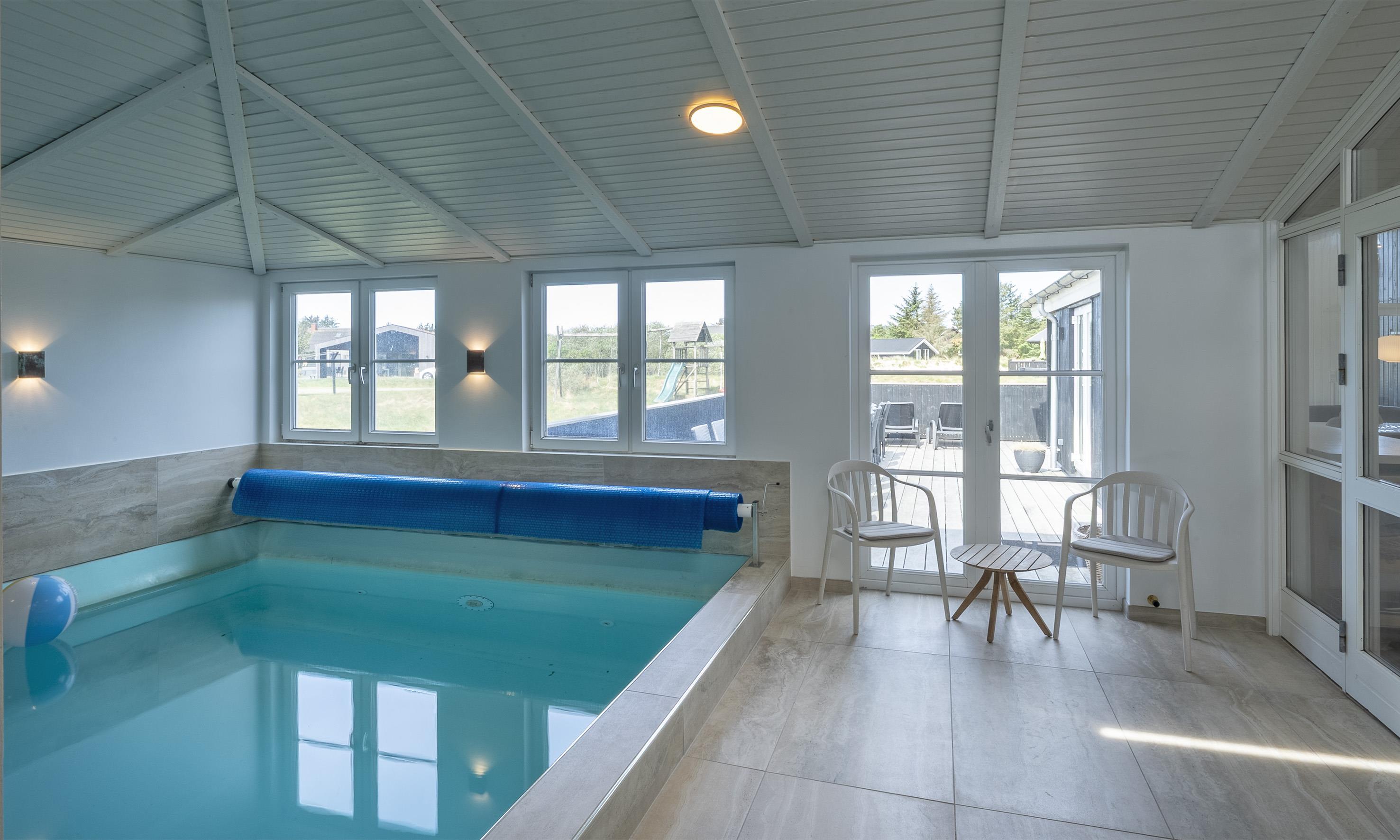 Neu renoviertes Aktivitätshaus mit Innenpool und Sauna. Das Ferienhaus befindet sich auf einem schönen großzügigen Naturgrundstück in direkter Waldrandlage. Auf seinen 190m2 Wohnfläche haben alle 10 Gäste reichlich Platz. Der Strand befindet sich ca. 850 Meter vom Haus entfernt. Der offene Wohn- und Essbereich ist freundlich und heller Ausstattung. Gemütliches Wohnsofa und großer Esstisch vorhanden. Smart-TV mit dänischen und deutschen Kanälen und der Möglichkeit zum Streamen und auch DVD-Abspielgerät befinden sich hier im Wohnbereich. Ein Kaminofen ist ebenfalls hier im Wohn- und Essbereich aufgestellt. Dieser strahlt eine gemütliche wohlige Wärme aus und man hat einen direkten Blick vom Sofa aus auf den Kamin. Desweiteren befindet sich eine Wärmepumpe im Ferienhaus. Mit dieser Wärmepumpe haben Sie die Möglichkeit die Stromkosten zu senken, denn sie ist energiesparend. Der Küchenbereich ist offen und ist gut ausgestattet. Die Küche verfügt über einen Herd mit Cerankochfeld, einem Backofen in arbeitshöhe, einer Mikrowelle, einer Geschirrspülmaschine und einer großen Amerikanischer Kühl- und Gefrierkombination (ca. 80 ltr.). Im Küchenbereich ist ausreichend Platz, so dass auch mehrere Personen gleichzeitig dort kochen oder vorbeireiten können. Im Ferienhaus befinden sich 2 schöne Badezimmer, beide sind mit einer Fußbodenheizung ausgestattet und verfügen jeweils über ein Handwaschbecken, einem WC und einer Dusche. In einem der Bäder, der vom Poolbereich erreichbar ist, befindet sich eine Sauna. Der Swimmingpool hat eine Grösse von ca. 6 x 3,6 x 1,10 Meter ( Länge x Breite x Tiefe). Eine Waschmaschine und ein Trockner stehen den Gästen ebenfalls im Hauswirtschaftsraum / Eingangsbereich zur Verfügung. Insgesamt gibt es 5 Schlafzimmer im Ferienhaus. 2 Schlafzimmer mit je einem Doppelbett und 3 Schlafzimmer mit je 2 Einzelbetten (DB + DB + DB + EB + EB). Großer und heller Aktivitätsraum ausgestattet mit Sitzmöglichkeiten, einem Billiard-Tisch und Tischtennis. Das Ferienhaus verfügt über einen Internetanschluss (W-Lan). Schöner geschlossener Terrassenbereich. Es ist max. ein Haustier erlaubt., aber keine Katzen. Das Rauchen im Ferienhaus ist nicht gestattet. Es sind keine Jugendgruppen erlaubt. Auf dem Grundstück gibt es ein Spielhaus und ein Sandkasten für die Kleinen Gäste. In den Sommermonaten stellt der Eigentümer einen Gasgrill zur Verfügung. Bitte beachten Sie, dass dieser nach Gebrauch wieder gereinigt zurückgestellt wird. Denn nur so haben alle etwas davon. Das Baujahr des Hauses ist im Jahre 1989 und renoviert wurde es im Jahre 2009.