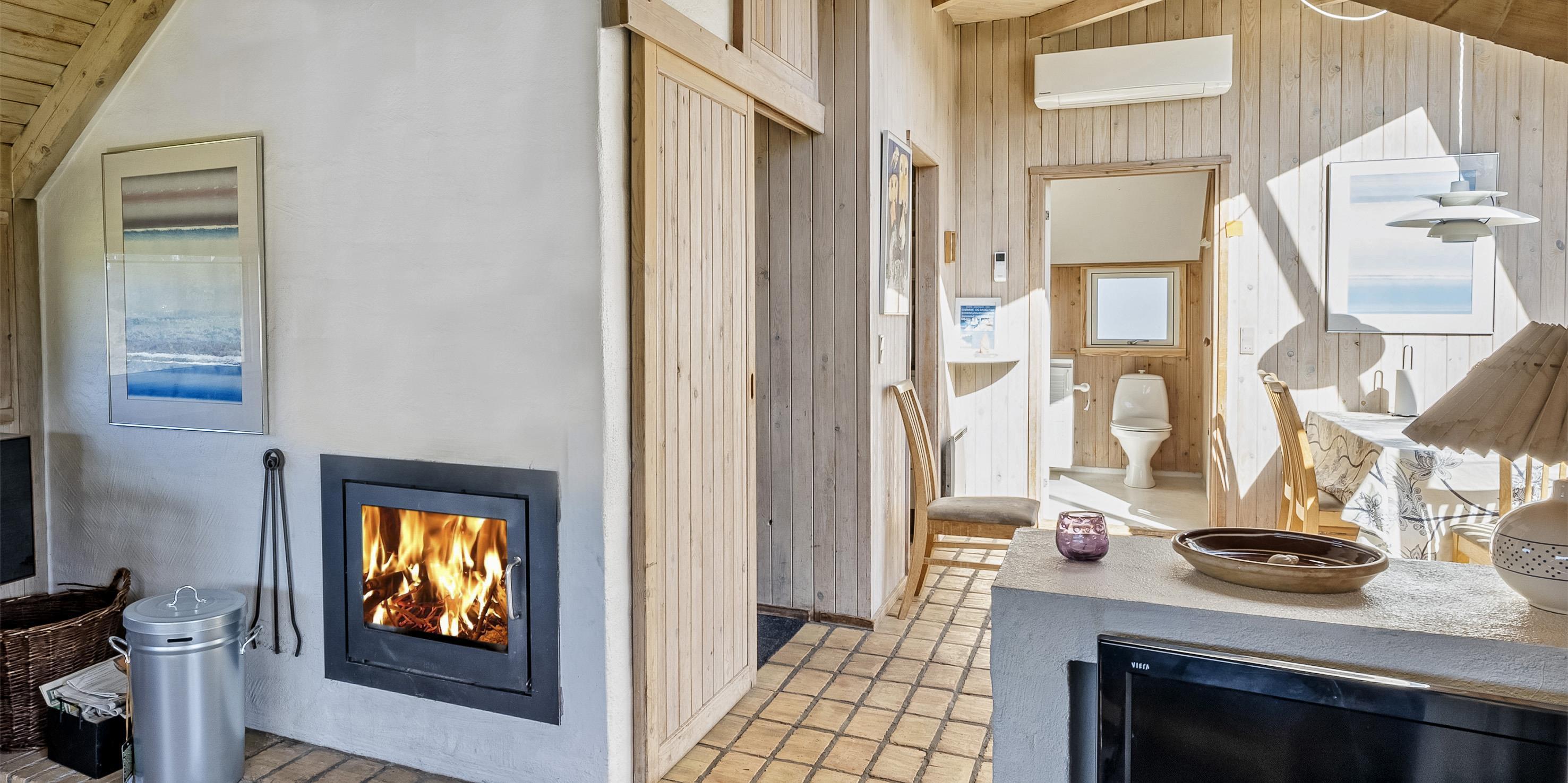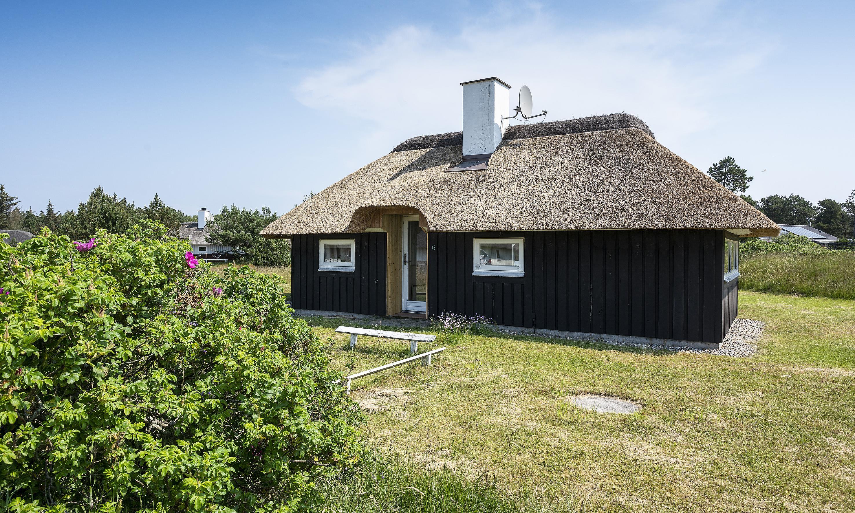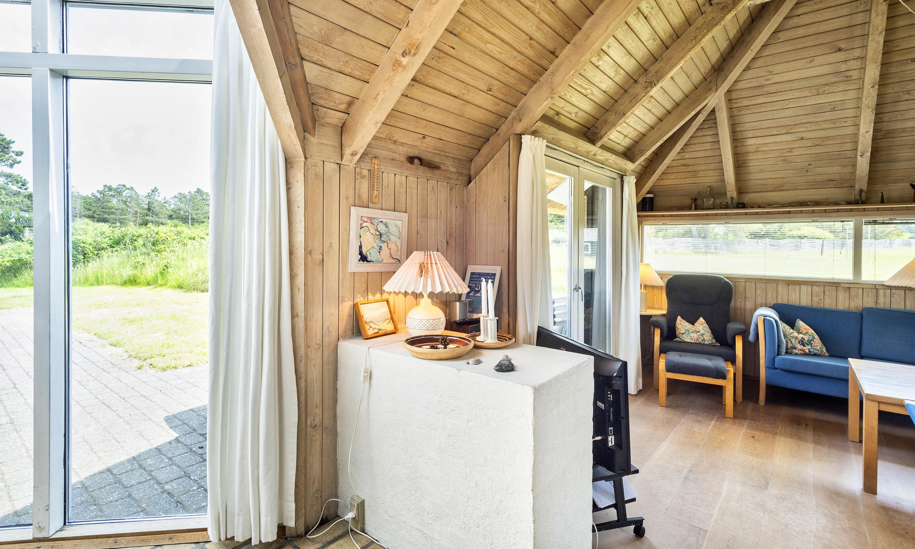 Hübsches Ferienhaus für 8 Personen auf einem großen mit grünbewachsenen Grundstück dicht an dem Wald und dem Fahrradweg zu Grærup Strand gelegen. Von dem Waldgebiet kommen die Hirsche und das Rotwild bis an die Ferienhäuser ran, um sich von den Gästen mit Obst und Gemüse verwöhnen zu lassen. Das Ferienhaus ist ca. 1,9 Km vom Strand entfernt. Es liegt allerdings dichter zum nächsten Kaufmann, für das ”morgige Brötchen” holen. Das Ferienhaus verfügt über ein gemütliches Wohnzimmer und über einem eingebauten Kamin. Das deutsche Fernsehprogramm ist über eine Parabol-Antenne zu empfangen. Chromecast. Über eine kleine Stufe vom Wohnzimmer gelangen Sie in den offenen Essbereich, der durch das Oberlicht sehr hell und freundlich erstrahlt. Dieser Essbereich, sowie die Küche sind mit einer Steinfliese ausgestattet. Die anderen Bereiche sind mit Laminat verlegt. Die Küche ist mit einem Herd mit Cerankochfeld, einem Backofen, eine Mikrowelle, einer Geschirrspülmaschine und einem Kühlschrankmit kleinem Gefrierfach ausgestattet. Das Badezimmer verfügt über ein WC, ein Handwaschbecken einer Dusche und einer Sauna. Ebenso ist die Waschmaschine hier im Badezimmer aufgestellt. Es gibt 4 Schlafzimmer im Ferienhaus: DB + DB + 2B + 2B. Zwei davon sind mit je einem Doppelbett und die anderen zwei mit Einzelbetten ausgestattet. Warmepumpe. Das Ferienhaus verfügt über einen Internetanschluss (W-Lan). Es sind max. 3 Haustiere erlaubt. Gratis Eintritt für das Badeland in Oksbøl in 2026. Das Rauchen ist nicht gestattet. Das Ferienhaus ist 1988 erbaut.