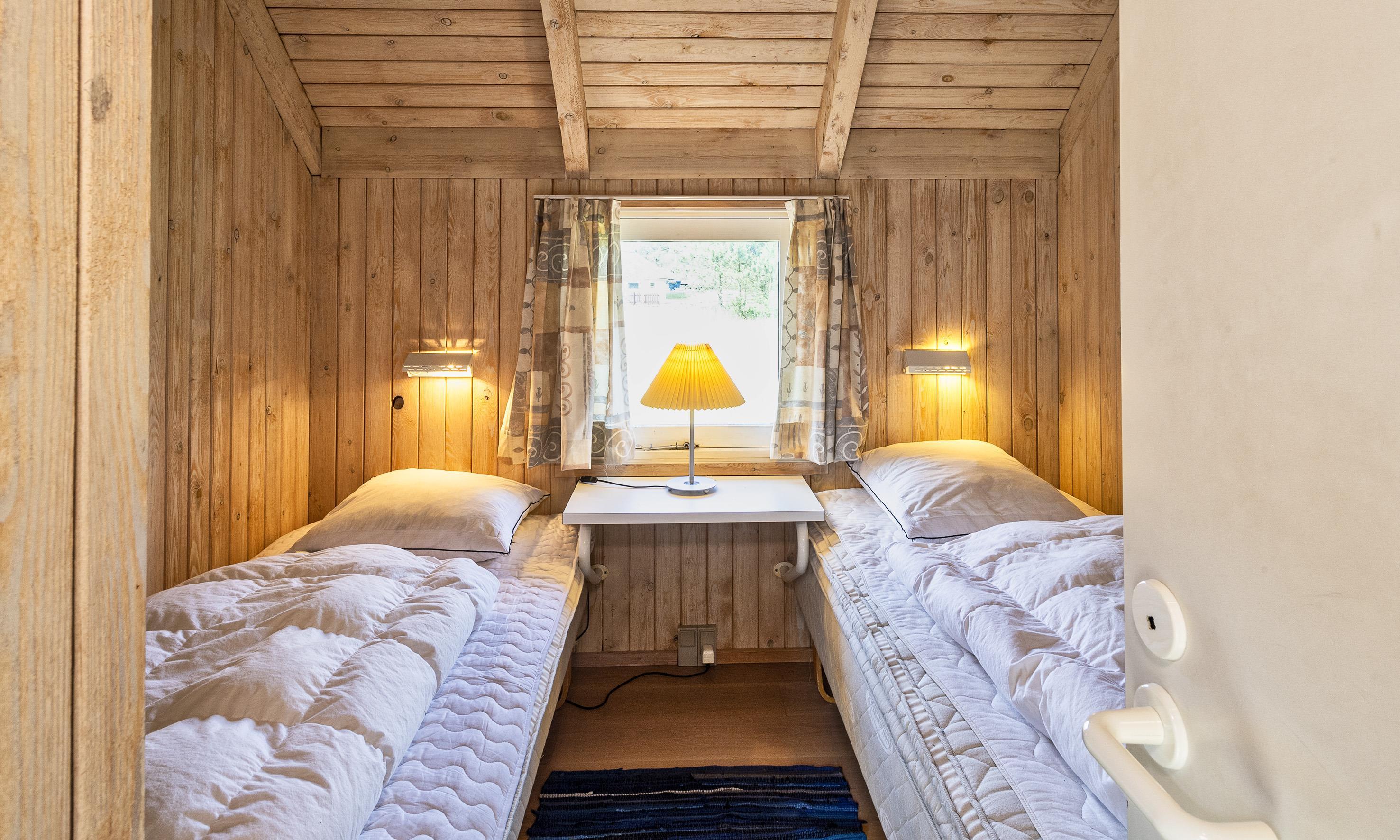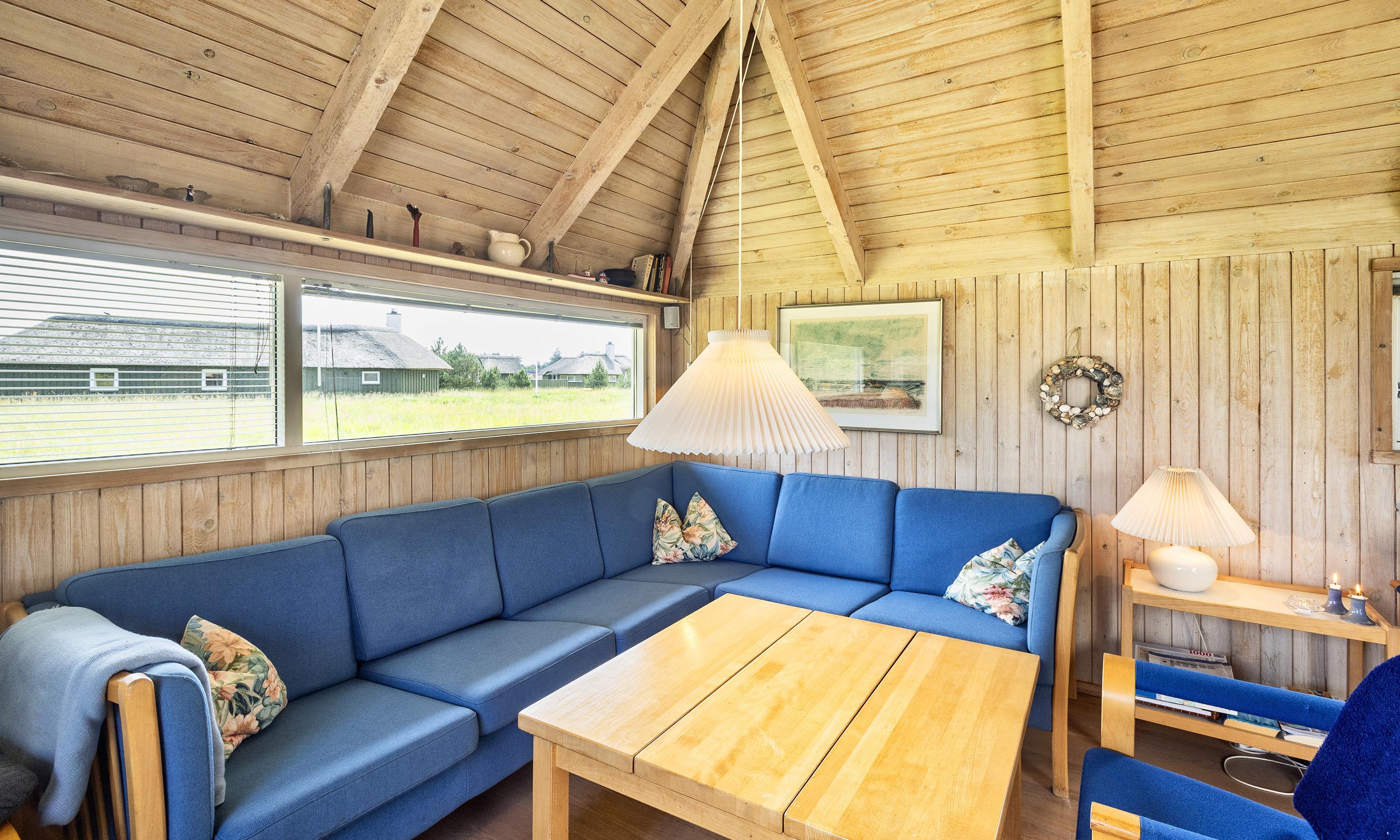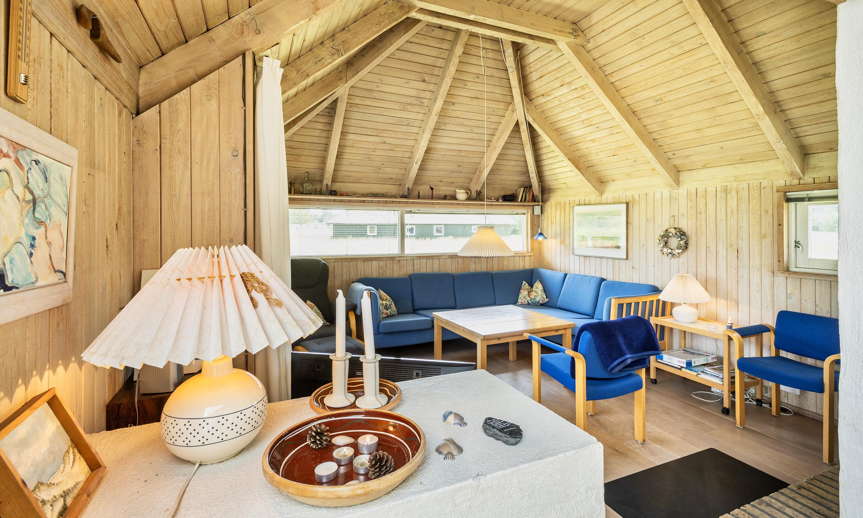 Hübsches Ferienhaus für 8 Personen auf einem großen mit grünbewachsenen Grundstück dicht an dem Wald und dem Fahrradweg zu Grærup Strand gelegen. Von dem Waldgebiet kommen die Hirsche und das Rotwild bis an die Ferienhäuser ran, um sich von den Gästen mit Obst und Gemüse verwöhnen zu lassen. Das Ferienhaus ist ca. 1,9 Km vom Strand entfernt. Es liegt allerdings dichter zum nächsten Kaufmann, für das ”morgige Brötchen” holen. Das Ferienhaus verfügt über ein gemütliches Wohnzimmer und über einem eingebauten Kamin. Das deutsche Fernsehprogramm ist über eine Parabol-Antenne zu empfangen. Chromecast. Über eine kleine Stufe vom Wohnzimmer gelangen Sie in den offenen Essbereich, der durch das Oberlicht sehr hell und freundlich erstrahlt. Dieser Essbereich, sowie die Küche sind mit einer Steinfliese ausgestattet. Die anderen Bereiche sind mit Laminat verlegt. Die Küche ist mit einem Herd mit Cerankochfeld, einem Backofen, eine Mikrowelle, einer Geschirrspülmaschine und einem Kühlschrankmit kleinem Gefrierfach ausgestattet. Das Badezimmer verfügt über ein WC, ein Handwaschbecken einer Dusche und einer Sauna. Ebenso ist die Waschmaschine hier im Badezimmer aufgestellt. Es gibt 4 Schlafzimmer im Ferienhaus: DB + DB + 2B + 2B. Zwei davon sind mit je einem Doppelbett und die anderen zwei mit Einzelbetten ausgestattet. Warmepumpe. Das Ferienhaus verfügt über einen Internetanschluss (W-Lan). Es sind max. 3 Haustiere erlaubt. Gratis Eintritt für das Badeland in Oksbøl in 2026. Das Rauchen ist nicht gestattet. Das Ferienhaus ist 1988 erbaut.