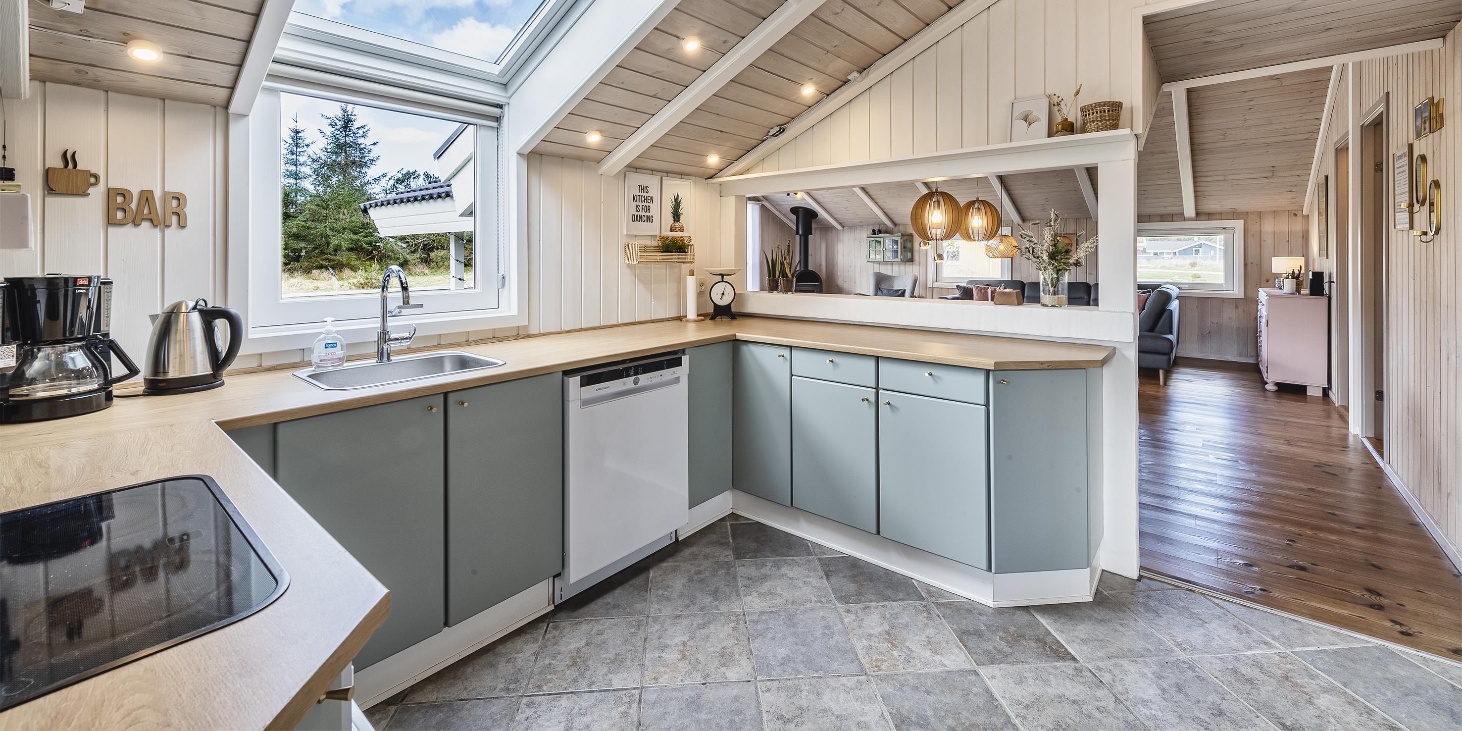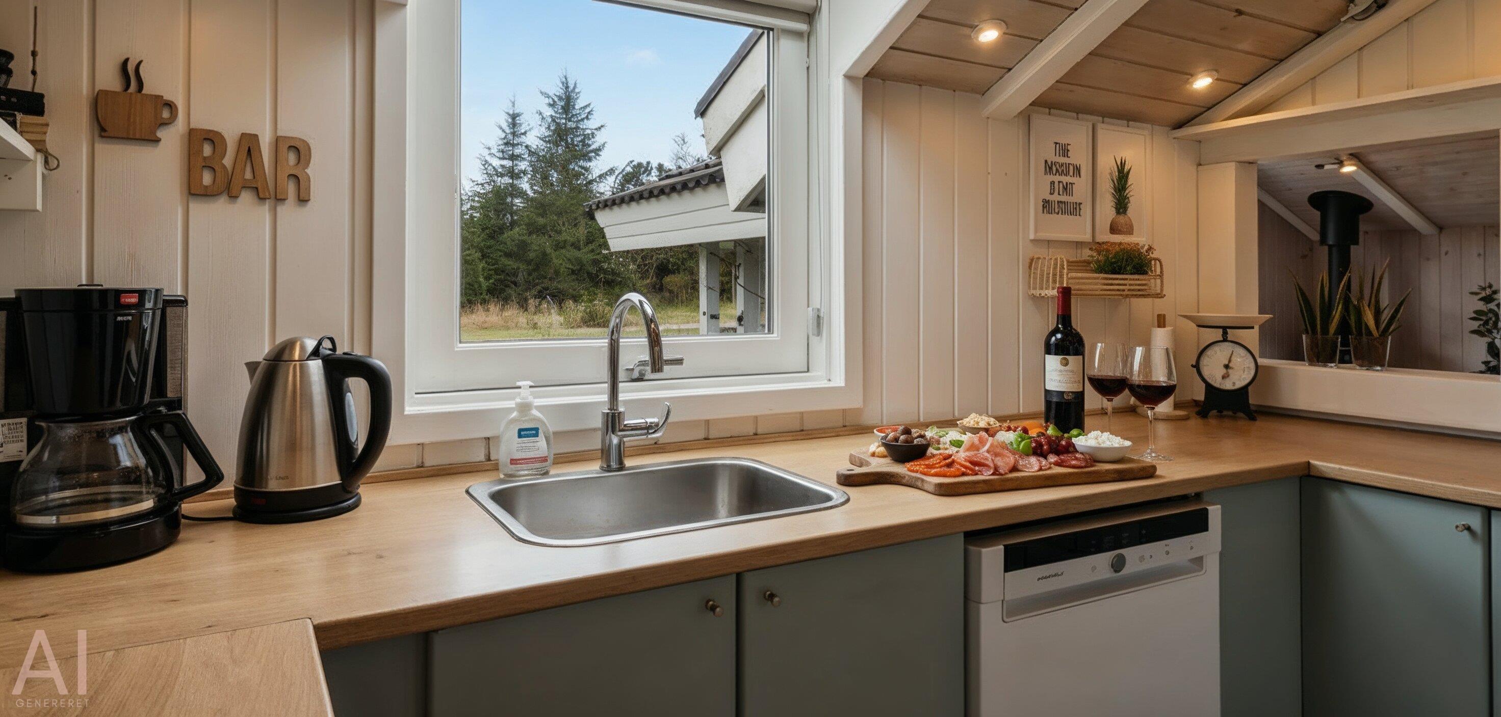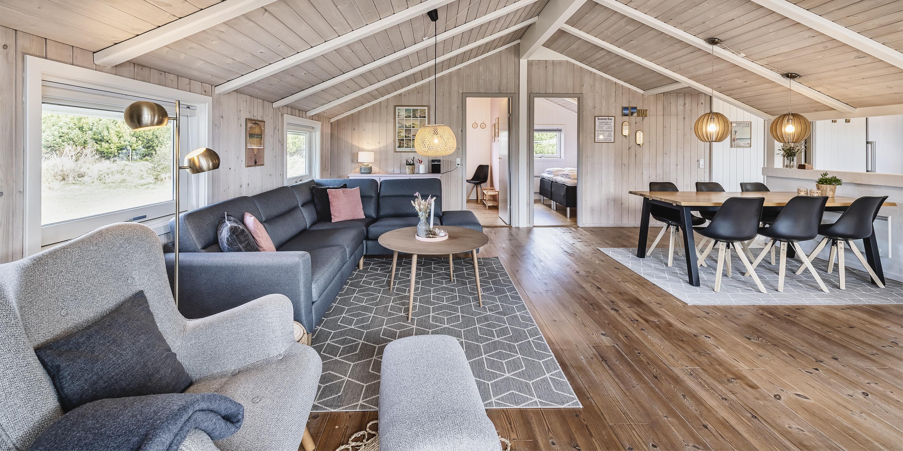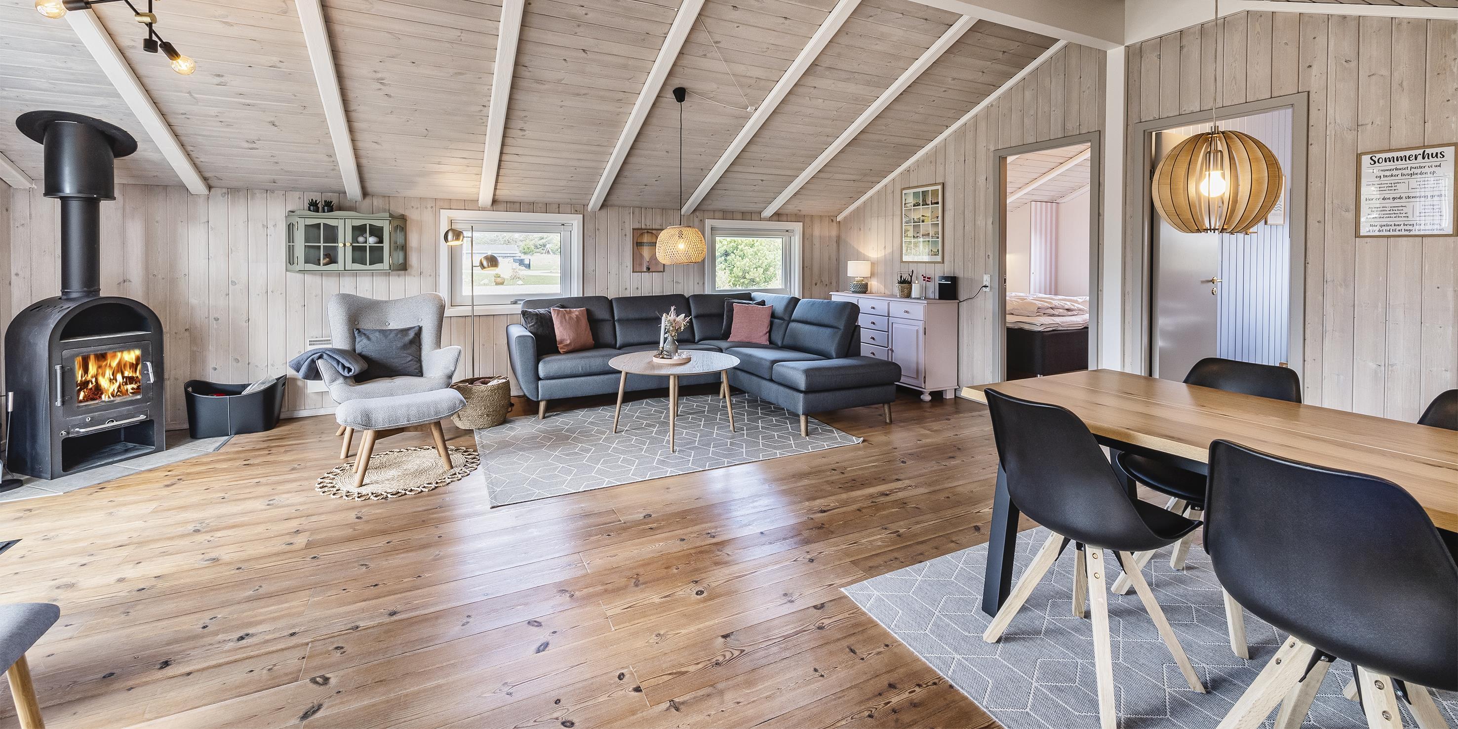 Wunderschönes und geschmackvoll eingerichtetes Ferienhaus auf einem großen offenen Grundstück gelegen. Hier zum Grundstück kommen oftmals die Rehe und Hirsche zu den Ferienhäusern und lieben es von den Gästen mit Obst und Gemüse verwöhnt zu werden. Das Ferienhaus ist für 6 Personen ausgestattet und der Strand liegt ca. 1,5 Km vom Ferienhaus entfernt. Der Wohn- und Essbereich ist mit einem hübschen Holzfußboden ausgestattet. Ein Kamin sorgt für angenehme Wärme und die dänische Gemütlichkeit. Das deutsche Fernsehprogramm empfangen Sie über eine Parabolantenne. Chromecast und Radio. Der Küchenbereich ist zum Essbereich hin offen gehalten und verfügt über einen Herd mit Cerankochfeld, einem Backofen, einer Geschirrspülmaschine, eine Kühl- und Gefrierrkombination und einer Mikrowelle. Über dem Handwaschbecken befindet sich ein Oberlicht und eine Fussbadenheizung befindet sich ebenfalls im Küchenbereich. Von hier strahlt viel Helligkeit in den Bereich. Es gibt ein Gästebad mit einem WC und einem Handwaschbecken. Das normale große Badezimmer verfügt über ein WC, ein Handwaschbecken, eine Dusche, eine Sauna und einen Whirlpool. Eine Waschmaschine und ein Trockner stehen im Hause zur Benutzung bereit. Es gibt insgesamt drei Schlafzimmer im Ferienhaus: DS + DS + 2S. In allen Schalfzimmern gibt es neue Continentalbetten. Zwei Schlafzimmer verfügen über je einem Doppelbett und das Dritte verfügt über zwei Einzelbetten. Auf der großen teilweise geschlossenen Terrasse bieten sich viele Möglichkeiten an, wie zum Beispiel Platz für einen Liegestuhl um Ihr Sonnenbad zu geniessen. Es steht den Gästen ein Weber-Kohlegrill zur Verfügung. Bitte nach dem Gebrauch gereinigt wieder zurückstellen. Das Ferienhaus verfügt über einen Internetanschluss (W-Lan). Es sind keine Haustiere erlaubt. Rauchen ist nicht erlaubt! Auf dem Grundstück befindet sich ein Schaukelstativ und einen Sandkasten für die kleinen Gäste. Das Ferienhaus wurde 2000 erbaut.