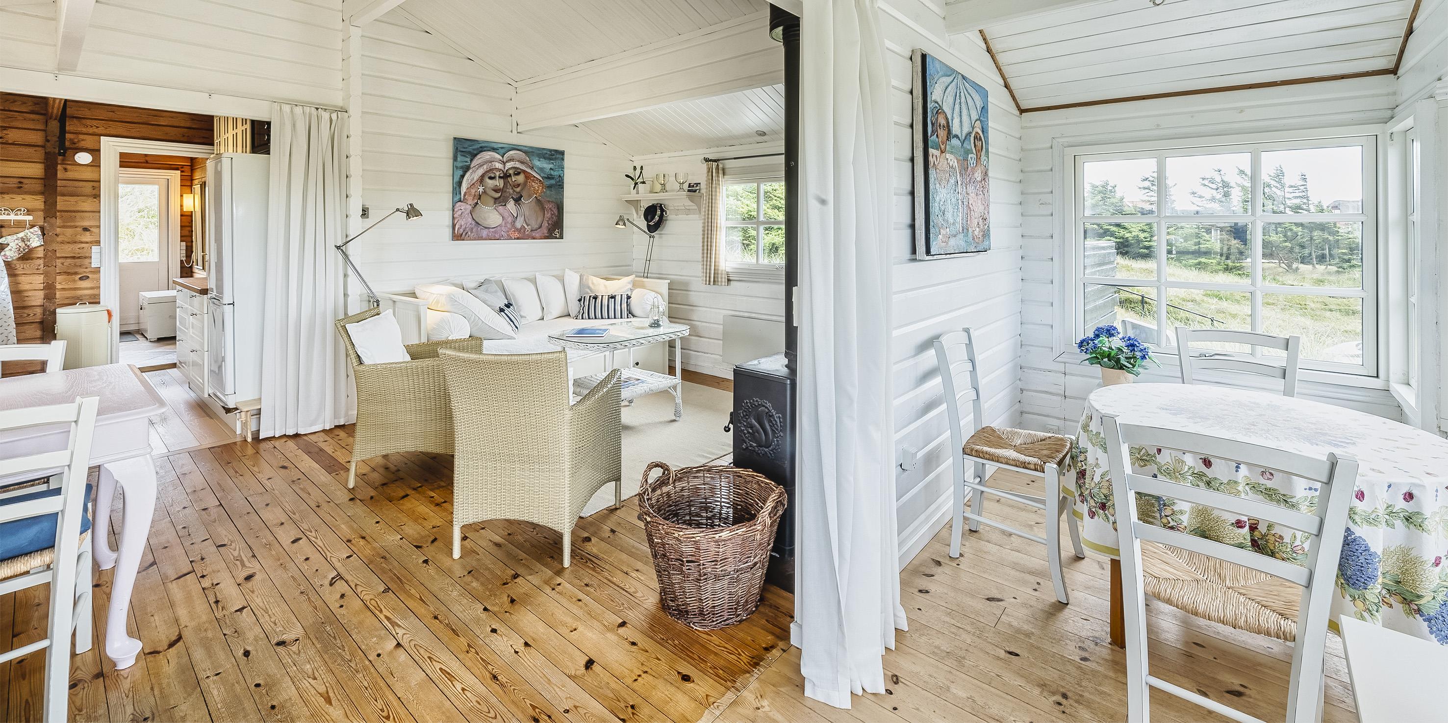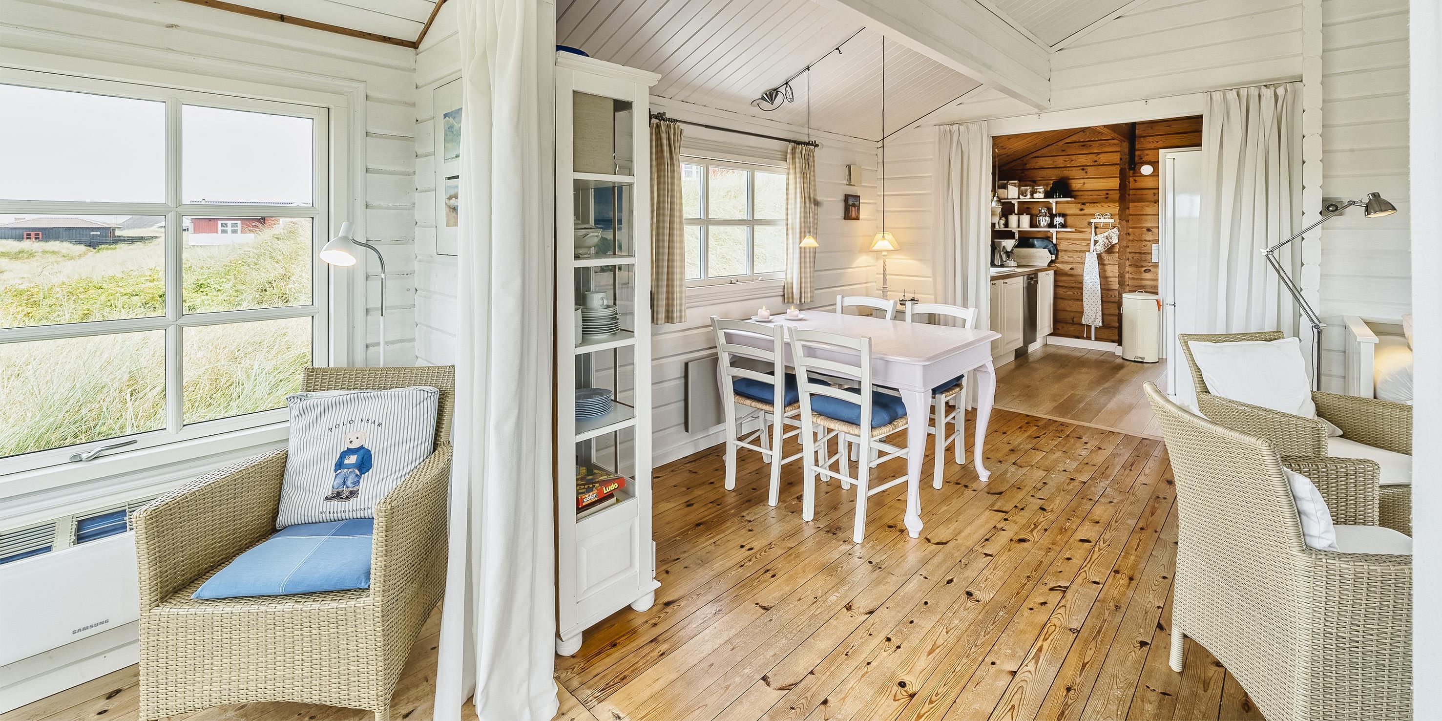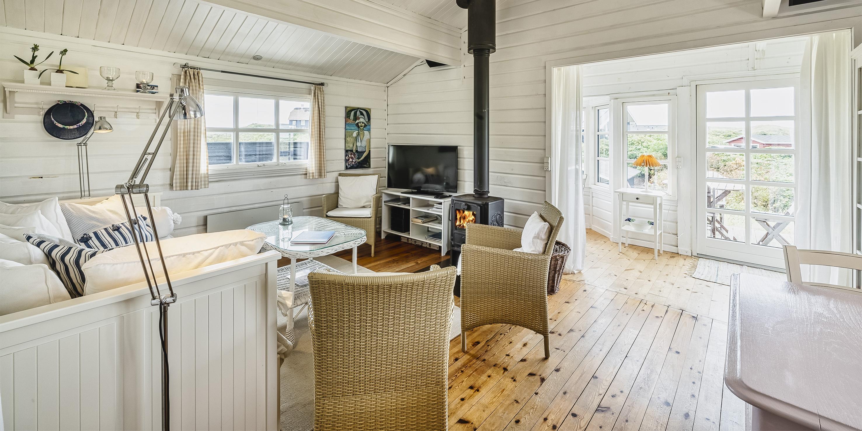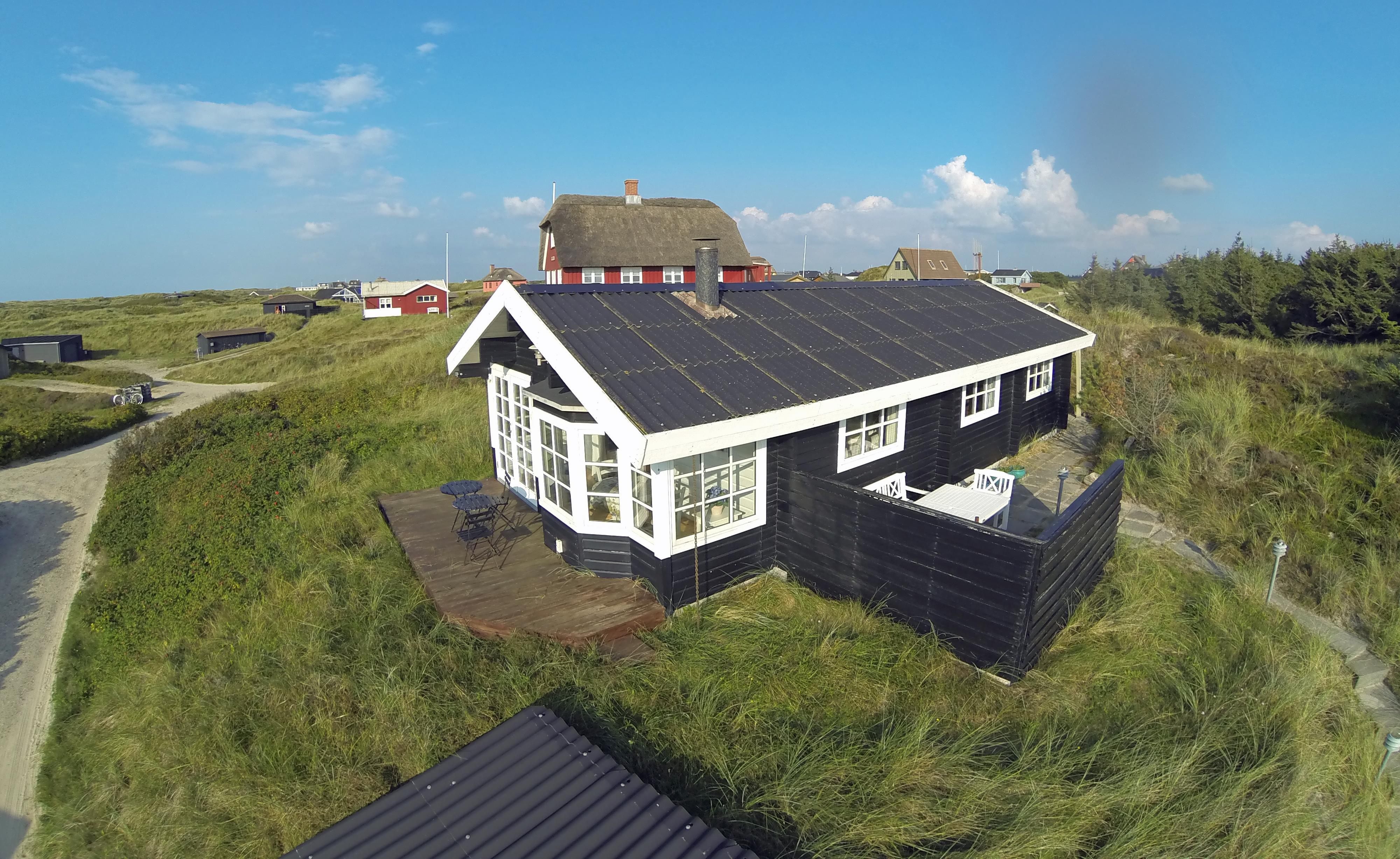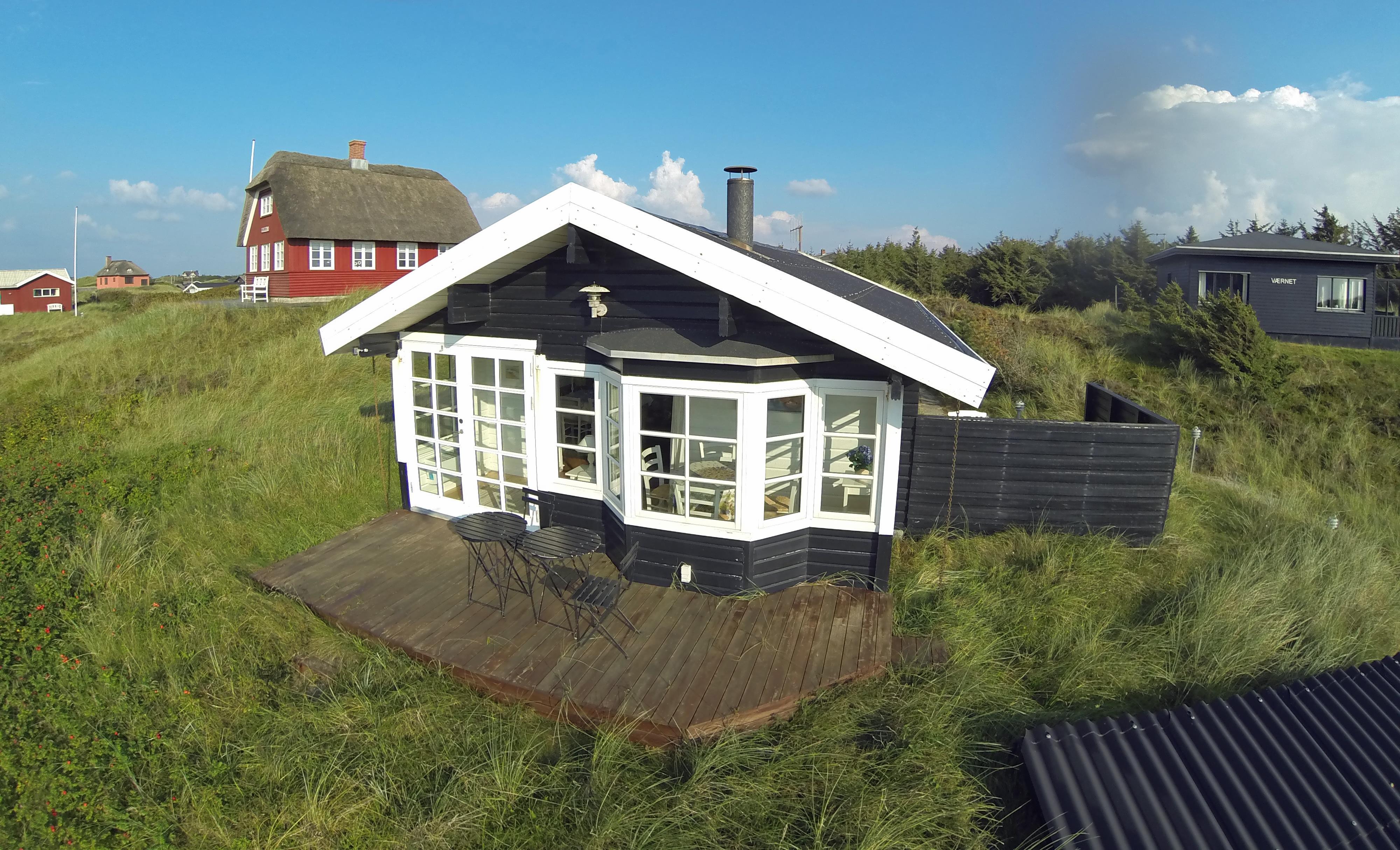 Dieses kleine, gemütliche Puppenstuben ähnliche Ferienhaus liegt in Mitten der Dünen und ist für 4 Personen ausgestattet. Der Strand ist Sage und Schreibe nur 200 Meter entfernt. Innen ist das Ferienhaus komplett mit Holz versehen, die Wände, die Böden und die Decken. Der Stil im Hause ist ähnlich wie in einem Blockbohlenhaus. Im Wohnbereich befindet sich der Morsø-Kamin und gemütliche Sitzmöbeln. Das deutsche Fernsehprogramm empfangen Sie über eine Parabolantenne.Zusätzlich befindet sich eine Wärmepumpe im Ferienhaus. Mit dieser Wärmepumpe haben Sie die Möglichkeit die Stromkosten zu senken, da sie energiesparend ist.Der Essbereich ist im Wintergarten platziert und sehr hell und freundlich durch die vielen Fenster. In der Küche finden Sie ein Herd mit Cerankochfeld, einen Backofen, eine Mikrowelle, eine Geschirrspülmaschine und eine Kühl- und Gefrierkombination. Es gibt zwei Schlafzimmer im Ferienhaus: DB + 2B. Das Badezimmer verfügt über ein WC, ein Handwaschbecken und eine Dusche. Zum Duschbereich gibt es eine kleine Stufe nach unten. Eine Waschmaschine kann in den Sommermonaten benutzt werden. Diese befindet sich in einem nicht isolierten Abstellraum am Ferienhaus. Es gibt 2 Terrassen am Haus. Eine Holzterrasse, die offen ist und neben an eine geflieste Terrasse die mit einem Sichtschutz versehen ist befinden sich am Ferienhaus. Es ist 1 kleinen Hund erlaubt. Auch das Rauchen im Haus ist nicht erlaubt. Für EV Autos, Type 2 Wallbox montiert beim Parkplatz. Auch Möglichkeit für 230V Ladesteck. Wird im Haus eingeschaltet. 5 meter Ladekabel mitbringen. Das Ferienhaus wurde 1976 erbaut und in 2005 renoviert.
