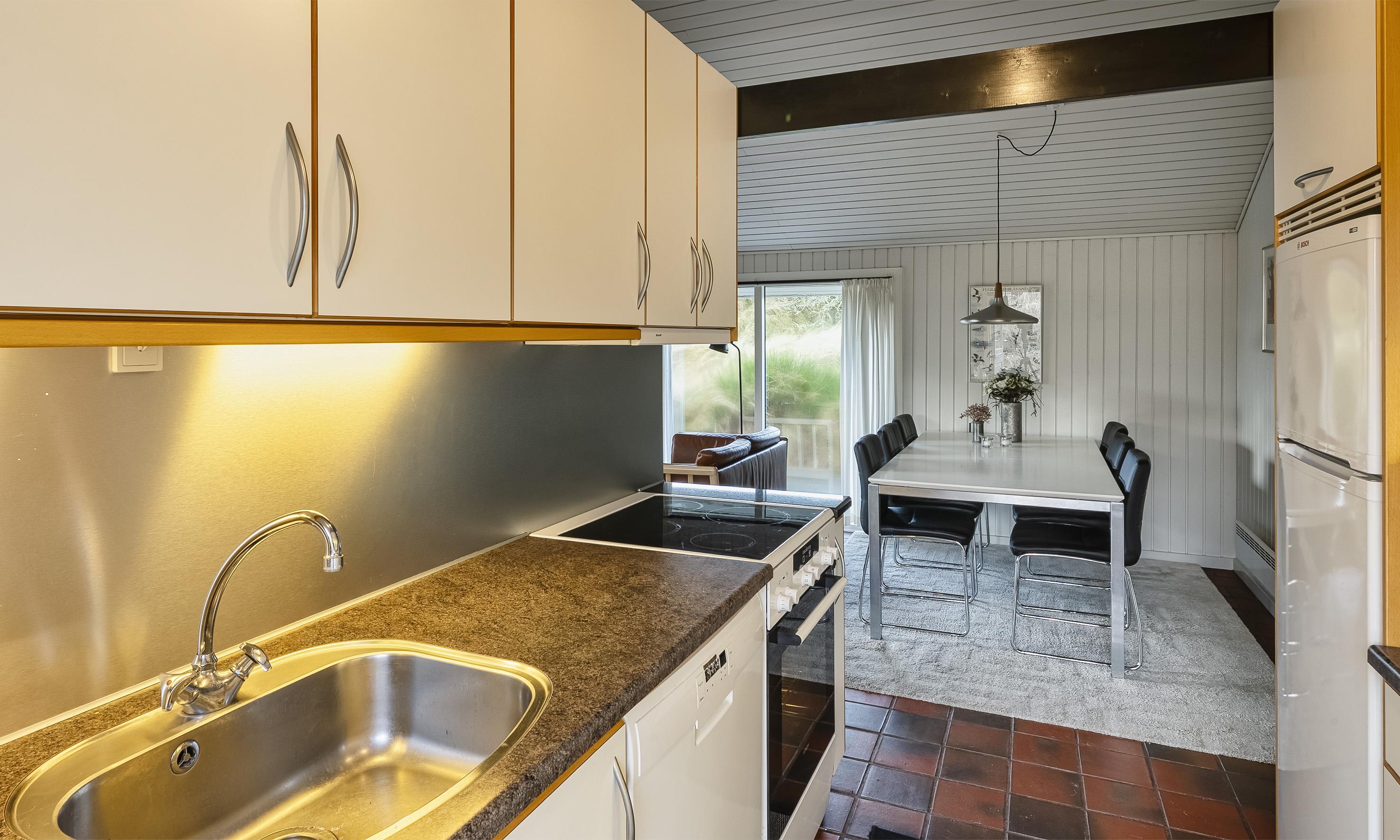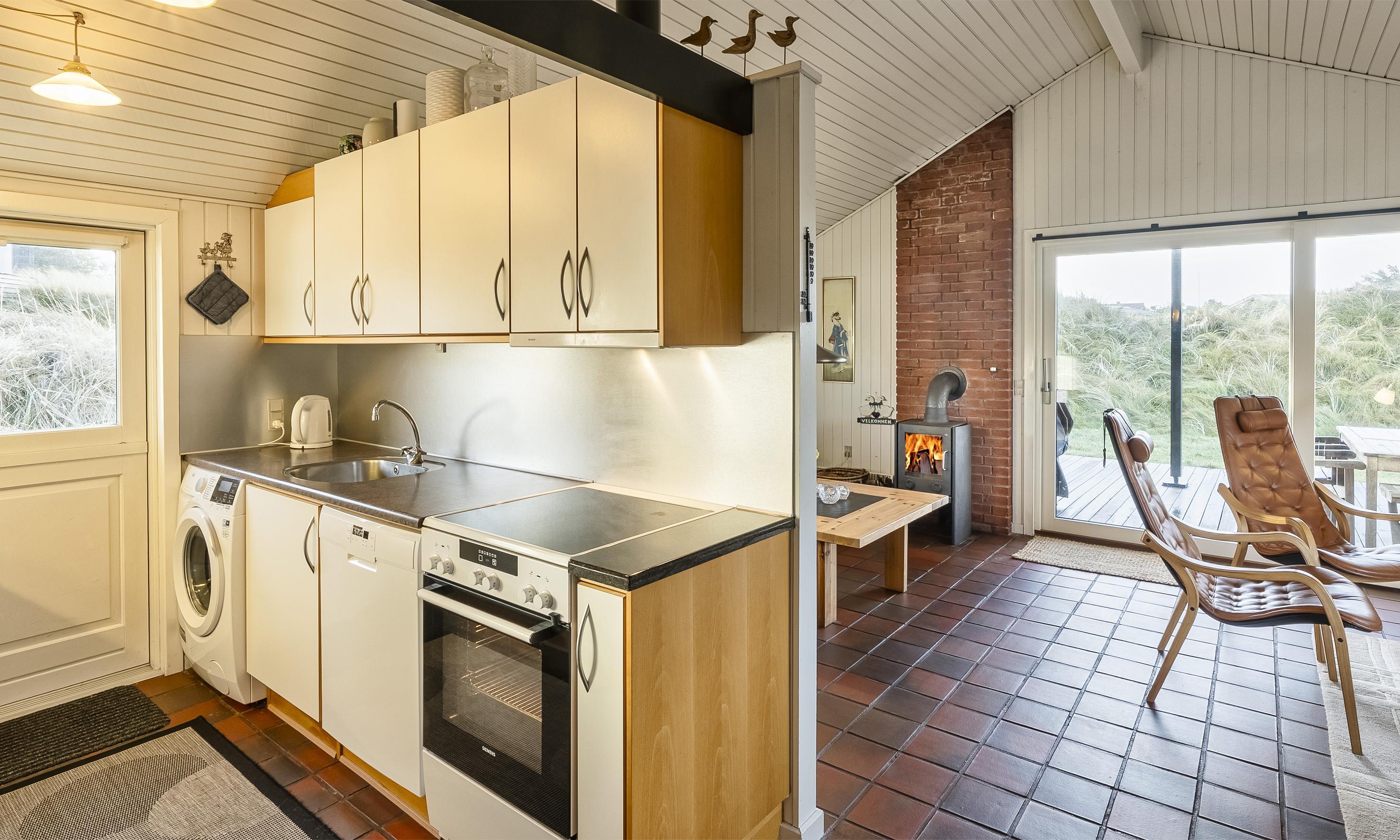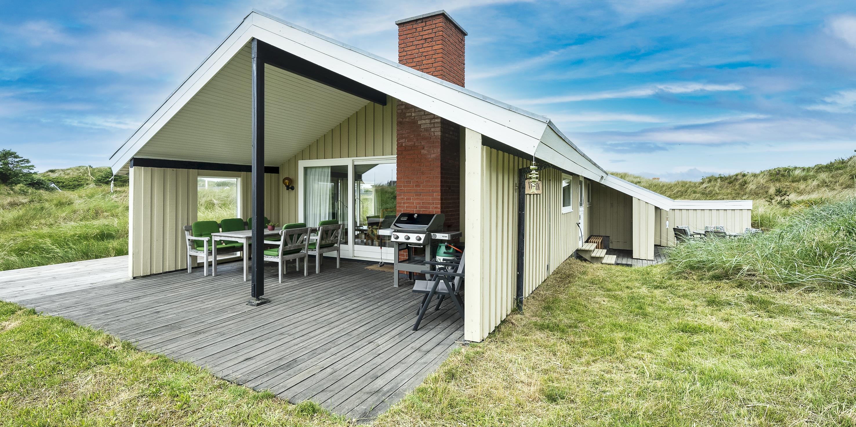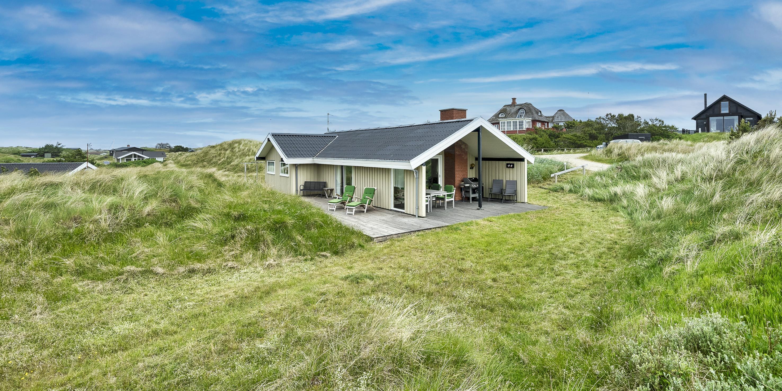 Schönes und gemütlich eingerichtetes Ferienhaus auf einer Düne gelegen und in Mitten der Dünenlandschaft. Das Ferienhaus ist für 6 Personen ausgestattet. Der Strand ist etwa 300 Meter vom Haus entfernt. Der Wohn- und Essbereich ist mit einer Steinbodenfliese verlegt. Das Wohnzimmer ist in zwei Bereiche aufgeteilt. Der Wohn- und Essbereich hat einen Fliesenboden. Das Wohnzimmer ist in zwei Bereiche unterteilt: eine gemütliche Ecke mit Holzofen und ein Fernsehbereich. Das deutsche Fernsehprogramm empfangen Sie über eine Parabolantenne. Neue 49" Fernseher mit Smart TV, ein DVD-Abspielgerät ist auch vorhanden. Es gibt zusätzlich eine Wärmepumpe im Ferienhaus. Mit deser Wärmepumpe haben Sie die Möglichkeit die Stromkosten zu senken, da die Wärmepumpe energiesparend ist. Der Speiseplatz liegt gegenüber der Küche. Die Küche ist einfach gehalten und verfügt über einen Herd mit Cerankochfeld, einem Backofen, einer Geschirrspülmaschine, einer Mikrowelle und einer Kühl- und Gefrierkombination. Die zum Haus gehörende Waschmaschine ist ebenfalls in der Küche untergebracht. Das Badezimmer verfügt über ein WC, ein Handwaschbecken und eine Dusche. Den Gästen stehen insgesamt drei Schlafzimmer zur Verfügung: 2B + 2B + DB. Ein Schlafzimmer hat ein Doppelbett und die beiden anderen verfügen je über zwei Einzelbetten. Das Ferienhaus verfügt über einen Internetanschluss (W-Lan 500/500 Mbit). Gasgrill inklusive Gas. Desweiteren sind zwei Terrassen am Haus. Bei der großen Holzterrasse am hinteren Bereich des Hauses ist sogar ein Teil direkt am Ferienhaus überdacht. Es sind keine Haustiere erlaubt. Das Rauchen ist nicht gestattet. Das Ferienhaus ist 1976 erbaut worden. Ladestation für Elektroautos Typ 2. Kabel muss selbst mitgebracht werden.