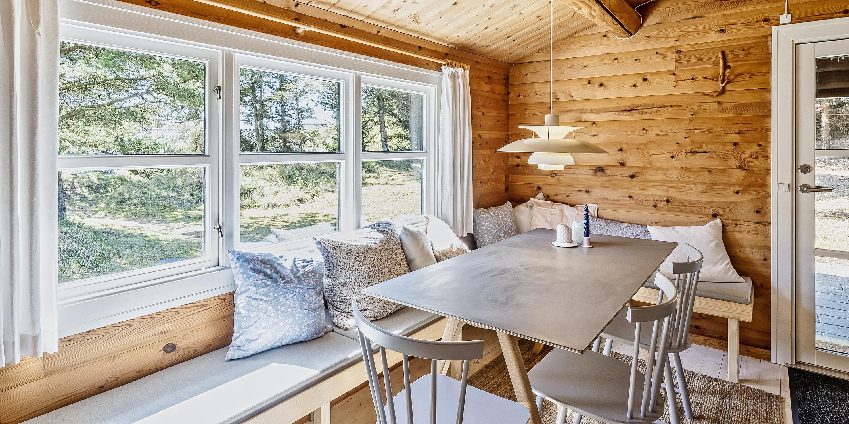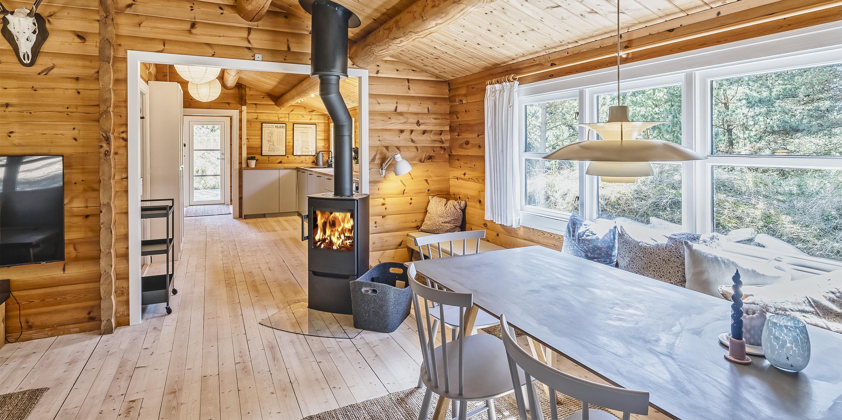 Gemütliches renoviertes Blockhaus, mit freiliegenden runden Balken, auf einem großen abgeschlossenen uneinsehbaren Naturgrundstück. Das Ferienhaus ist für 6 Personen ausgestattet und der Strand ca. 250 Meter vom Haus entfernt. Rund um das Haus erstreckt sich eine dichte Vegetation, die trotz der kurzen Entfernung zum Strand Windschutz bietet. Vom Haus führt ein direkter Weg zum Strand.