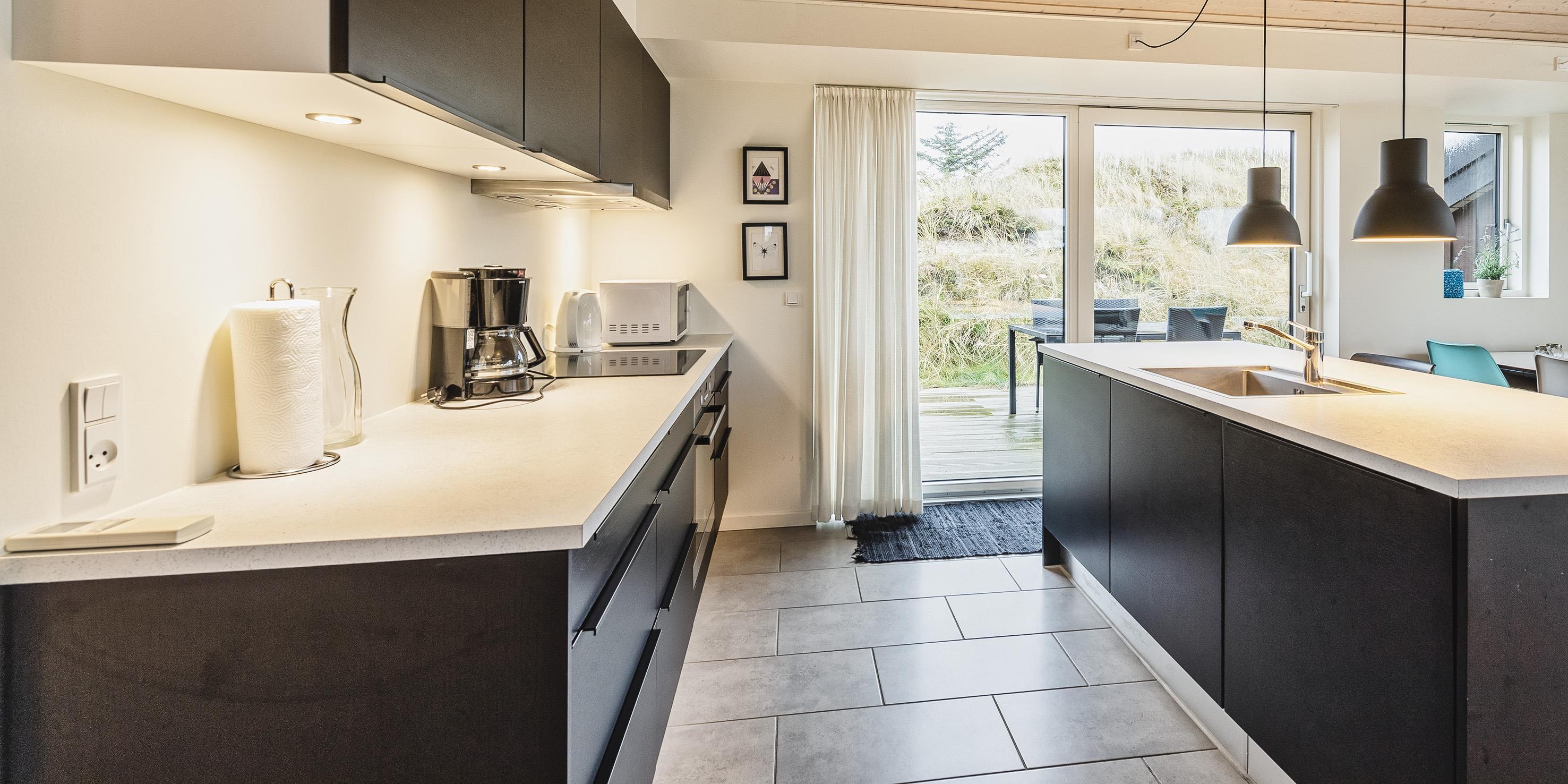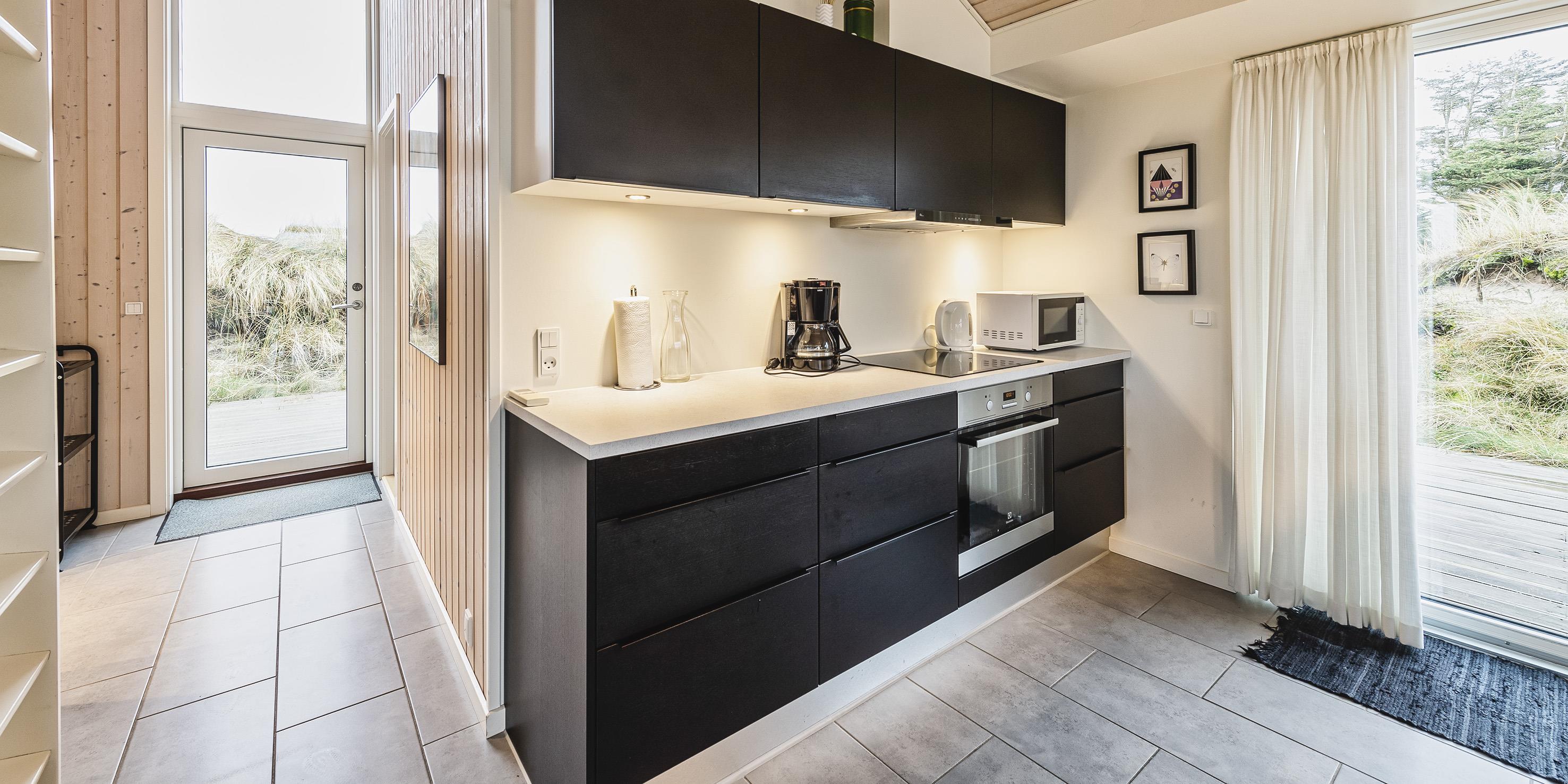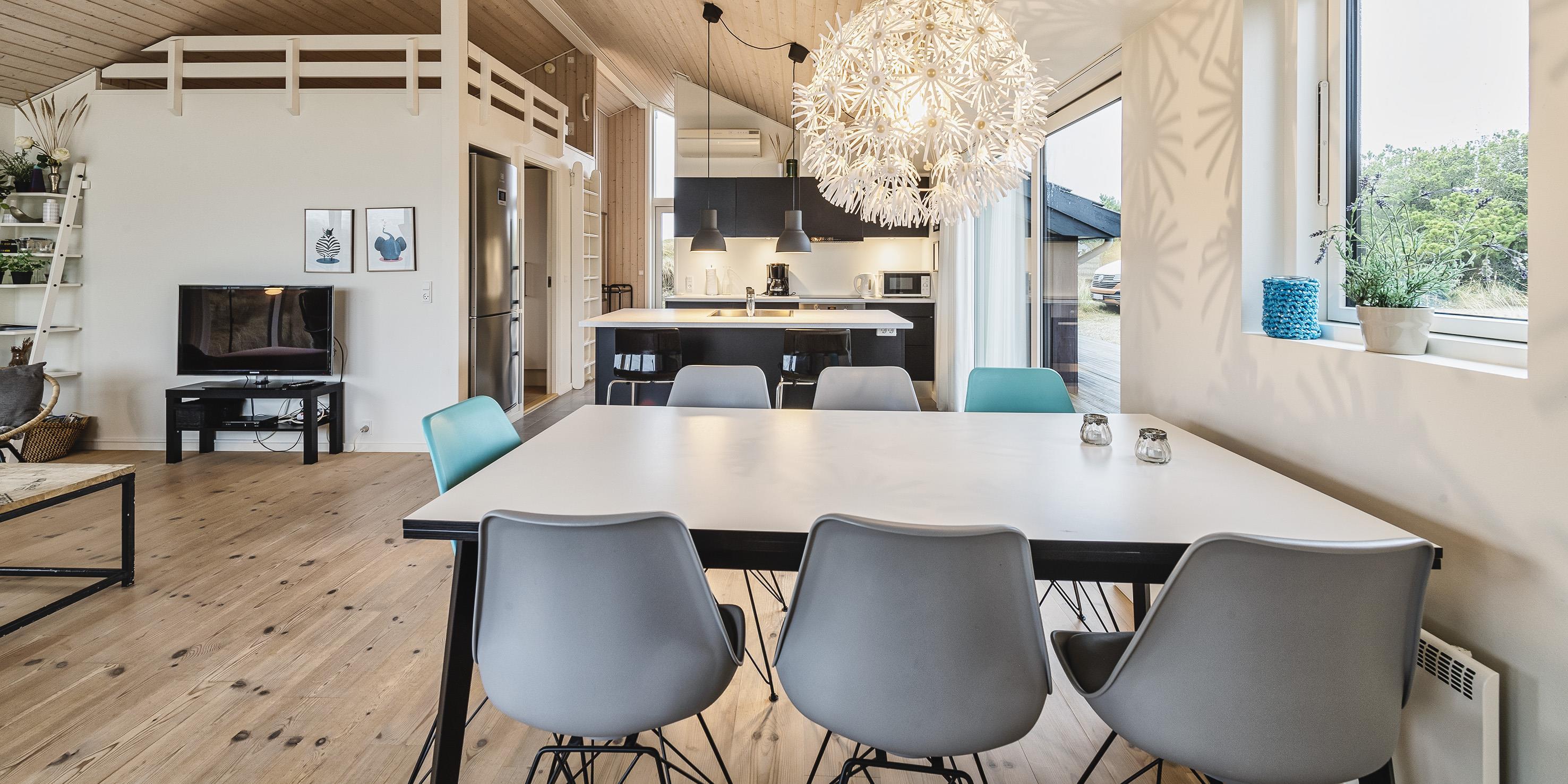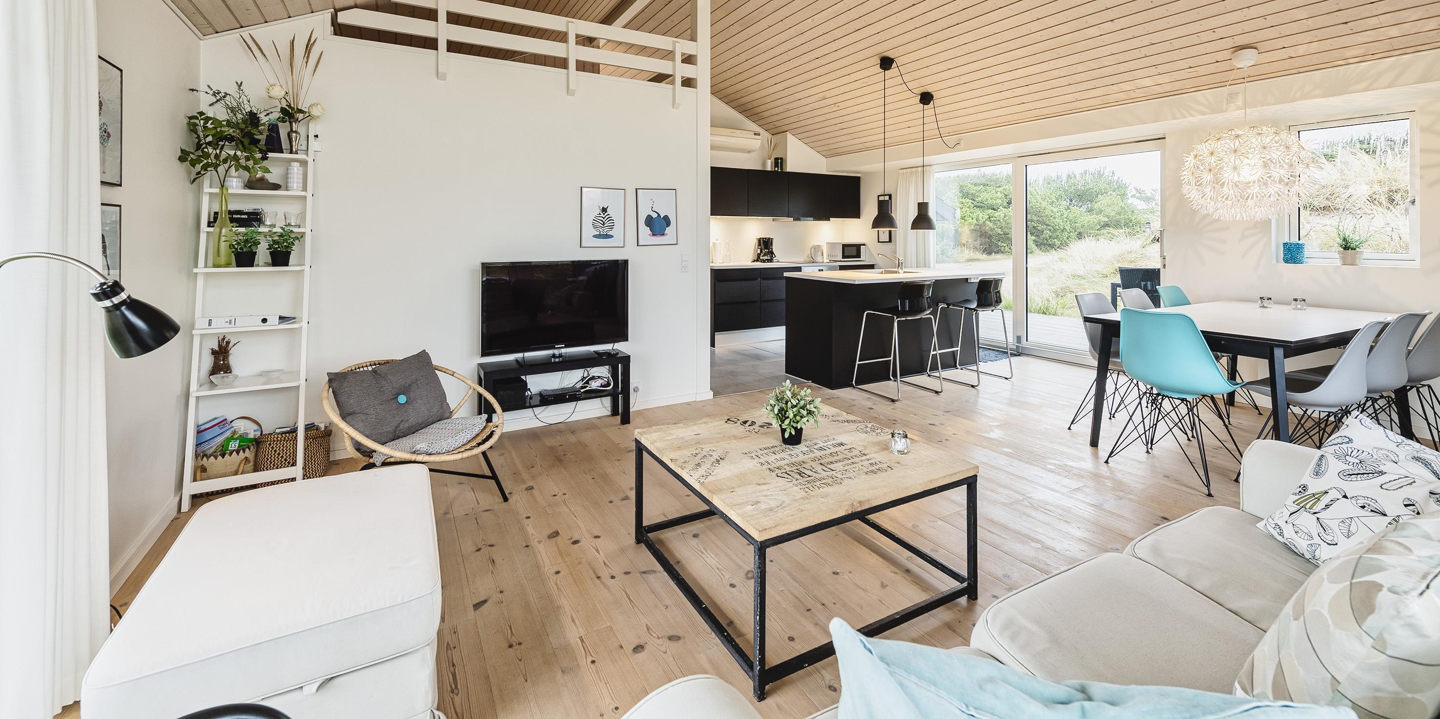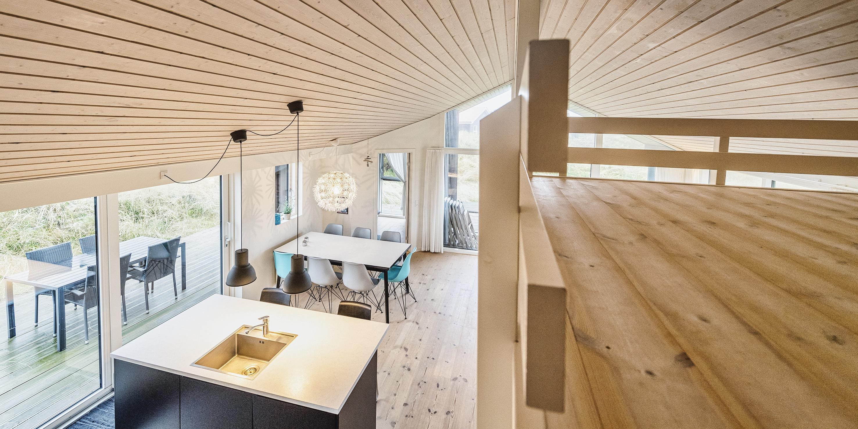 Attraktives, flottes und relativ neues Ferienhaus auf einer Düne gebaut und für 6 Personen ausgestattet. Es sind rund 300 Meter vom Ferienhaus zum Strand. Das ganze Ferienhaus ist mit einem tollen Holzfußboden verlegt, außer die Bereiche der Küche, des Badezimmers und des Eingangs. Das Wohnzimmer ist geschmackvoll eingerichtet und durch die großen Fenster kommt viel Licht in das Haus. Ein kleiner Hems verleitet zum relaxen ein. Es befindet sich eine Warmepumpe im Ferienhaus. Mit dieser Warmepumpe haben sie die Möglichkeit die Stromkosten zu senken, denn die Warmepumpe ist energiesparend. Das deutsche Fernsehprogramm ist über eine Parabolantenne zu empfangen. Google Chromecast. Die offene Küche ist sehr modern und verfügt über einen Herd mit Cerankochfeld, einem Backofen, einer Geschirrspülmaschine, einer Mikrowelle und einer Kühl- und Gefrierkombination. Das Badezimmer ist mit einem WC, einem Handwaschbecken, einer Dusche und einer Fußbodenheizung ausgestattet. Die Waschmaschine ist im Badezimmer untergebracht. Das Ferienhaus verfügt über drei Schlafzimmer: DB + DB + 2B. Das Ferienhaus verfügt über einen Internetanschluss (W-Lan). Es gibt eine große Holzterrasse, die fasst um das ganze Ferienhaus verlegt ist. Ein Teil davon ist sogar überdacht. Für dieses Ferienhaus entstehen Zusatzkosten für den Wasserverbrauch. Es sind keine Haustiere erlaubt. Das Rauchen im Ferienhaus ist auch nicht erlaubt. Das Ferienhaus ist in 2014 gebaut worden.