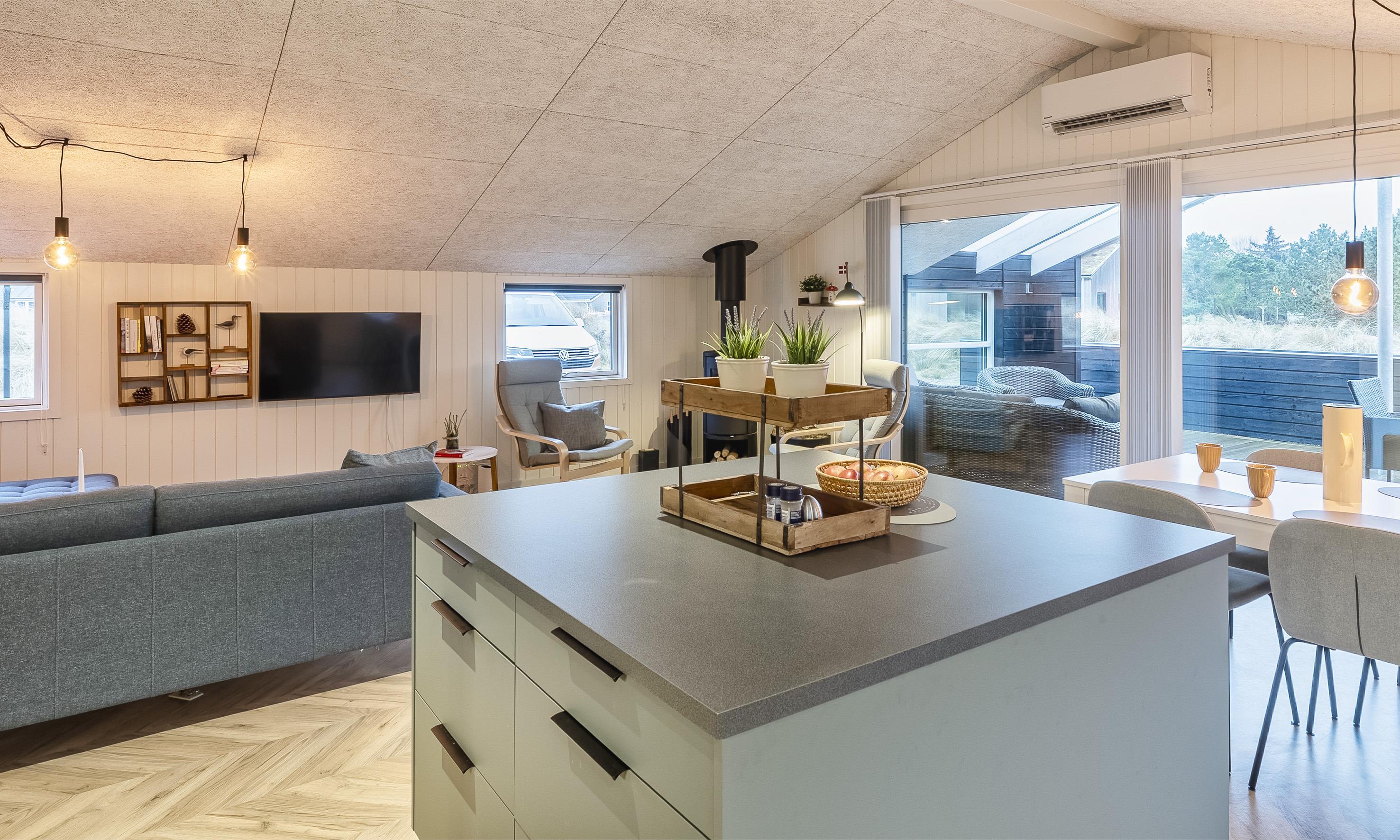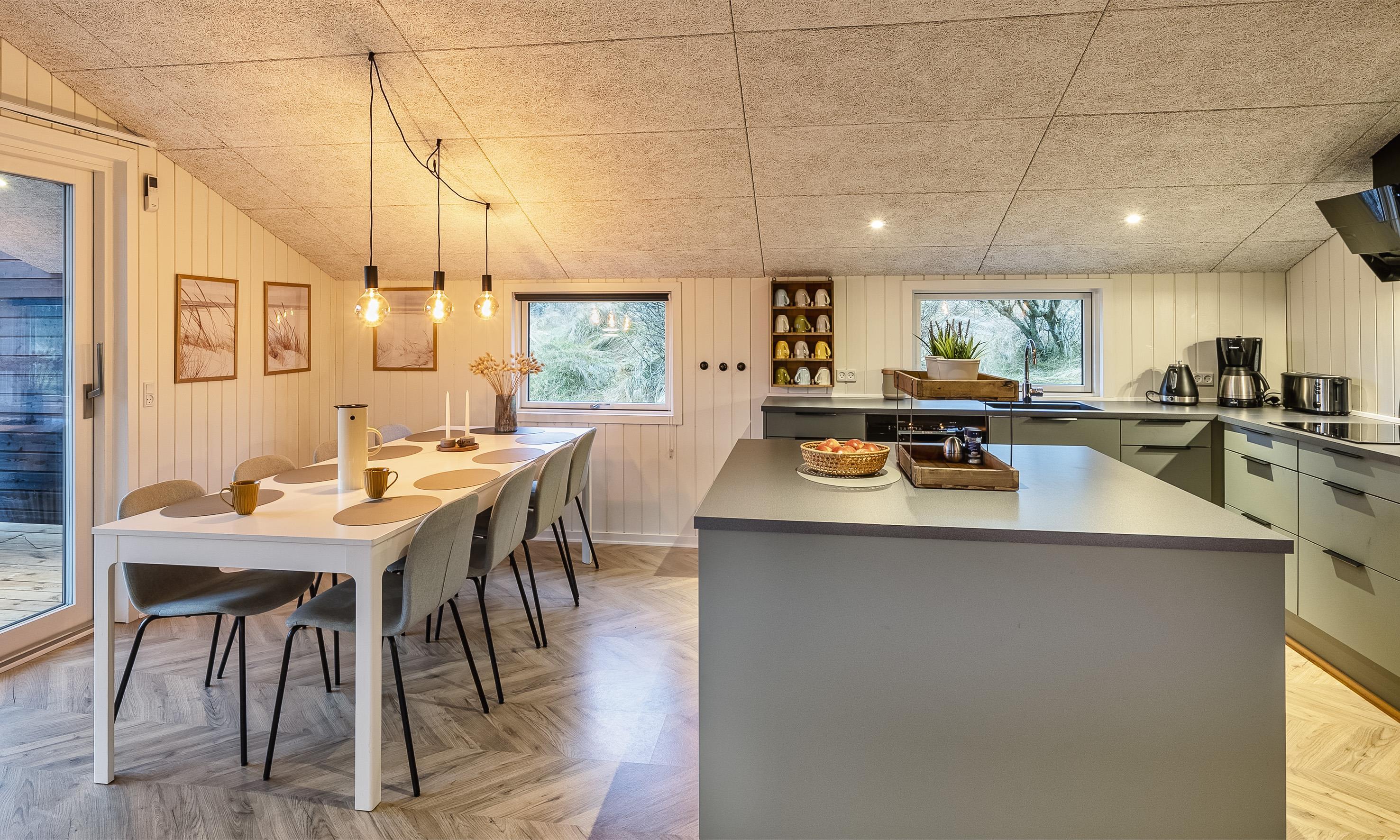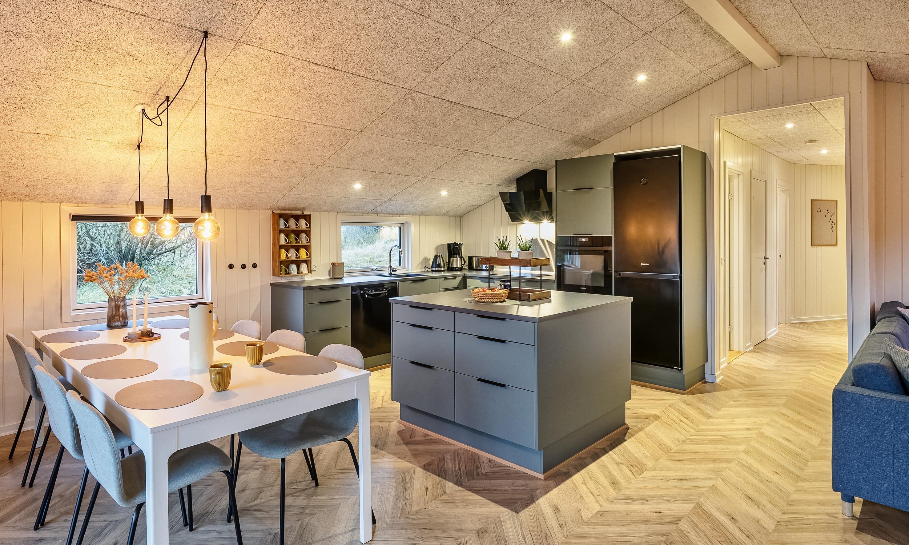 Über den Anbieter Norlys stehen etwa 10 deutsche sowie mehrere dänische TV-Kanäle zur Verfügung. Die Küche ist gut ausgestattet – mit Cerankochfeld, Backofen in Arbeitshöhe, Geschirrspüler, Mikrowelle und einer Kühl-Gefrierkombination.