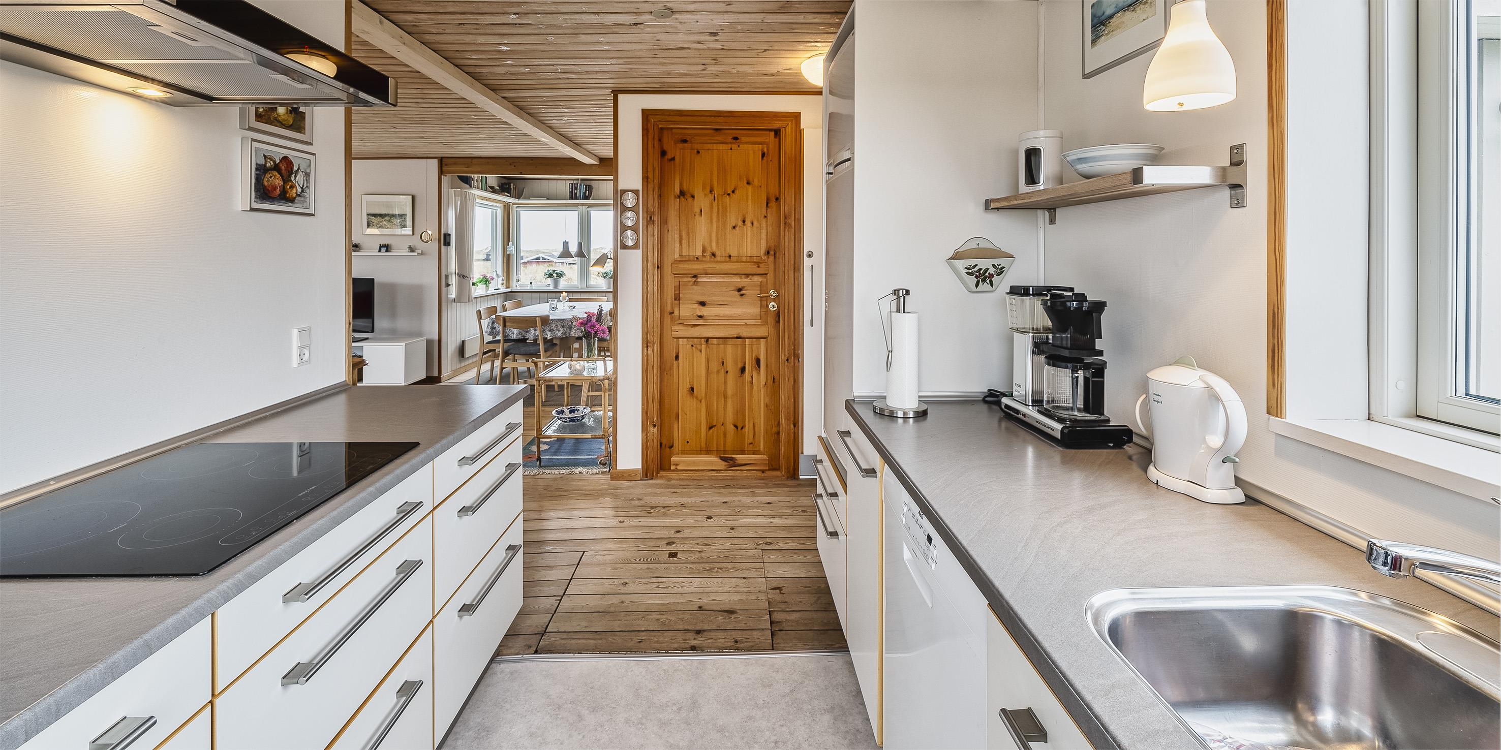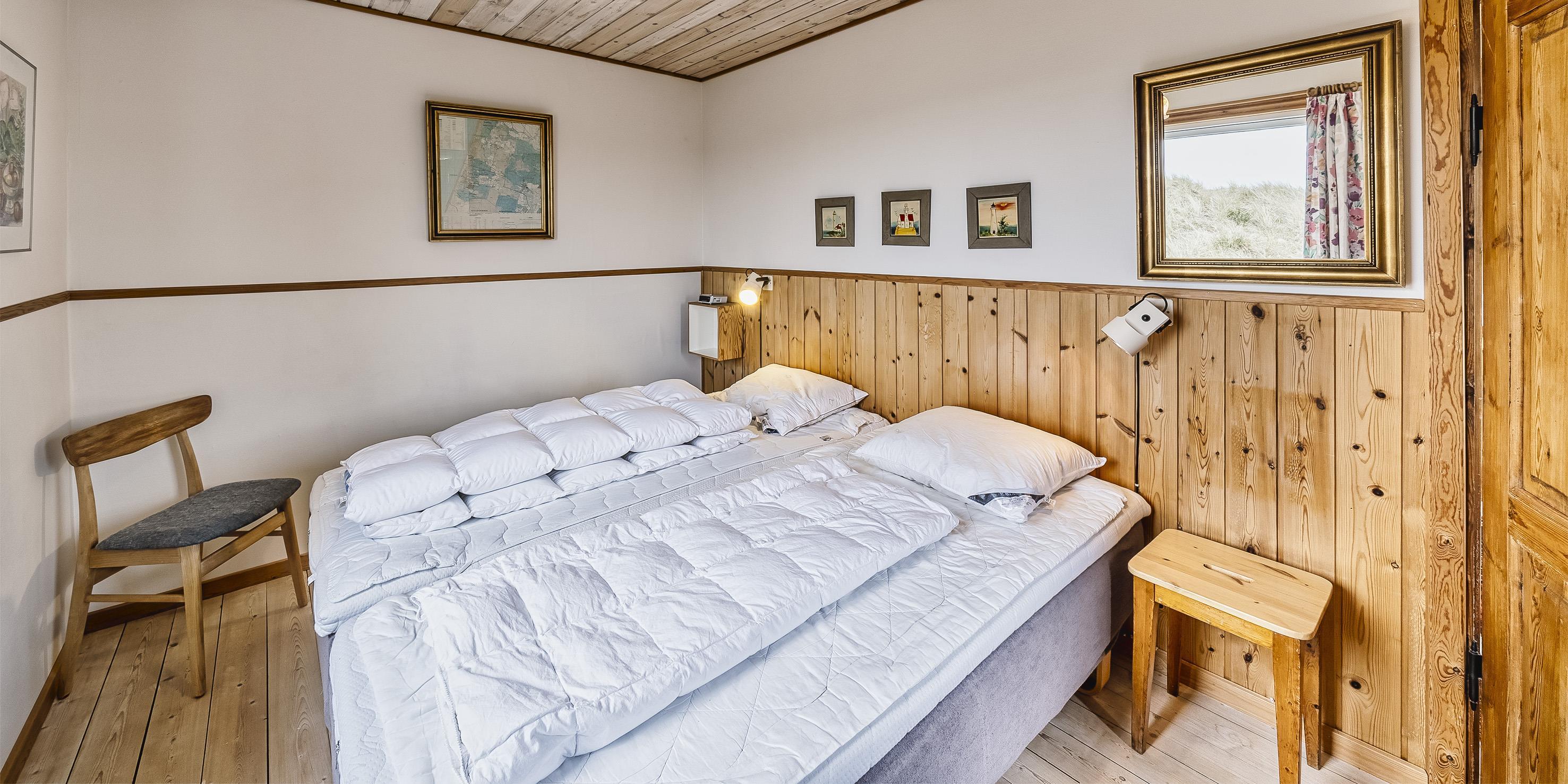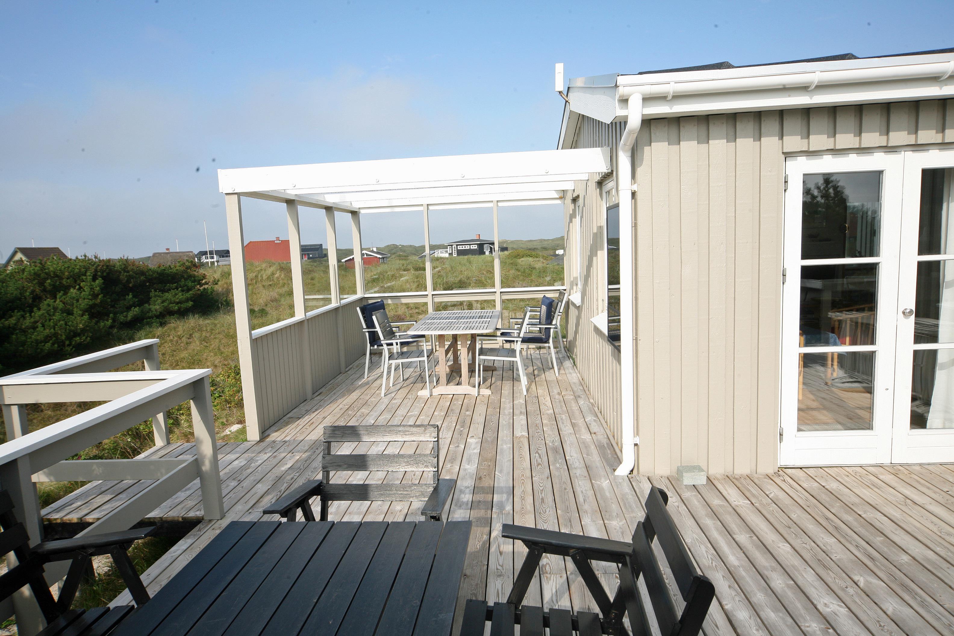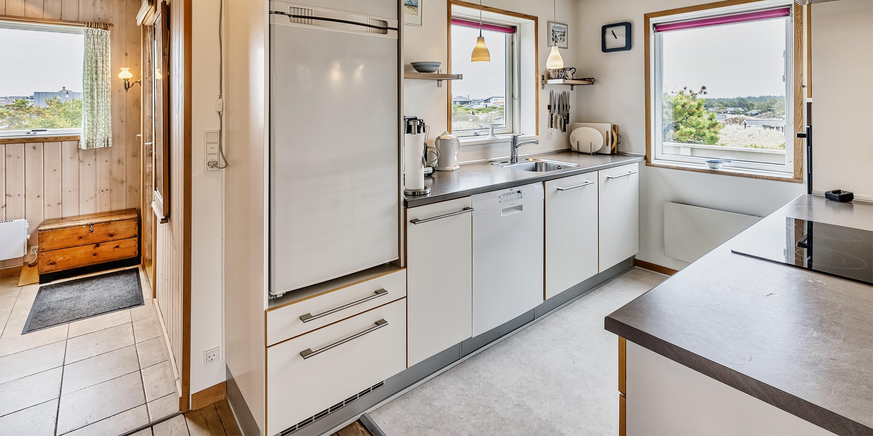 Helles und freundliches Ferienhaus mit Namen ”Højbo Nord” auf einer Düne in Mitten der Dünenlandshaft gelegen. Das Ferienhaus ist für 6 Personen ausgestattet und liegt ca. 400 Meter vom Strand entfernt. Der Wohn- und Essbereich, sowie die Schlafzimmer sind mit einem hübschen Holzfußboden verlegt. Dies bringt ein besonderes Wohlbefinden ins Haus. Im Wohnbereich ist der Kamin aufgestellt und ein Fernsehgerät. Das deutsche Fernsehprogramm empfangen Sie über eine Parabolantenne. Es gibt auch Chrome Cast. Der Essbereich ist in einer separaten Ecke untergebracht. Die Küche verfügt über einen Herd mit Cerankochfeld, einem Backofen in Arbeitshöhe, einer Geschirrspülmaschine, einer Mikrowelle und einer Kühl- und Gefrierkombination. Das Badezimmer ist gefliest und verfügt über ein WC, ein Handwaschbecken und eine Dusche. Die Waschmaschine ist hier im Badezimmer auch untergebracht. Es stehen den Gästen drei Schlafzimmer zur Verfügung: DB + 2B + 2B. Ein Schlafzimmer verfügt über ein Doppelbett, ein Schlafzimmer über zwei Einzelbetten und das Dritte Schlafzimmer verfügt über Etagenbetten. In dem separaten Eingangsbereich ist reichlich Platz für Jacken und Schuhe. Der Terrassenbereich ist hübsch angelegt mit einer Holzterrasse und gibt einen tollen Blick auf die Dünen und das Ferienhausgebiet. Das Ferienhaus verfügt über einen Internetanschluss (W-Lan). Es sind keine Haustiere erlaubt. Rauchen ist nicht erlaubt. Es befindet sich eine Warmepumpe im Ferienhaus. Mit dieser Warmepumpe haben sie die Möglichkeit die Stromkosten zu senken, denn die Warmepumpe ist energiesparend. Das Ferienhaus ist 1934 erbaut worden und in 1996 renoviert.