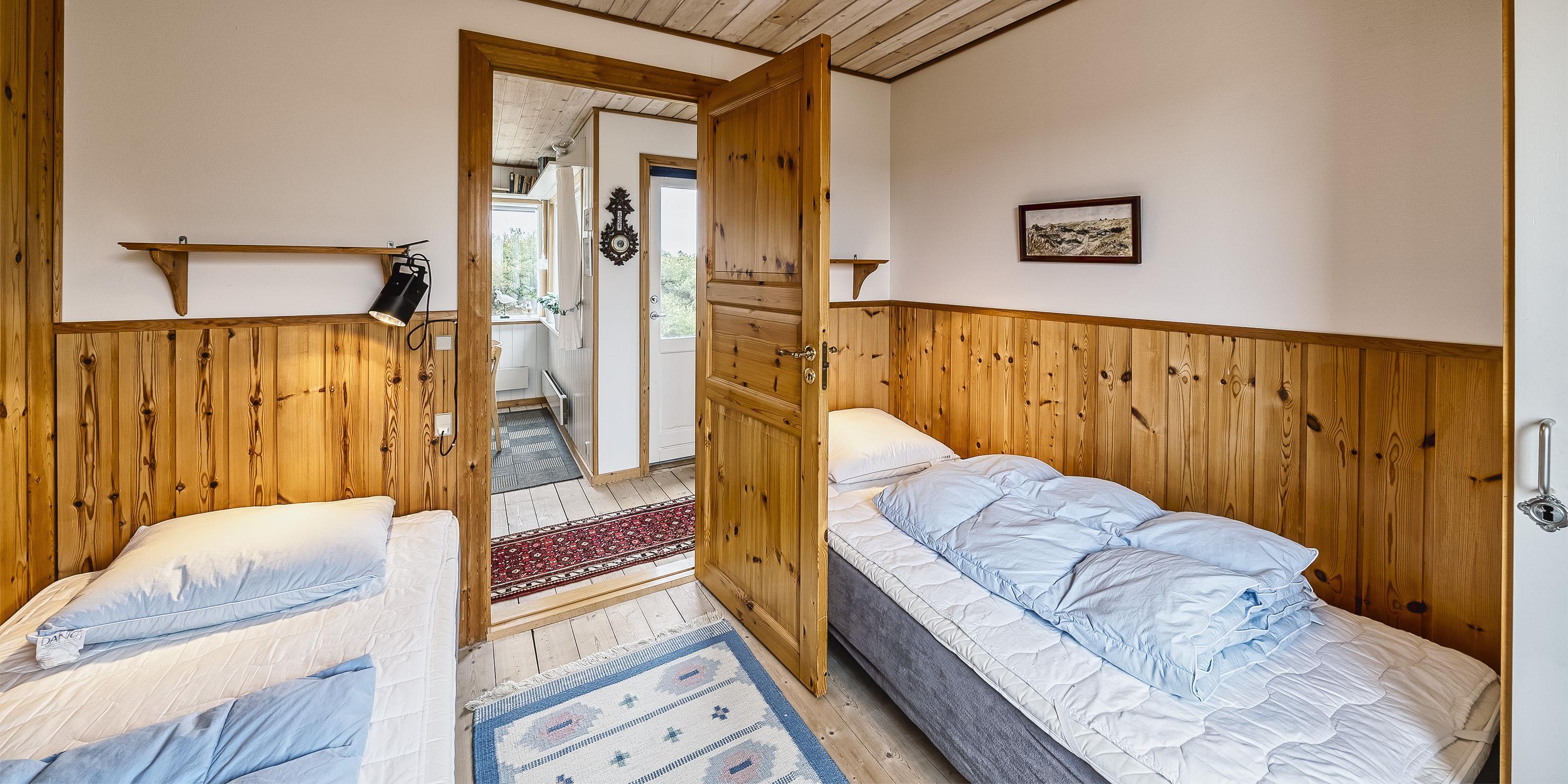 3 Schlafzimmer. 1 mit Doppelbett 180x200 cm. 1 mit 2 Einzelbetten (je 90x200 cm). 1 mit Etagenbett.