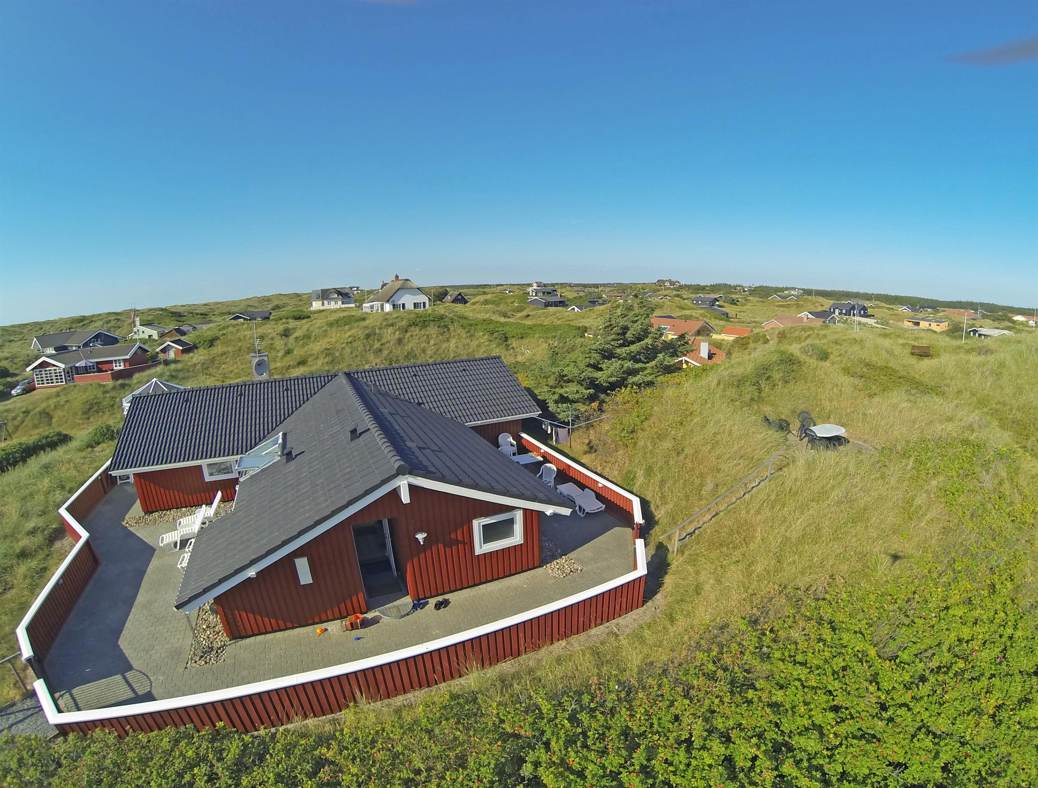 Schönes Ferienhaus auf einer Düne gelegen und in toller Umgebung. Über einen kleinen Treppenaufstieg gelangen Sie zum Ferienhaus. Das Ferienhaus ist für 8 Personen ausgestattet. Der Strand ist ca. 150 Meter vom Haus entfernt. Das Wohnzimmer ist gefliest und der Kamin ist in diesem Bereich aufgestellt. Das deutsche Fernsehprogramm empfangen Sie über eine Parabolantenne. Desweiteren gibt es Smart TV im Hause. Über eine kleine Stufe gelangen Sie in den Ess- und Küchenbereich. Die Küche verfügt über einen Herd mit Cerankochfeld, einem Backofen in Arbeitshöhe, einer Geschirrspülmaschine, einer Mikrowelle, und einer Kühl- und Gefrierkombination. Über dem Spülbecken befinden sich zwei Oberlichter. Von hier strahlt dann mehr Helligkeit in den Küchenbereich. Es gibt insgesamt zwei Bäder im Ferienhaus. Das kleine Gästebad verfügt über ein WC, ein Handwaschbecken und eine Dusche. Das große Badezimmer hat ein WC, ein Handwaschbecken, eine Dusche, eine Sauna und ein Standwasser-Whirlpool. Der Standwasser-Whirlpool steht ständig mit Wasser gefüllt und ist somit zu Ihrer Anreise sofort betriebsbereit. Es stehen insgesamt vier Schlafzimmer zur Verfügung: DB + DB + DB + 2B. Zwei davon sind mit je einem Doppelbett ( 180 x 200), ein Schlafzimmer mit einem Doppelbett (140 x 200) und das Letzte mit zwei Einzelbetten ausgestattet. Eine Waschmaschine und ein Trockner sind in einem Hauswirtschaftsraum untergebracht. Das Ferienhaus verfügt über einen Internetanschluss (W-Lan). Des weiteren befindet sich eine Värmepumpe im Ferienhaus. Mit dieser Wärmepumpe haben Sie die Möglichkeit die Stromkosten zu senken, da sie energiesparend ist. Der große Terrassenbereich ist geschlossen und eignet sich daher auch für Ihre Vierbeiner. Die können mal schnell raus und ein bisschen Luft schnappen, ohne das sie stiften gehen können und sie haben natürlich auch genügend Platz für Ihr Sonnenbad. Es sind max. zwei Haustiere erlaubt. Vom Terrassenbereich haben Sie ebenfalls einen tollen Panoramablick. Das Rauchen im Ferienhaus ist nicht erlaubt. Auf einer weiteren kleinen Düne ist eine kleine Sitzgruppe aufgestellt. Diesen Sitzplatz erreichen Sie über einen Treppenaufgang. Desweiteren steht zusätzlich ein Gartenpavillon auf dem Grundstück, dieser kann mit einer Elektroheizung beheizt werden. Hübsche Rattanmöbel schücken diesen Pavillon und der Fußboden ist mit Fliesen ausgelegt. Auch von hier haben Sie einen wundervollen Panoramablick auf das Ferienhausgebiet.Das Ferienhaus ist 1992 erbaut worden.