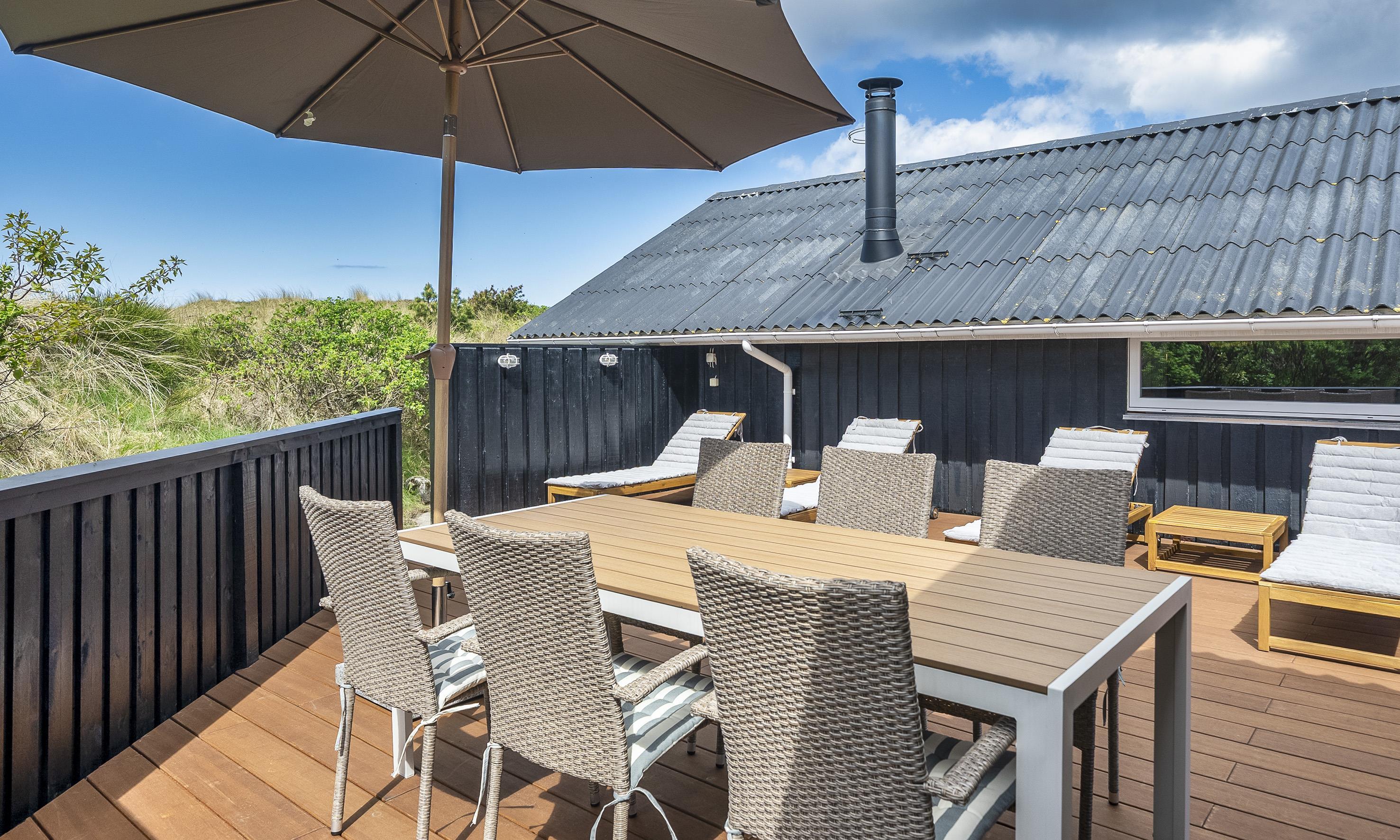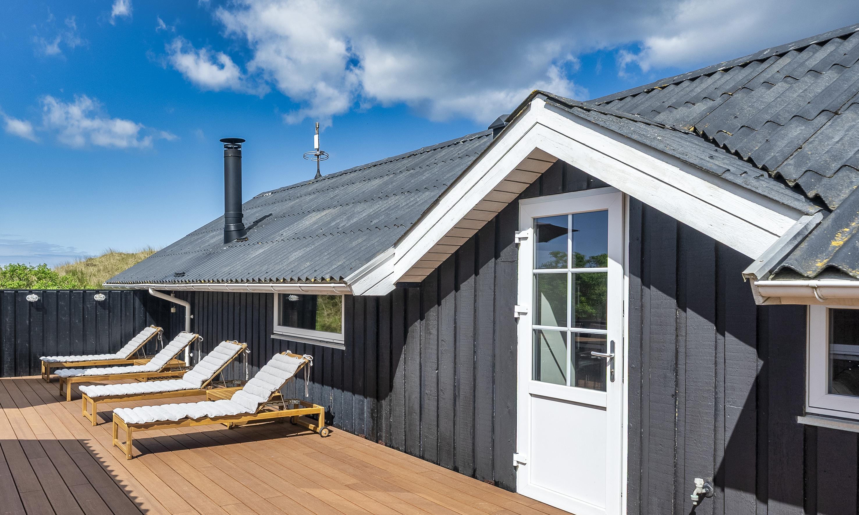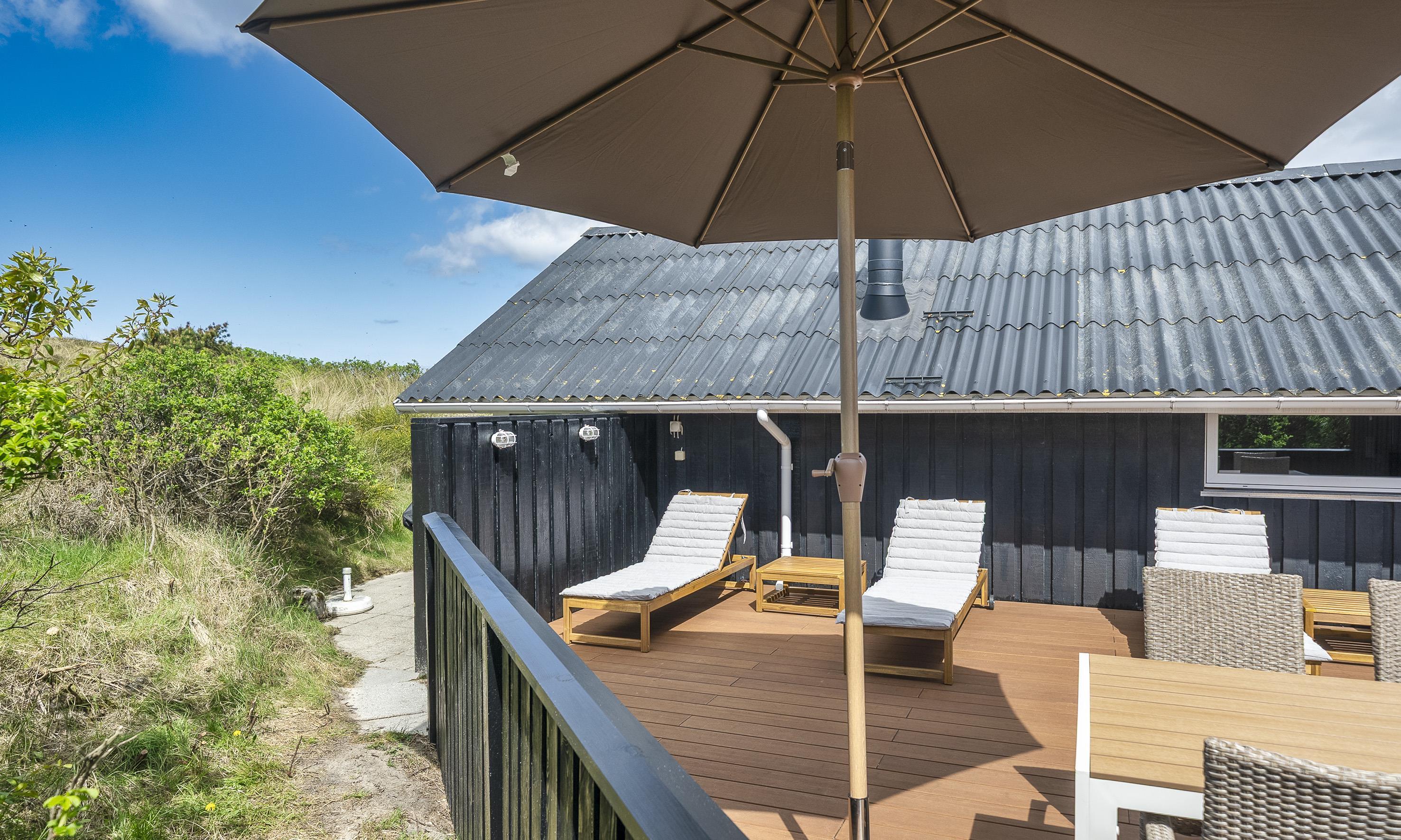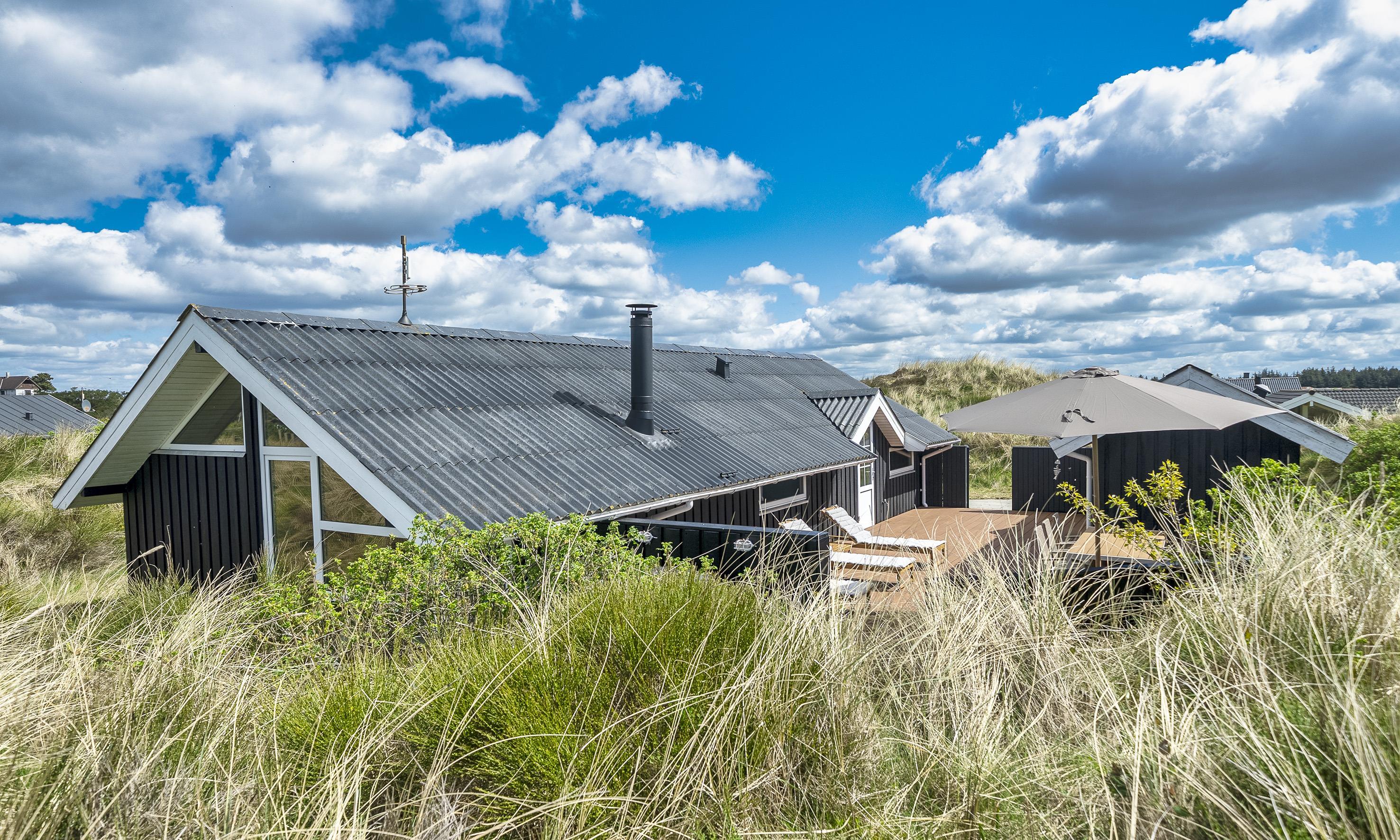 Von Dünen umgebenes kleines Ferienhaus für 5 Personen ausgestattet und auf einem relativ schönen Grundstück gelegen. Der Strand liegt nur 400 Meter vom Haus entfernt. Das Wohnzimmer ist nett eingerichtet und verfügt über einen Kamin. Das deutsche Fernsehprogramm empfangen Sie über eine Parabolantenne. Der Küchenbereich ist mit einem Herd mit Kochplatten, einem Backofen, einer Mikrowelle, einer Geschirrspülmaschine und einer Kühl- und Gefrierkombination ausgestattet. Von der Küche aus, haben Sie einen Ausgang zur Terrasse. Hier befindet sich ein kleiner Schuppen,wobei dort die Waschmaschine und der Trockner untergebracht sind. Das Badezimmer ist einfach gehalten und hat ein WC, ein Handwaschbecken und eine Dusche. Es gibt drei Schlafzimmer im Ferienhaus: DB + B + B. Neue Betten in 2024. Das Ferienhaus verfügt über einen Internetanschluss (W-Lan). Der Terrassenbereich am Ferienhaus ist sehr geschützt. Die Klimaanlage ist nicht für die Gäste zum Benutzen gedacht. Es sind keine Haustiere erlaubt. Das Rauchen im Ferienhaus ist nicht erlaubt. Das Ferienhaus wurde 1978 erbaut und in 2010 renoviert.