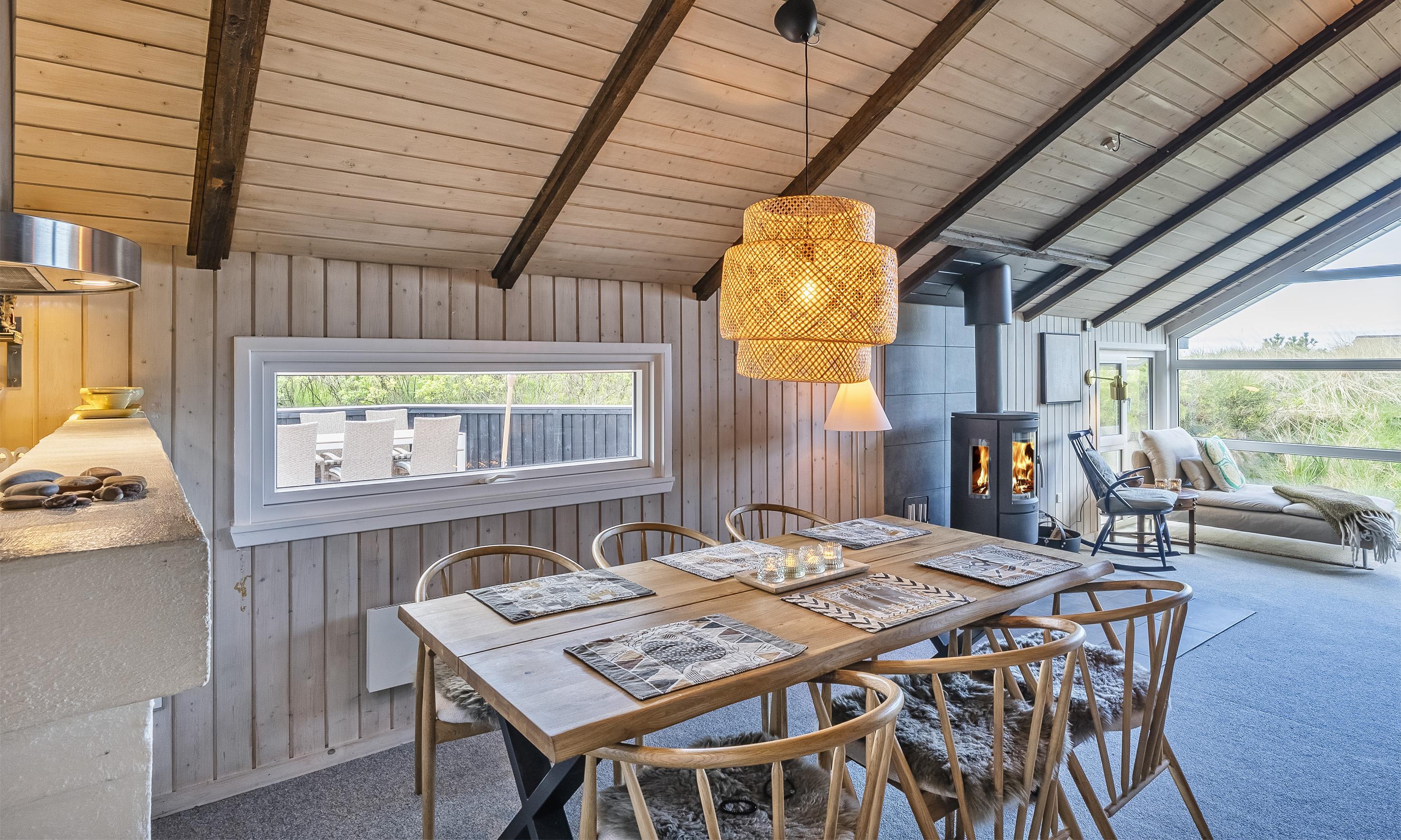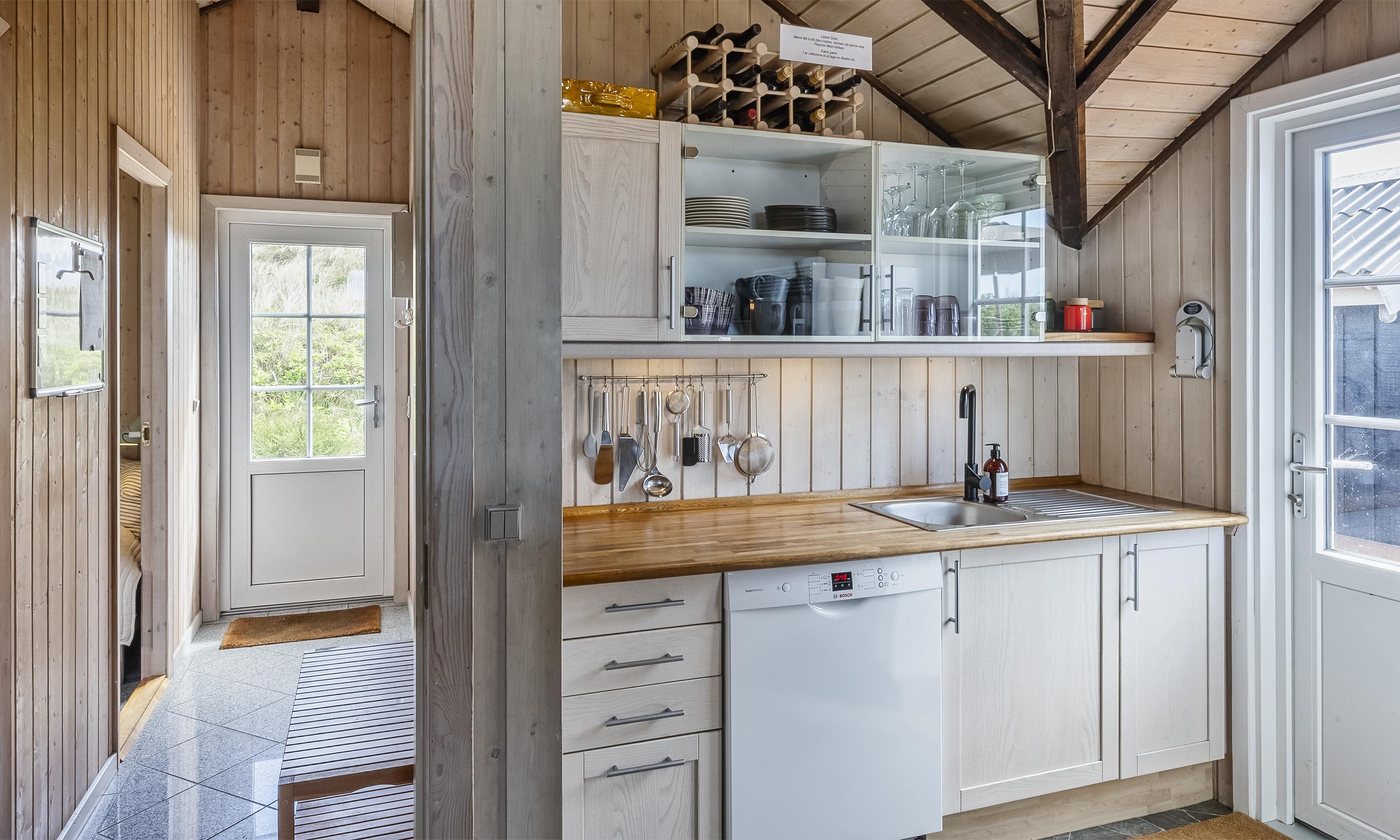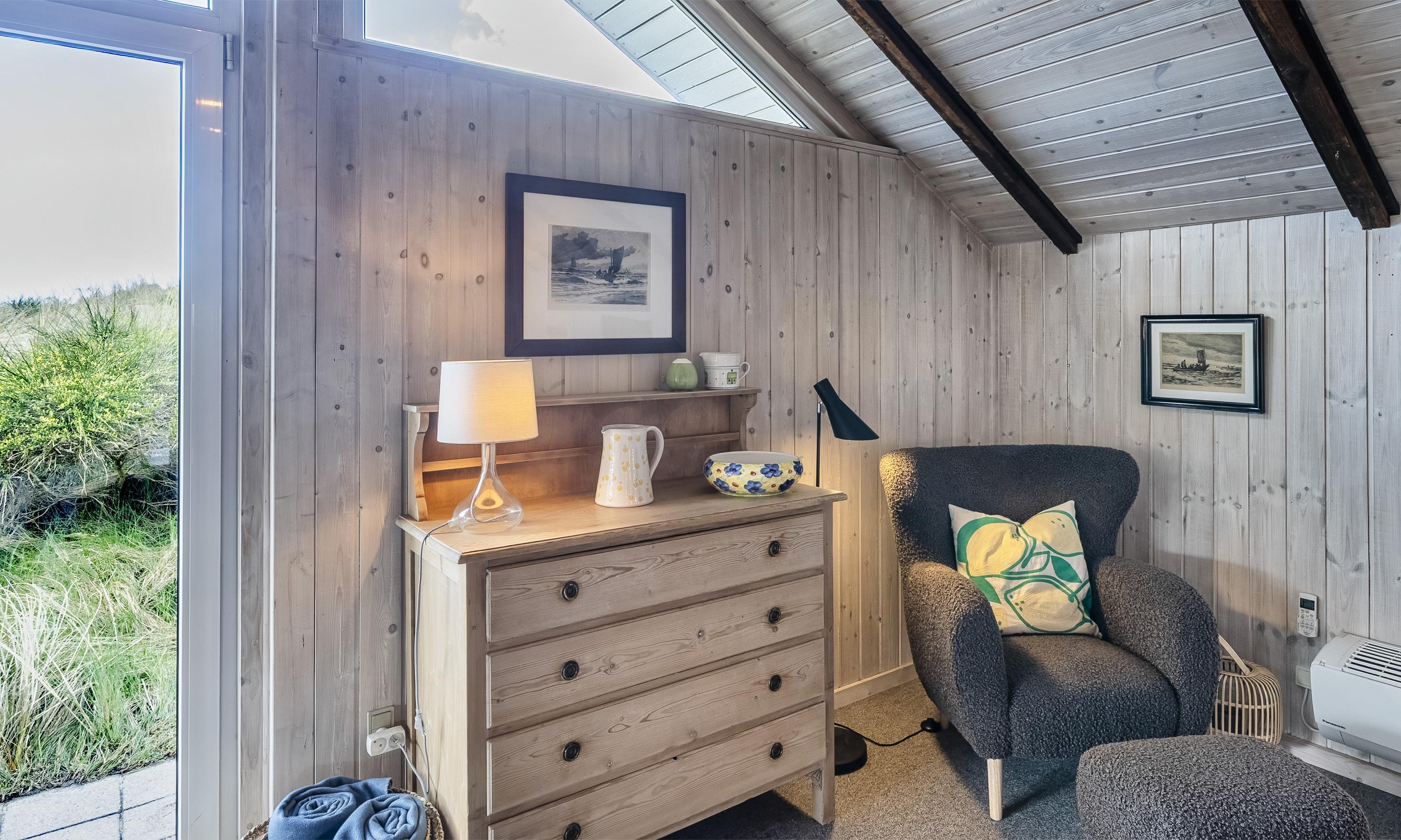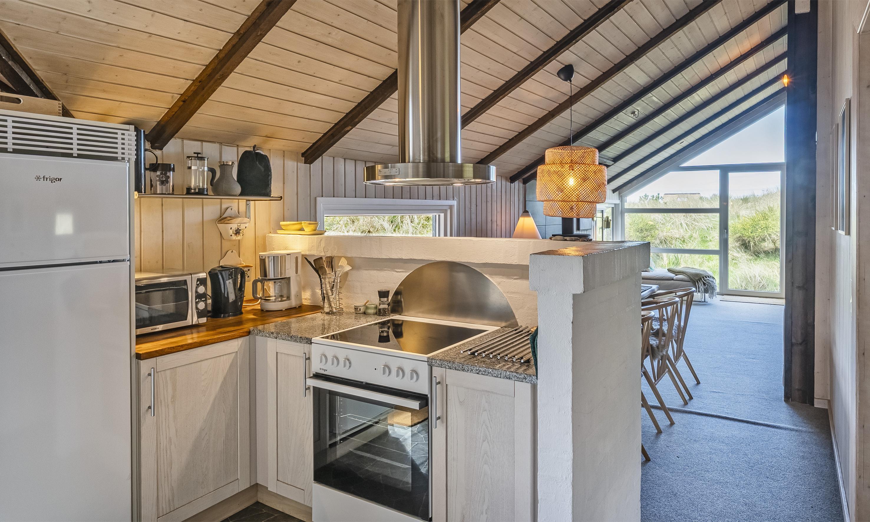 Von Dünen umgebenes kleines Ferienhaus für 5 Personen ausgestattet und auf einem relativ schönen Grundstück gelegen. Der Strand liegt nur 400 Meter vom Haus entfernt. Das Wohnzimmer ist nett eingerichtet und verfügt über einen Kamin. Das deutsche Fernsehprogramm empfangen Sie über eine Parabolantenne. Der Küchenbereich ist mit einem Herd mit Kochplatten, einem Backofen, einer Mikrowelle, einer Geschirrspülmaschine und einer Kühl- und Gefrierkombination ausgestattet. Von der Küche aus, haben Sie einen Ausgang zur Terrasse. Hier befindet sich ein kleiner Schuppen,wobei dort die Waschmaschine und der Trockner untergebracht sind. Das Badezimmer ist einfach gehalten und hat ein WC, ein Handwaschbecken und eine Dusche. Es gibt drei Schlafzimmer im Ferienhaus: DB + B + B. Neue Betten in 2024. Das Ferienhaus verfügt über einen Internetanschluss (W-Lan). Der Terrassenbereich am Ferienhaus ist sehr geschützt. Die Klimaanlage ist nicht für die Gäste zum Benutzen gedacht. Es sind keine Haustiere erlaubt. Das Rauchen im Ferienhaus ist nicht erlaubt. Das Ferienhaus wurde 1978 erbaut und in 2010 renoviert.