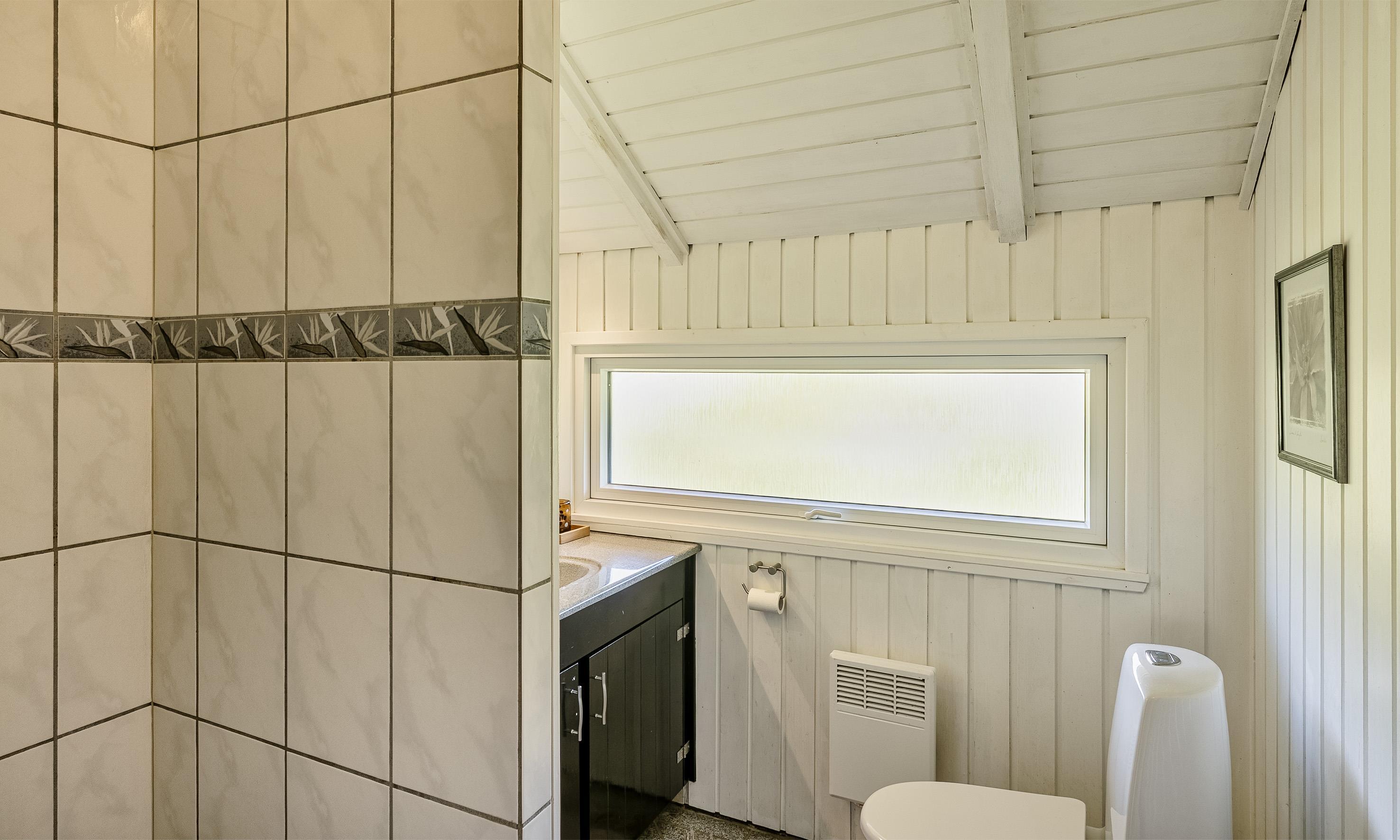 Badezimmer mit Toilette, Dusche und Waschbecken