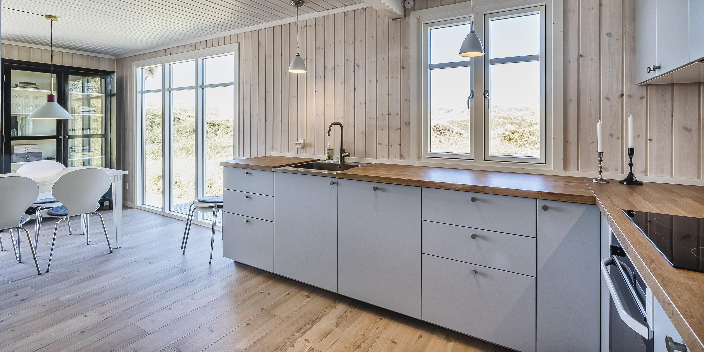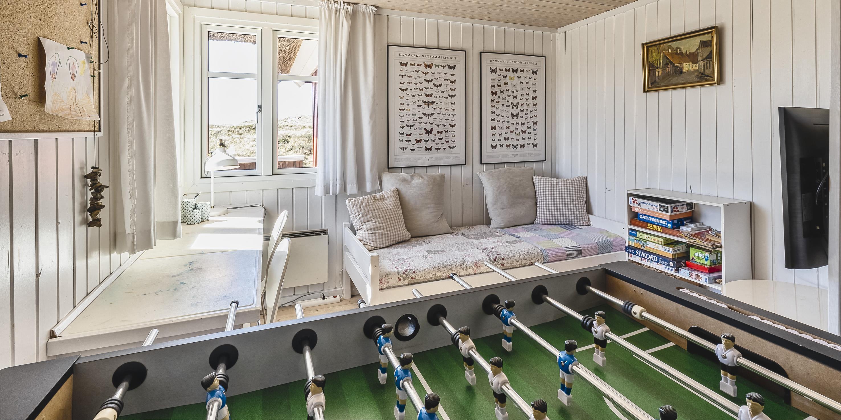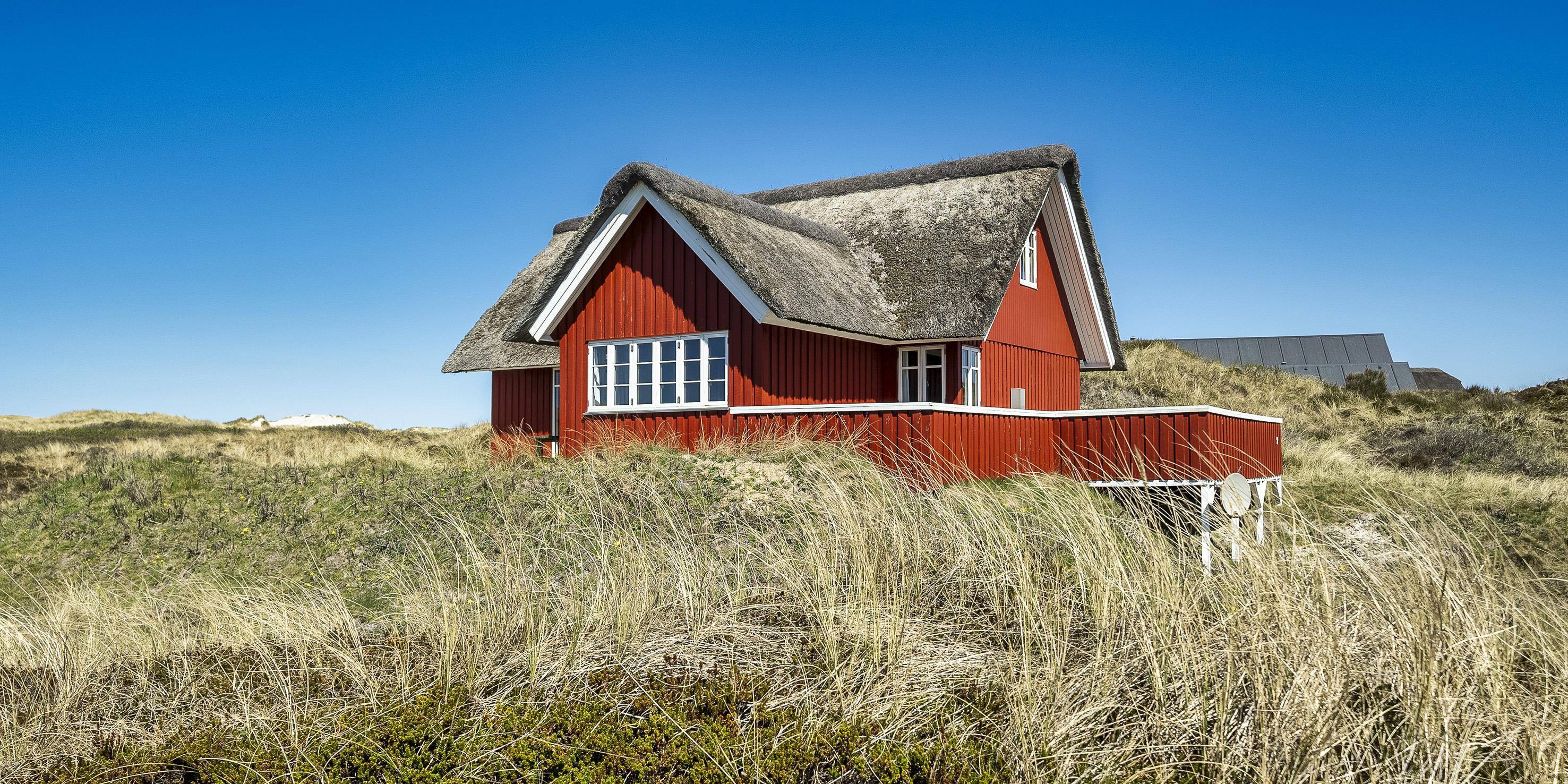 Gemütlich und rustikal eingerichtetes Reetdach-Ferienhaus über zwei Ebenen, auf einer Düne gelegen mit tollem Ausblick und für 6 Personen ausgestattet. Der Strand ist nur 100 Meter vom Ferienhaus entfernt. Sie erreichen Ihnen direkt über die Dünenkette. Das Wohnzimmer ist mit einem neuen Laminatboden ausgestettet worden, ebenso der Essbereich und die Küche. Wohn- und Essbereich sind mit dem Küchenbereich verbunden. Der Essbereich ist grosszügig und an dem Tisch finden alle Bewohner des Hauses genügend Platz. Ein Kamin strahlt hier eine angenehme Wärme aus und bringt somit dem ganzen den gemütlichem Charme rüber. Das deutsche Fernsehprogramm empfangen Sie über eine Parabolantenne. Zusätzlich gibt es eine Wärmepumpe im Ferienhaus. Mit dieser Wärmepumpe haben Sie die Möglichkeiten die Stromkosten zu senken, denn sie ist energiesparend. Die neue Einbauküche ist hell und freundlich und verfügt über ein Herd mit Cerankochfeld, einem Backofen, einer Geschirrrspülmaschine und einer Kühl- und Gefrierrkombination. Das Badezimmer ist einfach gehalten und hat ein WC, ein Handwaschbecken und eine Dusche. Die Waschmaschine ist auch hier im Badezimmer untergebracht. Es gibt insgesamt drei Schlafzimmer im Ferienhaus: DB + DB + DB/EB. Ein Schlafzimmer ist im unteren Bereich und mit einem tollen Holzfussboden ausgelegt und verfügt über ein Doppelbett. In dem kleinen Gang zum Schlafzimmer befindet sich eine grosse Schrankwand. Hier ist genügend Platz um all Ihre Sachen unterzubringen. Das Erste Zimmer dient als Spielzimmer. Es ist ein einzelnes Bett aufgestellt und ein Tischfussball, dazu noch ein Schreibtisch. Über eine breite Holztreppe erreichen sie das Obergeschoss. Hier sind zwei weitere Schlafzimmer mit Holzfussboden und je einem Doppelbett. Das hintere Schlafzimmer hat einen Balkon. Von hier haben Sie den wundervollen Blick auf die Dünenkette Richtung Strand. Der Eingangsbereich im Hause ist grosszügig gehalten und bietet ausreichend Platz für Jacken und Schuhe. Das Ferienhaus verfügt über einen Internetanschluss (W-Lan). Es gibt insgesamt drei Terrassen am Ferienhaus. Es sind keine Haustiere erlaubt, mit Ausnahme ein kleiner Hund mit max. von 30 cm. Das Rauchen im Ferienhaus ist nicht erlaubt. Das Ferienhaus ist 1971 erbaut worden und in 2022 renoviert.
