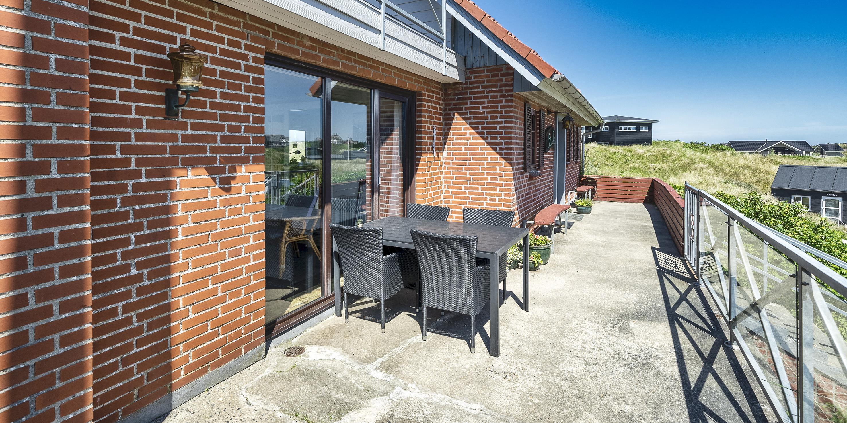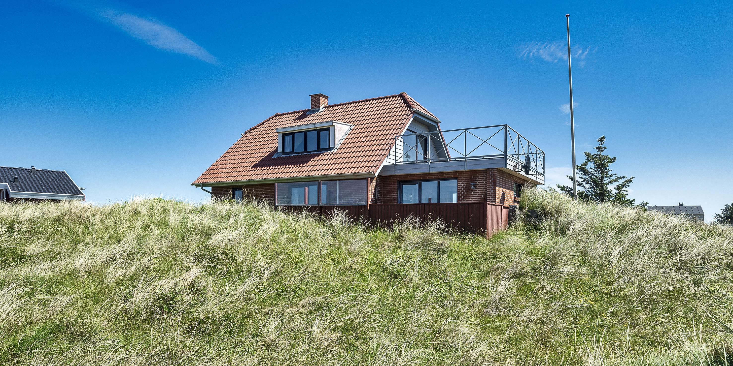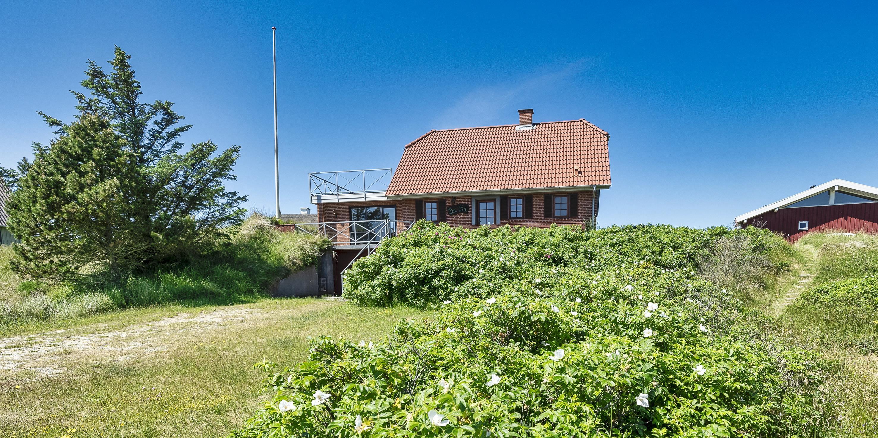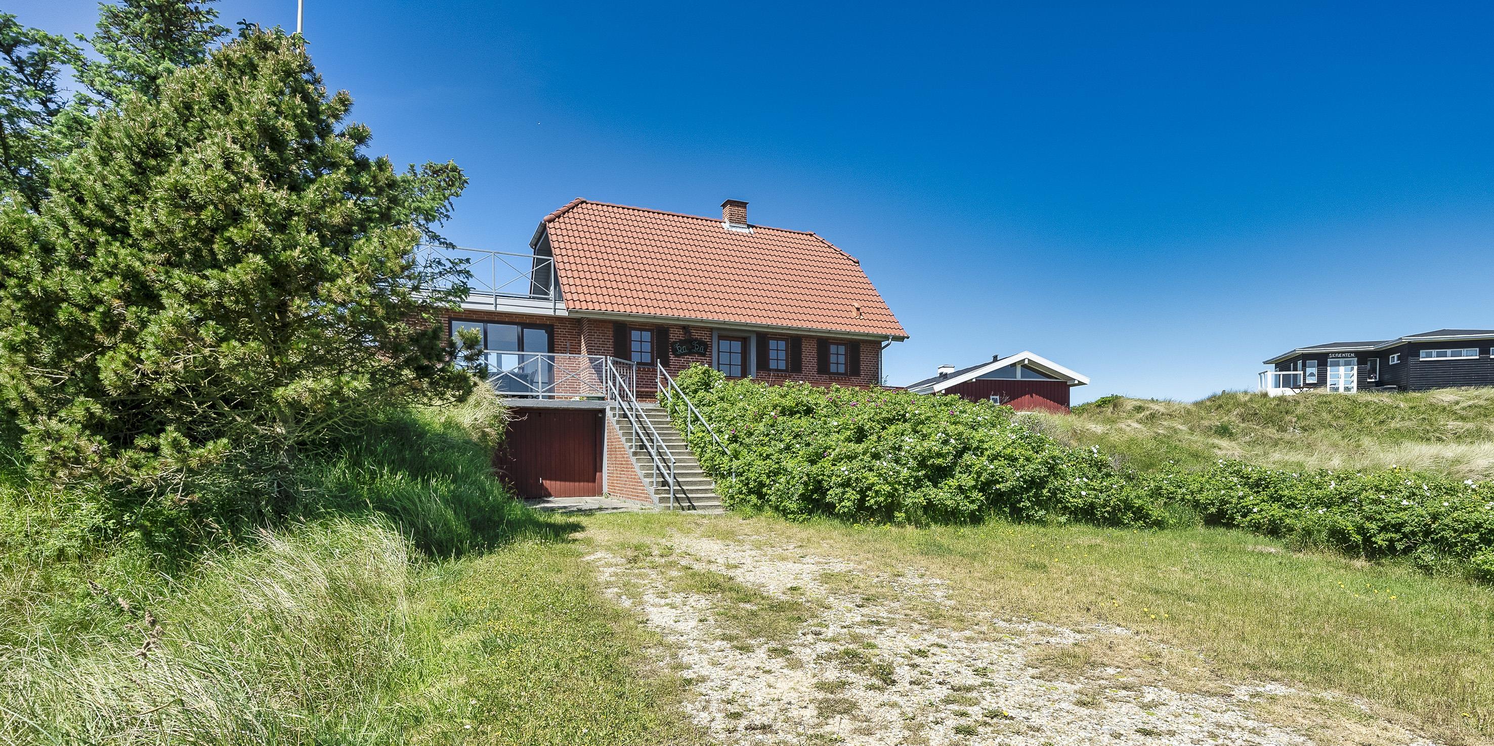Gemütliches Ferienhaus mit dem Namen ”Kaka” auf einer Düne in Mitten der Dünenlandschaft gelegen. Das Ferienhaus ist für 6 Personen ausgestattet. Die Räumlichkeiten sind auf 2 Etagen verteilt. Der Strand ist nur sage und schreibe 200 Meter vom Haus entfernt. Über einen Treppenaufgang gelangen Sie zum Ferienhaus. Im Erdgeschoss befindet sich das Wohnzimmer, das Esszimmer, die Küche, das Badezimmer und zwei Schlafzimmer. 4 Schlafzimmer DB + DB + B + B. Im Obergeschoss sind dann weitere zwei Schlafbereiche, die mit je einem Doppelbett ausgestattet sind. Im gefliesten Eingangsbereich befindet sich eine steile Treppe zum Obergeschoss. Das Wohnzimmer verfügt über einen Kamin der an der Wand angebracht ist, also hängend. Das ist ein besonderer Blickfang. Es befindet sich eine Warmepumpe im Ferienhaus. Mit dieser Warmepumpe haben sie die Möglichkeit die Stromkosten zu senken, denn die Warmepumpe ist energiesparend. Das deutsche Fernsehprogramm empfangen Sie über eine Parabolantenne. Chromecast. Ein gemütliches Sofa lädt zum Verweilen und relaxen ein. Angrenzend am Wohnbereich ist der Küchenbereich. Dazwischen ist eine kleiner Esstisch mit Stühlen aufgestellt. Ein weiterer Essbereich mit zwei Tischen und Stühlen stehen den Gästen zur Verfügung. Von hier ist auch ein Ausgang zur Terrasse. Die Küche ist einfach und mit einem Herd mit Cerankochfeld, einem Backofen, einer Geschirrspülmaschine, einer Mikrowelle und eine Kühl- und Gefrierkombination ausgestattet. Das Badezimmer verfügt über ein WC, ein Handwaschbecken und eine Dusche. Die Waschmaschine ist hier im Badezimmer untergebracht.Vom Balkon im Obergeschoss haben Sie einen wunderschönen Panoramablick, teilweise sogar einen Meeresblick. Das Ferienhaus verfügt über einen Internetanschluss (W-Lan). Ihr Fahrzeug findet in der Garage unter dem Ferienhaus seinen Platz. Das Rauchen ist nicht gestattet. Haustiere sind nicht erlaubt. Das Ferienhaus wurde 1957 erbaut und laufend Instand gehalten.