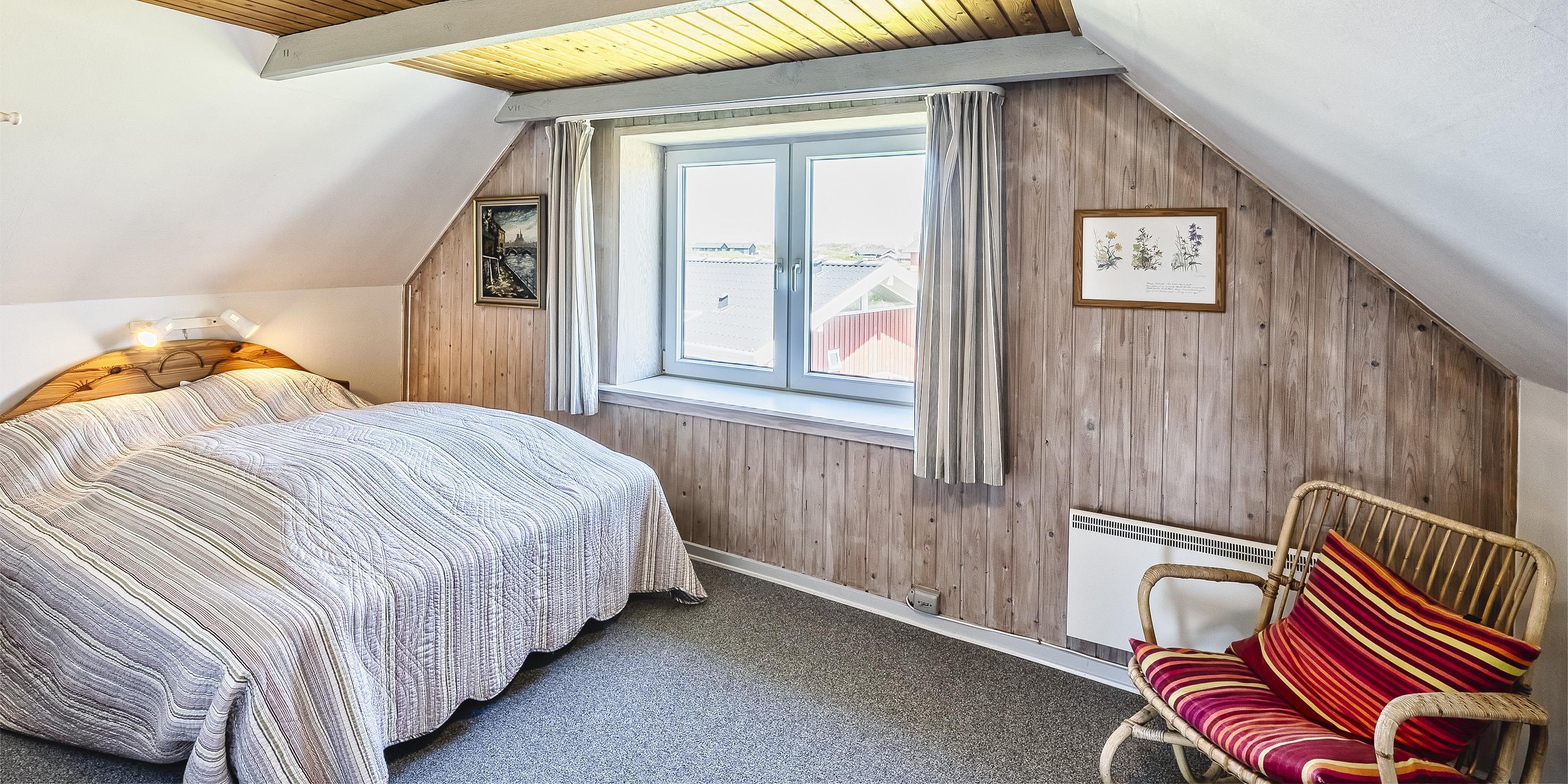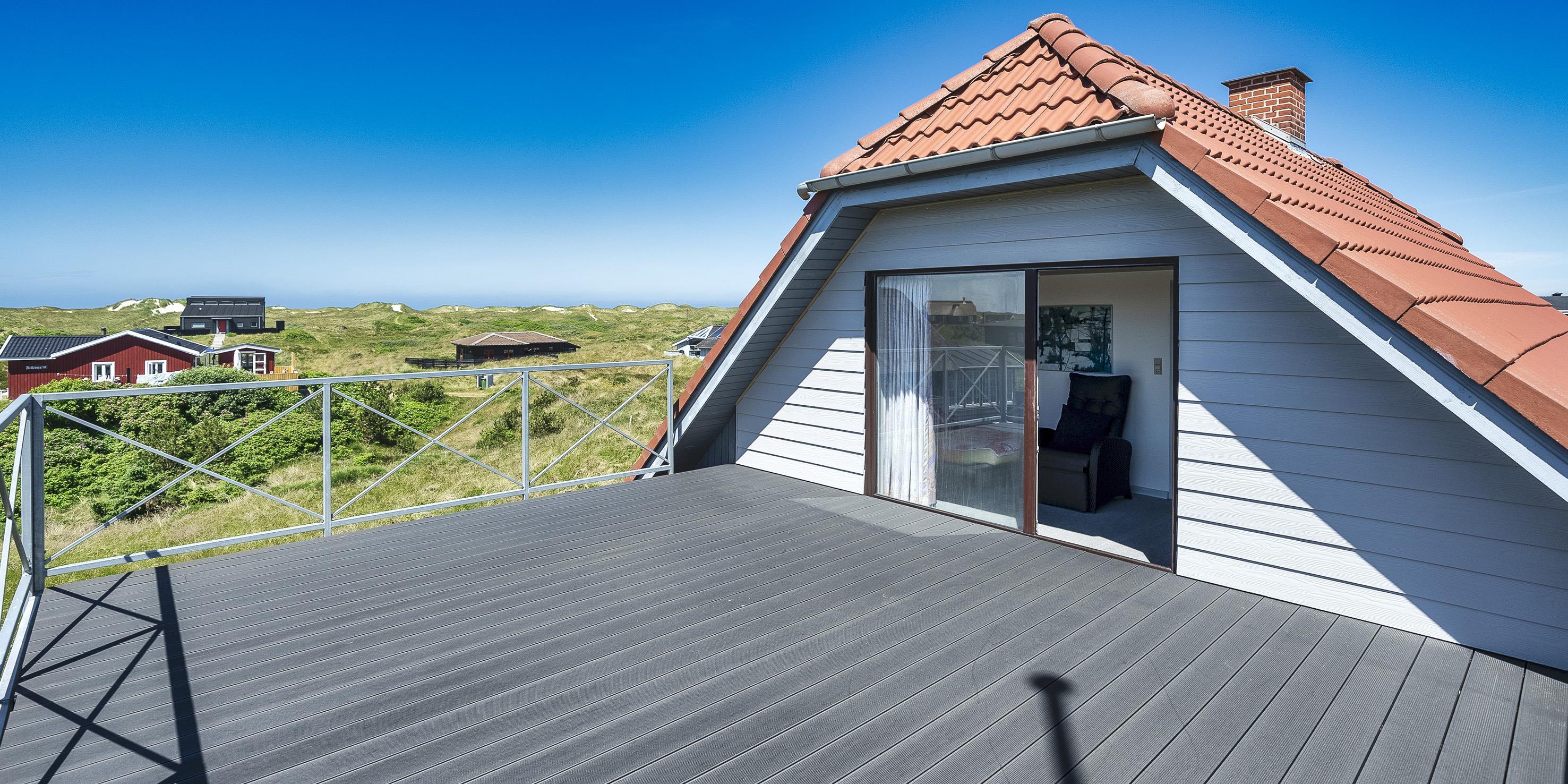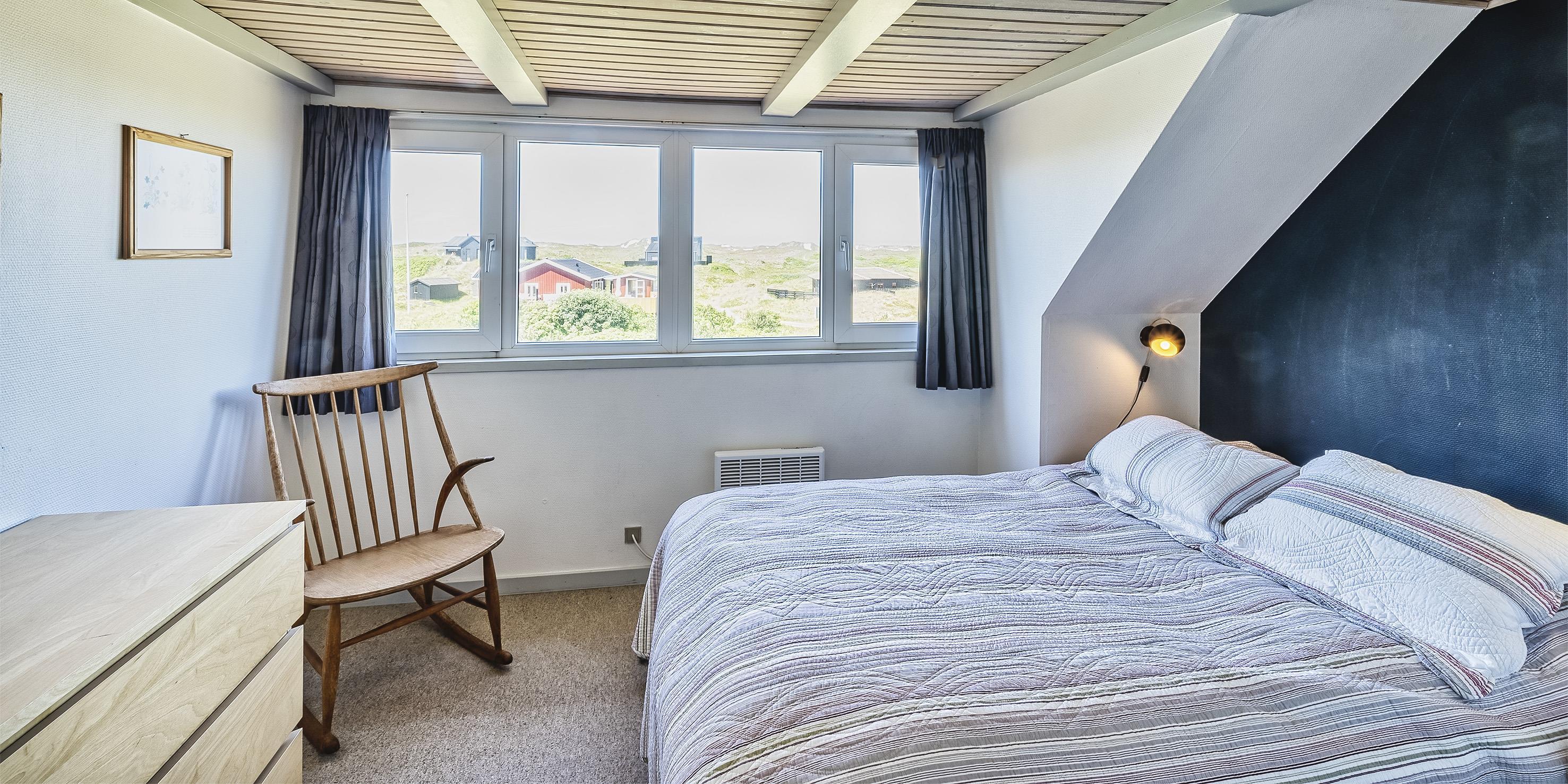 Gemütliches Ferienhaus mit dem Namen ”Kaka” auf einer Düne in Mitten der Dünenlandschaft gelegen. Das Ferienhaus ist für 6 Personen ausgestattet. Die Räumlichkeiten sind auf 2 Etagen verteilt. Der Strand ist nur sage und schreibe 200 Meter vom Haus entfernt. Über einen Treppenaufgang gelangen Sie zum Ferienhaus. Im Erdgeschoss befindet sich das Wohnzimmer, das Esszimmer, die Küche, das Badezimmer und zwei Schlafzimmer. 4 Schlafzimmer DB + DB + B + B. Im Obergeschoss sind dann weitere zwei Schlafbereiche, die mit je einem Doppelbett ausgestattet sind. Im gefliesten Eingangsbereich befindet sich eine steile Treppe zum Obergeschoss. Das Wohnzimmer verfügt über einen Kamin der an der Wand angebracht ist, also hängend. Das ist ein besonderer Blickfang. Es befindet sich eine Warmepumpe im Ferienhaus. Mit dieser Warmepumpe haben sie die Möglichkeit die Stromkosten zu senken, denn die Warmepumpe ist energiesparend. Das deutsche Fernsehprogramm empfangen Sie über eine Parabolantenne. Chromecast. Ein gemütliches Sofa lädt zum Verweilen und relaxen ein. Angrenzend am Wohnbereich ist der Küchenbereich. Dazwischen ist eine kleiner Esstisch mit Stühlen aufgestellt. Ein weiterer Essbereich mit zwei Tischen und Stühlen stehen den Gästen zur Verfügung. Von hier ist auch ein Ausgang zur Terrasse. Die Küche ist einfach und mit einem Herd mit Cerankochfeld, einem Backofen, einer Geschirrspülmaschine, einer Mikrowelle und eine Kühl- und Gefrierkombination ausgestattet. Das Badezimmer verfügt über ein WC, ein Handwaschbecken und eine Dusche. Die Waschmaschine ist hier im Badezimmer untergebracht.Vom Balkon im Obergeschoss haben Sie einen wunderschönen Panoramablick, teilweise sogar einen Meeresblick. Das Ferienhaus verfügt über einen Internetanschluss (W-Lan). Ihr Fahrzeug findet in der Garage unter dem Ferienhaus seinen Platz. Das Rauchen ist nicht gestattet. Haustiere sind nicht erlaubt. Das Ferienhaus wurde 1957 erbaut und laufend Instand gehalten.