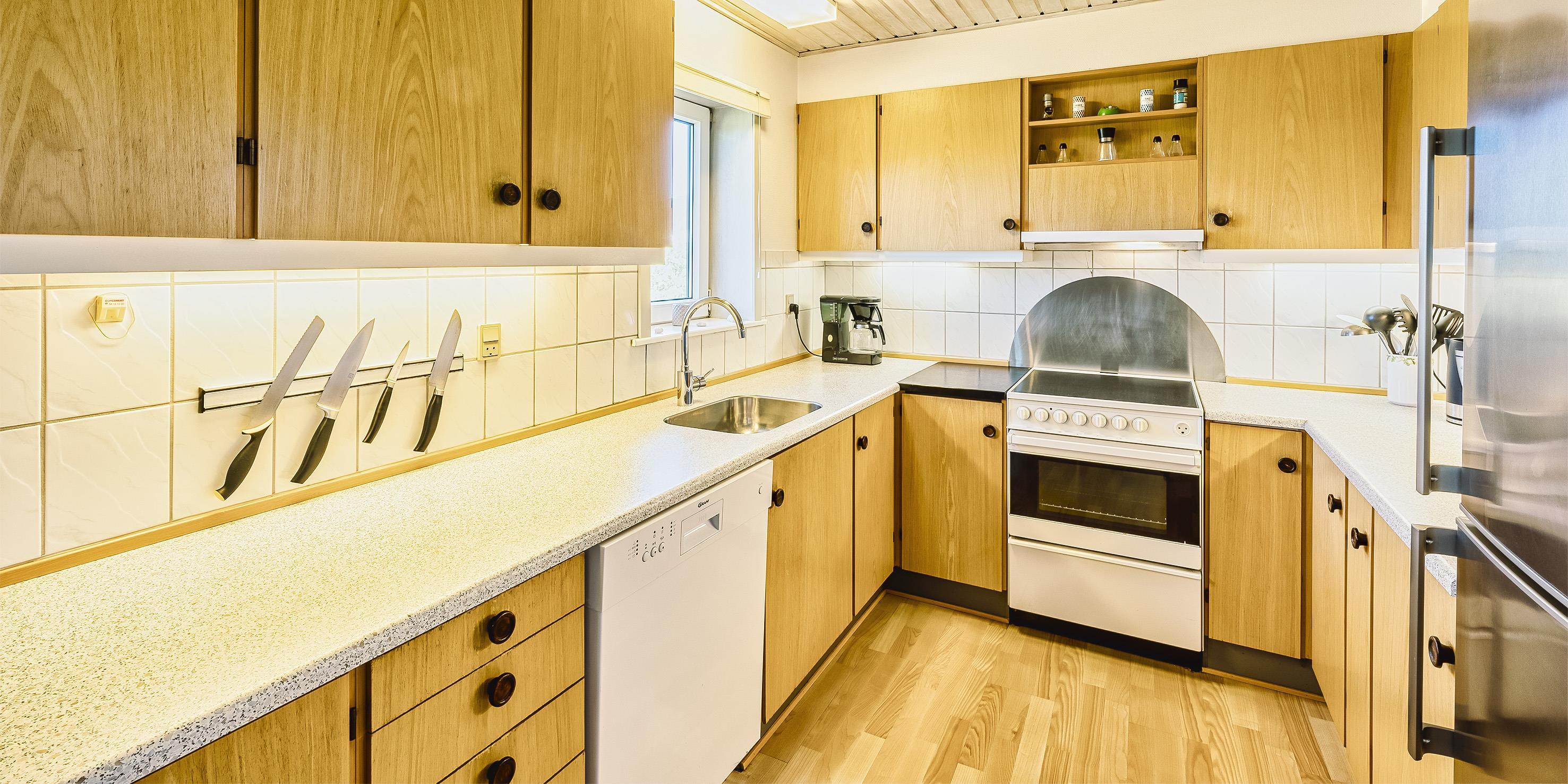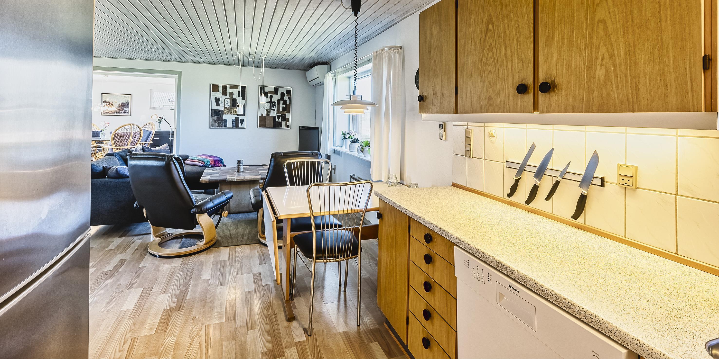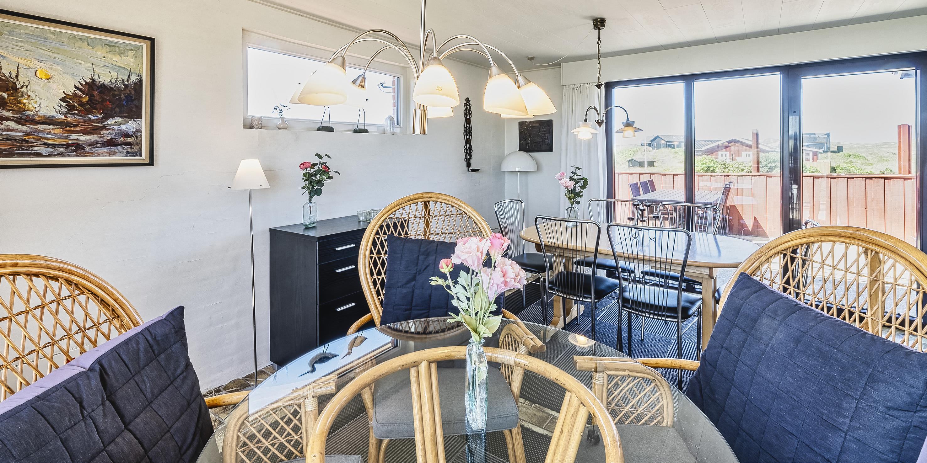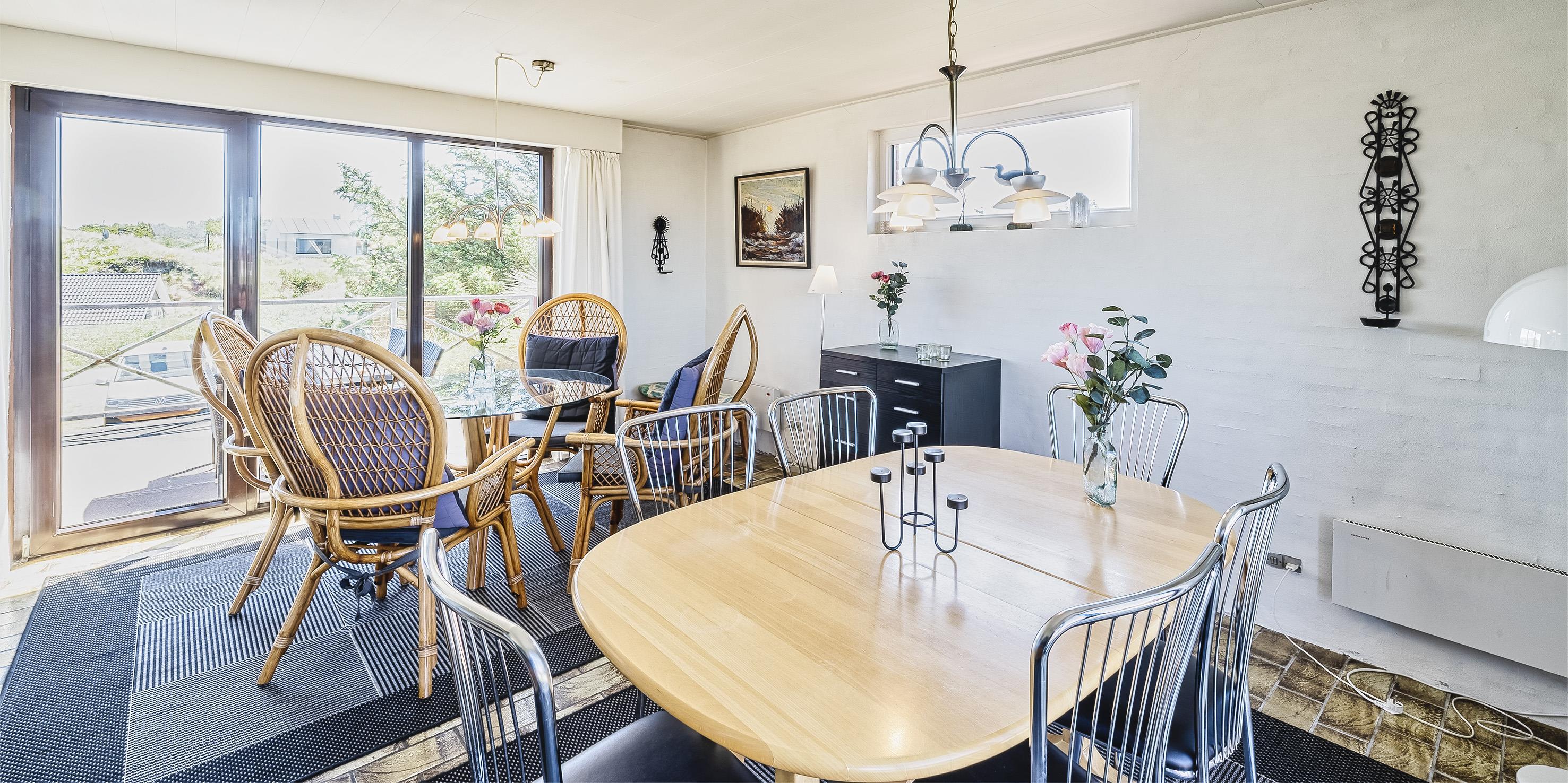 Gemütliches Ferienhaus mit dem Namen ”Kaka” auf einer Düne in Mitten der Dünenlandschaft gelegen. Das Ferienhaus ist für 6 Personen ausgestattet. Die Räumlichkeiten sind auf 2 Etagen verteilt. Der Strand ist nur sage und schreibe 200 Meter vom Haus entfernt. Über einen Treppenaufgang gelangen Sie zum Ferienhaus. Im Erdgeschoss befindet sich das Wohnzimmer, das Esszimmer, die Küche, das Badezimmer und zwei Schlafzimmer. 4 Schlafzimmer DB + DB + B + B. Im Obergeschoss sind dann weitere zwei Schlafbereiche, die mit je einem Doppelbett ausgestattet sind. Im gefliesten Eingangsbereich befindet sich eine steile Treppe zum Obergeschoss. Das Wohnzimmer verfügt über einen Kamin der an der Wand angebracht ist, also hängend. Das ist ein besonderer Blickfang. Es befindet sich eine Warmepumpe im Ferienhaus. Mit dieser Warmepumpe haben sie die Möglichkeit die Stromkosten zu senken, denn die Warmepumpe ist energiesparend. Das deutsche Fernsehprogramm empfangen Sie über eine Parabolantenne. Chromecast. Ein gemütliches Sofa lädt zum Verweilen und relaxen ein. Angrenzend am Wohnbereich ist der Küchenbereich. Dazwischen ist eine kleiner Esstisch mit Stühlen aufgestellt. Ein weiterer Essbereich mit zwei Tischen und Stühlen stehen den Gästen zur Verfügung. Von hier ist auch ein Ausgang zur Terrasse. Die Küche ist einfach und mit einem Herd mit Cerankochfeld, einem Backofen, einer Geschirrspülmaschine, einer Mikrowelle und eine Kühl- und Gefrierkombination ausgestattet. Das Badezimmer verfügt über ein WC, ein Handwaschbecken und eine Dusche. Die Waschmaschine ist hier im Badezimmer untergebracht.Vom Balkon im Obergeschoss haben Sie einen wunderschönen Panoramablick, teilweise sogar einen Meeresblick. Das Ferienhaus verfügt über einen Internetanschluss (W-Lan). Ihr Fahrzeug findet in der Garage unter dem Ferienhaus seinen Platz. Das Rauchen ist nicht gestattet. Haustiere sind nicht erlaubt. Das Ferienhaus wurde 1957 erbaut und laufend Instand gehalten.