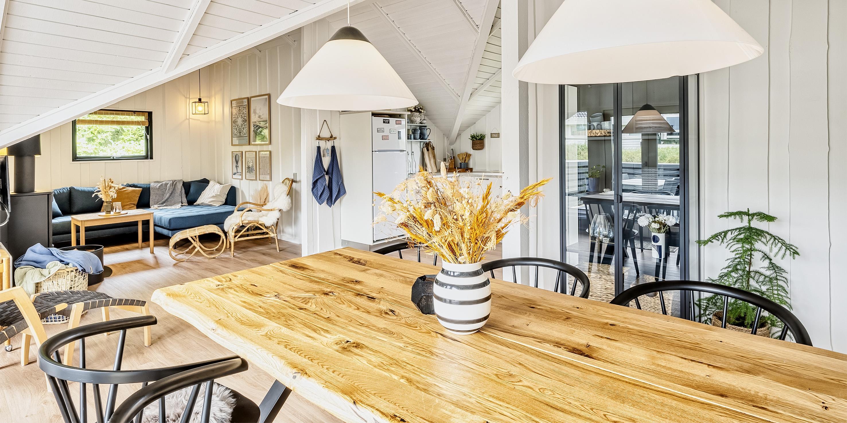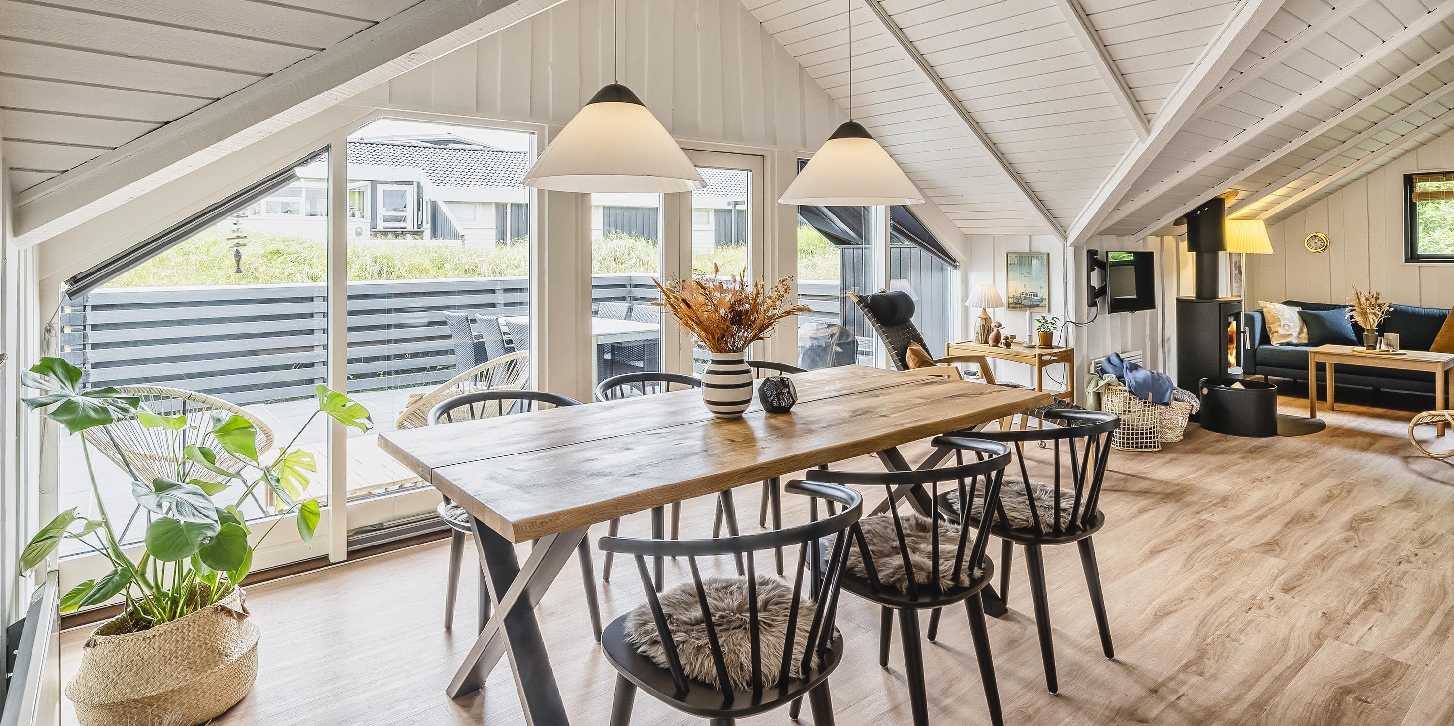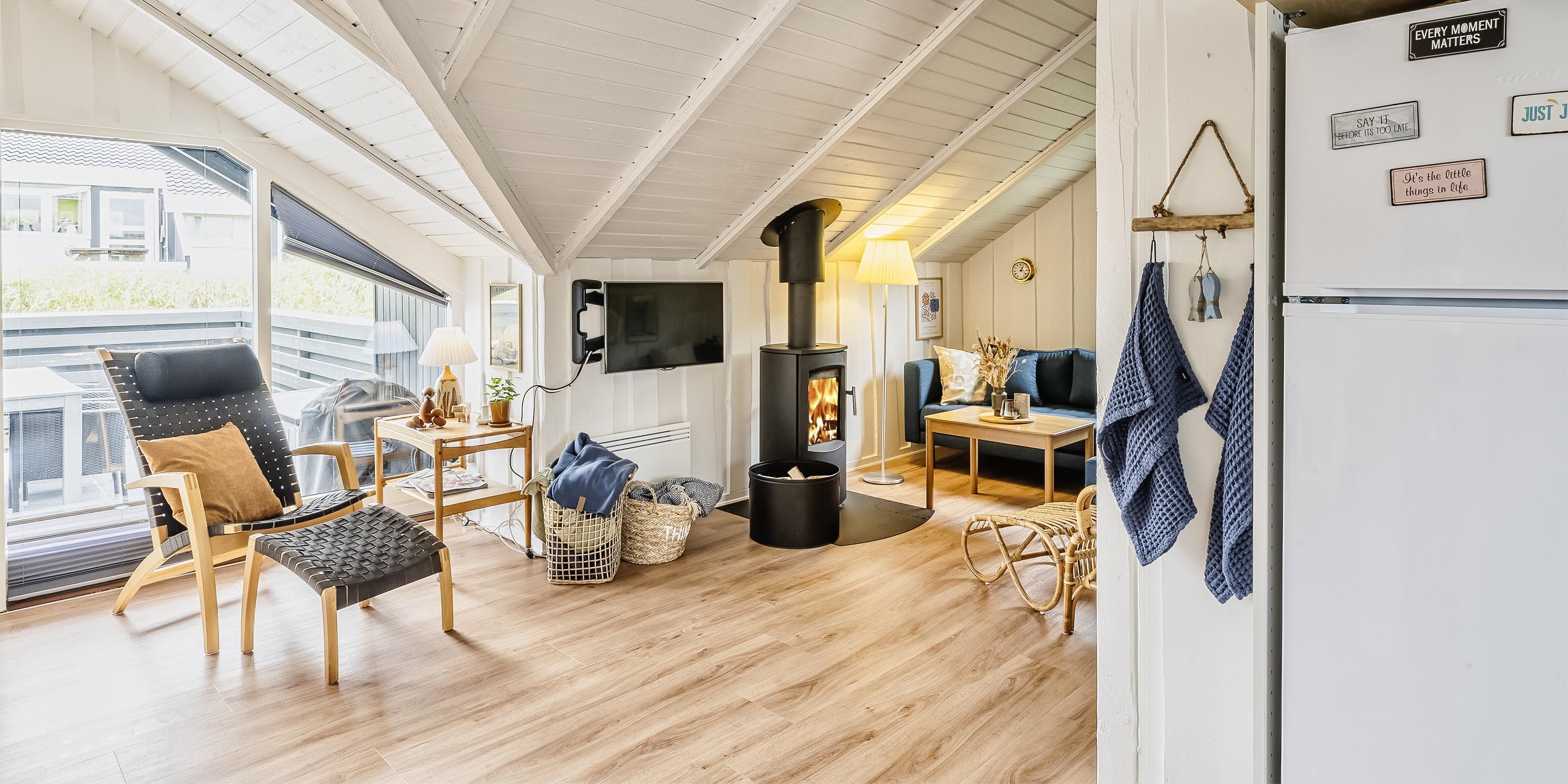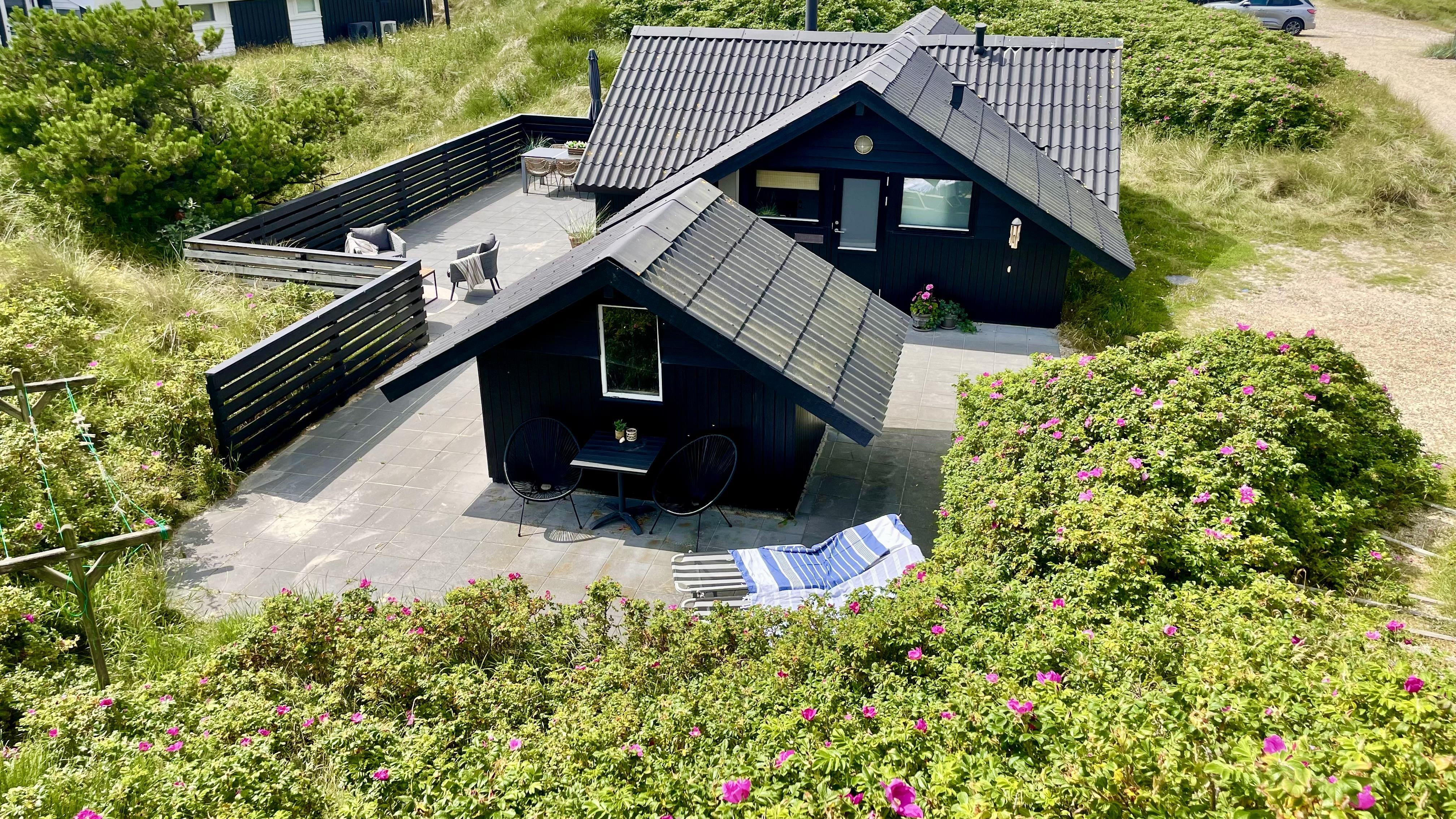 Dieses gemütliche Ferienhaus für 6 Personen liegt in einer Ringstraße auf einem Naturgrundstück in den Dünen und hat einen schönen Terrassenbereich. Der Strand ist ca. 200 Meter vom Haus entfernt. Diese Ringstraße liegt in einer ruhigen Umgebung. Auf dem kleinen Grundstück hinterm Haus ist ein Schaukelstativ aufgestellt, wo Sie Ihre spielenden Kinder dann immer im Auge behalten können. Ein kleiner separater Schuppen bietet genügend Abstellmöglichkeiten. Vom Eingangsbereich geht dann gleich das Badezimmer und 2 Schlafzimmer ab. Das Badezimmer verfügt über ein WC, eine Dusche und ein Handwaschbecken, ebenso eine Fußbodenheizung. Drei Schlafzimmer: 2B + 2B + 2B. Die Küche verfügt über einen Herd mit Cerankochfeld, einem Backofen, einer Mikrowelle, Geschirrspülmaschine und einer Kühl und Gefrierkombination. Die Wohnzimmergarnitur befindet sich gemütlich in einer Ecke gegenüber dem Kaminofen. Hier haben Sie direkten Blick auf die Flammen im Kamin. Die große Fensterfront bringt viel Licht in das Ferienhaus. Deutsches Fernsehprogramm ist über eine Parabol-Antenne zu empfangen. Desweiteren haben Sie Internetanschluss (W-Lan). Es ist max. 1 Haustier erlaubt. Rauchen ist nicht erlaubt. Das Ferienhaus ist 1975 erbaut und in 2022 renoviert. Schwimmen & Spielen