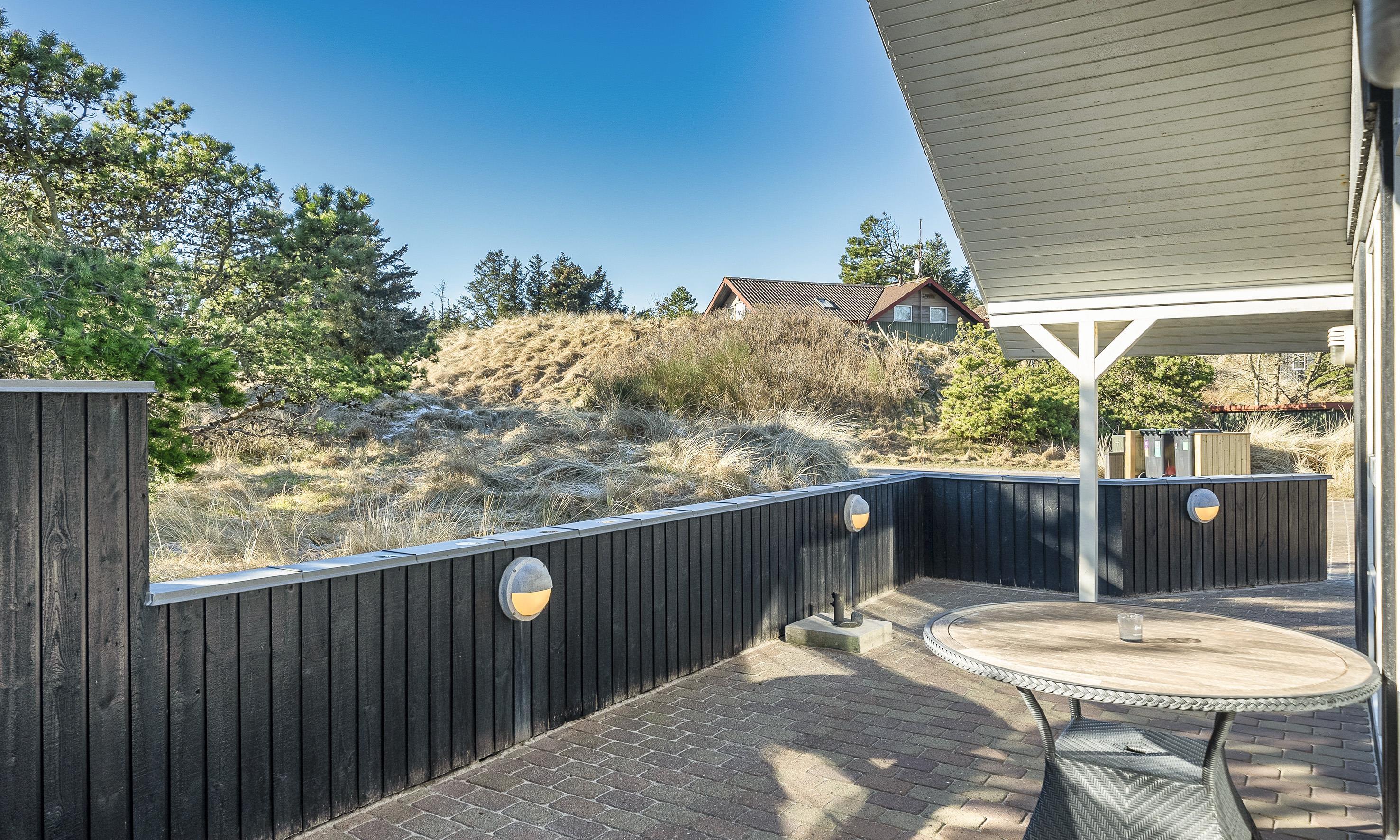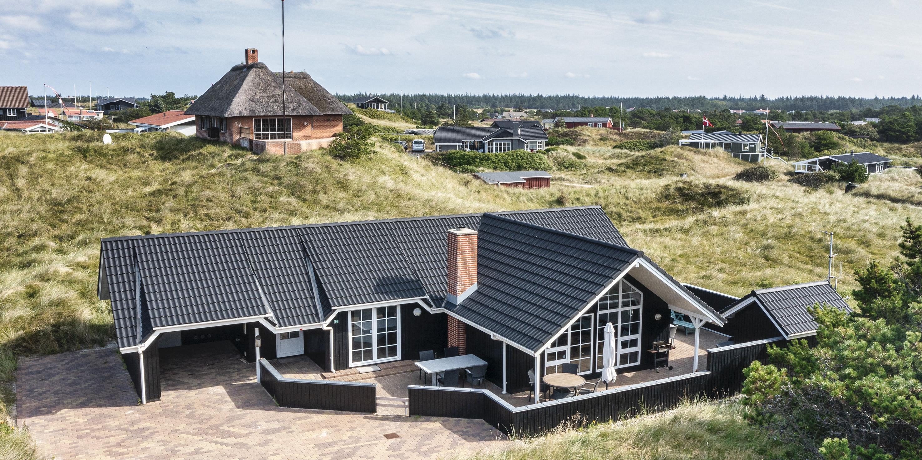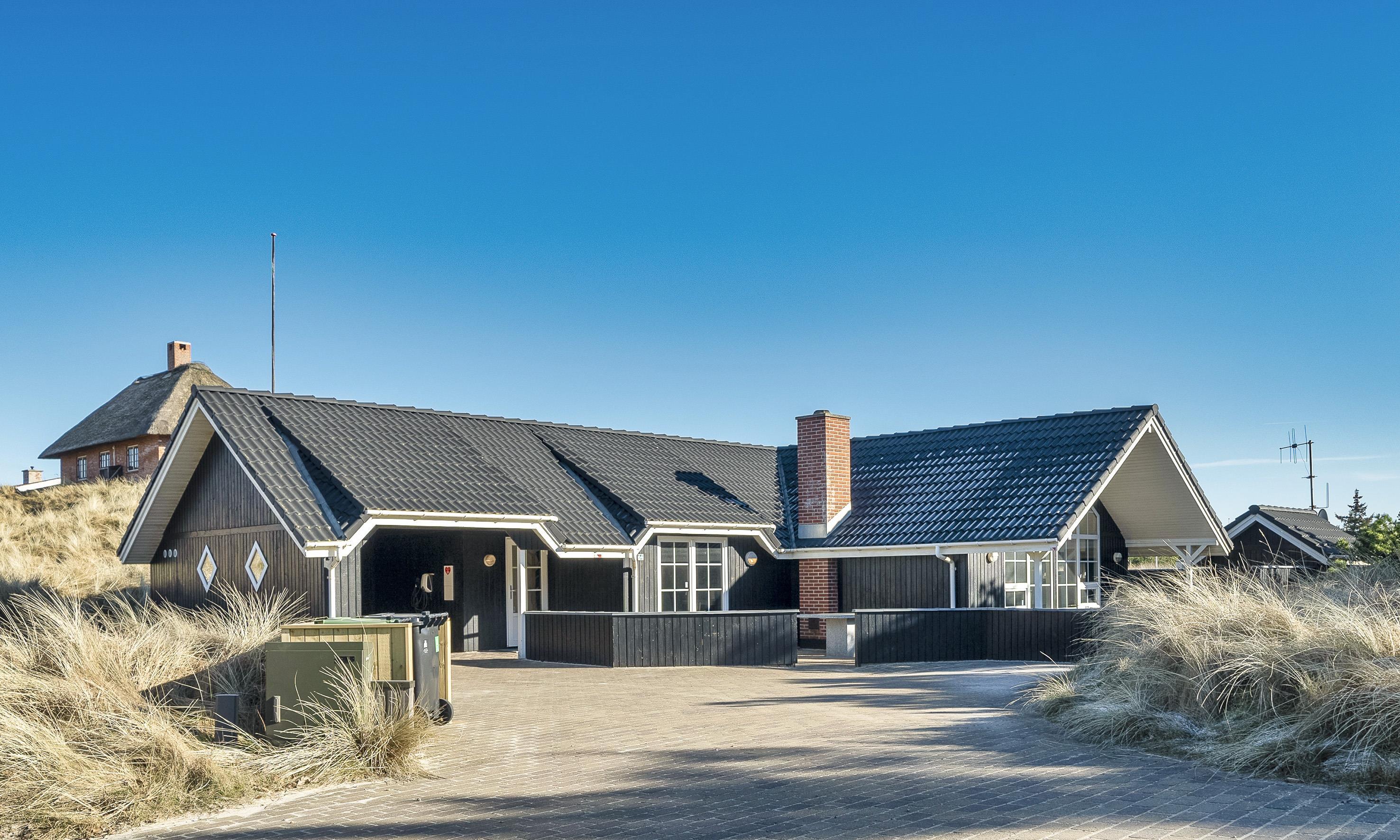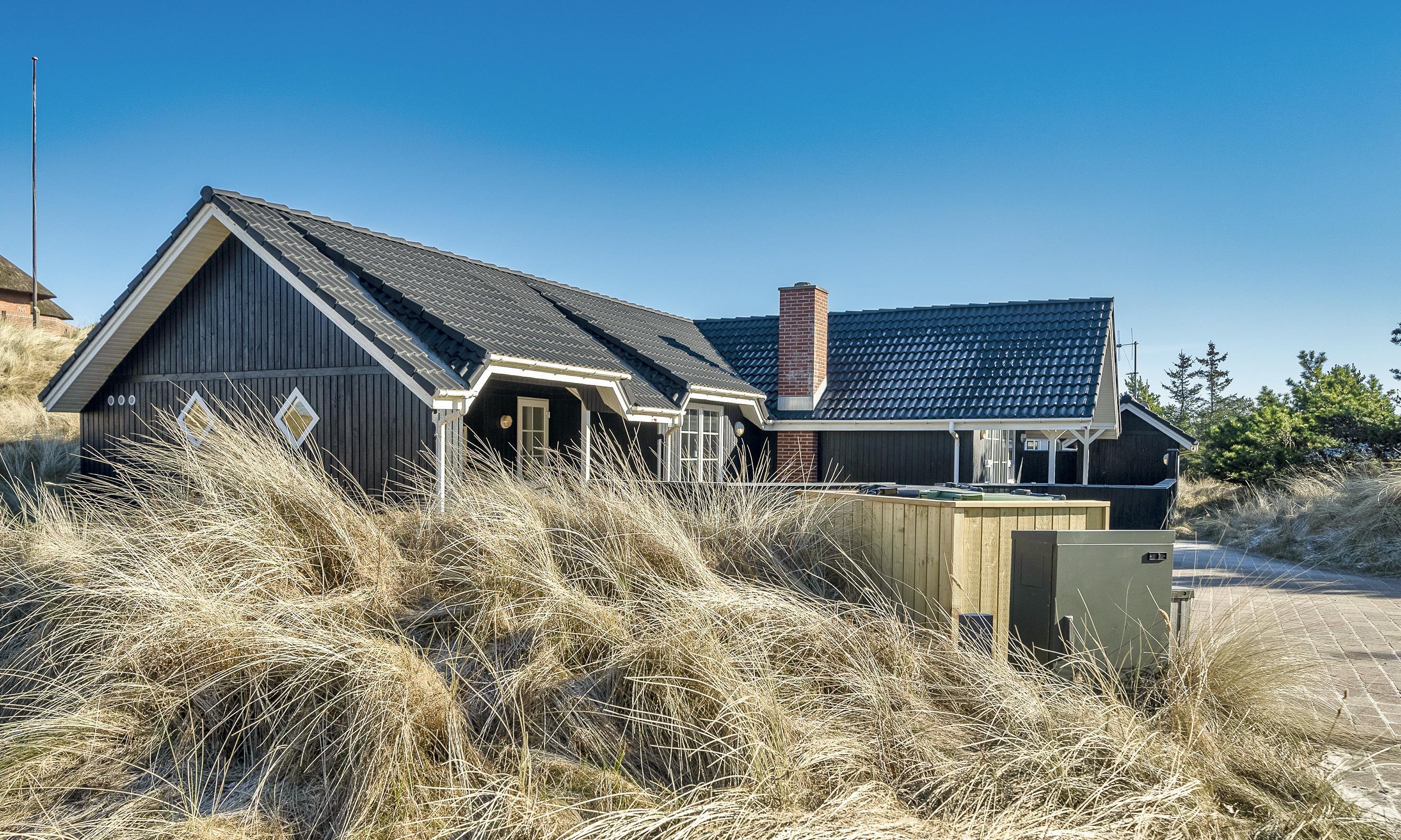 Super flottes und geschmackvoll eingerichtetes Ferienhaus in Mitten der Dünenlandschaft und in bevorzugter Ferienhauslage. Der Strand ist nur Sage und Schreibe 400 Meter vom Haus entfernt. Das Ferienhaus ist hell und freundlich, sehr modern eingerichtet und bietet reichlich Platz für 6 Personen. Der gesamte Bodenbereich, ausser in den Schlafzimmern, ist mit einer terracottafarbenden Bodenfliese ausgestattet. In den Schlafzimmern befindet sich ein Holzlaminatboden. Der lichtdurchflutete Wohnraum mit dem grossen Panoramafenster und den hohen Decken verfügt über eine Fussbodenheizung. Auf der gemütlichen Sitzgarnitur haben Sie direkten Blick zum Kamin. Im Ferienhaus empfangen Sie dänisches und deutsches Fernsehprogramm. Über eine kleine Stufe nachoben gelangen Sie dann von dem Wohnbereich in den grosszügigen Essbereich des Hauses. Hier befindet sich eine Varmpepume, die in Richtung Wohnbereich oben an einer Wand motiert ist. Mit dieser Warmepumpe haben Sie die Möglilchkeit die Stromkosten zu senken, da sie energiesparend ist. Von hier kommen Sie dann auch über eine kleine Leiter auf dem Hems. Dort befinden sich ein paar Madratzen, wo man dann zum Beispiel sein Buch lesen oder auch einfach nur abschalten oder relaxen kann. Die Küche ist modern in seiner Ausstattung eingerichtet und verfügt über einen Herd mit Cerankochfeld, einem Bakofen, einer Geschirrspümaschine, einer Mikrowelle und einer Kühl- und Gefrierkombination. Den Gästen stehen zwei schöne renovierte helle Bäder mit Fussbodenheizung zur Verfügung. Beide sind mit einem WC, einem Handwaschbecken und einer Dusche ausgestattet. Das grössere Bad verfügt desweiteren noch über eine Sauna und einen Standwasser-Whirlpool. Der Standwasser-Whirlpool ist immer mit Wasser gefüllt und daher steht er Ihnen dann zu Beginn Ihres Urlaubs sofort zu Benutzung bereit. Insgesamt gibt es drei Schlafzimmer im Ferienhaus: DB + DB + DB. Im Eingangsbereich befindet sich eine Waschmaschine und ein Trockner zur freien Benutzung. Ein schöner grosszügiger Terrassenbereich läd zum Verweilen ein. Ein kleiner Teil ist sogar überdacht. Für ihr Fahrzeug steht desweitern ein Carport zur Verfügung. In dem Ferienhaus ist das Rauchen nicht erlaubt. Es ist maximal nur ein Hund erlaubt. Das Ferienhaus verfügt über einen Internetanschluss (W-Lan). Zusätzlich befindet sich ein Anschluss am Ferienhaus für El-Fahrzeuge. Das Ferienhaus ist in 1998 erbaut worden und wurde 2021 und 2025 renoviert.
