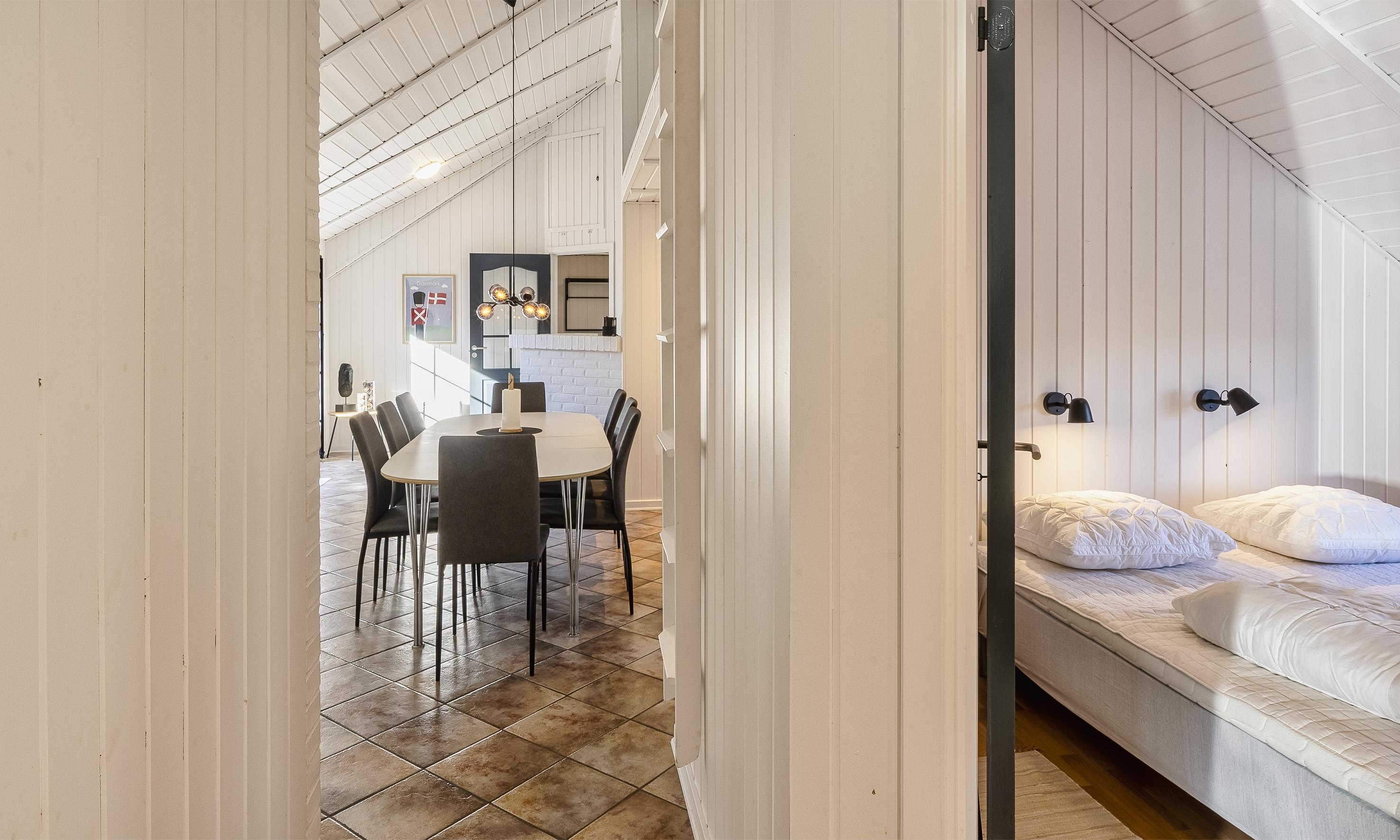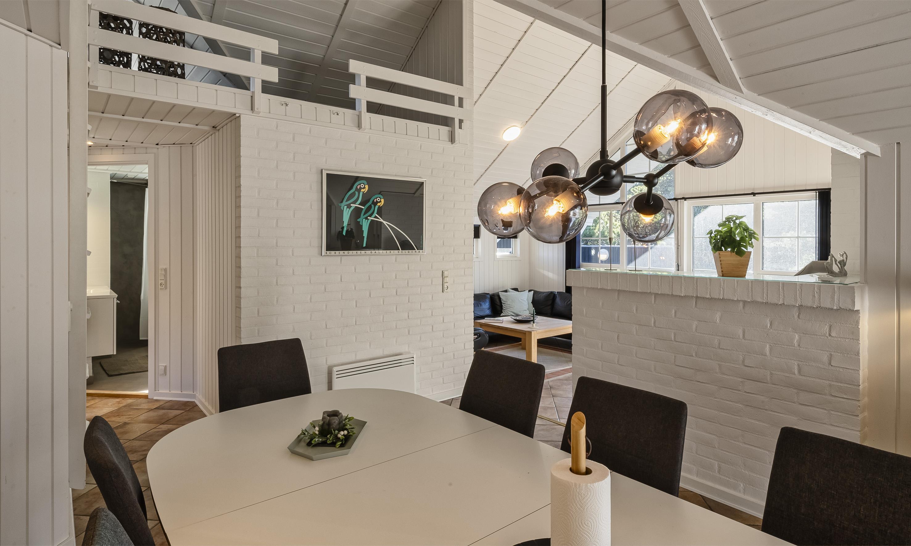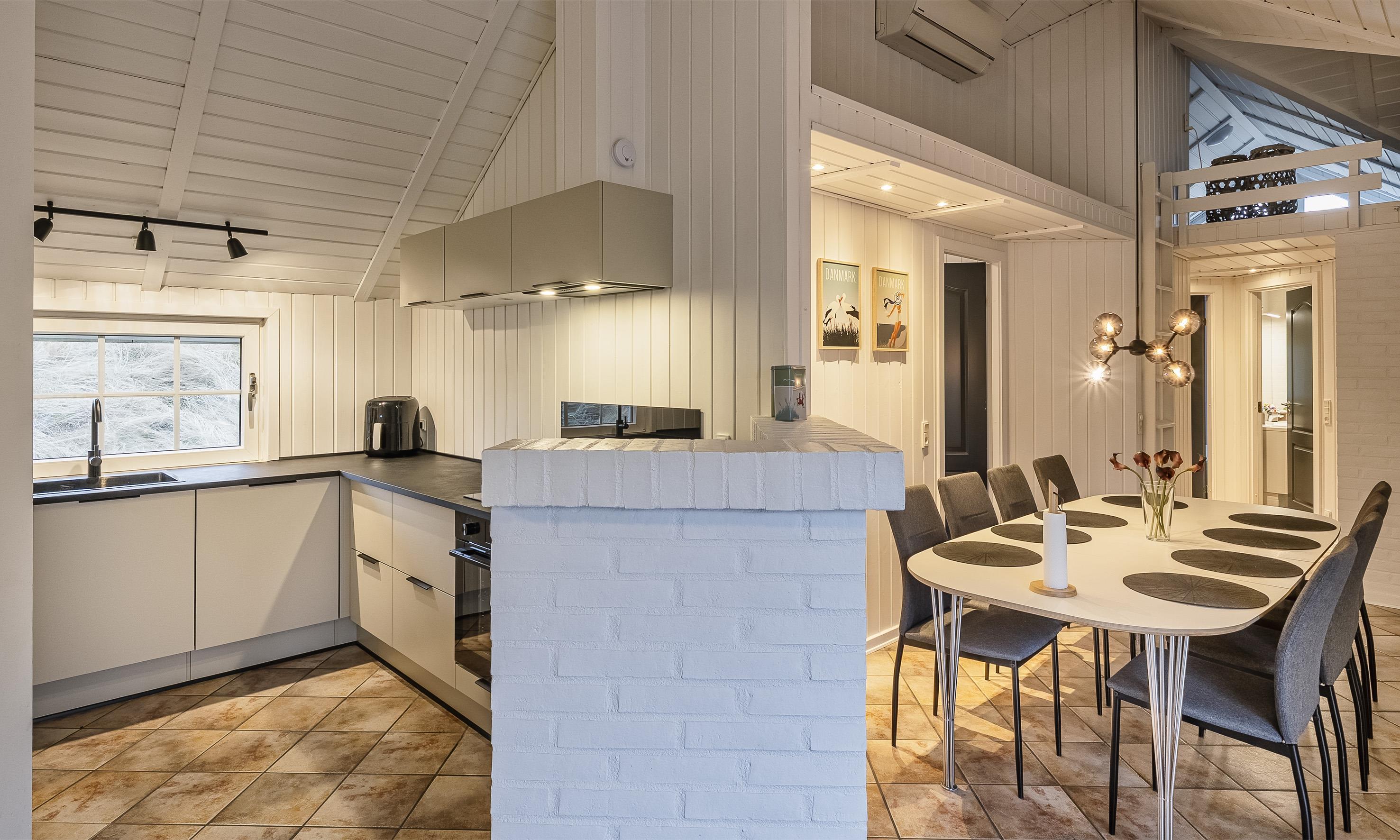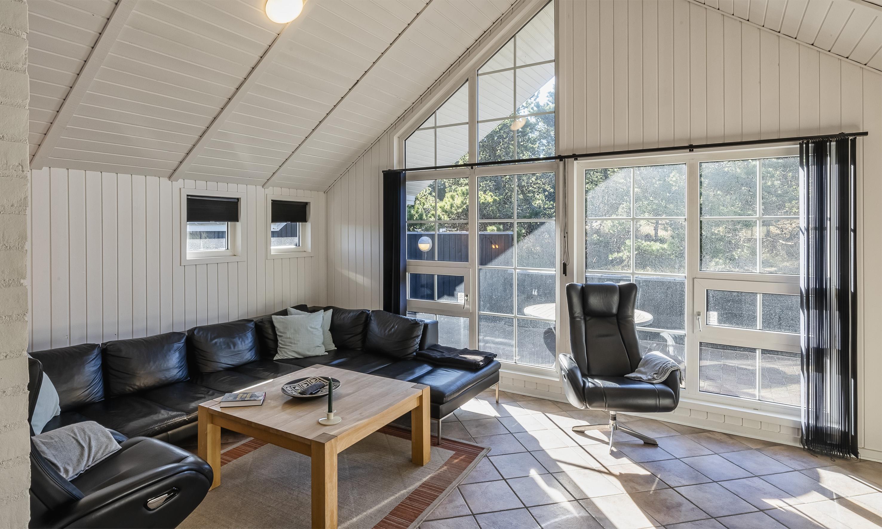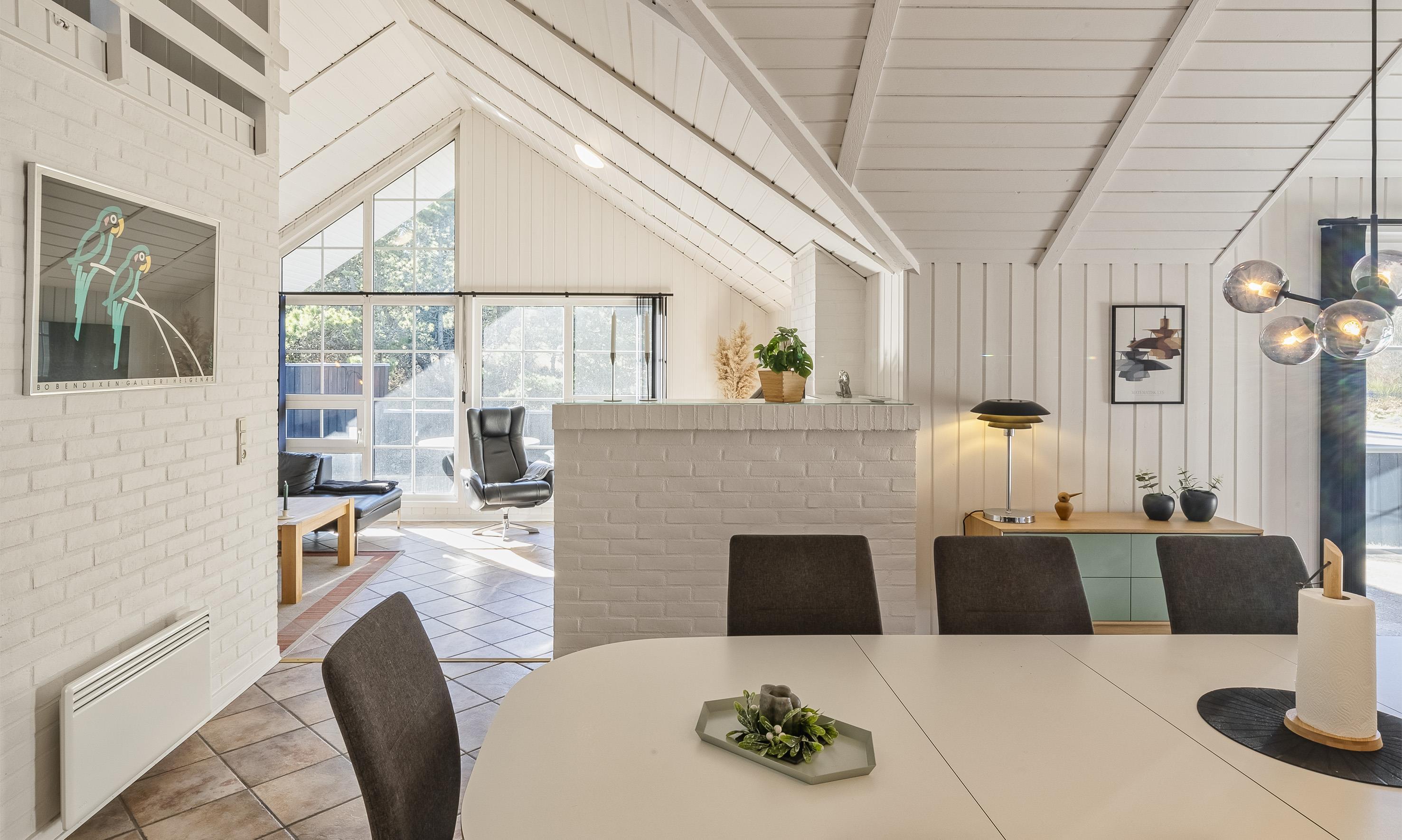 Super flottes und geschmackvoll eingerichtetes Ferienhaus in Mitten der Dünenlandschaft und in bevorzugter Ferienhauslage. Der Strand ist nur Sage und Schreibe 400 Meter vom Haus entfernt. Das Ferienhaus ist hell und freundlich, sehr modern eingerichtet und bietet reichlich Platz für 6 Personen. Der gesamte Bodenbereich, ausser in den Schlafzimmern, ist mit einer terracottafarbenden Bodenfliese ausgestattet. In den Schlafzimmern befindet sich ein Holzlaminatboden. Der lichtdurchflutete Wohnraum mit dem grossen Panoramafenster und den hohen Decken verfügt über eine Fussbodenheizung. Auf der gemütlichen Sitzgarnitur haben Sie direkten Blick zum Kamin. Im Ferienhaus empfangen Sie dänisches und deutsches Fernsehprogramm. Über eine kleine Stufe nachoben gelangen Sie dann von dem Wohnbereich in den grosszügigen Essbereich des Hauses. Hier befindet sich eine Varmpepume, die in Richtung Wohnbereich oben an einer Wand motiert ist. Mit dieser Warmepumpe haben Sie die Möglilchkeit die Stromkosten zu senken, da sie energiesparend ist. Von hier kommen Sie dann auch über eine kleine Leiter auf dem Hems. Dort befinden sich ein paar Madratzen, wo man dann zum Beispiel sein Buch lesen oder auch einfach nur abschalten oder relaxen kann. Die Küche ist modern in seiner Ausstattung eingerichtet und verfügt über einen Herd mit Cerankochfeld, einem Bakofen, einer Geschirrspümaschine, einer Mikrowelle und einer Kühl- und Gefrierkombination. Den Gästen stehen zwei schöne renovierte helle Bäder mit Fussbodenheizung zur Verfügung. Beide sind mit einem WC, einem Handwaschbecken und einer Dusche ausgestattet. Das grössere Bad verfügt desweiteren noch über eine Sauna und einen Standwasser-Whirlpool. Der Standwasser-Whirlpool ist immer mit Wasser gefüllt und daher steht er Ihnen dann zu Beginn Ihres Urlaubs sofort zu Benutzung bereit. Insgesamt gibt es drei Schlafzimmer im Ferienhaus: DB + DB + DB. Im Eingangsbereich befindet sich eine Waschmaschine und ein Trockner zur freien Benutzung. Ein schöner grosszügiger Terrassenbereich läd zum Verweilen ein. Ein kleiner Teil ist sogar überdacht. Für ihr Fahrzeug steht desweitern ein Carport zur Verfügung. In dem Ferienhaus ist das Rauchen nicht erlaubt. Es ist maximal nur ein Hund erlaubt. Das Ferienhaus verfügt über einen Internetanschluss (W-Lan). Zusätzlich befindet sich ein Anschluss am Ferienhaus für El-Fahrzeuge. Das Ferienhaus ist in 1998 erbaut worden und wurde 2021 und 2025 renoviert.