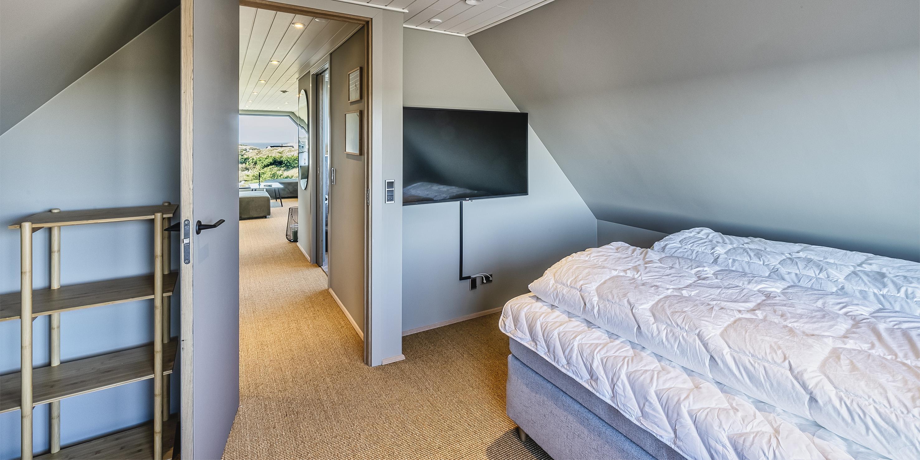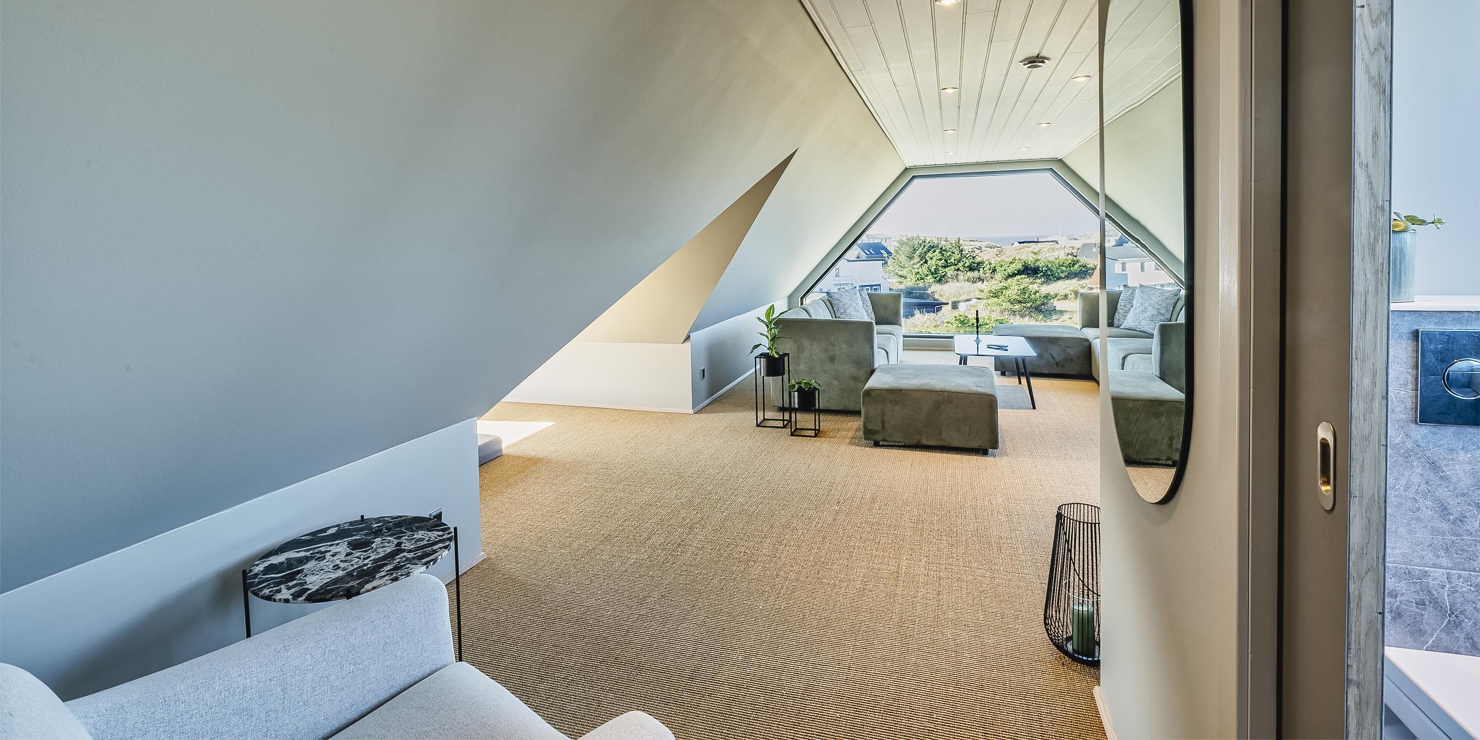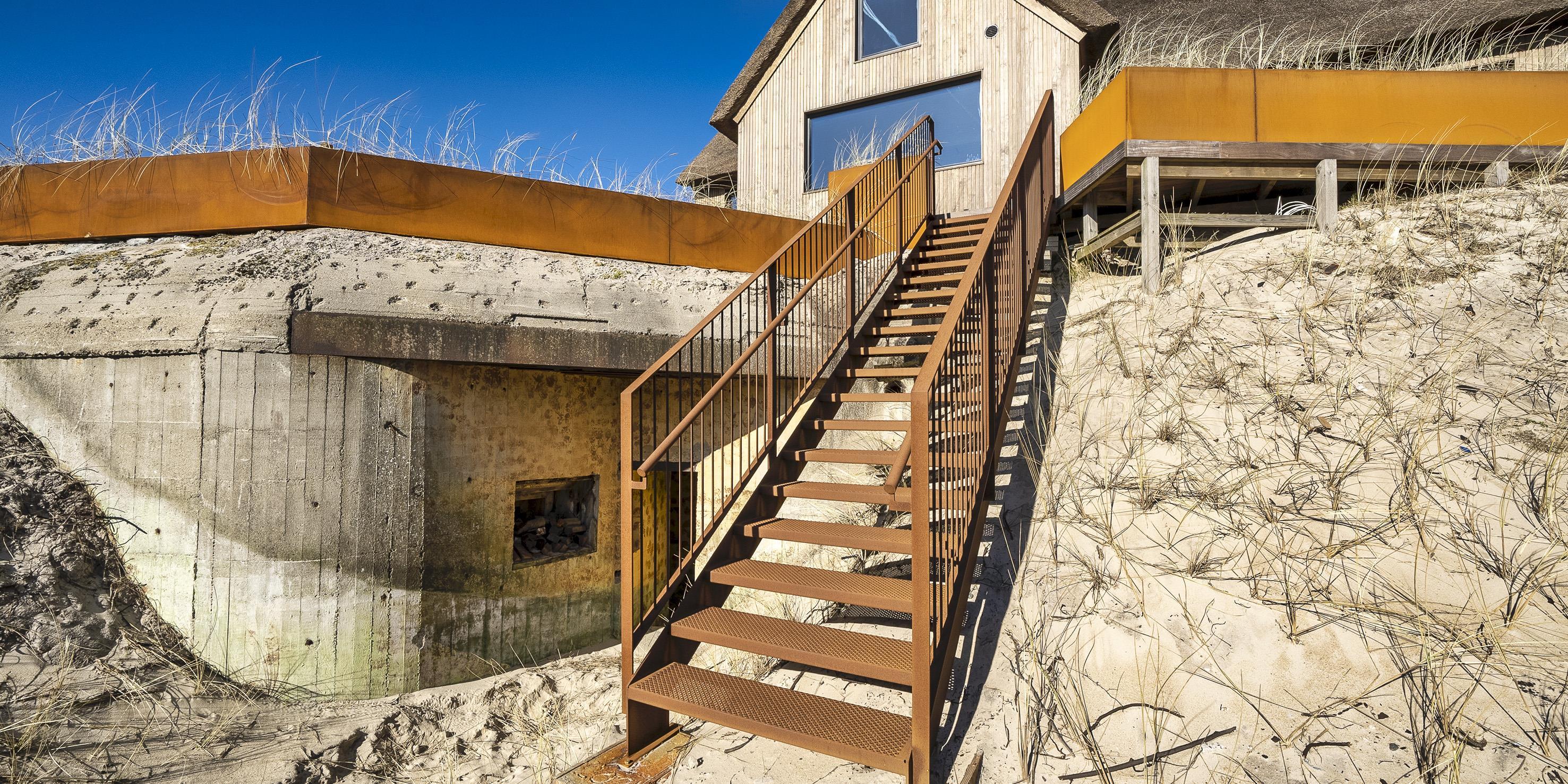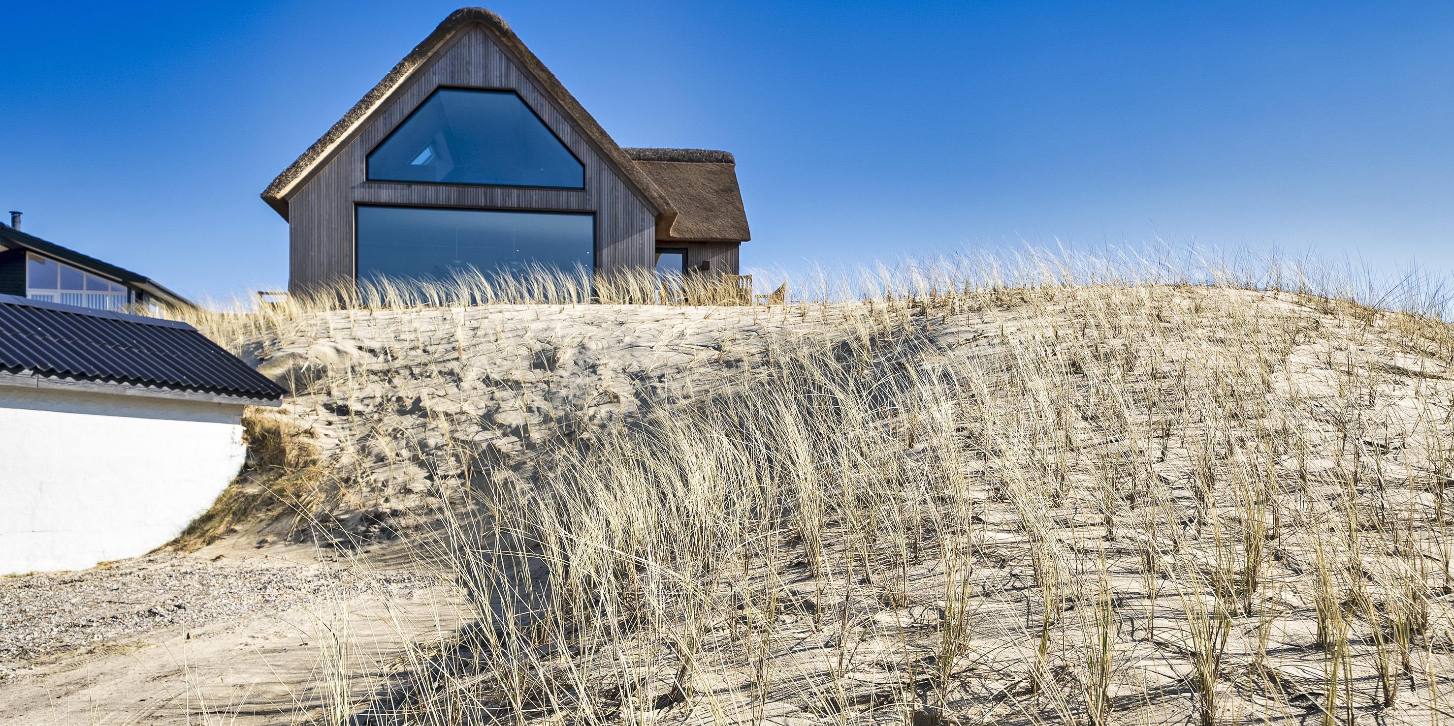 Die Außenanlagen bieten wunderschöne Sonnenuntergänge, die von der großen umlaufenden Holzterrasse aus genossen werden können. Das Ferienhaus liegt auf einem hohen Dünengrundstück, ca. 200 Meter vom Strand entfernt und in kurzer Entfernung zu Einkaufsmöglichkeiten und Restaurants.