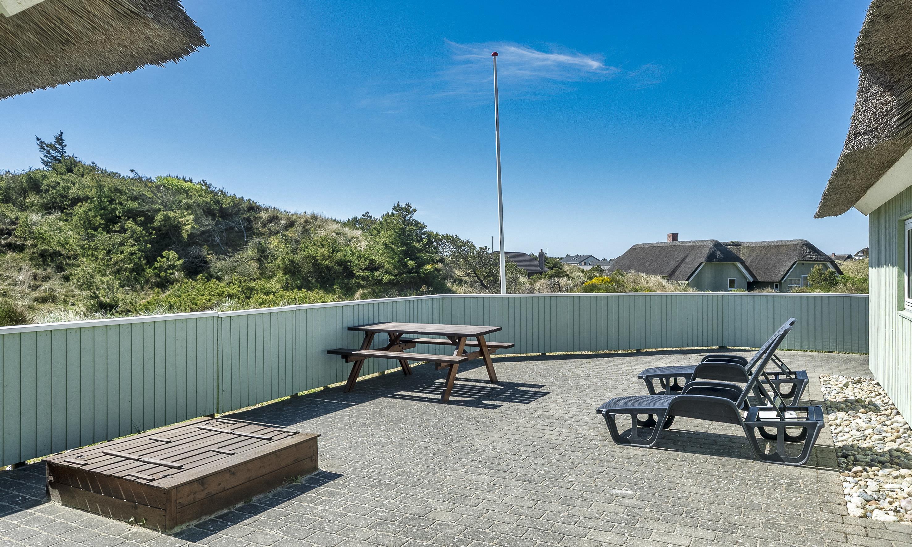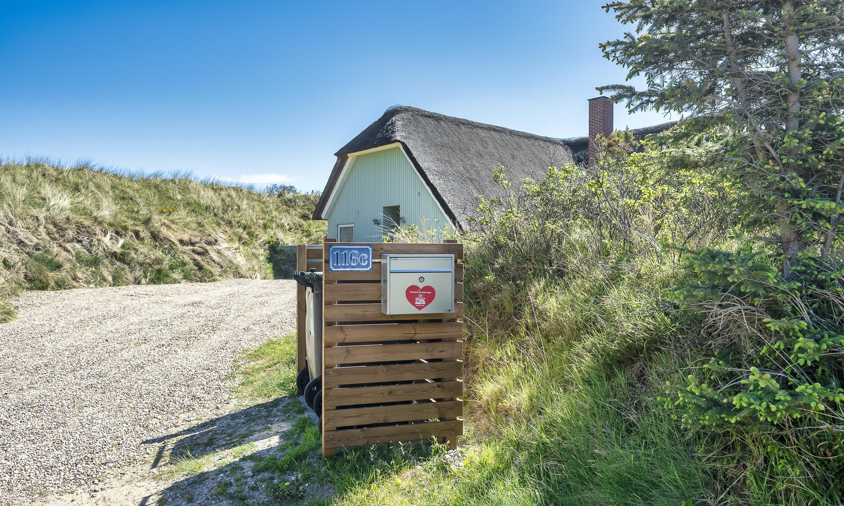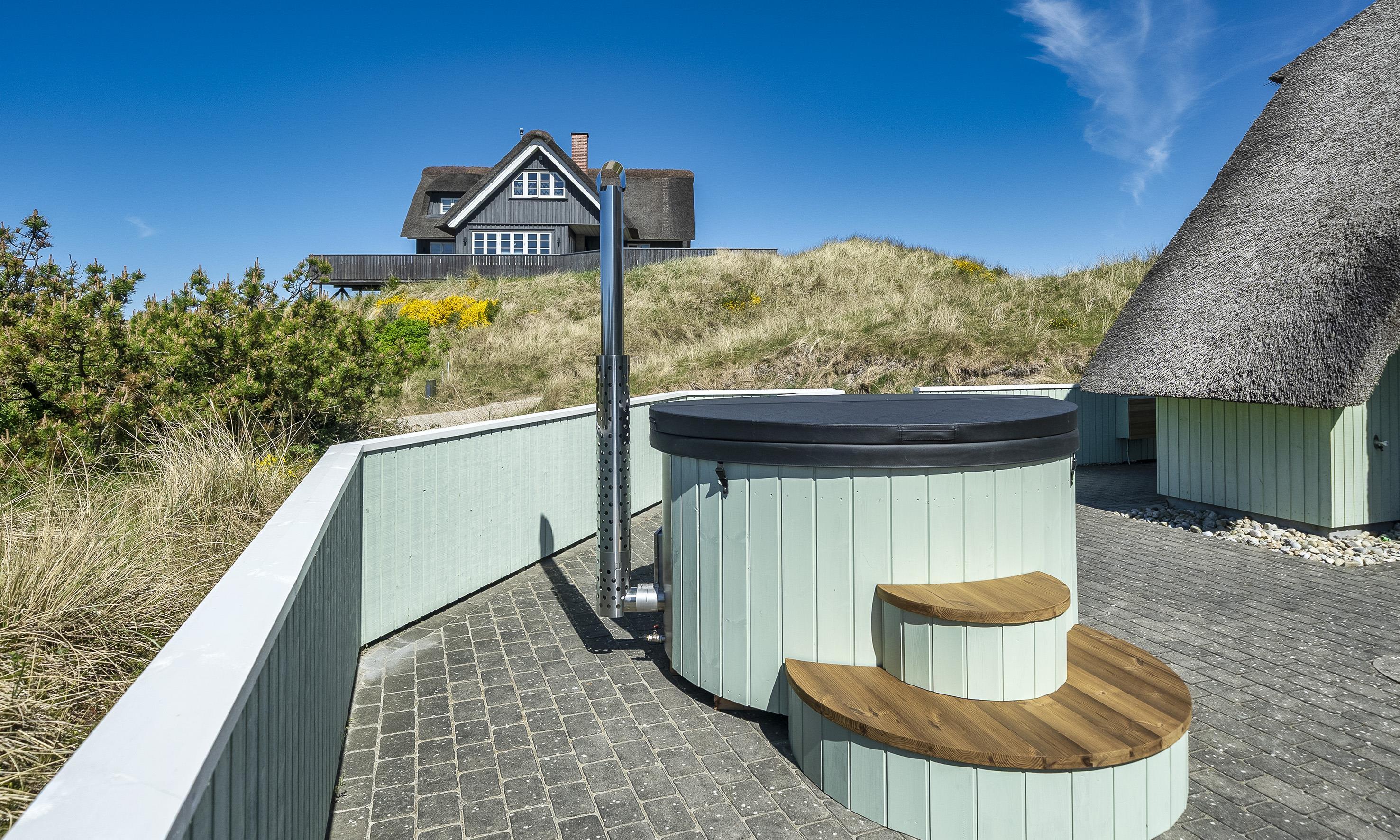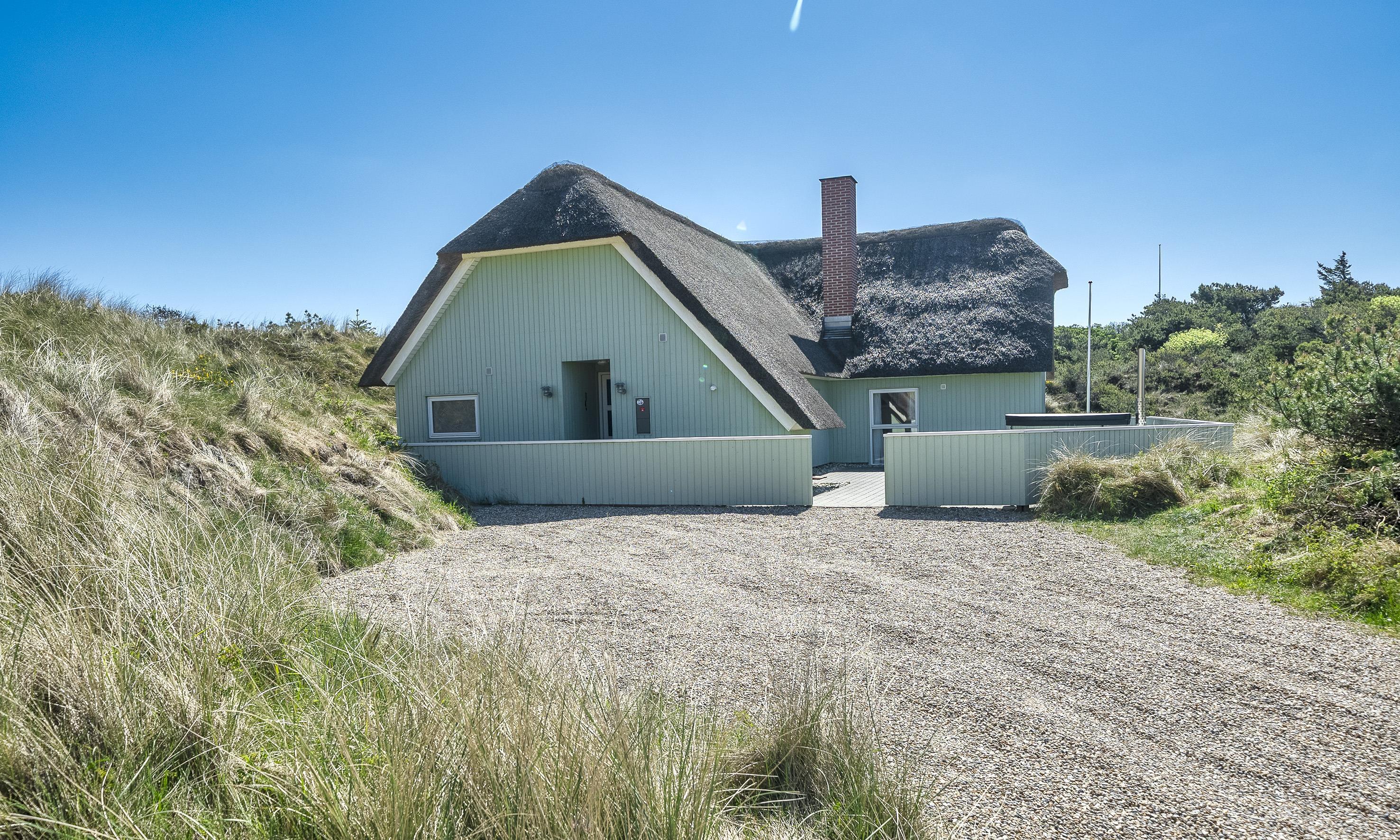 Reetgedeckte Ferienhaus in Mitten der Dünenkette in einer Senke und ist für 6-8 Personen ausgestattet und nur 200 Meter vom Strand entfernt mit einem Wildbad und einer Außendusche.