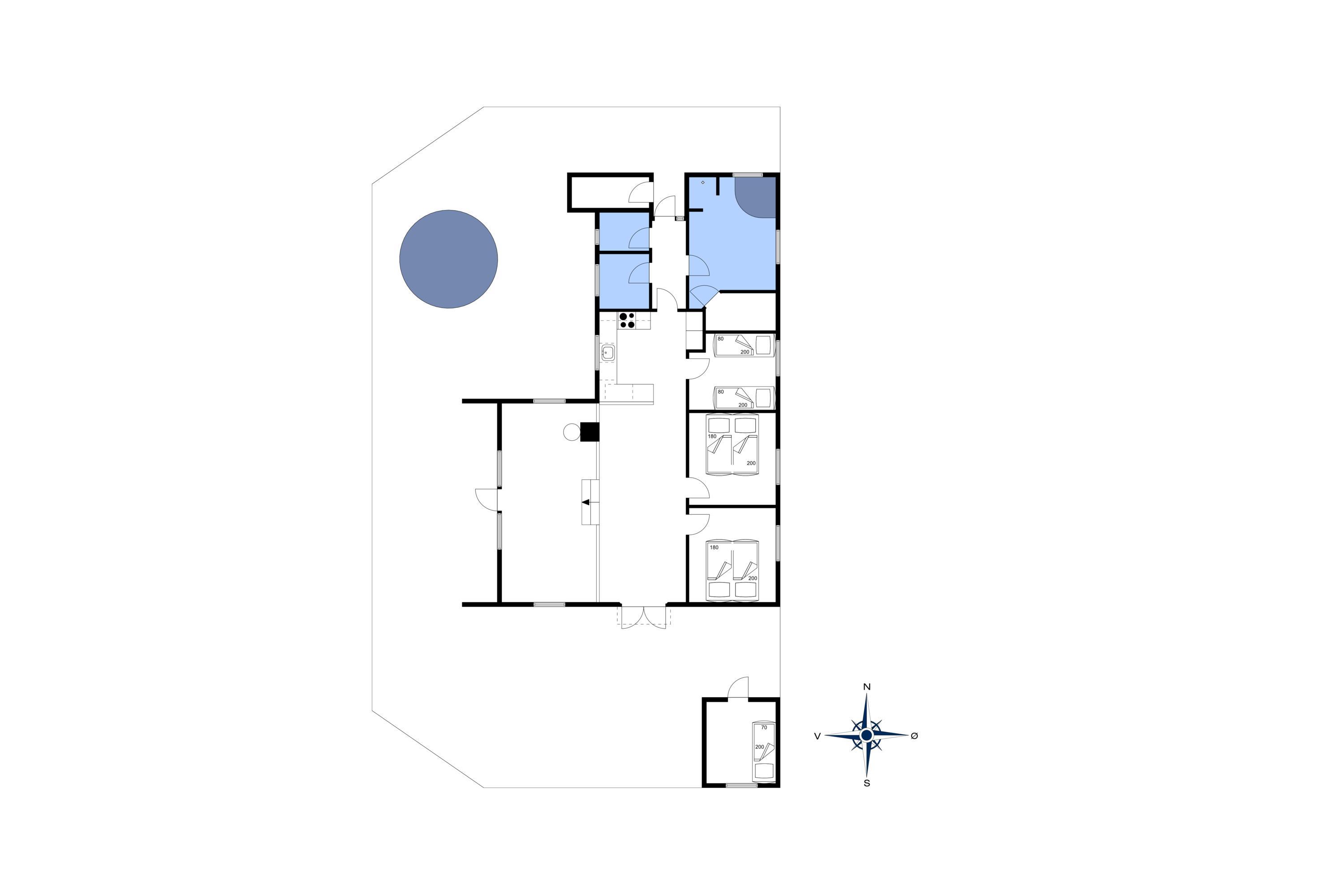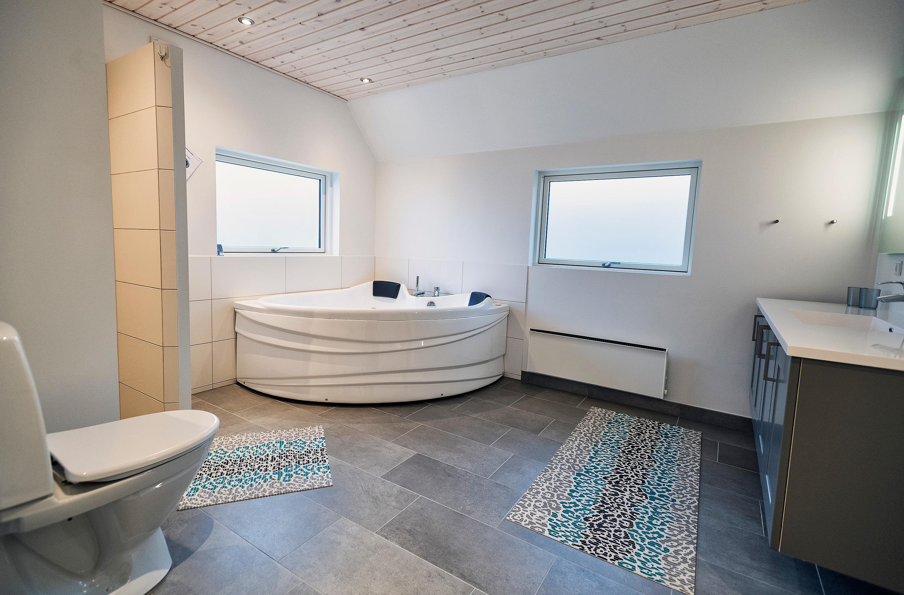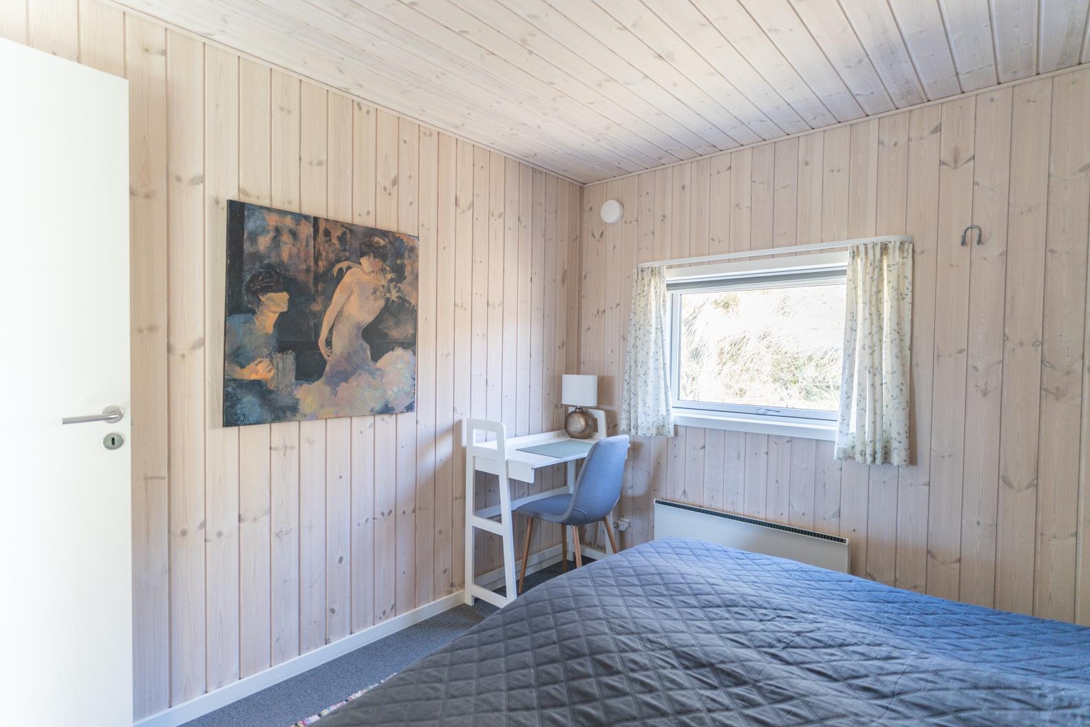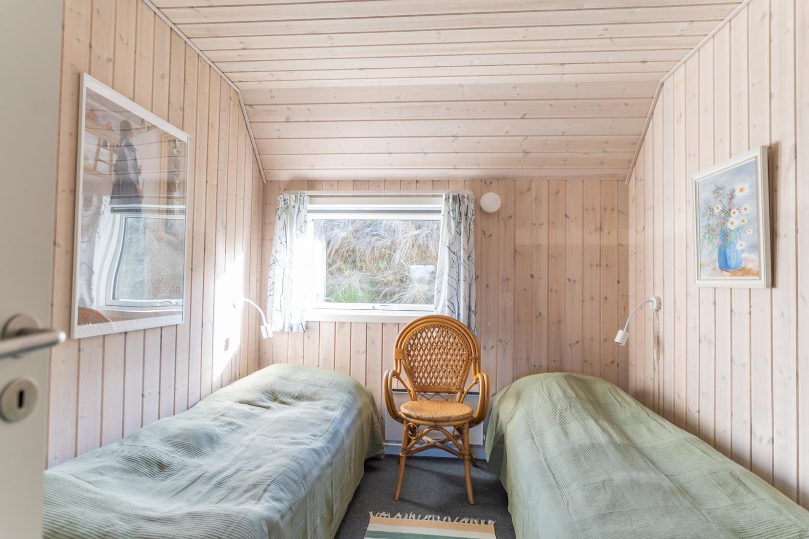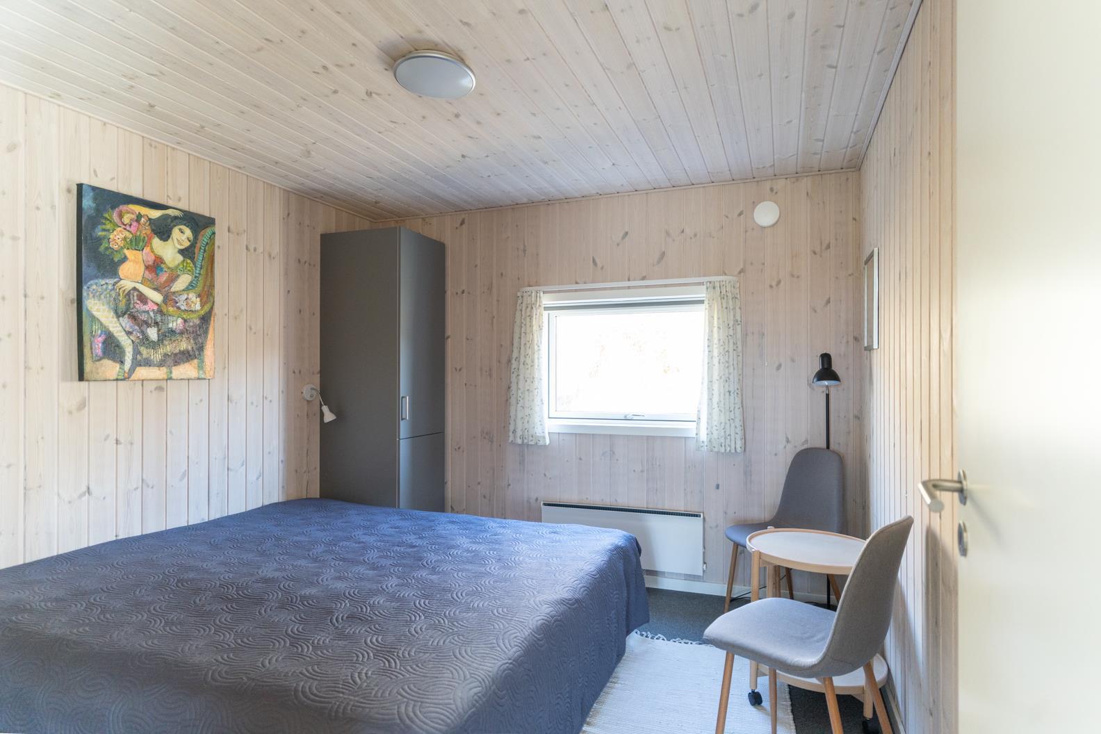 Der Wohnbereich geht mit eine Stufe nach unten, wo sich auch dann der Kamin befindet. Hier steht Ihnen tolles Mobilar, mit gemütlichen Sesseln am Kamin und einem Ecksofa zur Gemütlichkeit zur Verfügung. Es gibt dutsche Fernsehprogramme und dänische (DR Kanäle) im Hause. Ein kleine gemütliche Ecke mit einem kleinen Extra-Sofa für gemütliche Lesestunden und einem Ausgang zum Terrassenbereich befindet sich auch wieder im Hause. Vom Eingangsbereich gelangt man in den hellen Küchenbereich. In der Küche befindet sich ein Herd mit Cerankochfeld, ein Backofen, eine Geschirrspülmaschine und eine Kühl- und Gefrierkombination. Die Küche ist mit einer halbhohen Mauer zum Essbreich getrennt und trotzalledem offen gehalten. Es gibt insgesamt drei Schlafzimmer im Ferienhaus: DB + DB + 2B. Das 4. Schlafzimmer befindet sich im isoliertem und aufwärmbaren Anneks/Gätehaus. Dort befinden sich dann die weitrern 2 Schlafplätze. Das ist ein Etagenbett. Vom Eingangsbereich gelangen Sie in ein Gäste WC, ausgestattet mit WC und Handwaschbecken. Eine Waschmaschine und ein Trockner stehen den Gästen auch zur Verfügung. Ein grosses neues Badezimmer steht den Gästen ebenfalls zur Verfügung. Es verfügt über ein Handwaschbecken, ein WC, eine Dusche, einem Eck-Whirlpool und einer Sauna. Auf der großen und geschlossenen Terrasse können Sie bei einer Tasse Kaffee dem Meeresrauschen zuhören, dies ist Enstspannung pur und Balsam für die Seele. Das Ferienhaus verfügt über einen Internetanschluss (W-Lan). Das Baujahr des Hauses ist von 2019. Hinter dem Gästehaus wird ein kleiner Schuppen gebaut für die Gartenmöbel.