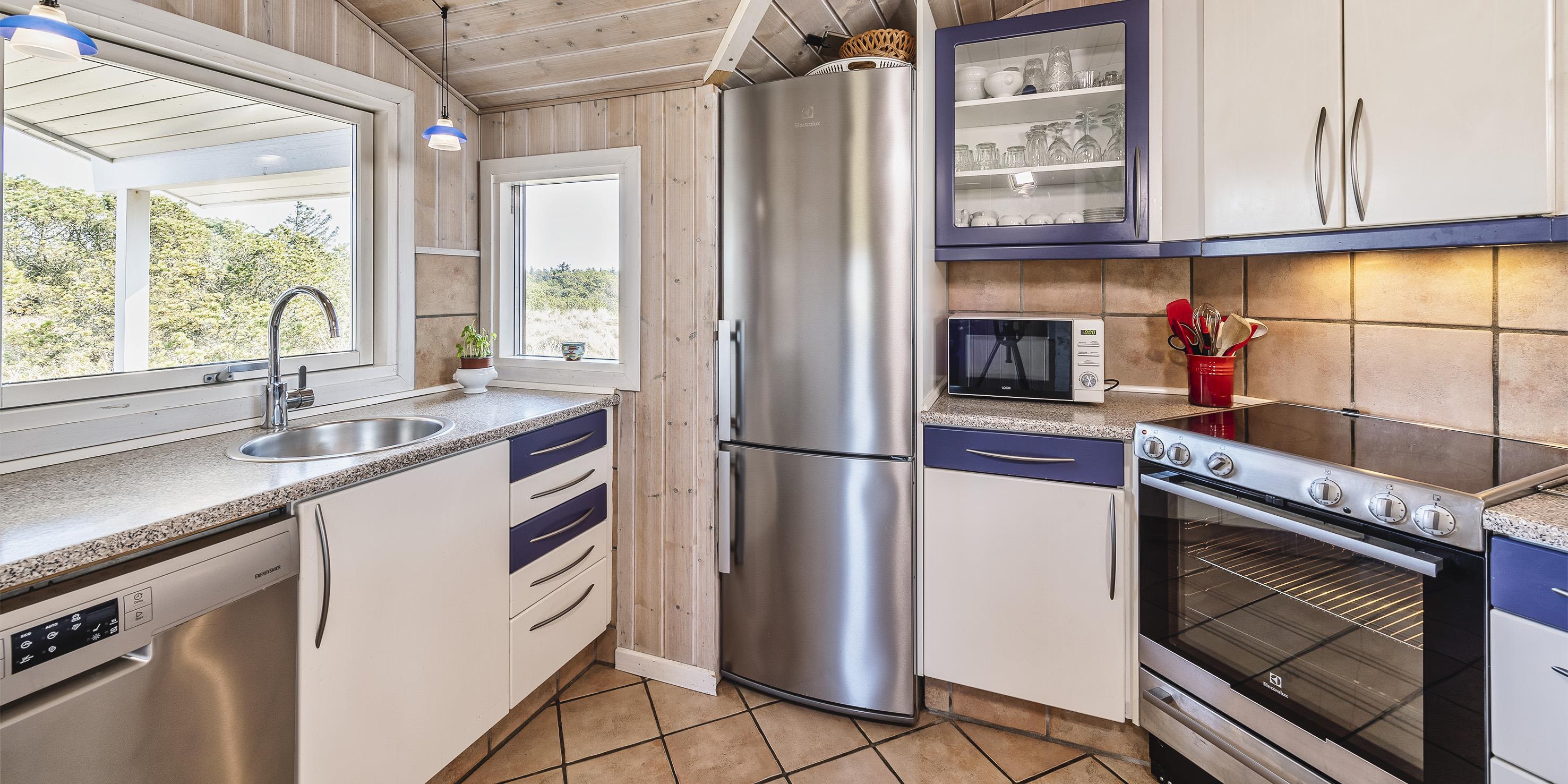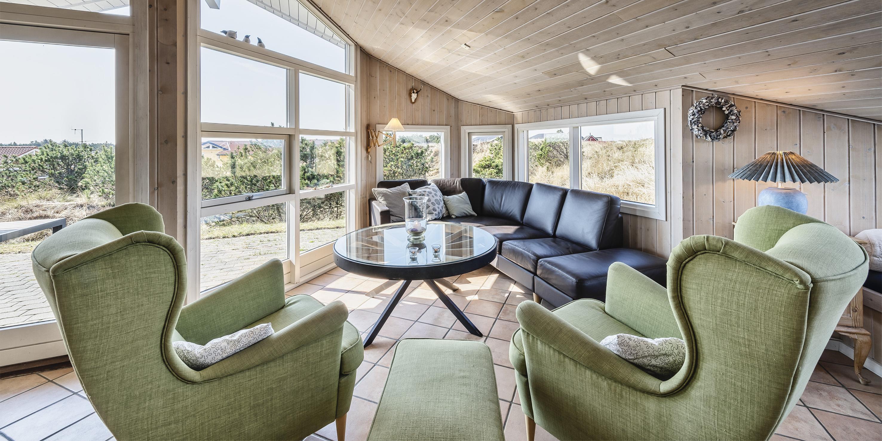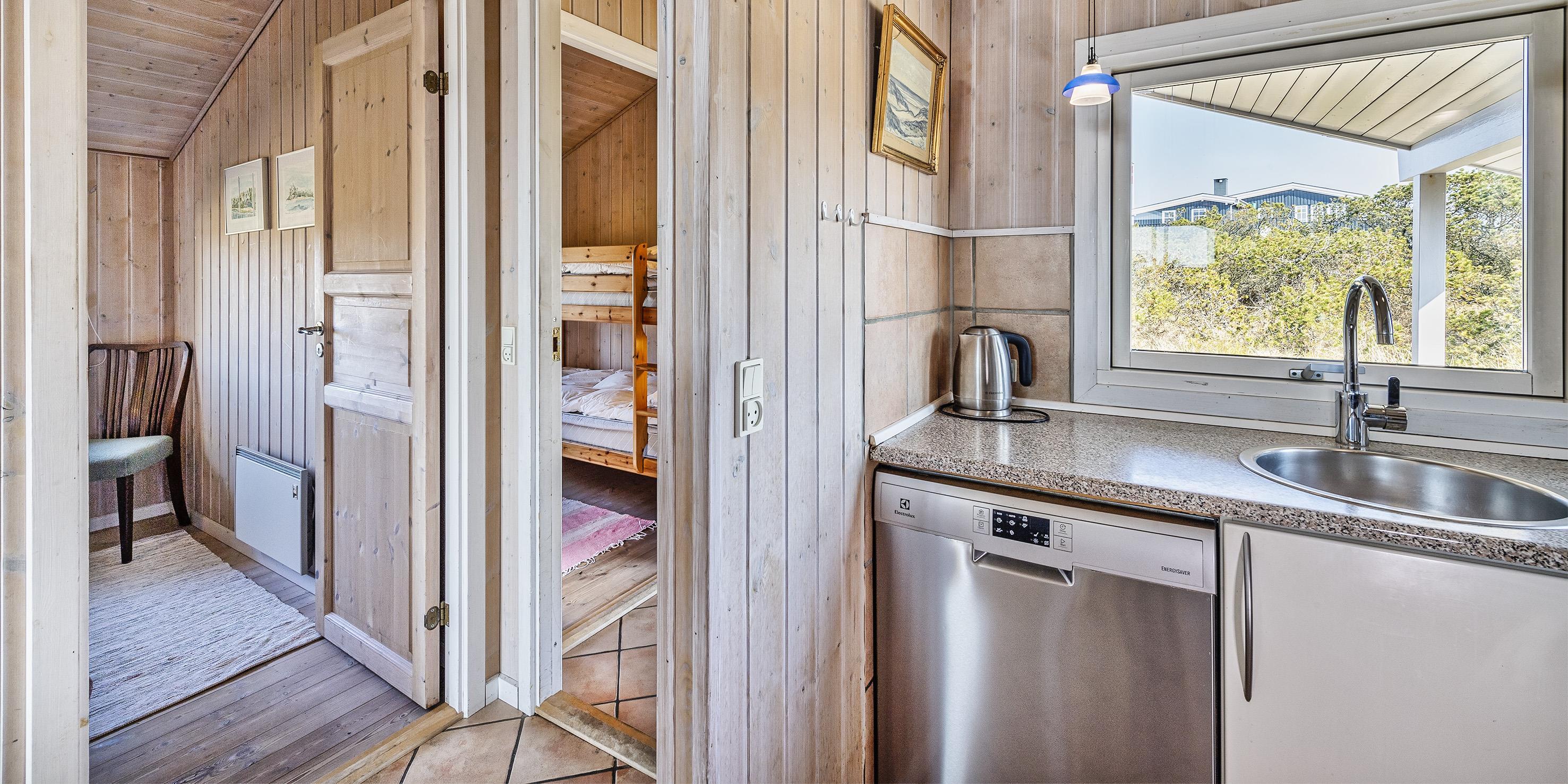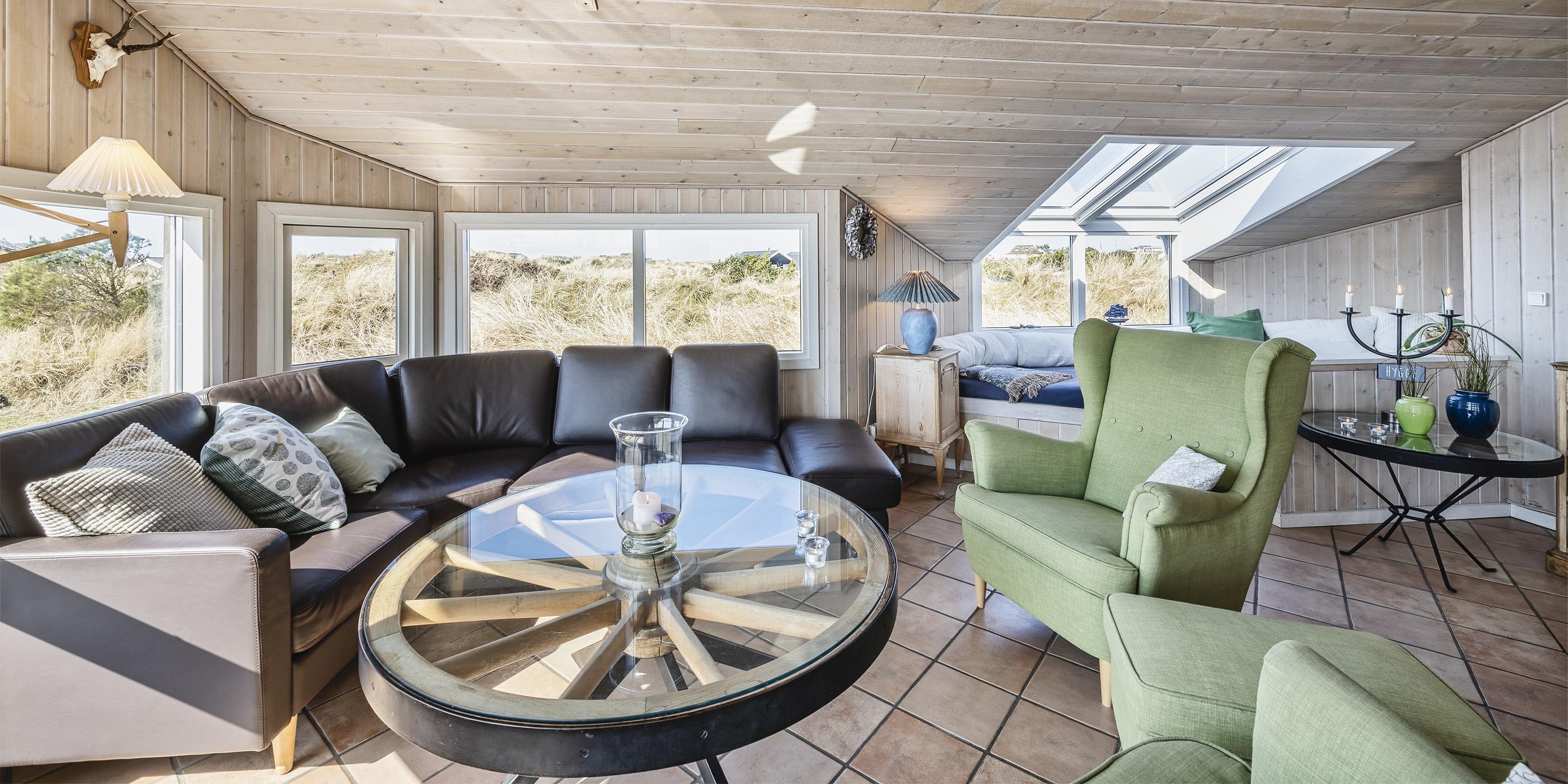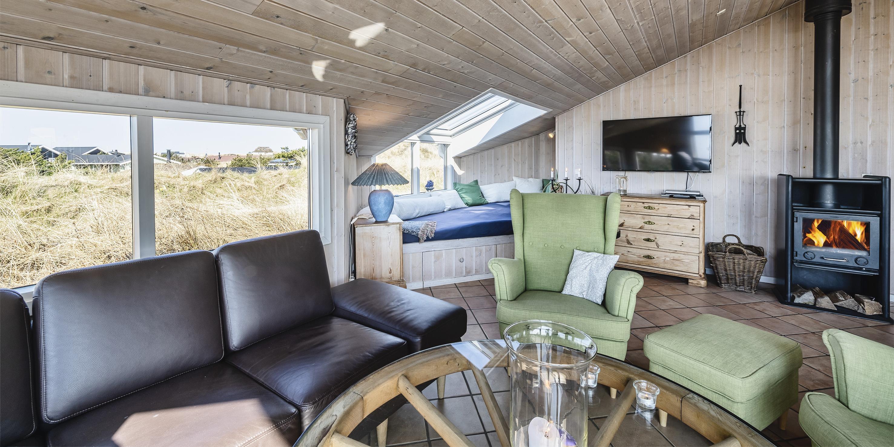 Dieses geschmackvoll eingerichtetes Ferienhaus mit Panoramaaussicht über die Dünenlandschaft liegt in einer bevorzugten Lage von Vejers Strand und ist für 6 Personen ausgestattet. Der Strand ist ca. 400 Meter vom Ferienhaus entfernt. Der Wohn- und Essbereich ist mit einer hübschen mediterranen Bodenfliese verlegt worden und strahlt Gemütlichkeit aus. Neben der Wohnzimmergarnitur ist ein Alkoven. Durch die eingebauten Oberlichter kommt viel Licht rein und Sie können hier einfach nur entspannen oder auch ein Buch lesen. Dazu den daneben stehenden Kamin angezündet strahlt es eine besondere Gemütlichkeit bzw. besonderen Flair aus.Es befindet sich eine Warmepumpe ab Januar 2023 im Ferienhaus. Mit dieser Warmepumpe haben sie die Möglichkeit die Stromkosten zu senken, denn die Warmepumpe ist energiesparend. Der Wohn- und Essreich ist licht durchflutet durch die großzügige Fensterfront im Wohnzimmerbereich Das deutsche Fernsehprogramm empfangen Sie über Stofa, daher sind es nur 5-8 Kanäle die Sie empfangen können. Die offen gehaltene Küche verfügt über einen Herd mit Cerankochfeld, einem Backofen, einer Geschirrspülmaschine und einer Kühl- und Gefrierkombination, alles in Edelstahloptik gehalten. Eine Mikrowelle steht auch zur Verfügung. Das Badezimmer verfügt über ein WC, ein Handwaschbecken, eine Dusche und einer Sauna. Es gibt drei Schlafzimmer im Ferienhaus: DB + DB + 2B. Zwei davon sind mit einem Doppelbett ausgestattet und das Dritte verfügt über zwei Einzelbetten. Eine Waschmaschine und ein Trockner stehen zur Benutzung bereit. Auf der großzügige Terrasse haben Sie genügend Platz für Ihre Grillabende oder für eine Kaffeetafel mit wundervollen Blick. Ein Teil davon ist sogar überdacht. Oder genießen Sie einfach mal Ihre Sonnenbad auf der Terrasse. Das Ferienhaus verfügt über einen Internetanschluss (W-Lan). Das Rauchen im Ferienhaus ist nicht erlaubt. Es sind keine Haustiere erlaubt, mit Ausnahme ein kleiner Hund mit max. Rückenhöhe von 30 cm. Ladestation für Elektroautos. Das Ferienhaus ist 1997 erbaut worden und laufend renoviert.