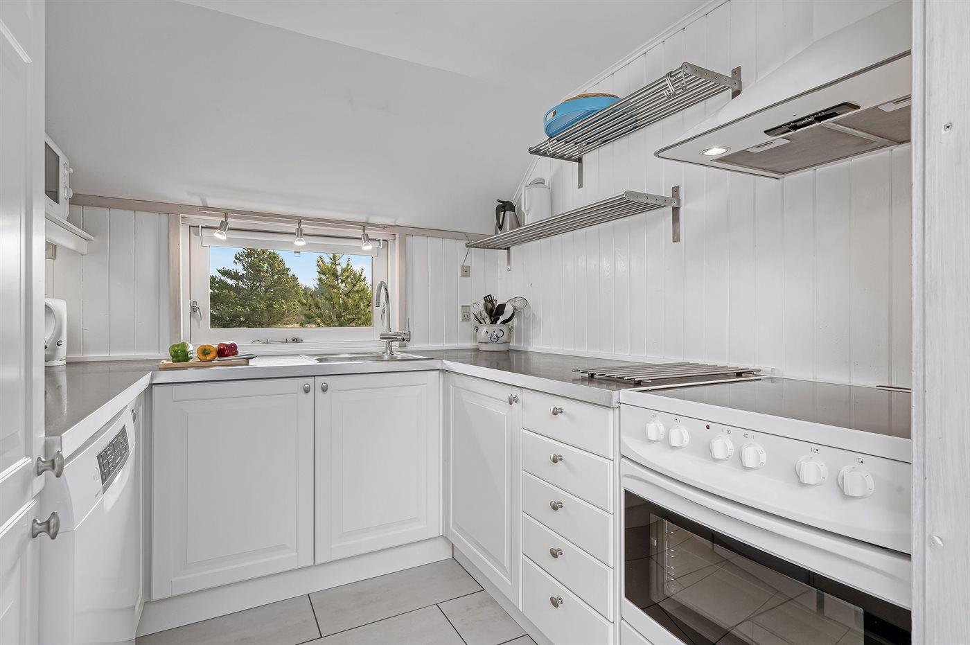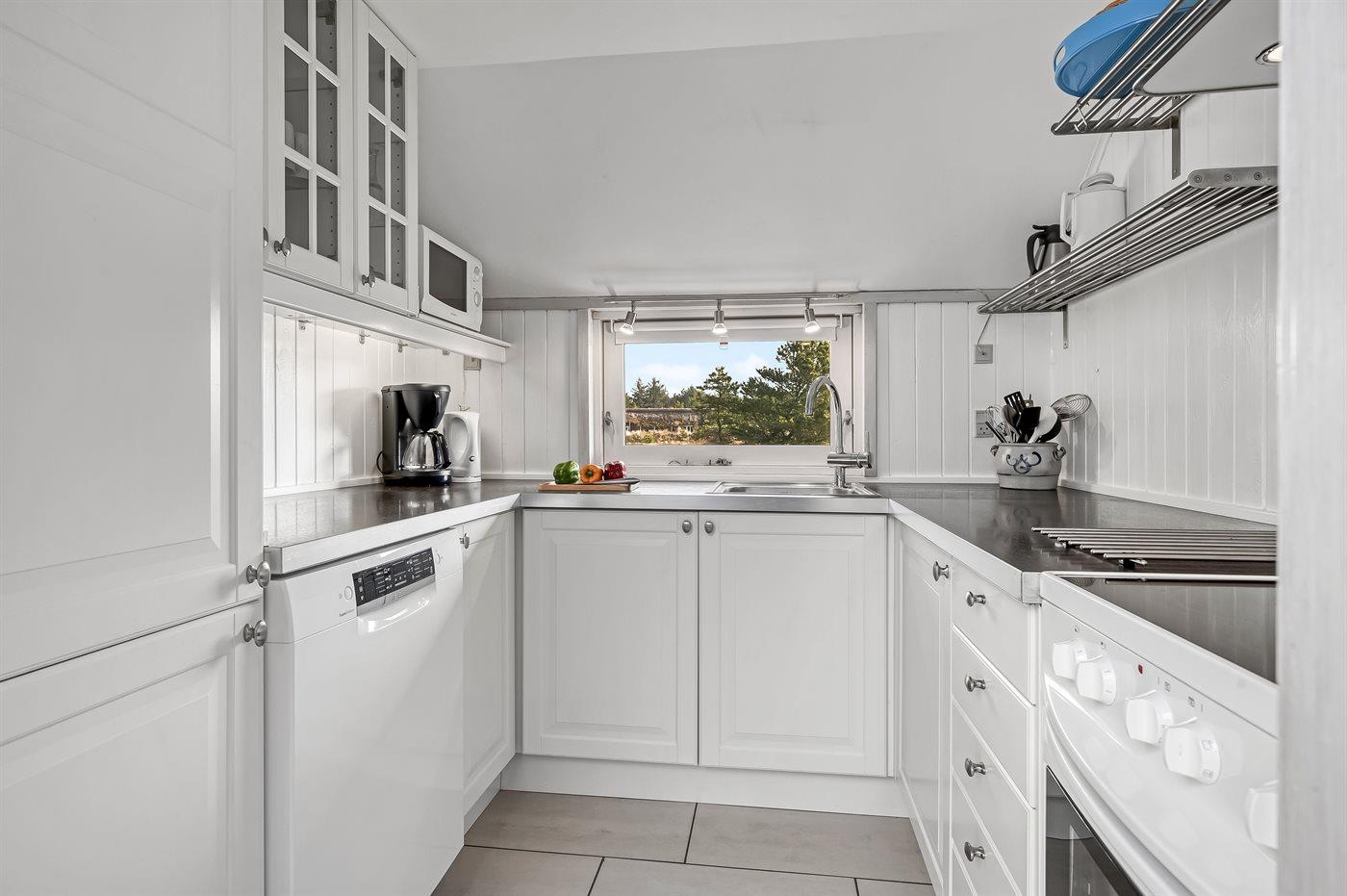 Die Küche ist mit Kühlschrank ausgestattet. Außerdem gibt es 4 Keramik-Kochfelder, Umluftofen, Mikrowelle sowie Geschirrspüler.