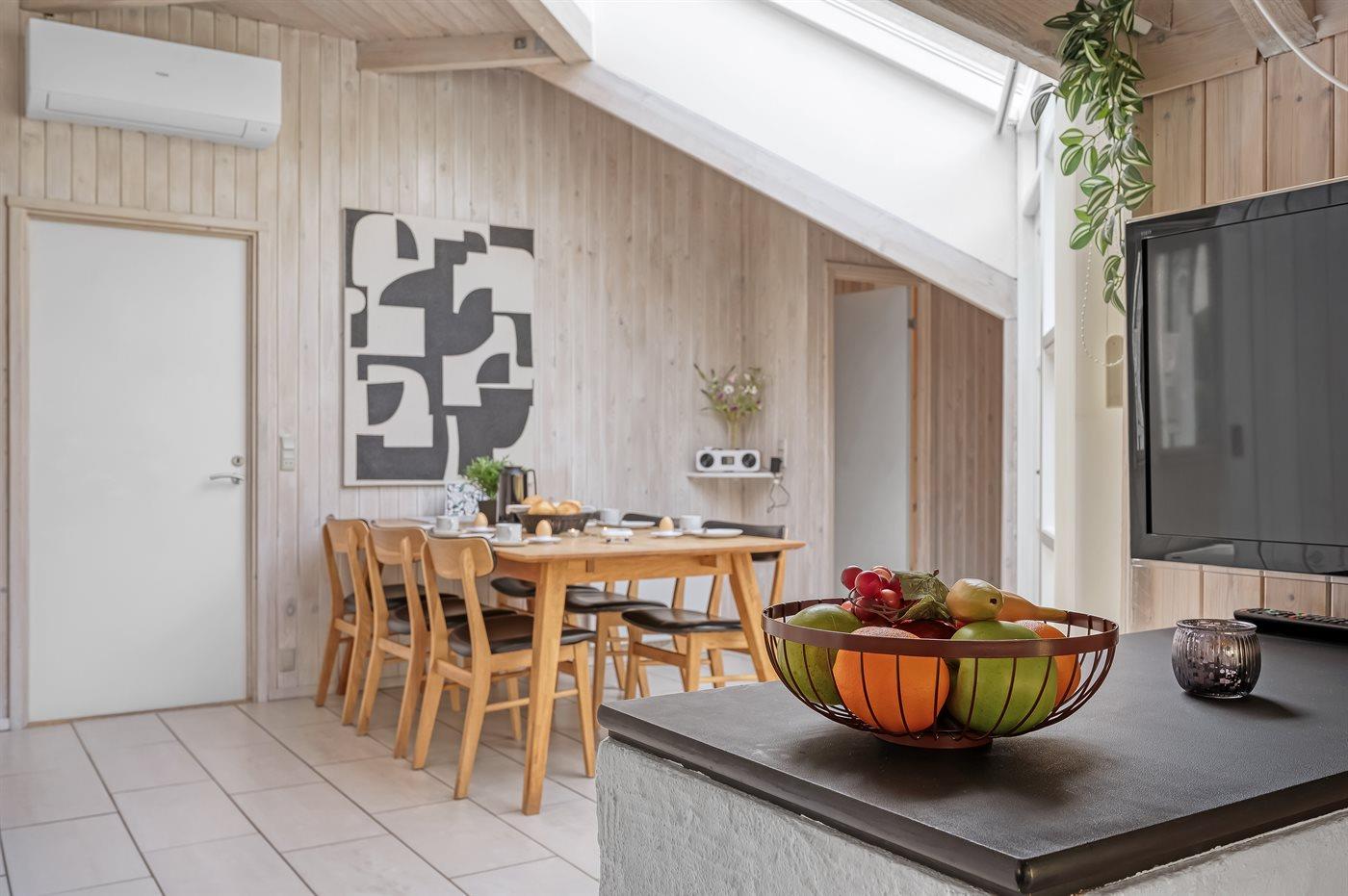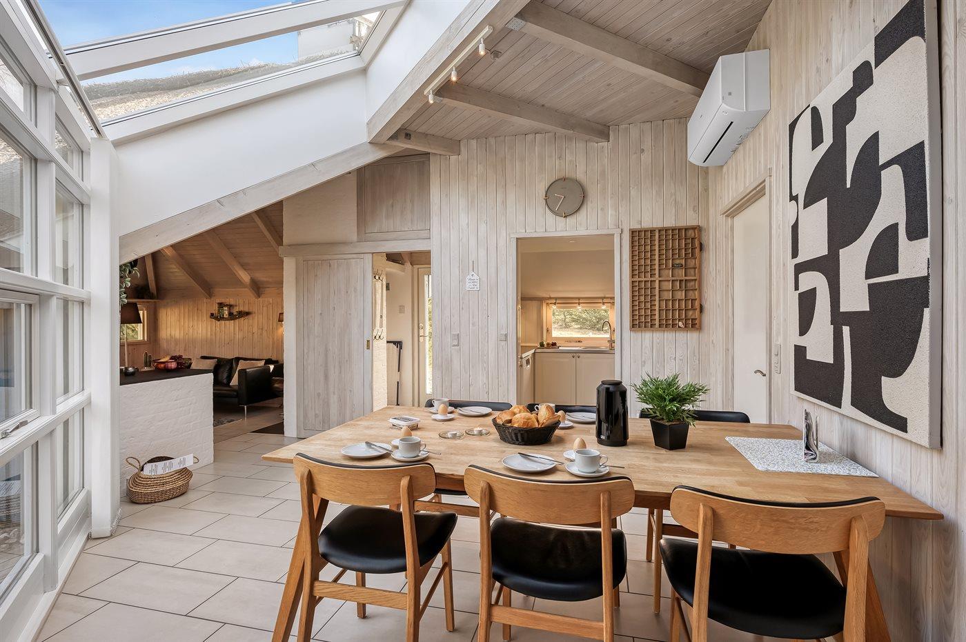 Ein gemütliches und hell eingerichtetes Ferienhaus mit einer zentralen Lage in Vejers – auf einem großen Grundstück mit Platz für Aktivitäten im Freien.
