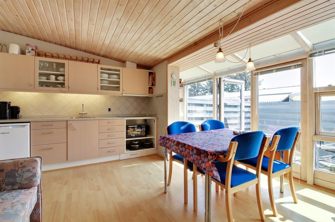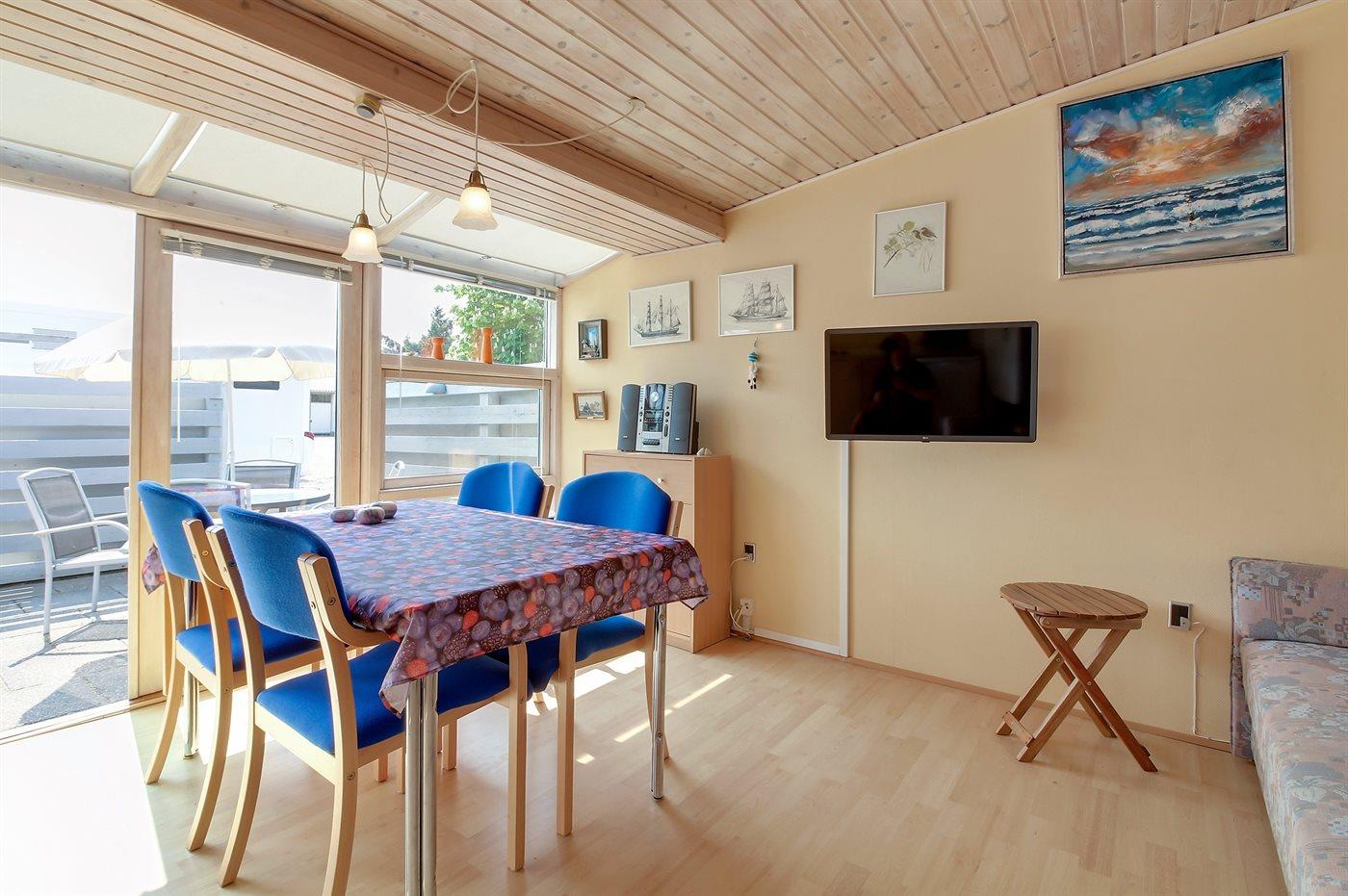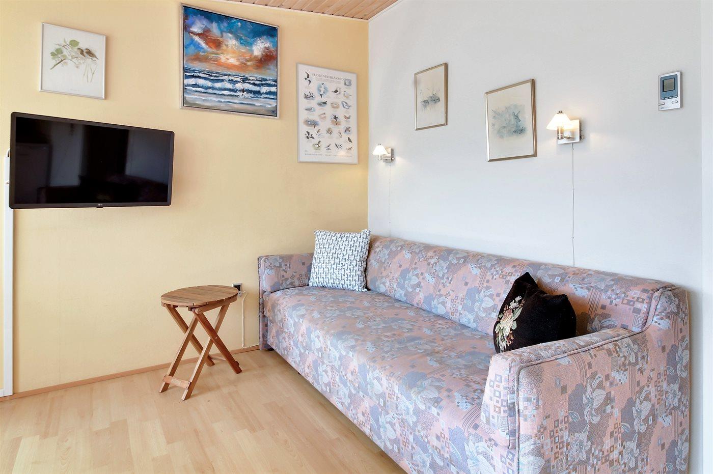 Schöne Wohnung für 2 Personen in der Nähe von Vejers Sydstrand. Das Wohnzimmer ist mit einem Schlafsofa für 2 Personen und Sesseln sowie einem Couchtisch ausgestattet. Außerdem gibt es eine kleine Essecke für 4 Personen, die Terrasse ist geschlossen.