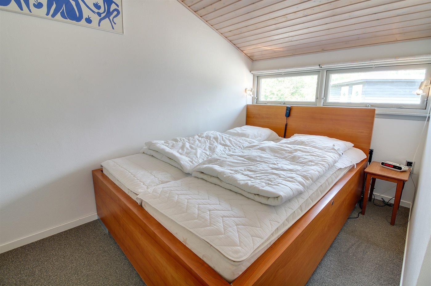 Es gibt einen Schlafraum. 2 Schlafplätze in einem Doppelbett.