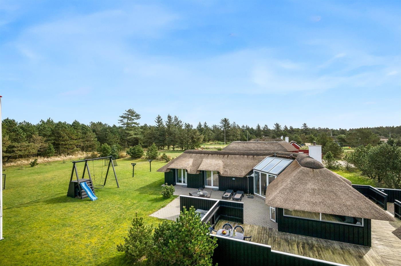 Helles Ferienhaus in Vejers Strand mit großem Grundstück, Sauna und Elektroautoladestation, ideal für Familien und Aktivurlaub.